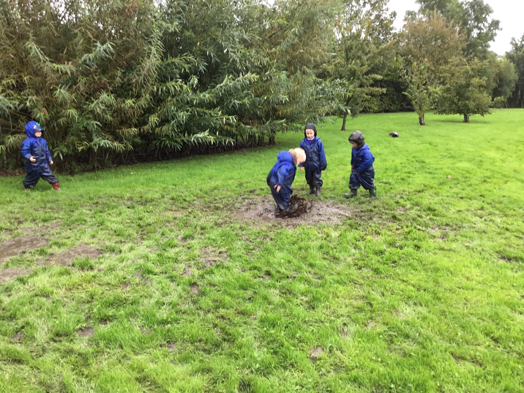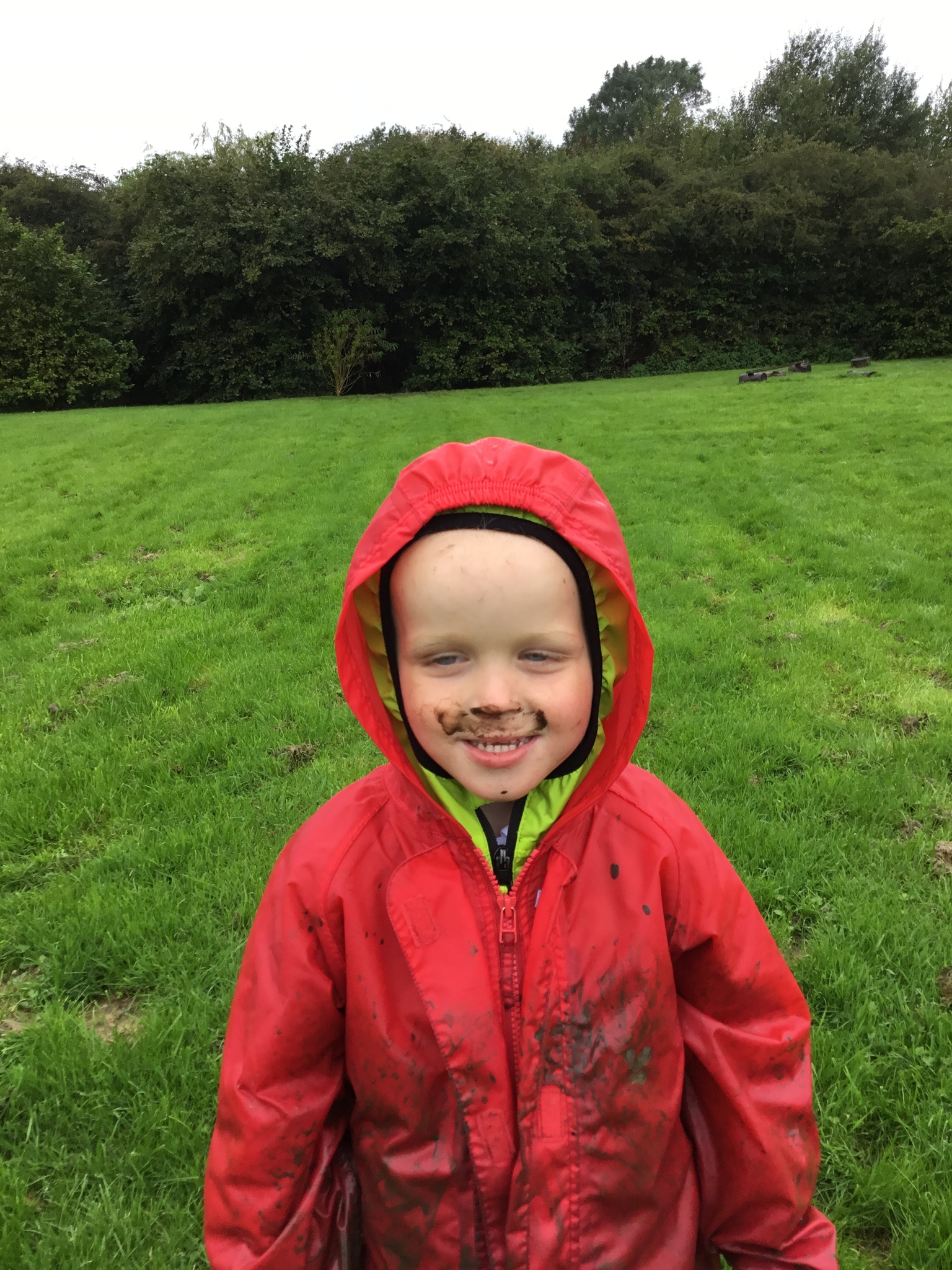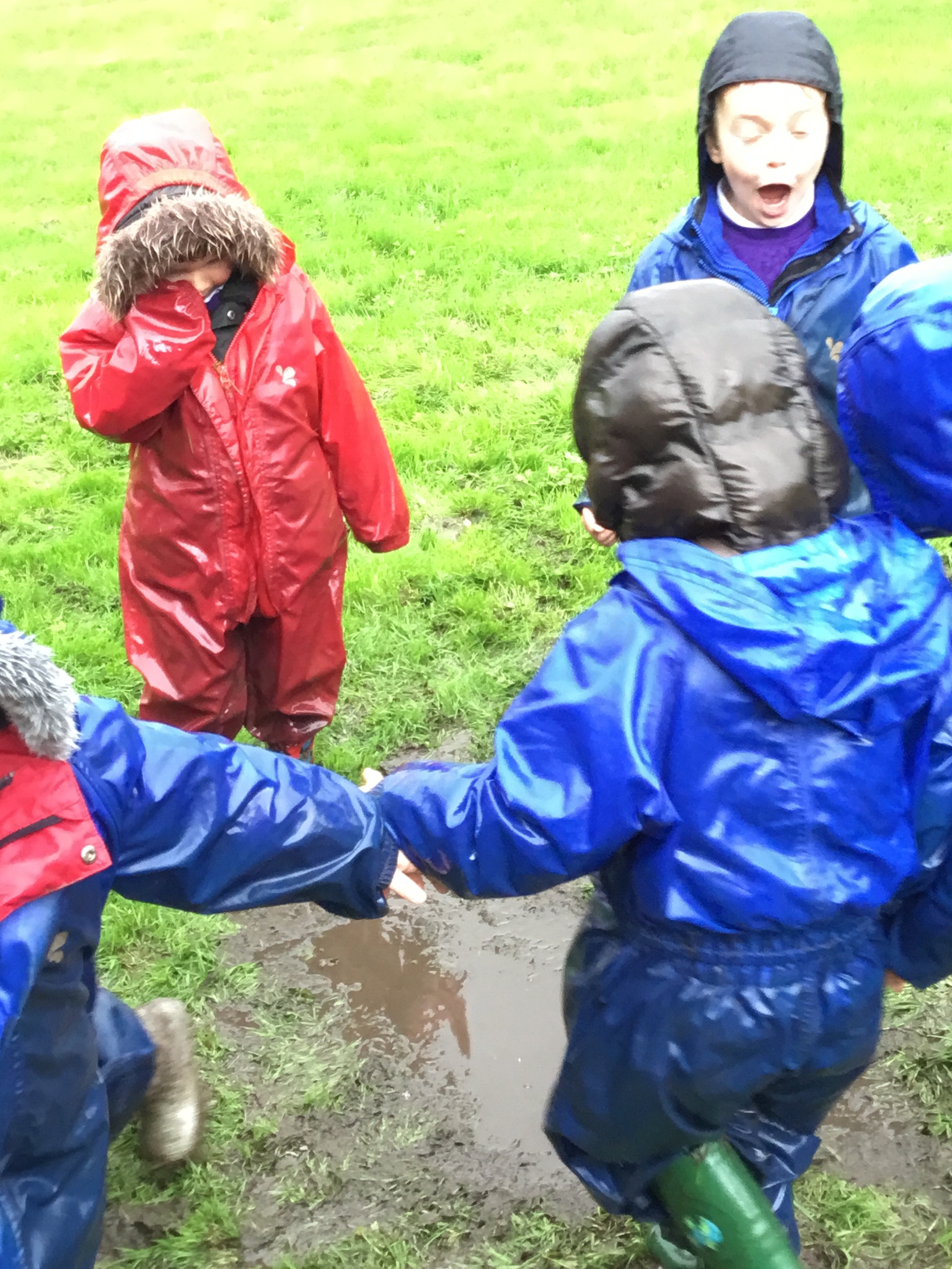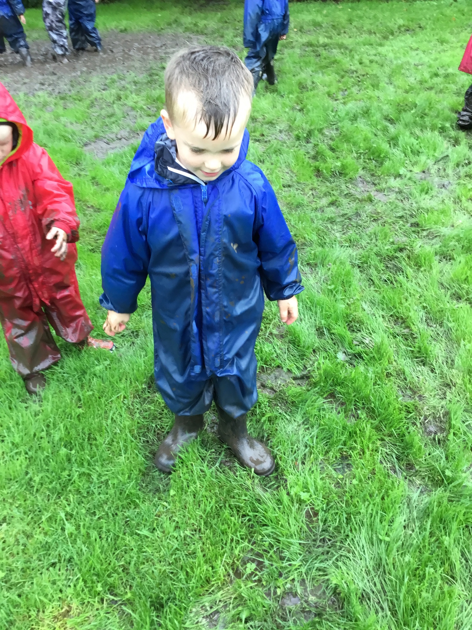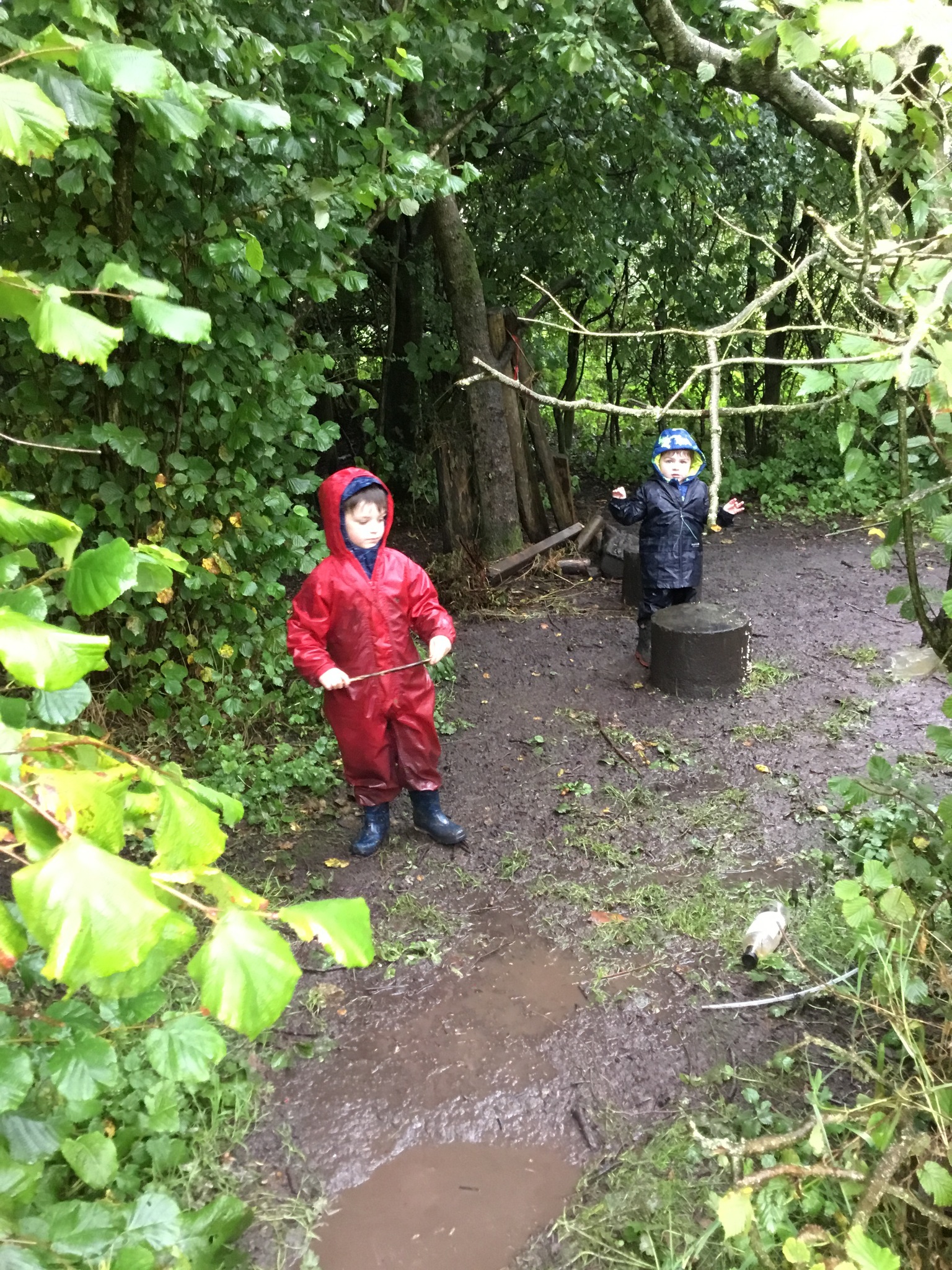 It takes more than a spot of torrential rain to dampen the enthusiasm of Reception when it comes to Forest School. This afternoon's rain only made the experience more exciting by creating lots and lots of lovely mud! We found slippy mud, squelchy mud, sticky mud and a nice deep puddle of splashy mud. Mudtastic!