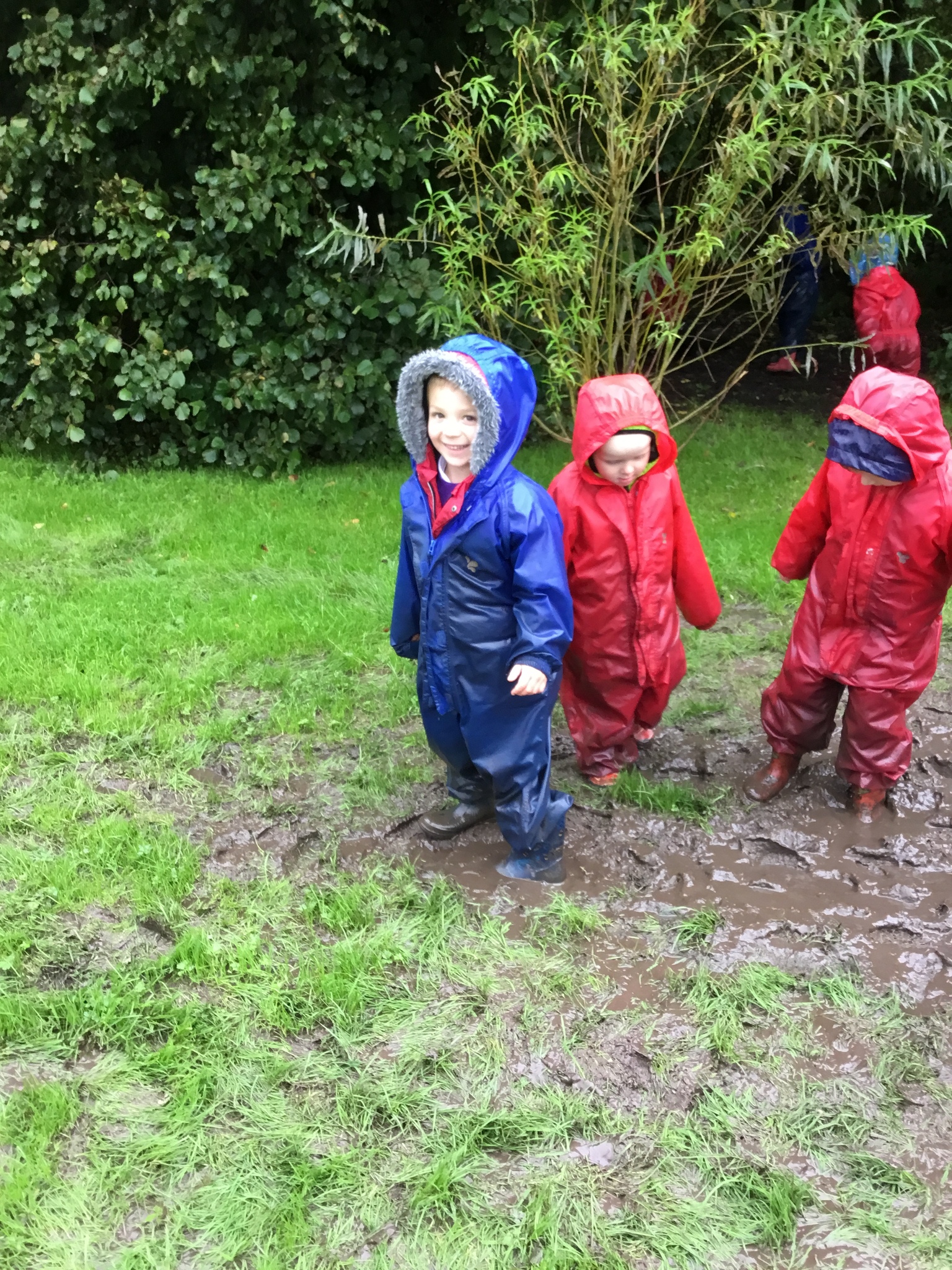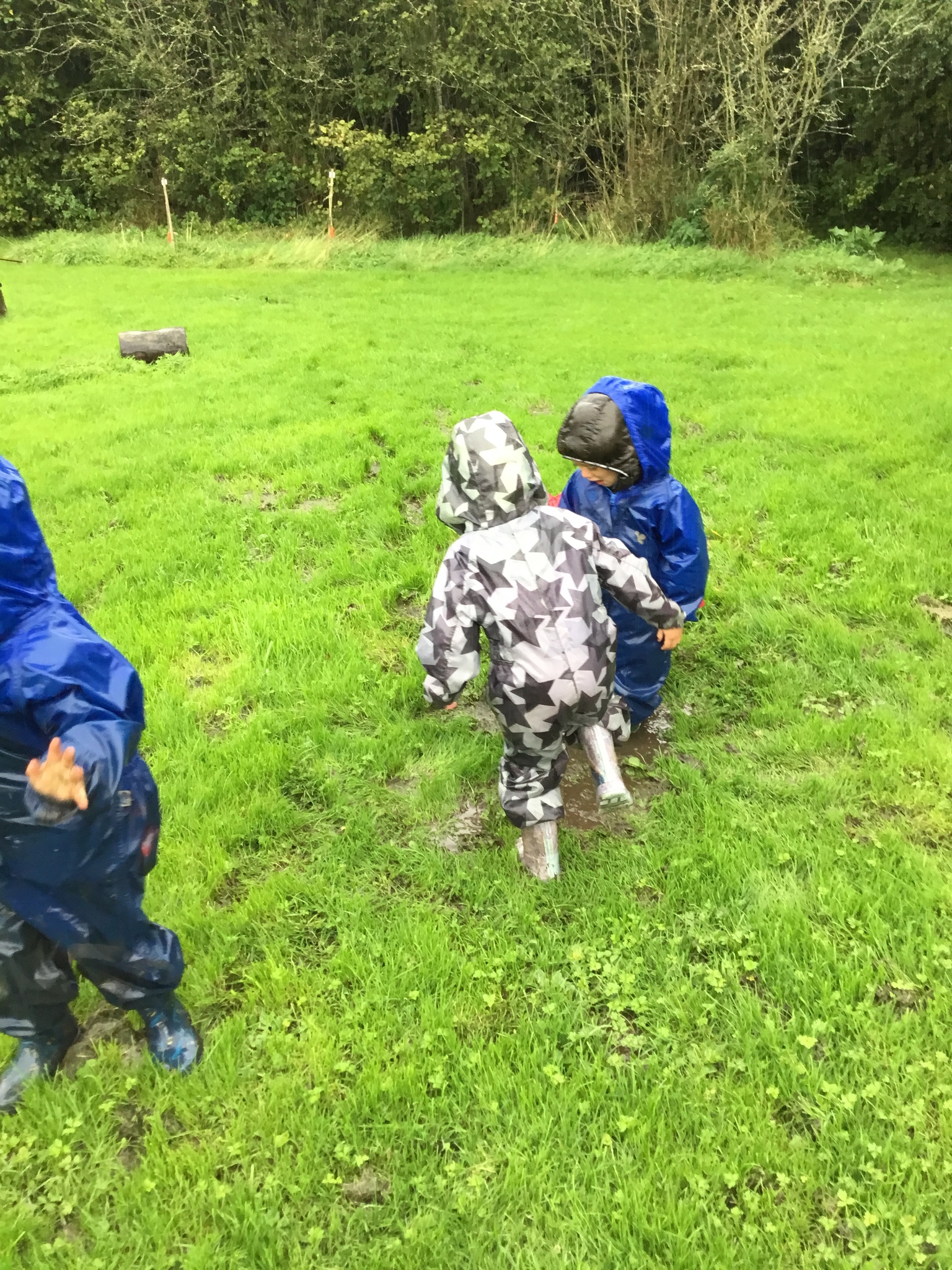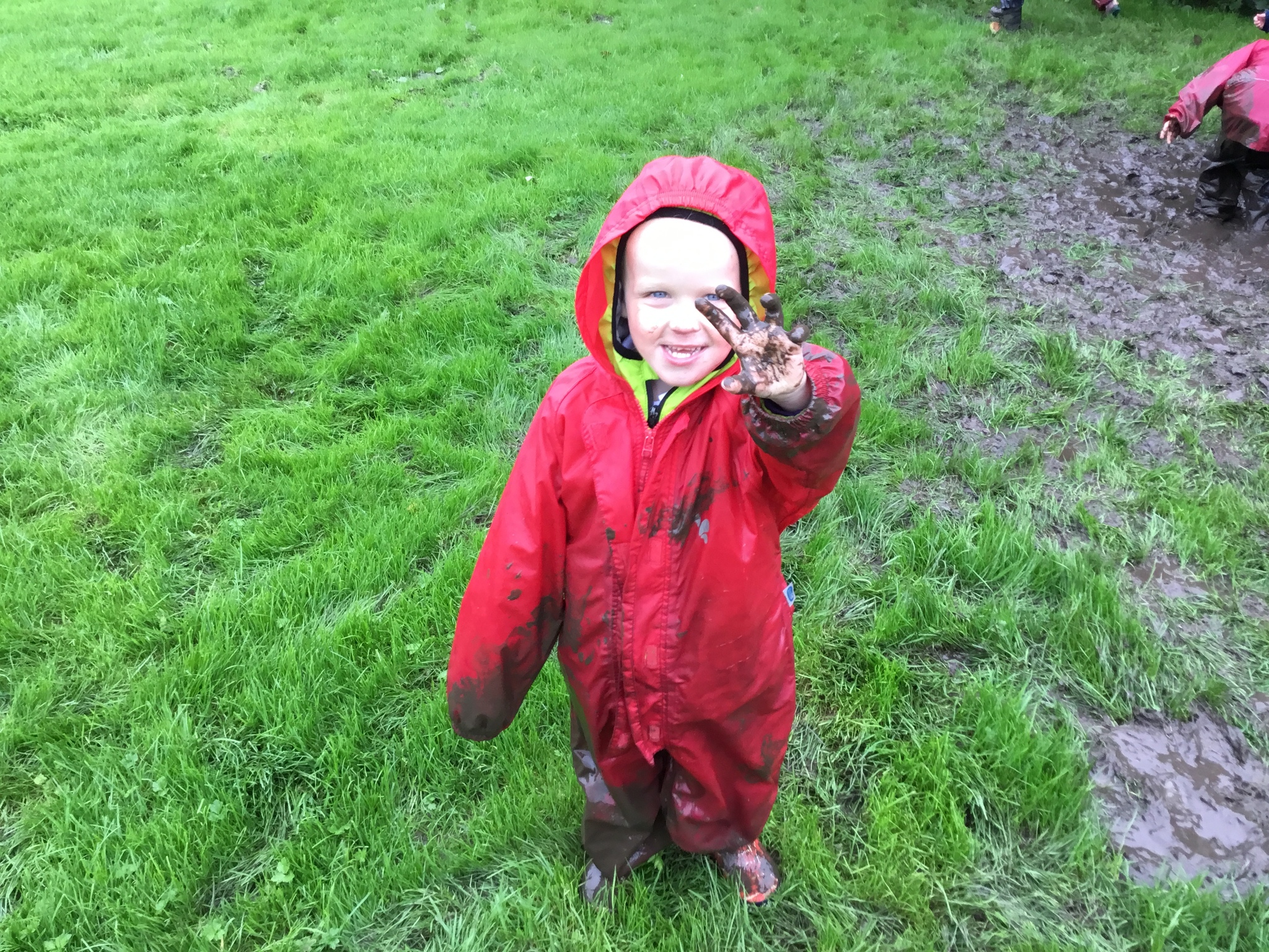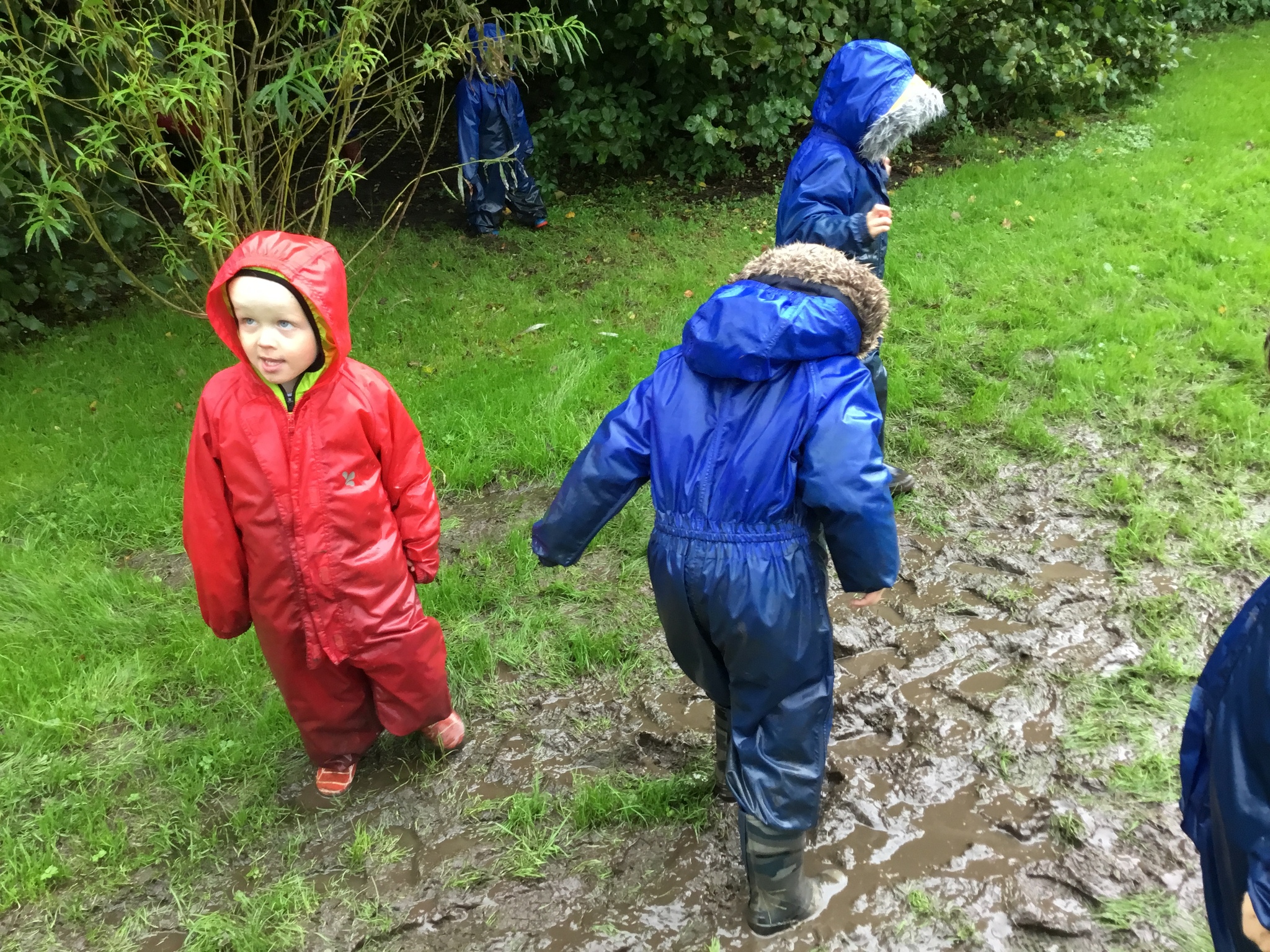 It takes more than a spot of torrential rain to dampen the enthusiasm of Reception when it comes to Forest School. This afternoon's rain only made the experience more exciting by creating lots and lots of lovely mud! We found slippy mud, squelchy mud, sticky mud and a nice deep puddle of splashy mud. Mudtastic!