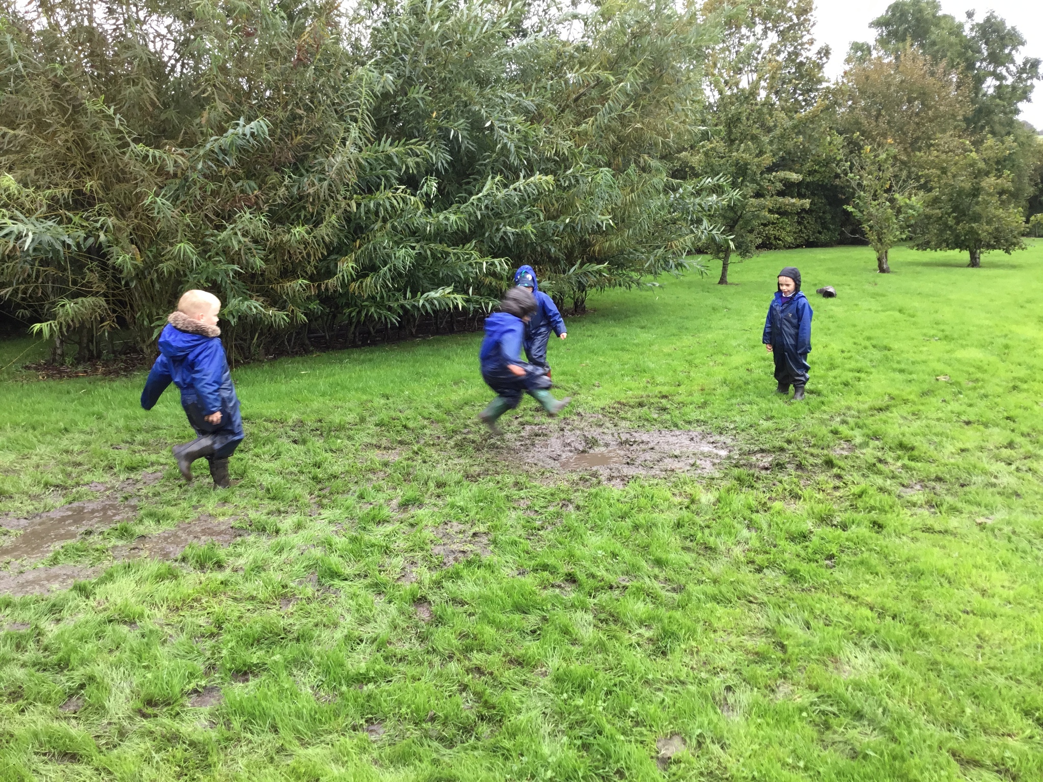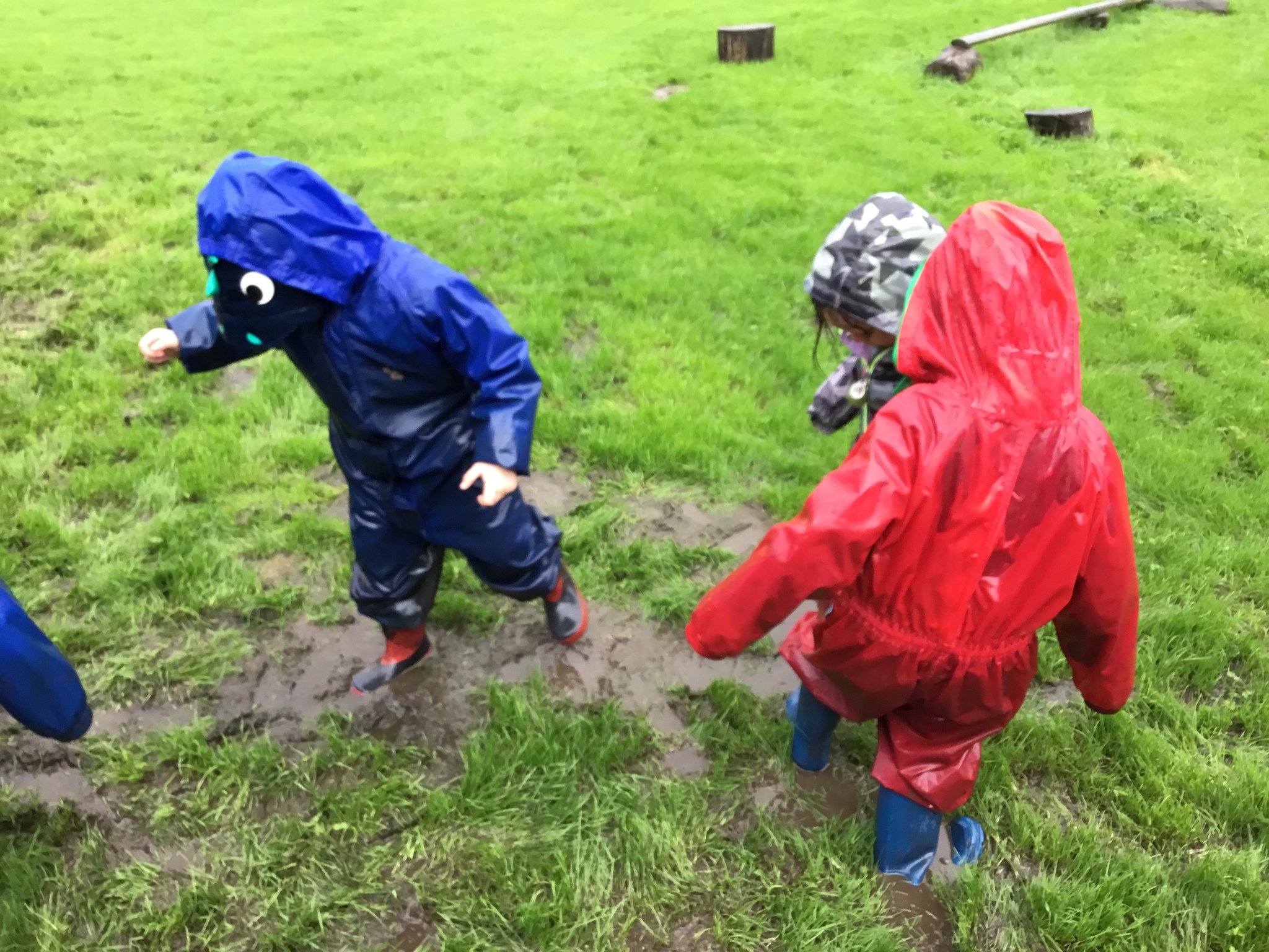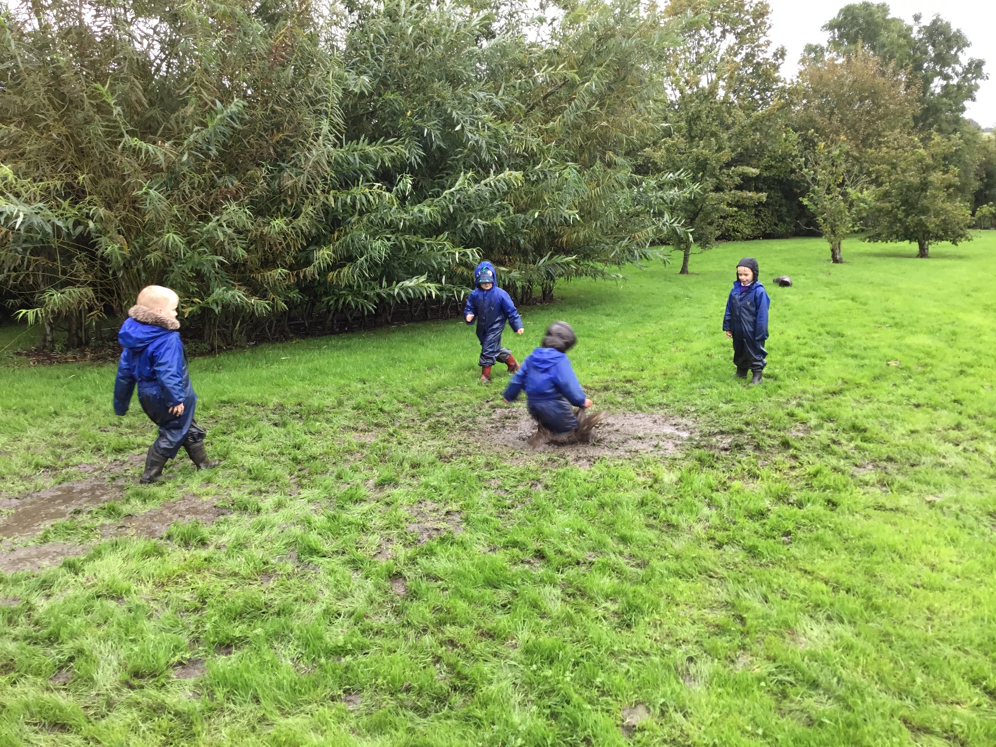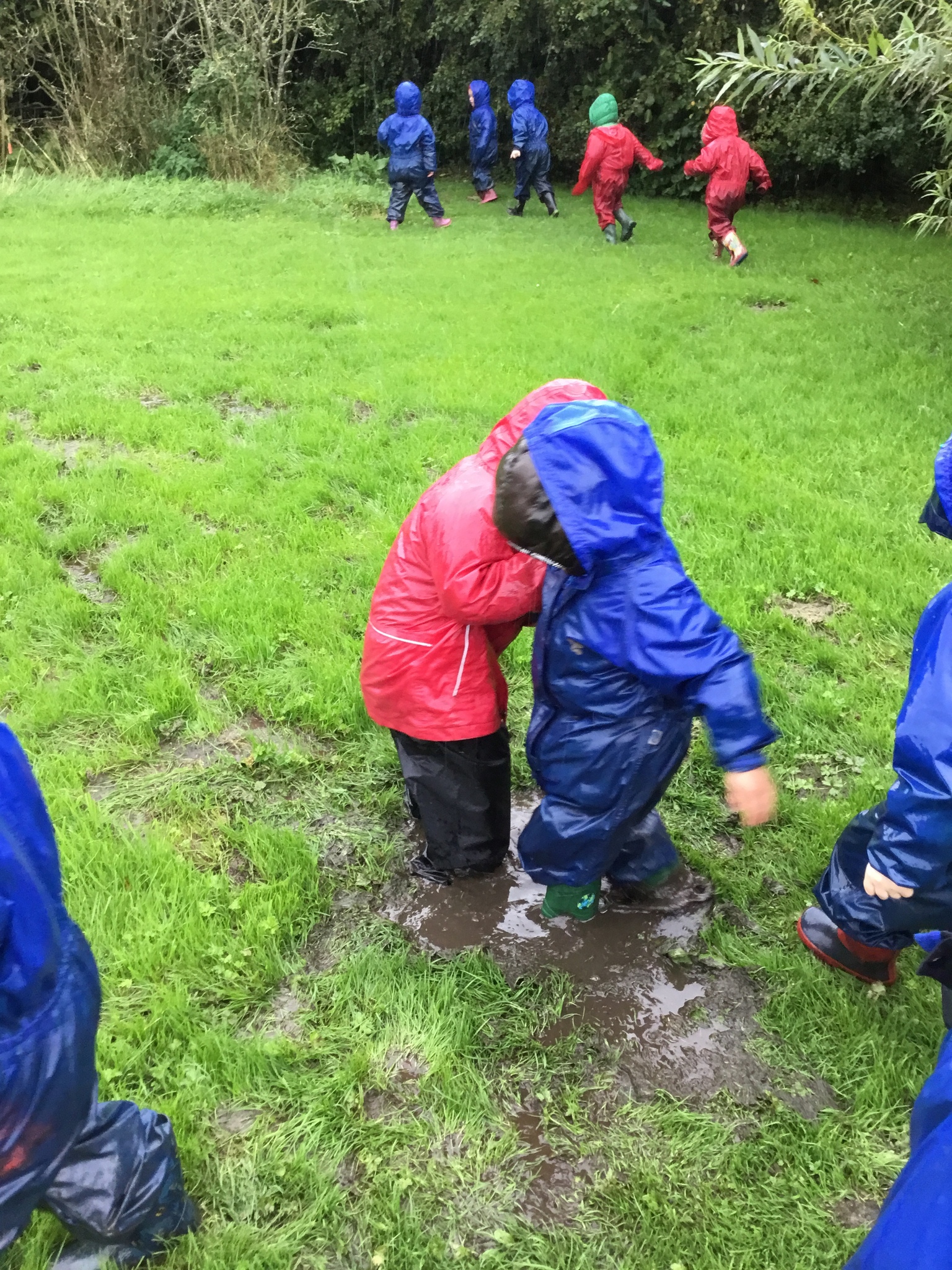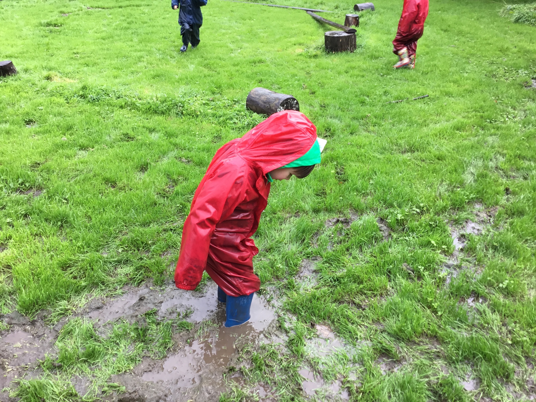 It takes more than a spot of torrential rain to dampen the enthusiasm of Reception when it comes to Forest School. This afternoon's rain only made the experience more exciting by creating lots and lots of lovely mud! We found slippy mud, squelchy mud, sticky mud and a nice deep puddle of splashy mud. Mudtastic!