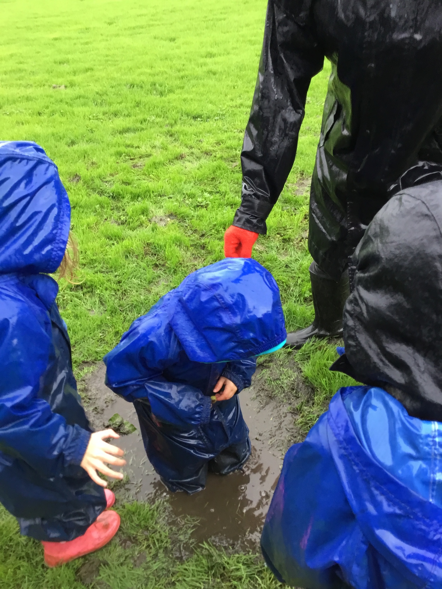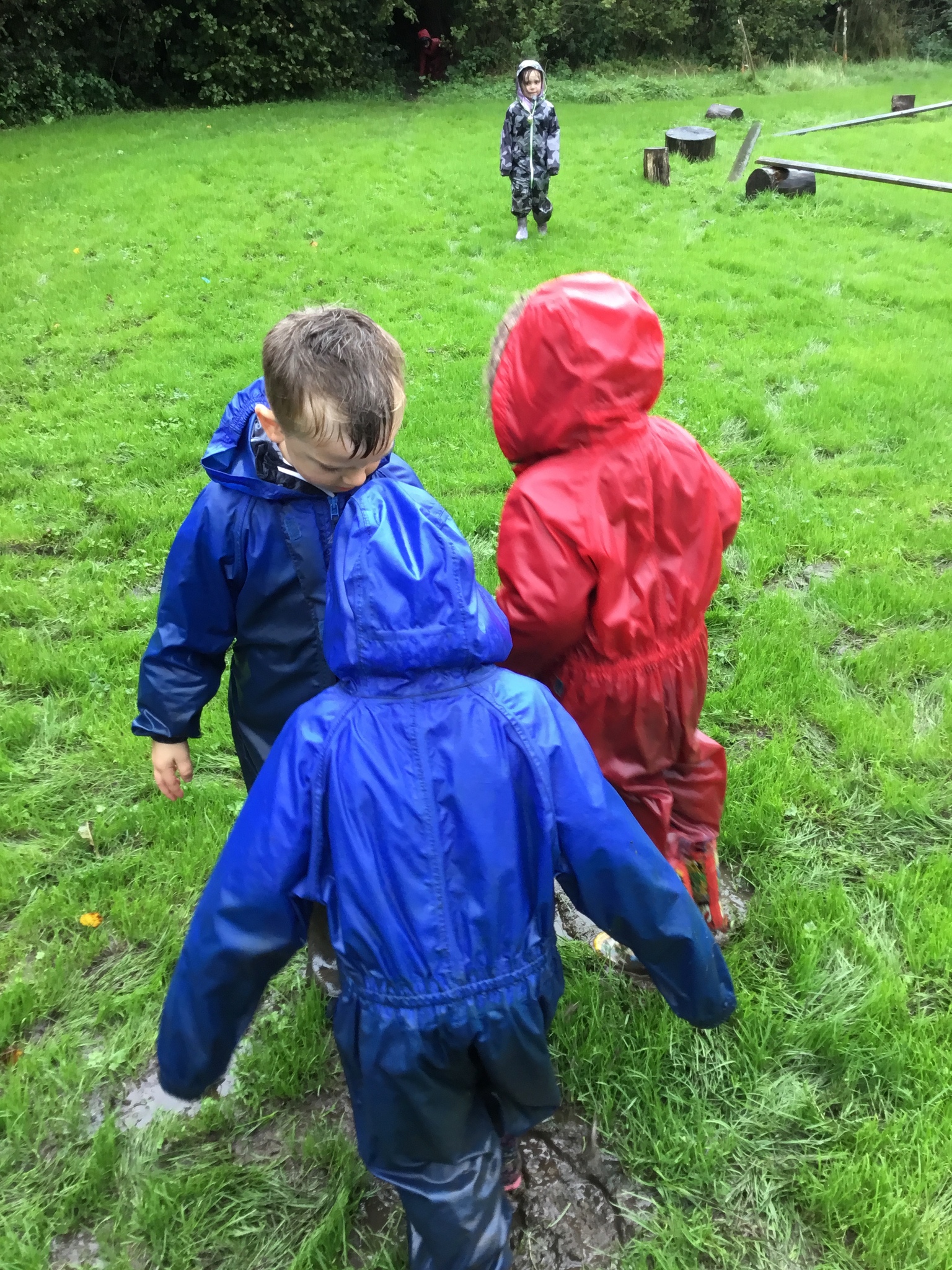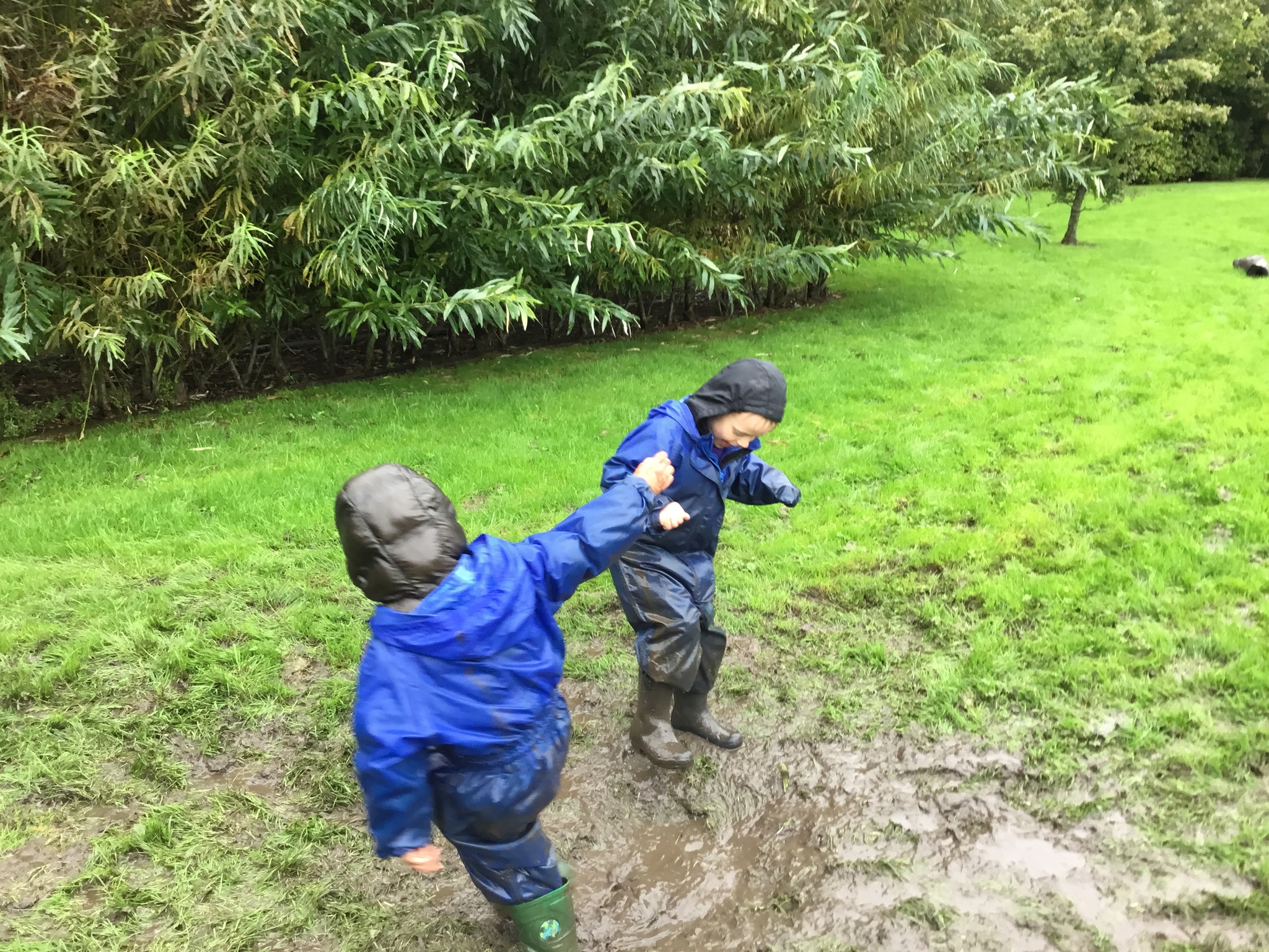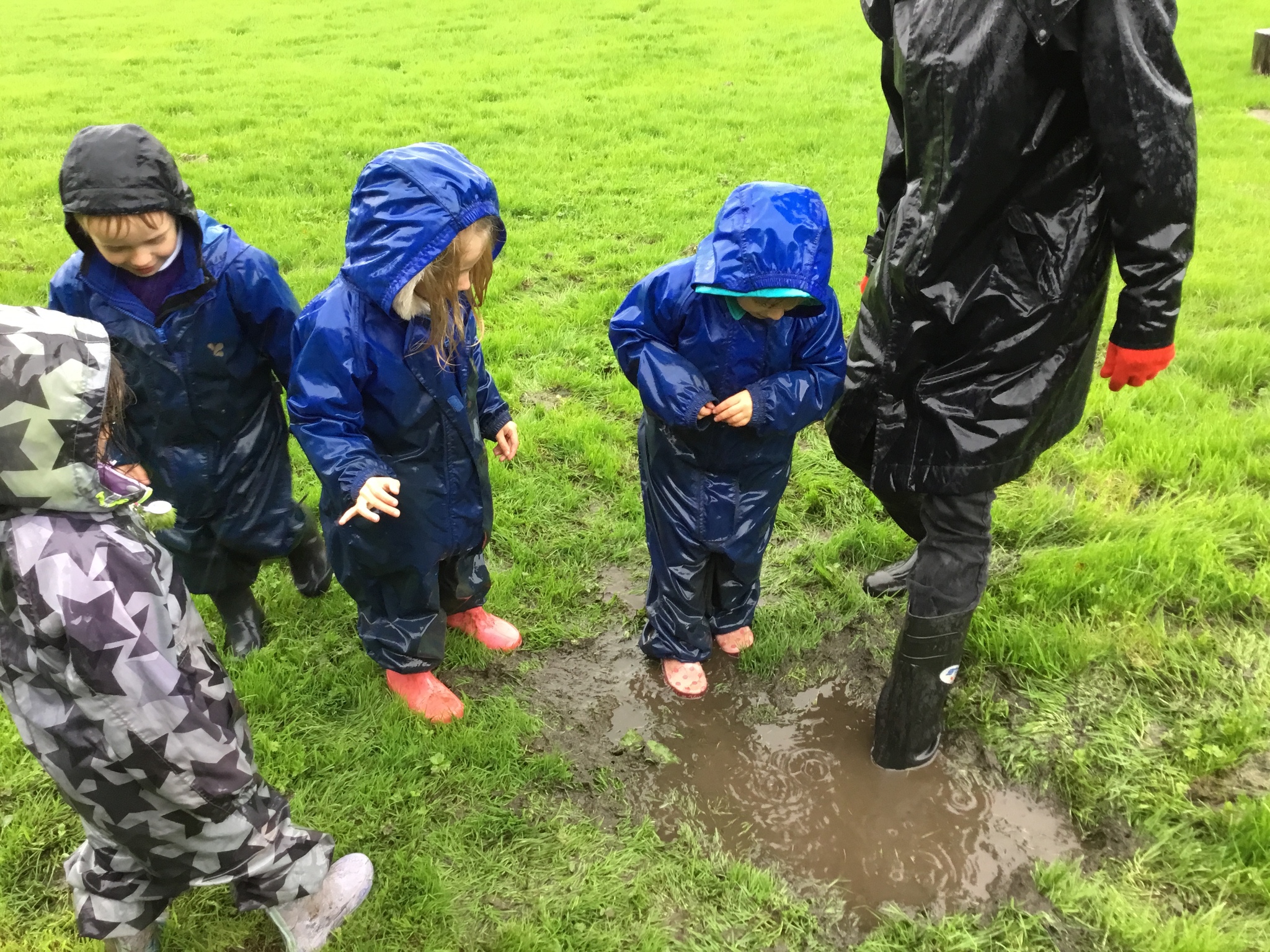 It takes more than a spot of torrential rain to dampen the enthusiasm of Reception when it comes to Forest School. This afternoon's rain only made the experience more exciting by creating lots and lots of lovely mud! We found slippy mud, squelchy mud, sticky mud and a nice deep puddle of splashy mud. Mudtastic!