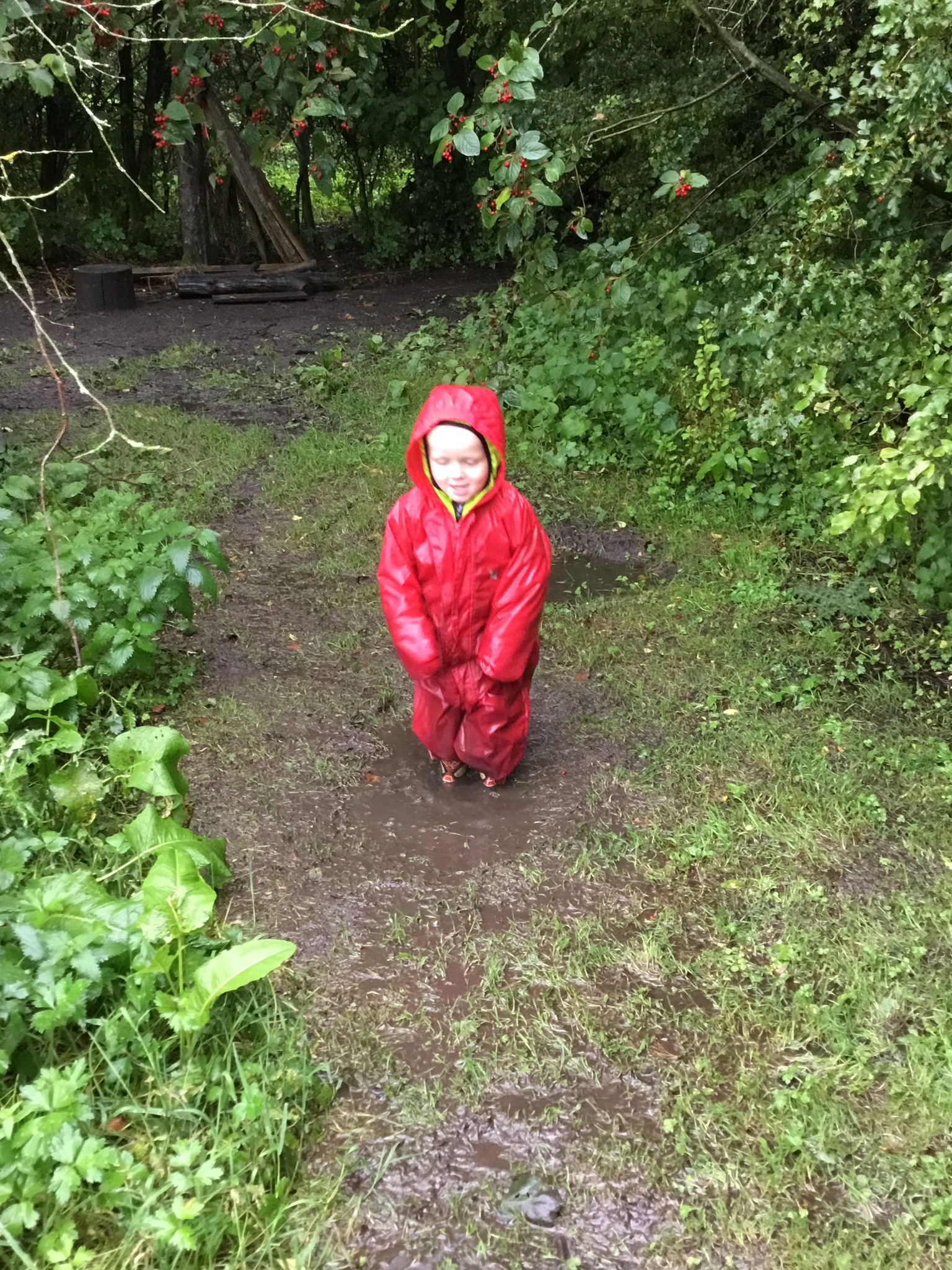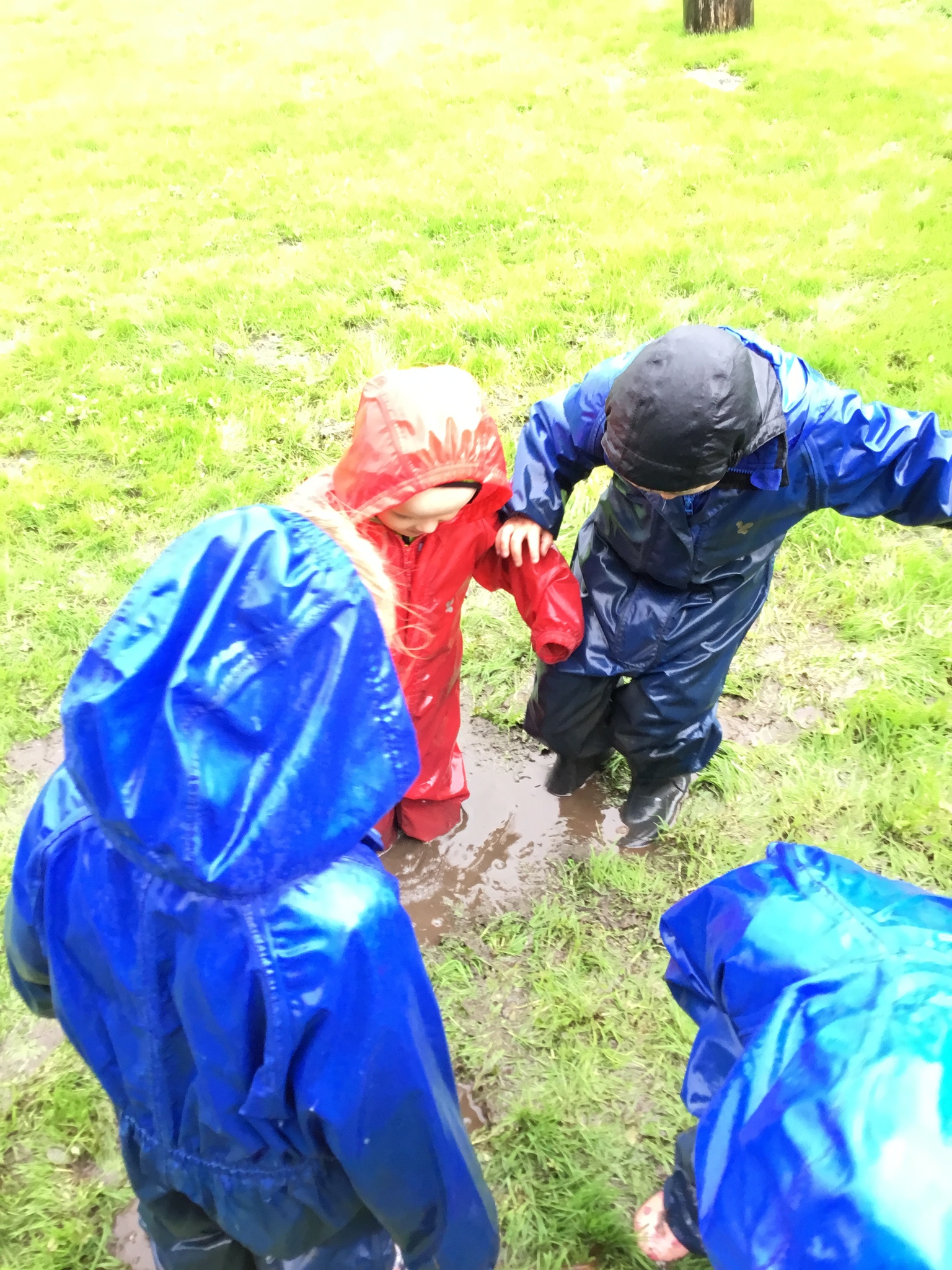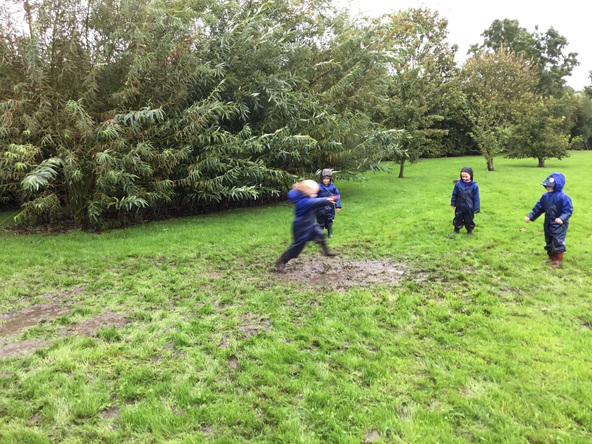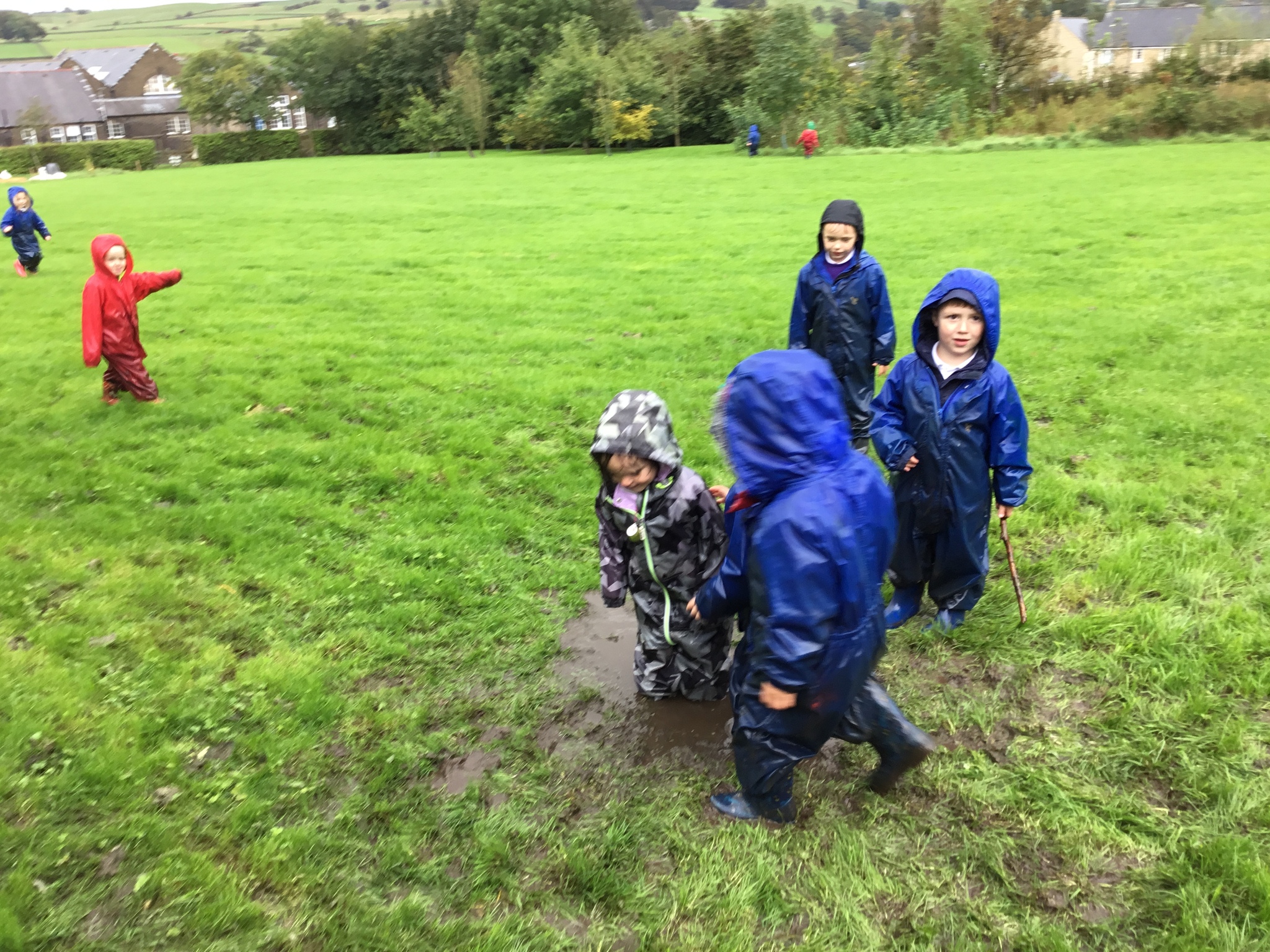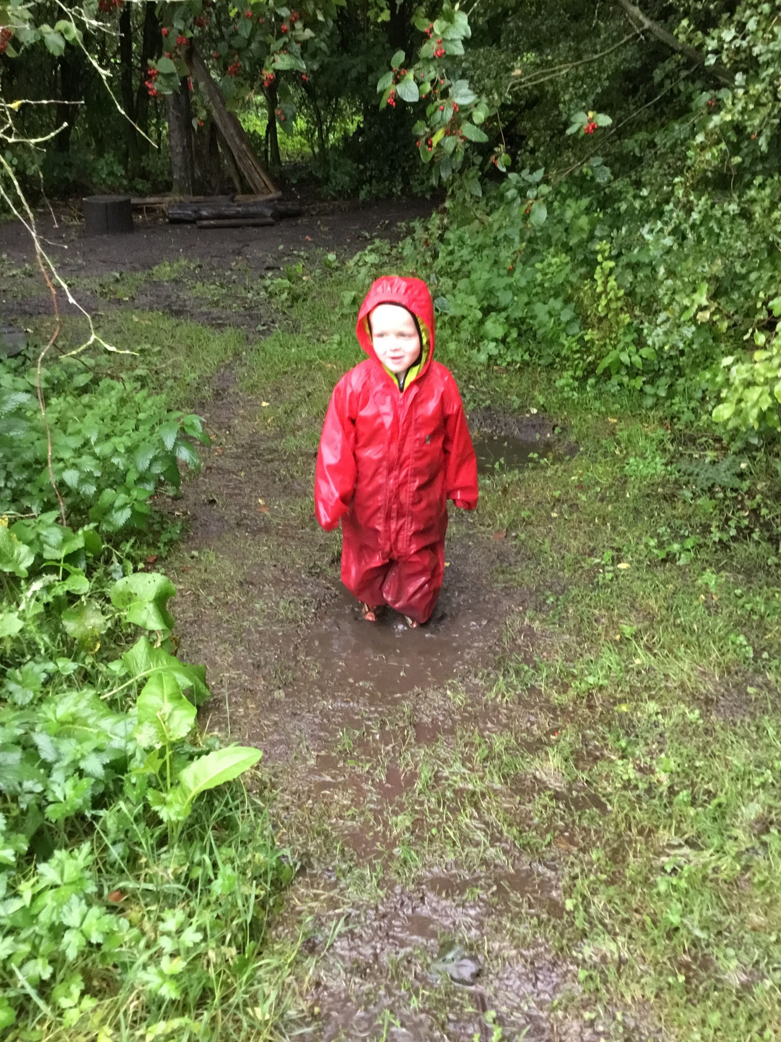 It takes more than a spot of torrential rain to dampen the enthusiasm of Reception when it comes to Forest School. This afternoon's rain only made the experience more exciting by creating lots and lots of lovely mud! We found slippy mud, squelchy mud, sticky mud and a nice deep puddle of splashy mud. Mudtastic!