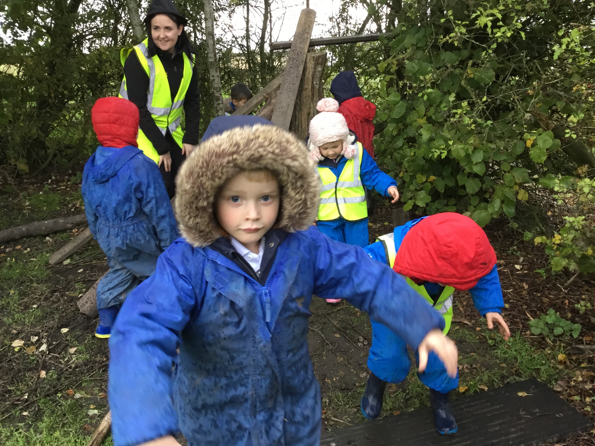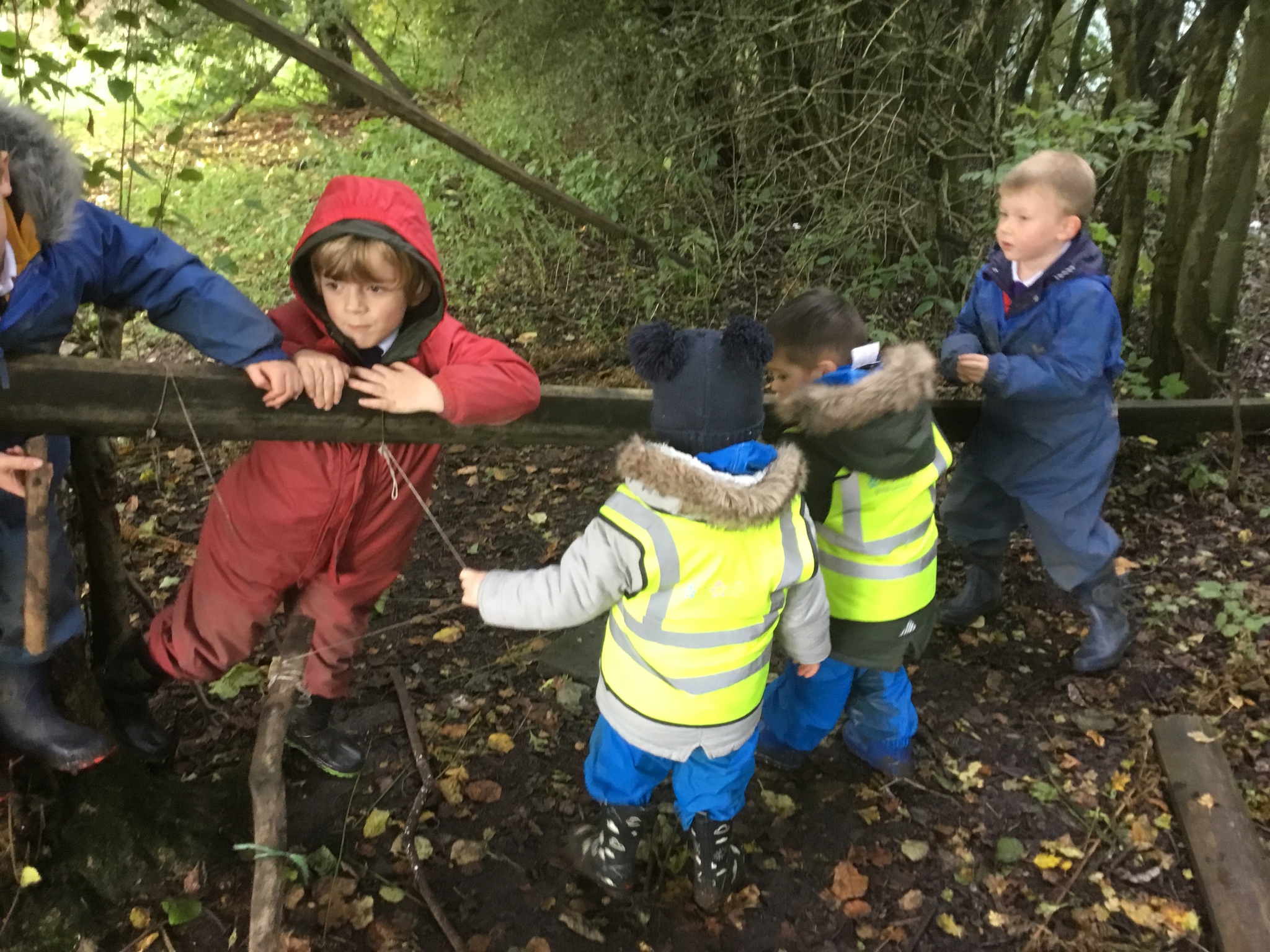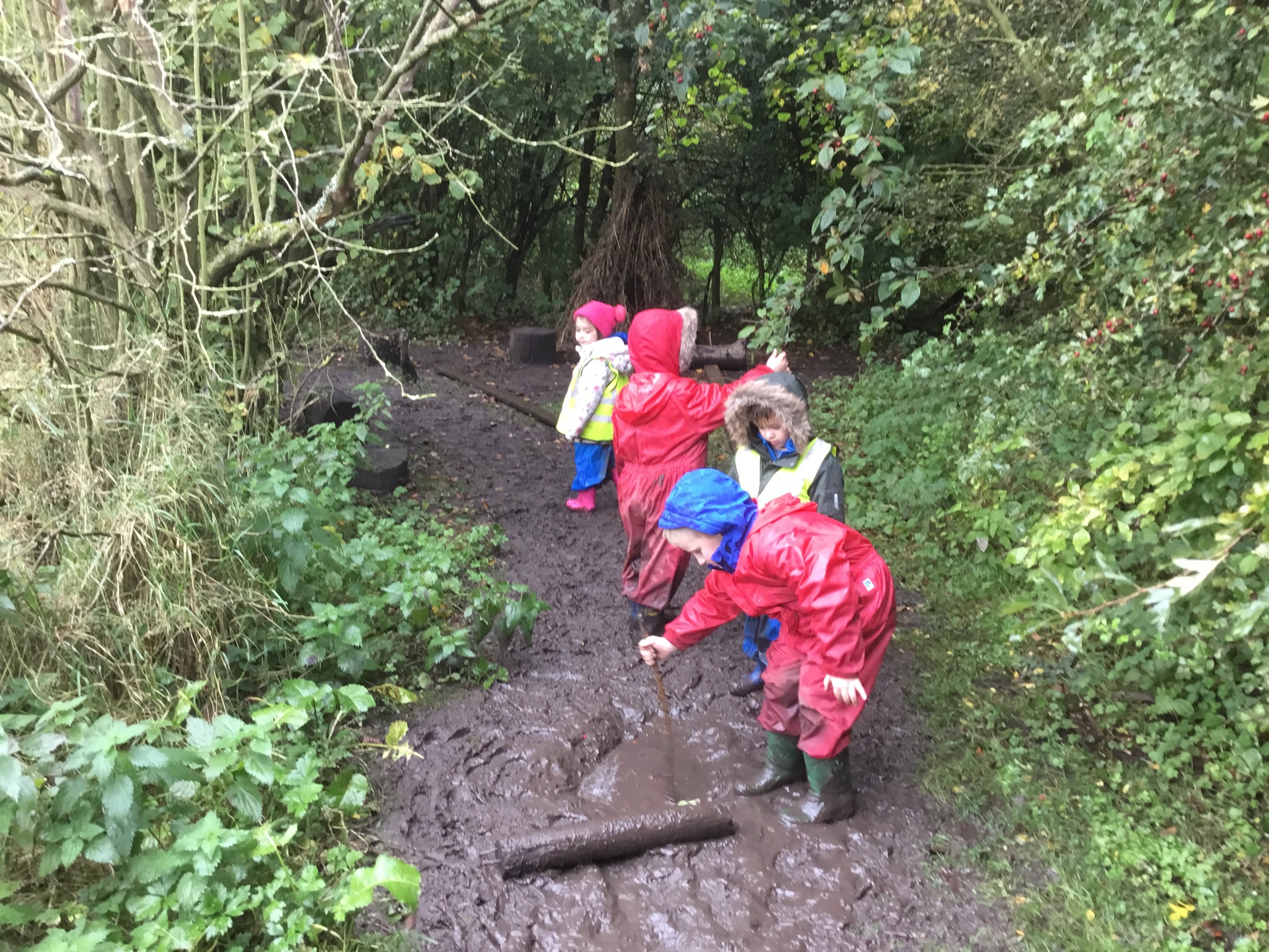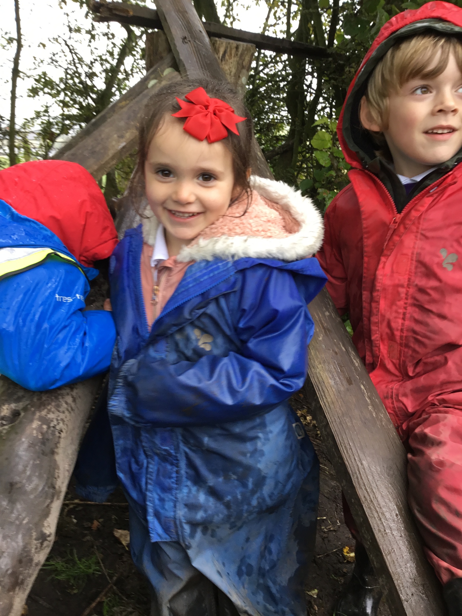 Reception had a marvelously muddy time at Forest School this week with our friends from Little Buttercups nursery. We showed them how we build bridges and slides, make fires to toast leaf marshmallows and make exploding potions. When the rain stopped we even saw a beautiful rainbow!