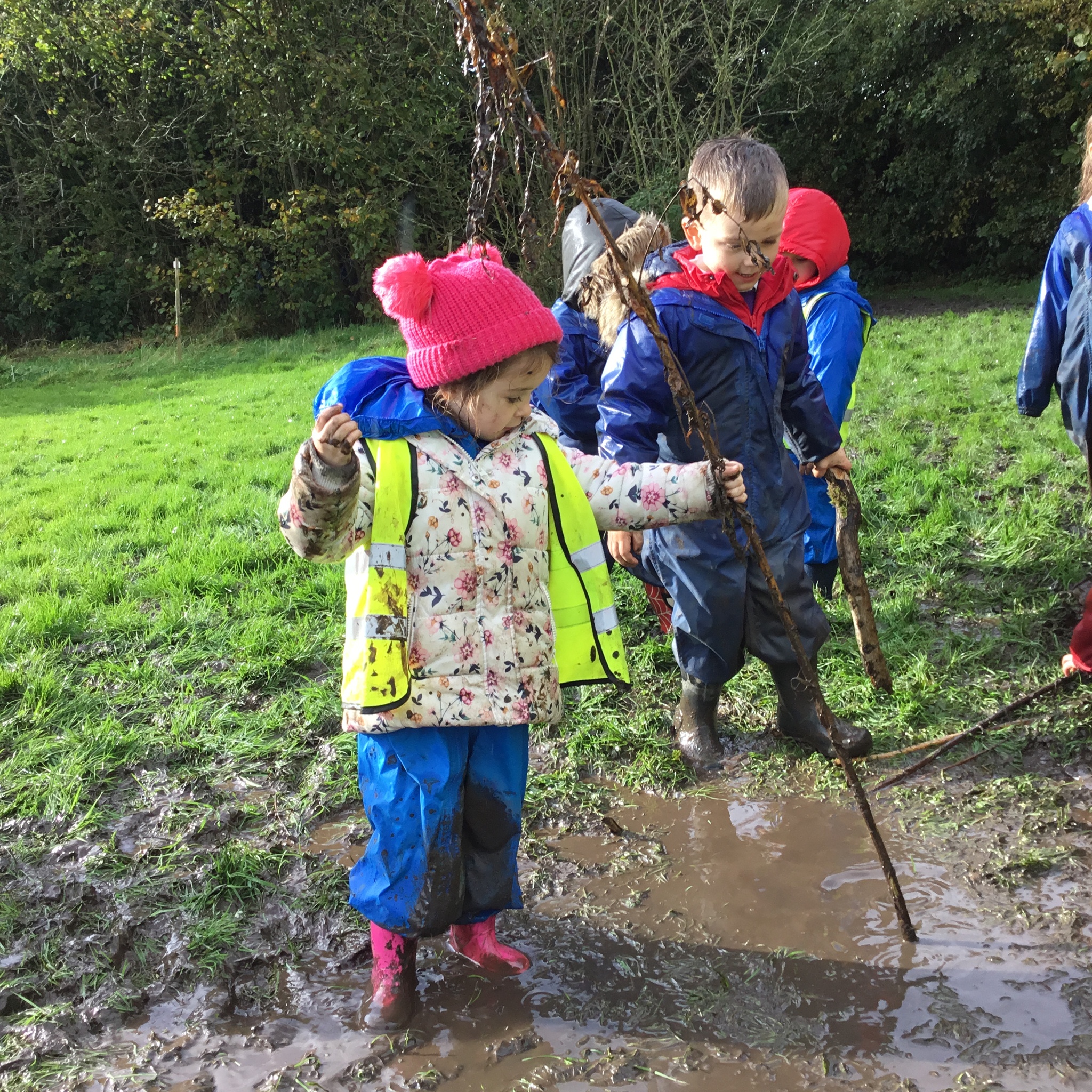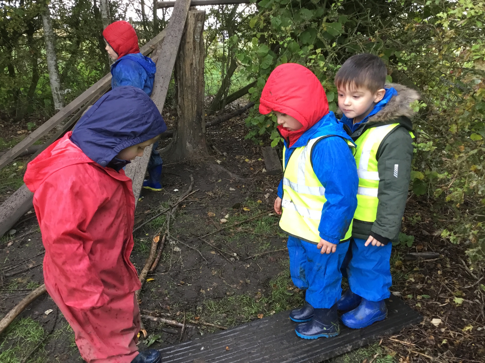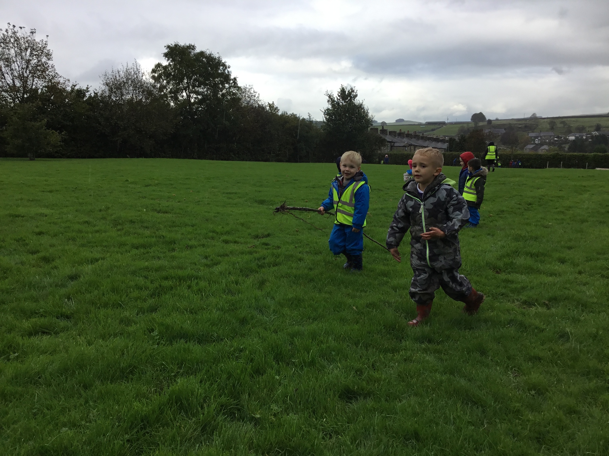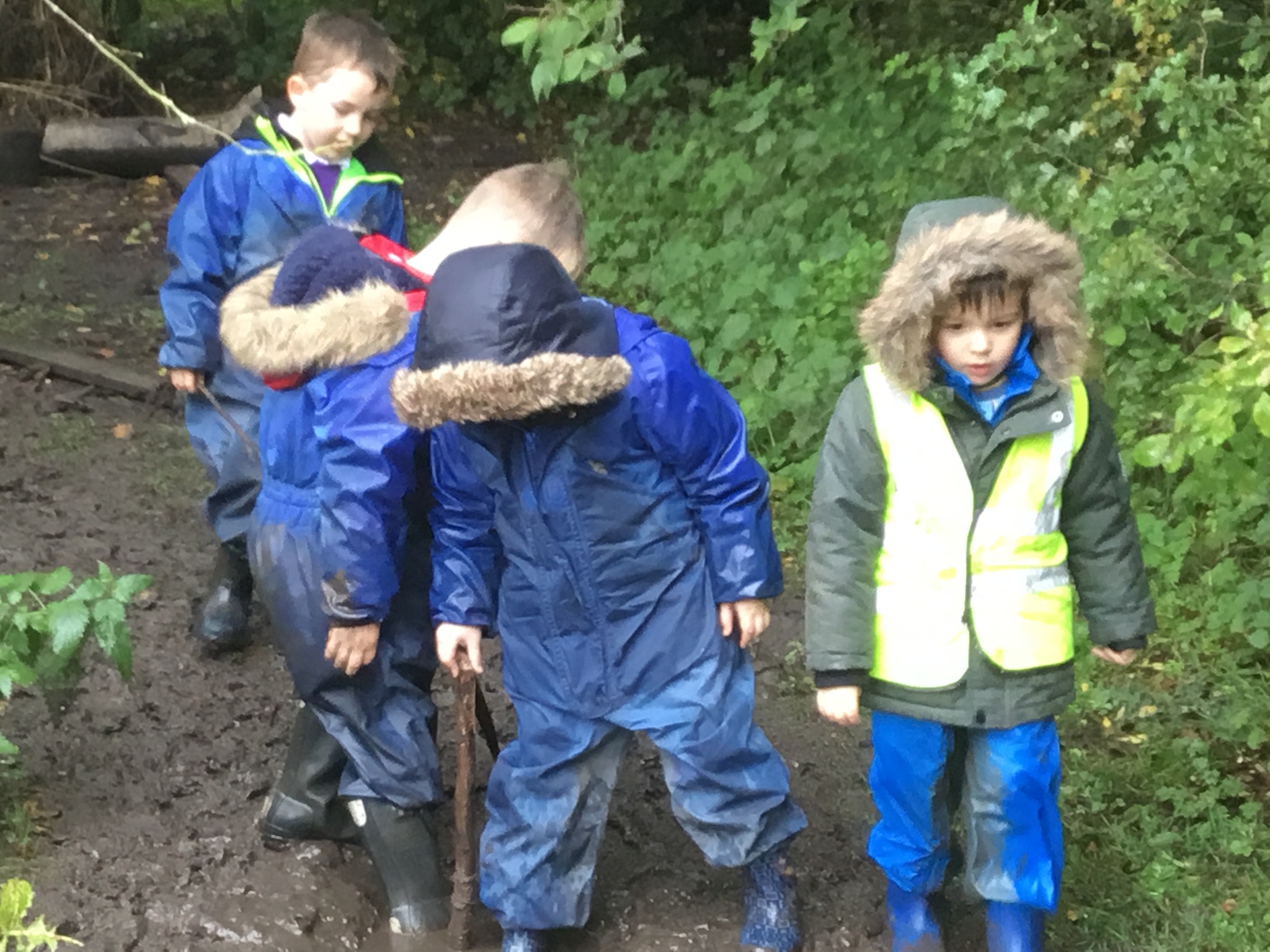 Reception had a marvelously muddy time at Forest School this week with our friends from Little Buttercups nursery. We showed them how we build bridges and slides, make fires to toast leaf marshmallows and make exploding potions. When the rain stopped we even saw a beautiful rainbow!