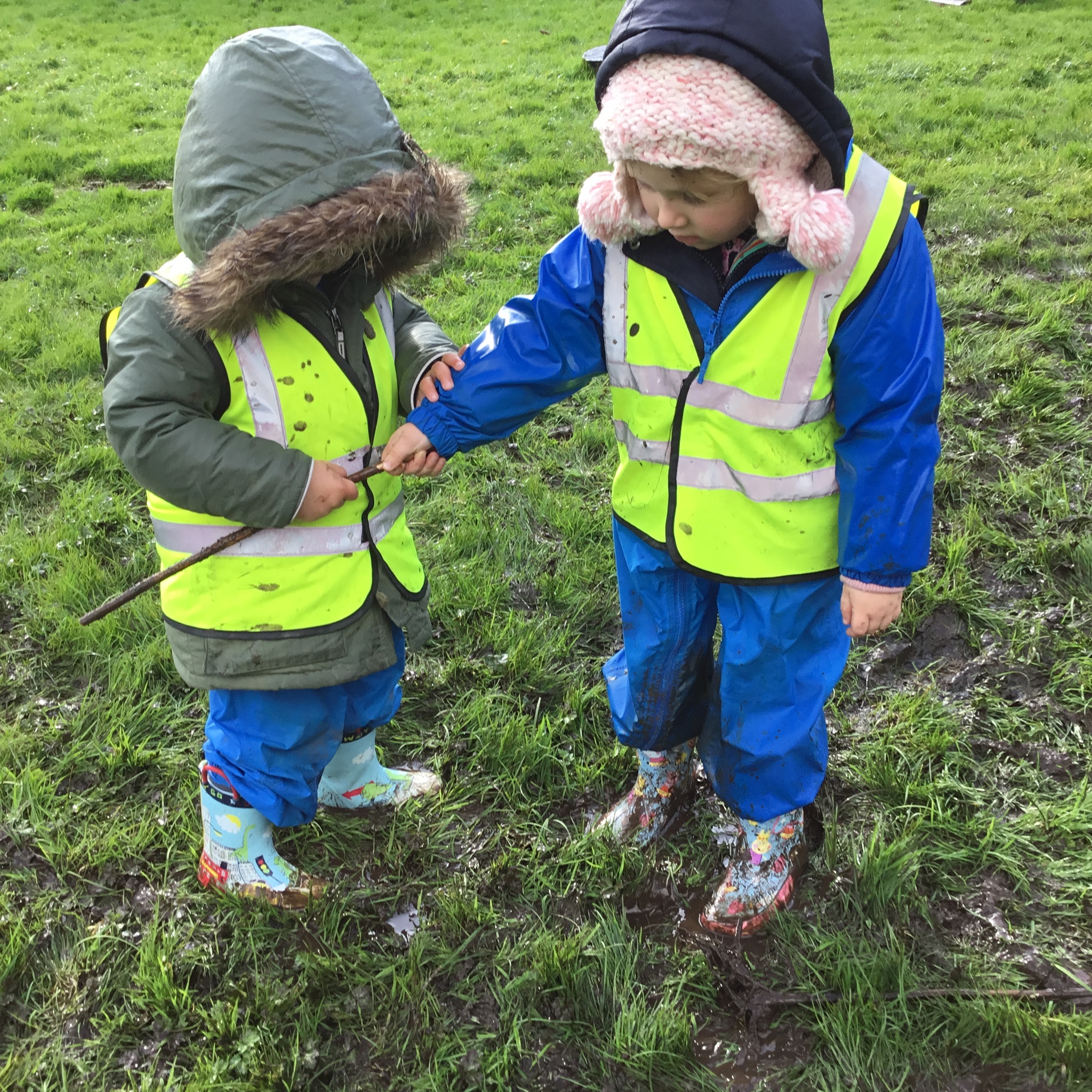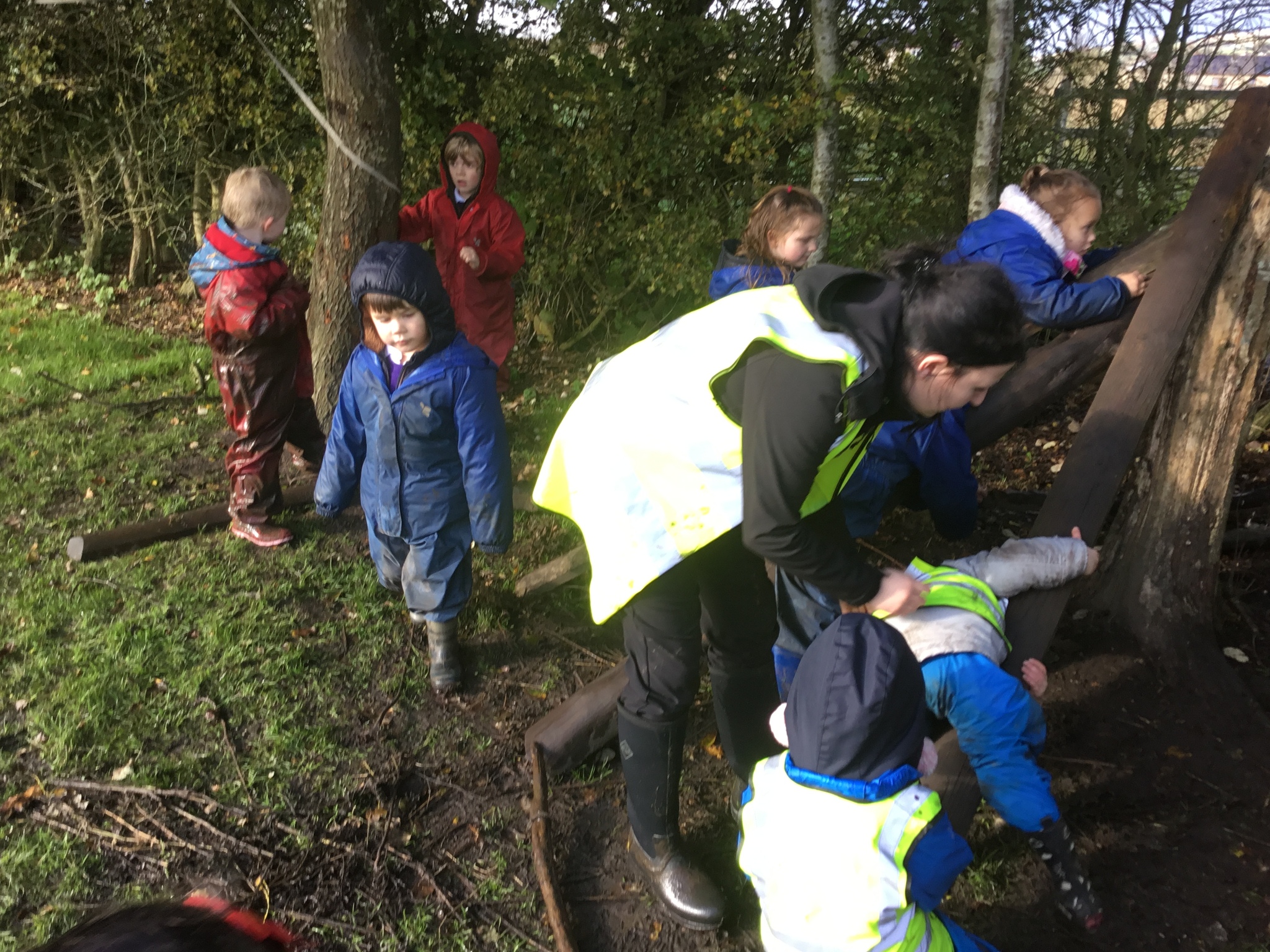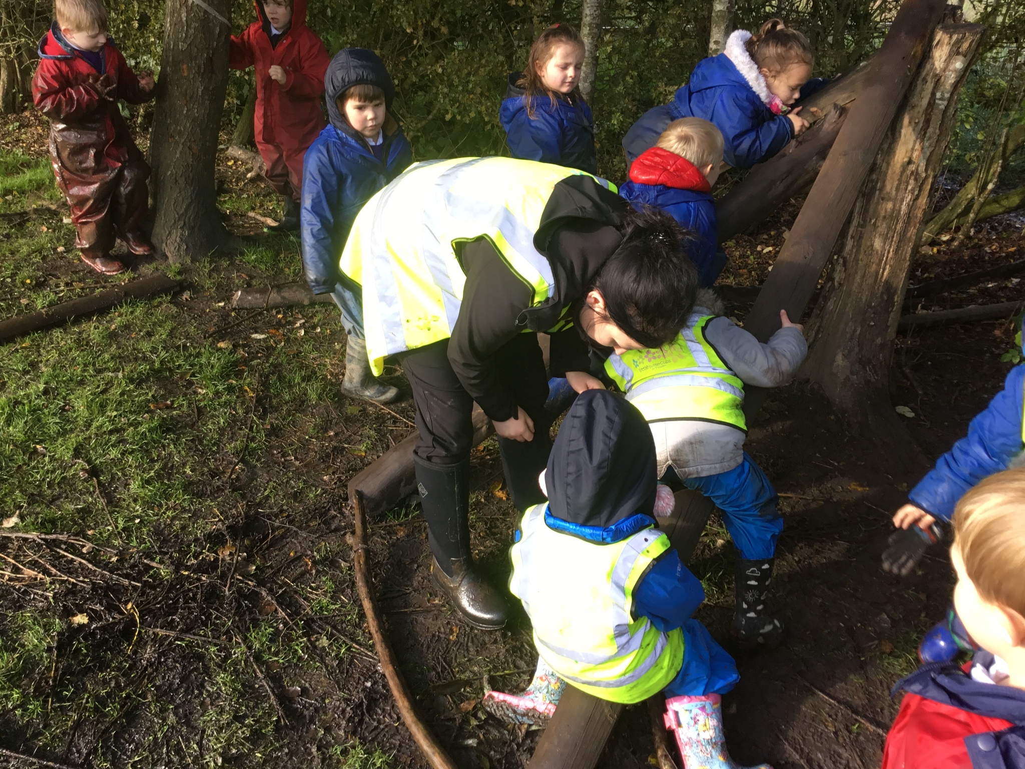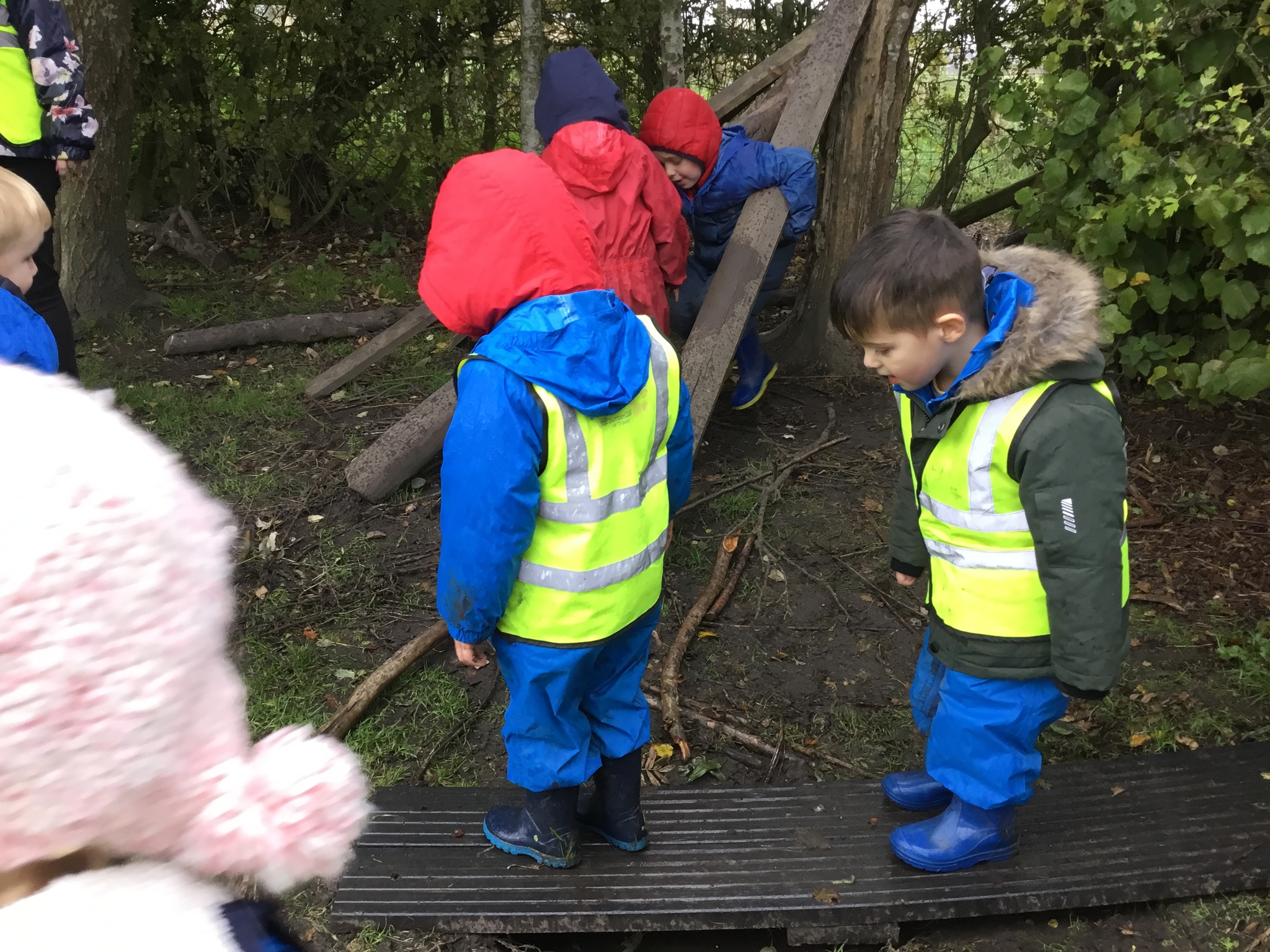 Reception had a marvelously muddy time at Forest School this week with our friends from Little Buttercups nursery. We showed them how we build bridges and slides, make fires to toast leaf marshmallows and make exploding potions. When the rain stopped we even saw a beautiful rainbow!