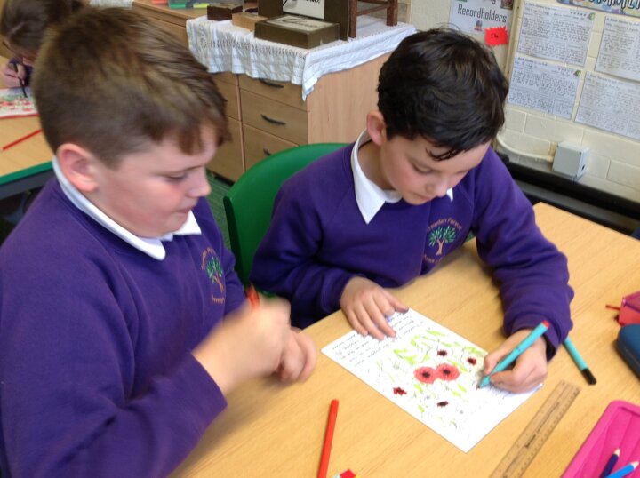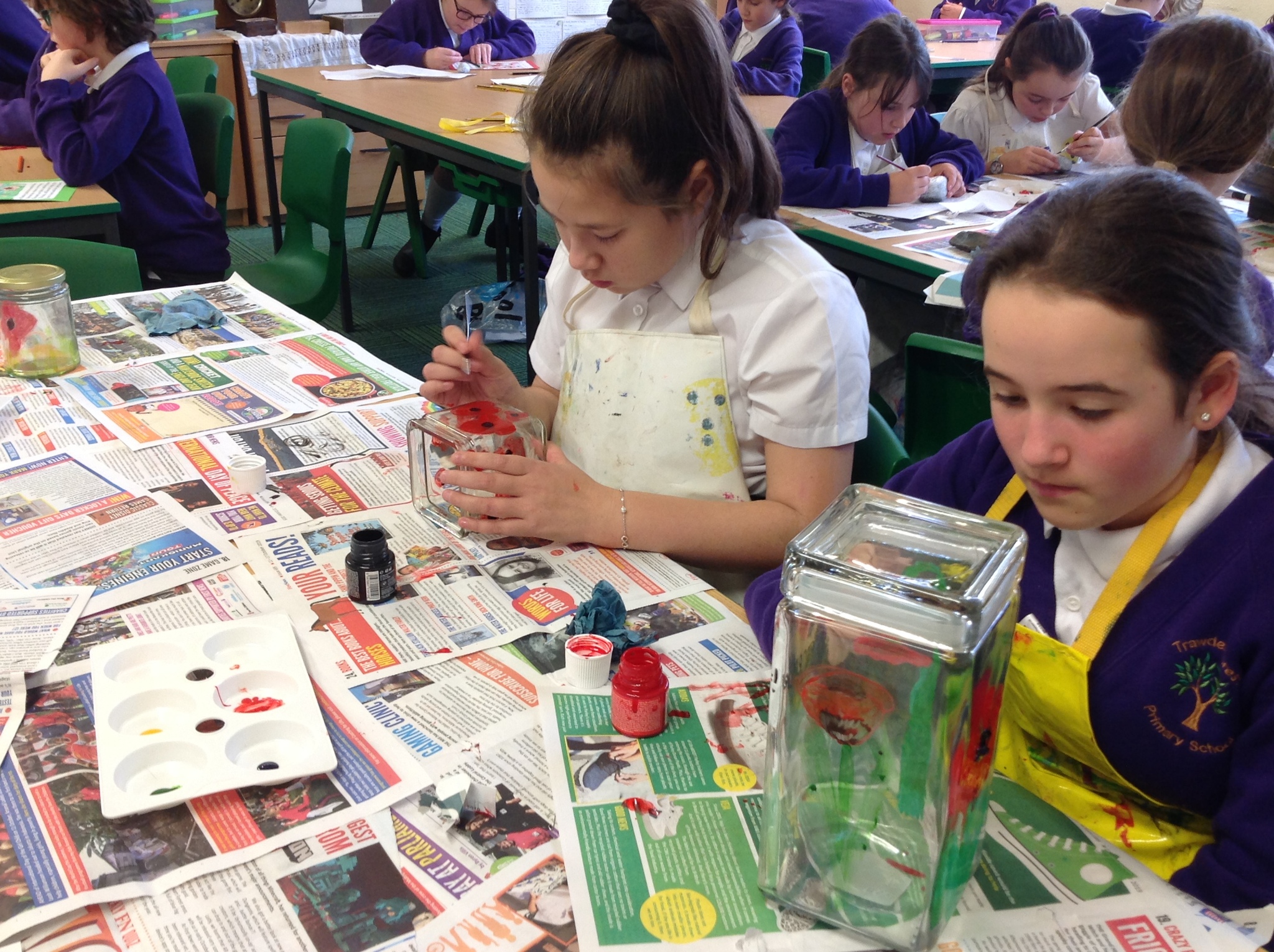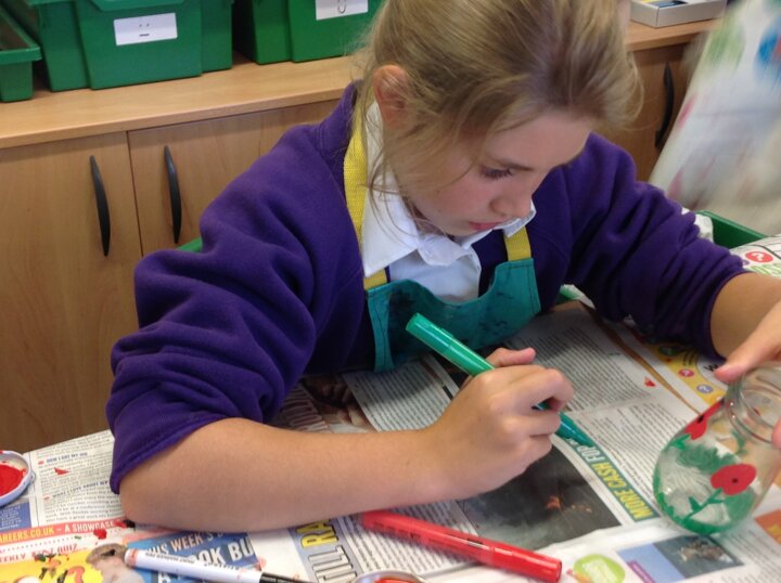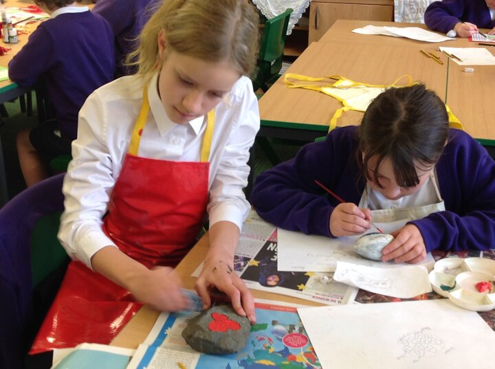 As part of our Topic on World War 2- 'We'll Meet Again', children in Year 6 have been learning about the charities which help servicemen and women returning from war and areas of conflict. The children in Year 6 decided to raise funds for the charity Help for heroes. The children planned, designed, made and decorated many items including: calendars, bookmarks, glass-painted jars and painted pebble paper weights. The children will be selling these items after their class assembly on Remembrance on Friday 8th November and again at the afternoon tea for parents on the same day at 2:15-3:45pm. All parents, grandparents and friends are most welcome.