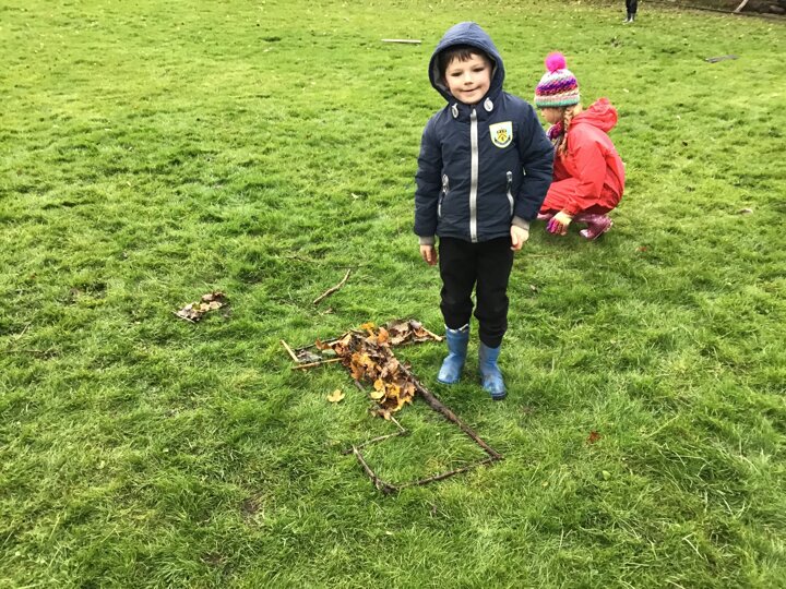 In Year 2 today, we went onto the field for our Forest School lesson and made our initials in bubble letters out of sticks and then found leaves to fill them in. If we had a tricky letter, we could use our surname initial or help others. One child said, "I enjoyed making the letters because I got to put leave in them." Another child said, "I love Forest School, it's the best thing ever! I like it because we can do fun things!"