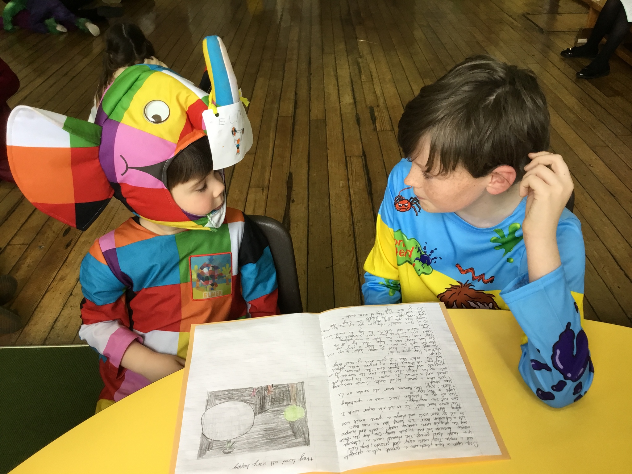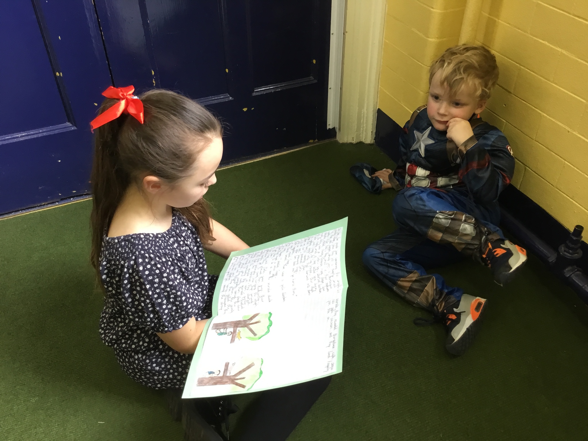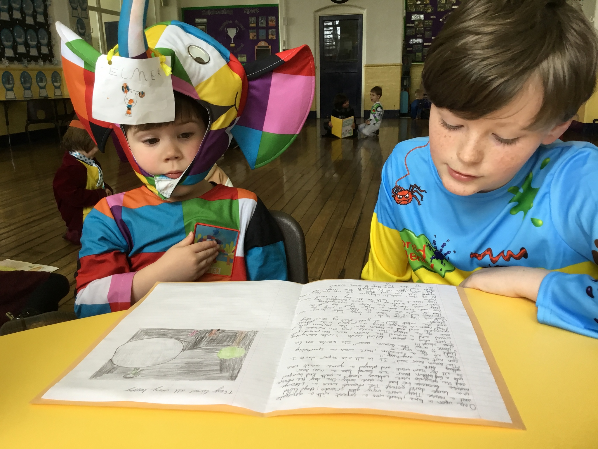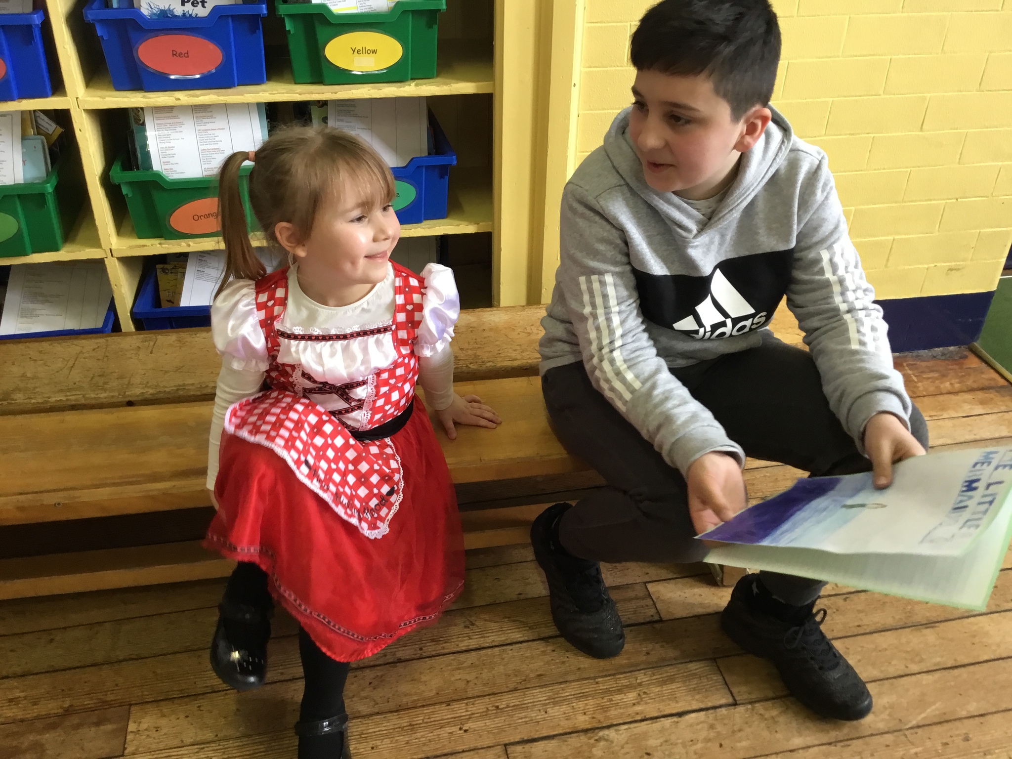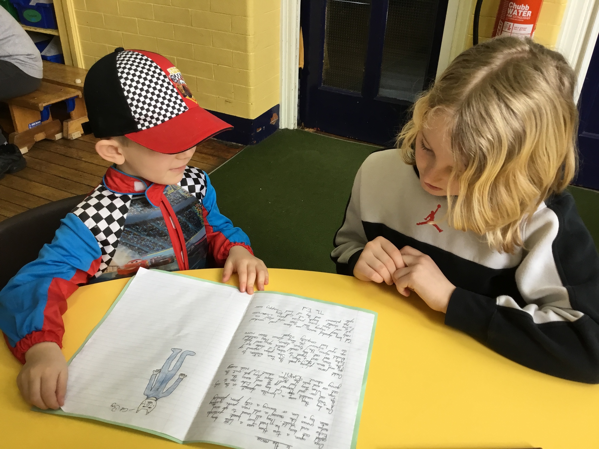 Our Year 6 buddies asked us all about they types of things we like and dislike and the types of books we enjoy. Then they wrote stories especially for us and came to share them with us.