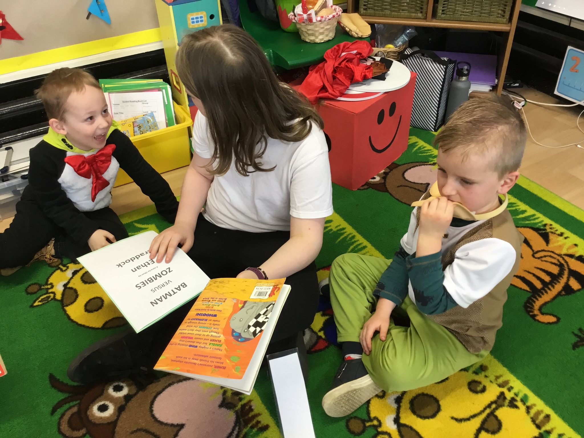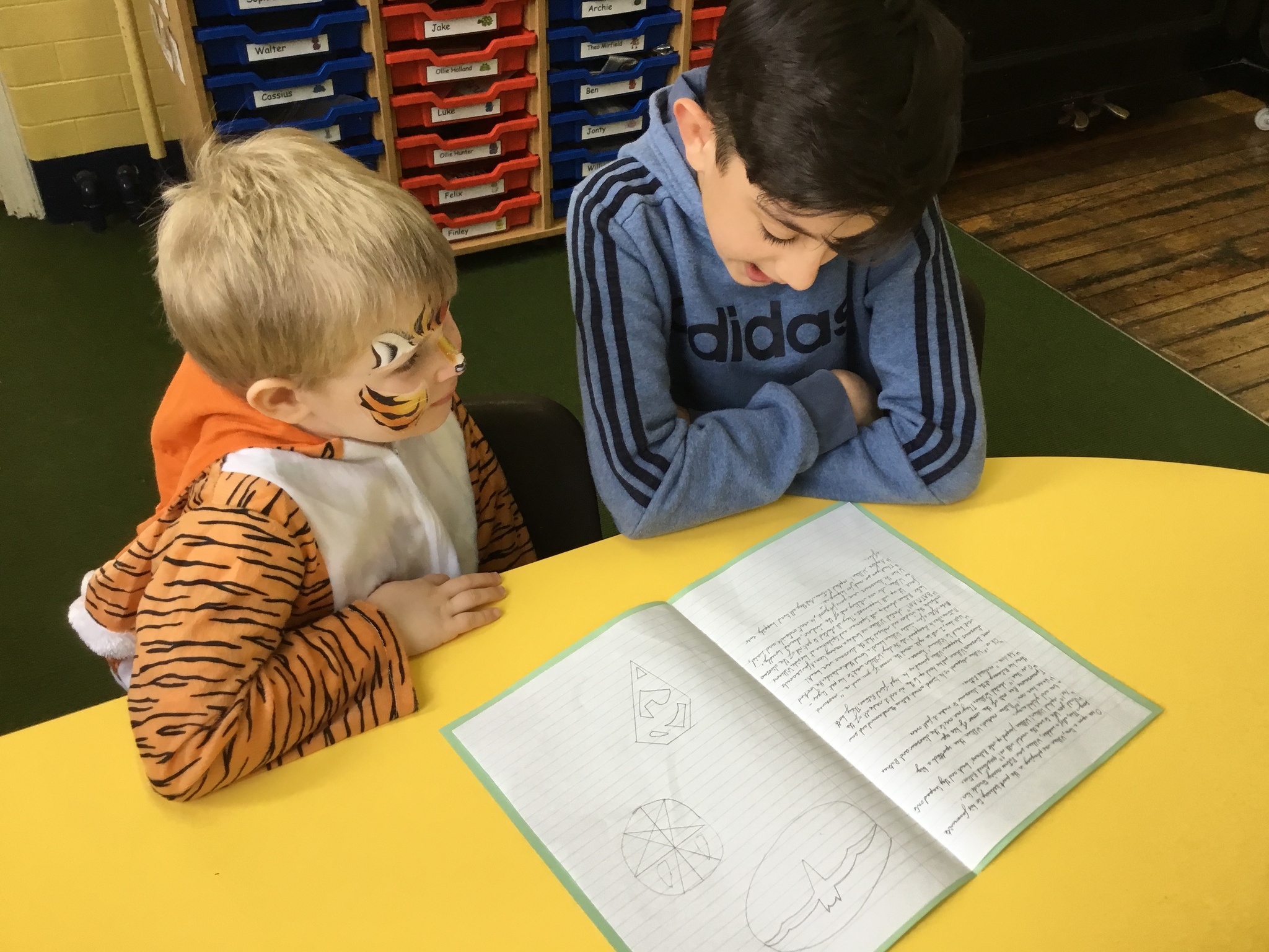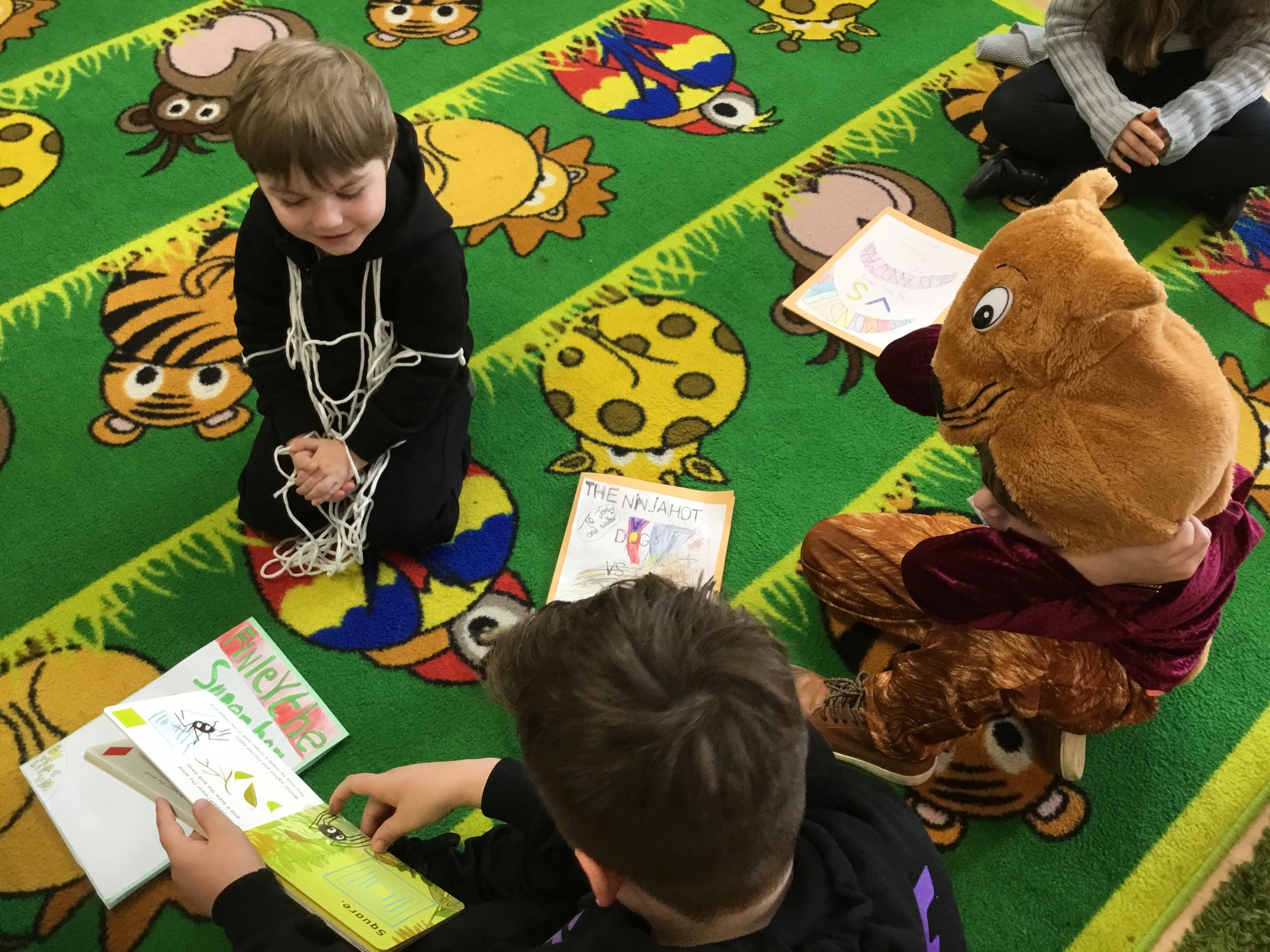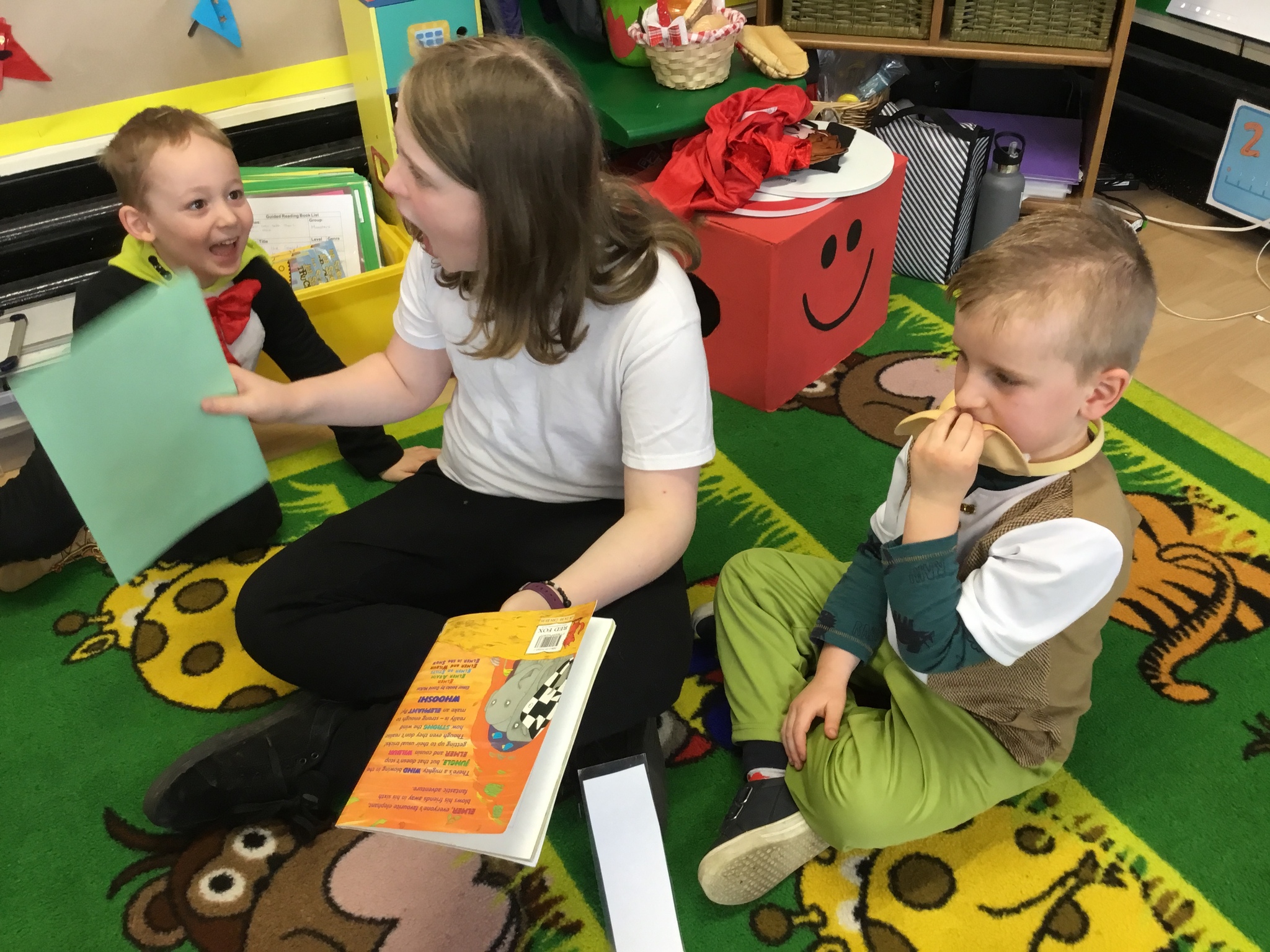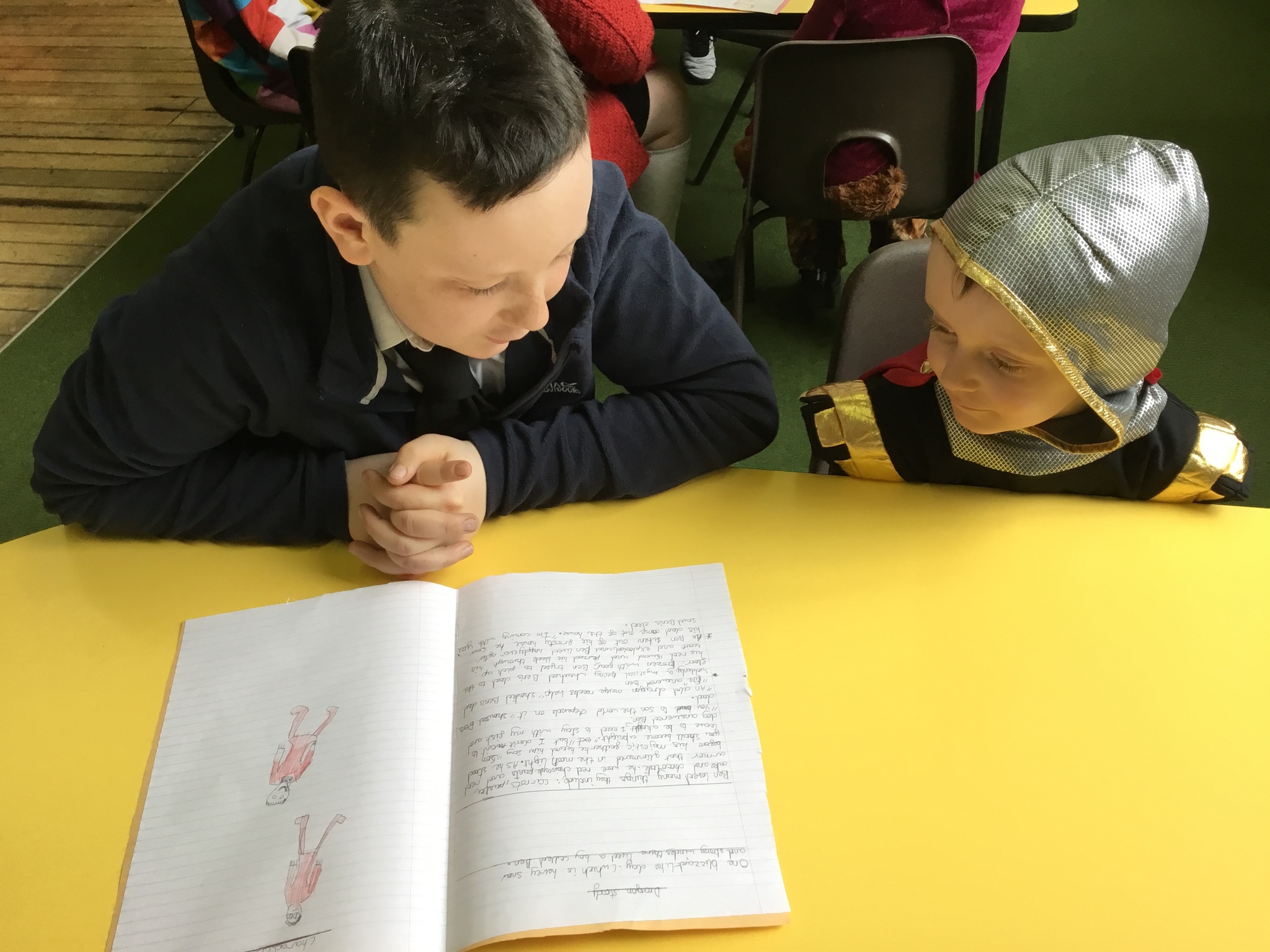 Our Year 6 buddies asked us all about they types of things we like and dislike and the types of books we enjoy. Then they wrote stories especially for us and came to share them with us.