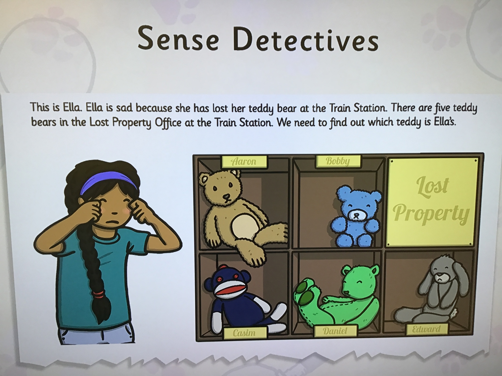 Today, Year 2 became Sense Detectives to help Ella find her missing teddy bear in the train station lost and found box. They had to use all their senses to figure out which bear belonged to Ella.