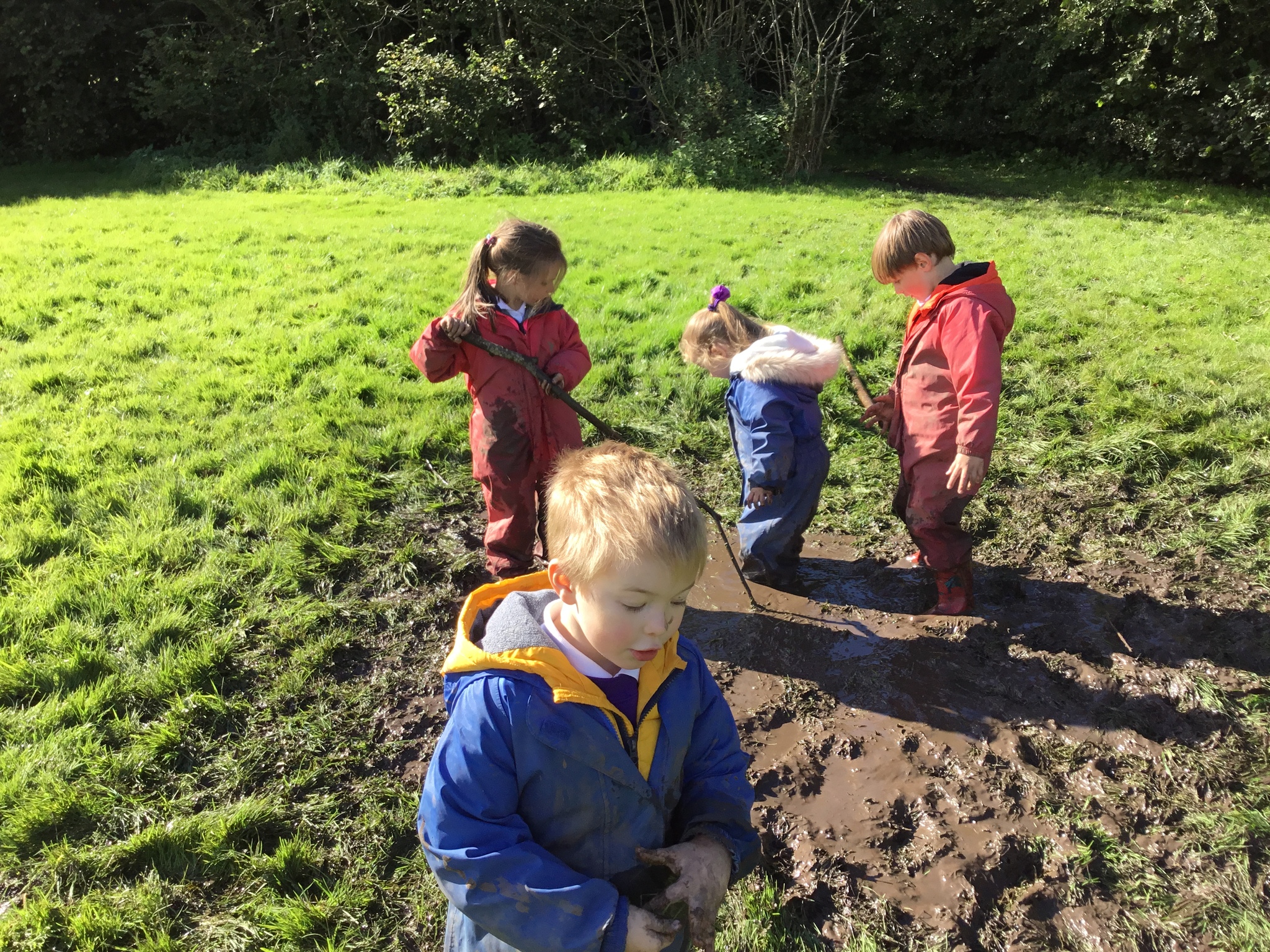We have some disturbing news. It appears that following recent rain something very strange has happened to our Reception children. This afternoon they went on to the field to enjoy an afternoon of Forest School. However, it soon became clear that an extraordinary change was happening. No sooner had they arrived on the field than they started changing into mud monster! They became slimy, sticky and mud-coloured.