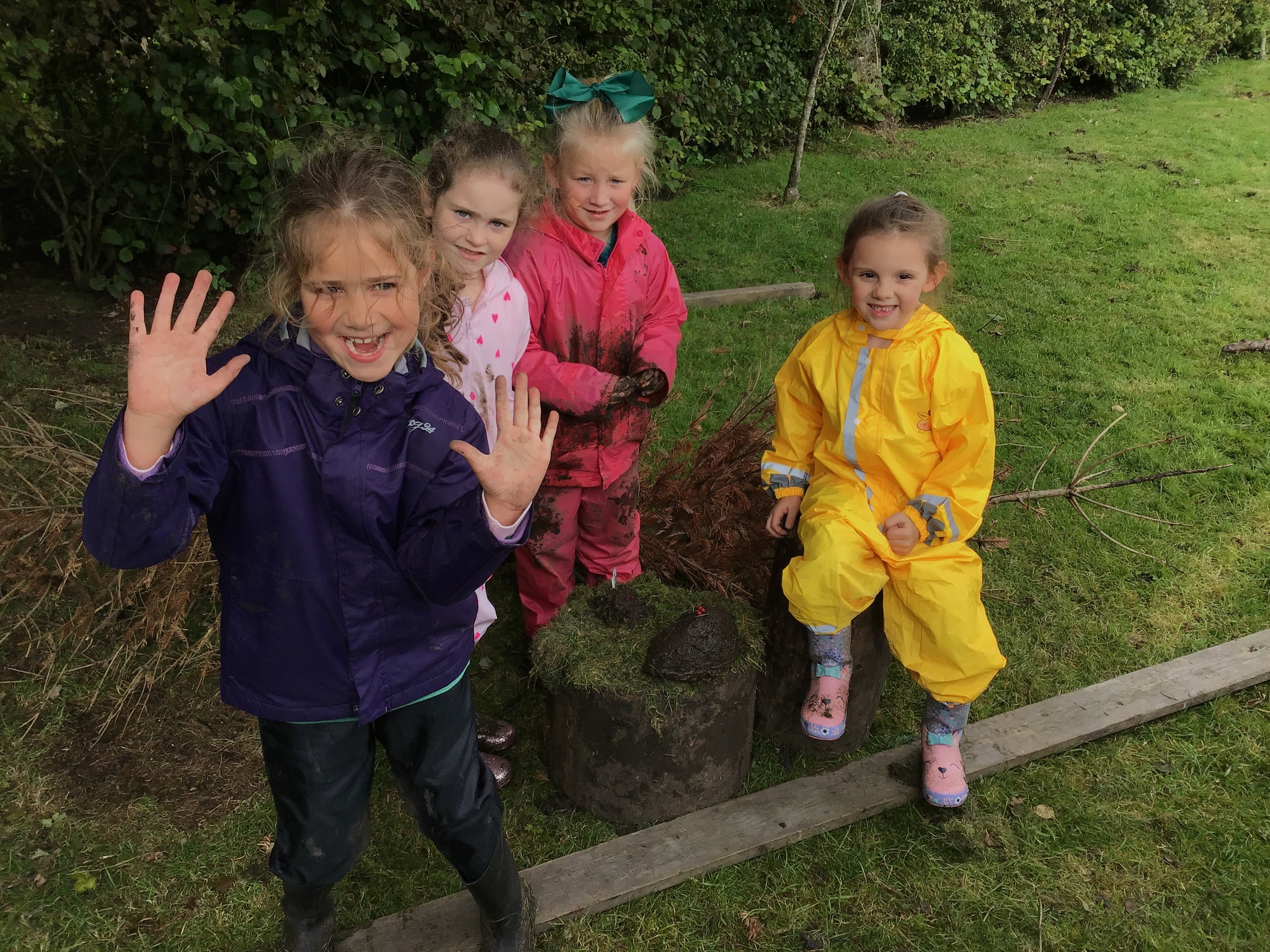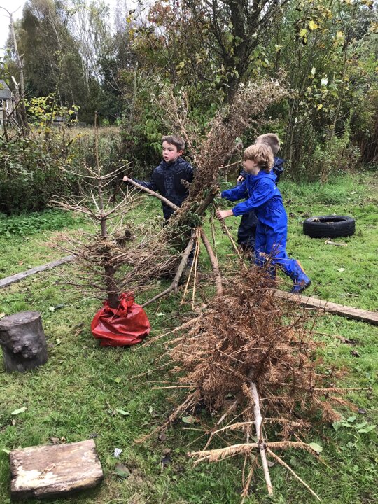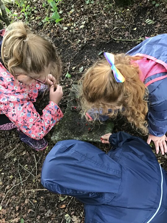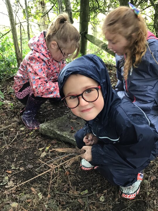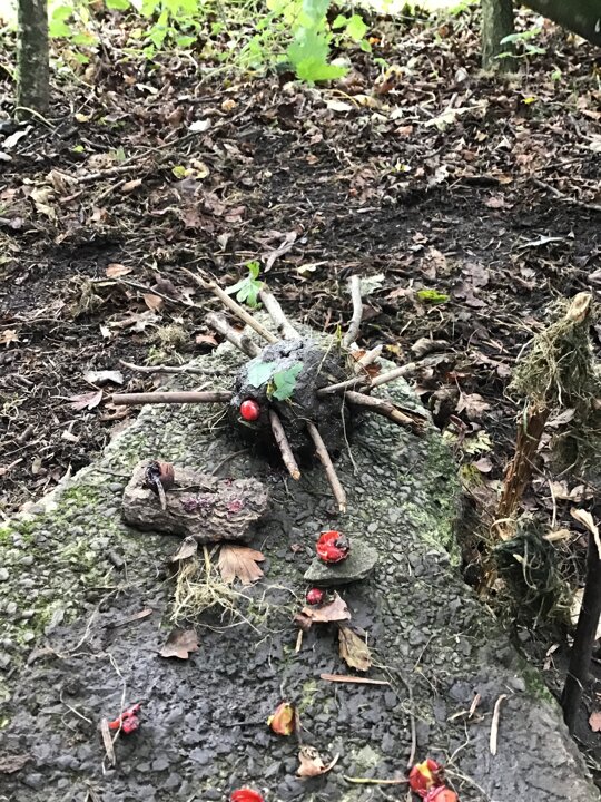 We had a great time in our Forest School lesson today! We were able to choose our own groups to make an animal of our choice. We have been learning about different animals in Science, so we could try to use what we knew to help us with our creatures. Each group made something different! We tried to make birds, spiders, a 'kittycorn' (a cat unicorn), a giraffe eating a giant spider AND a zoo! Some of us even found time to play on a swing :D