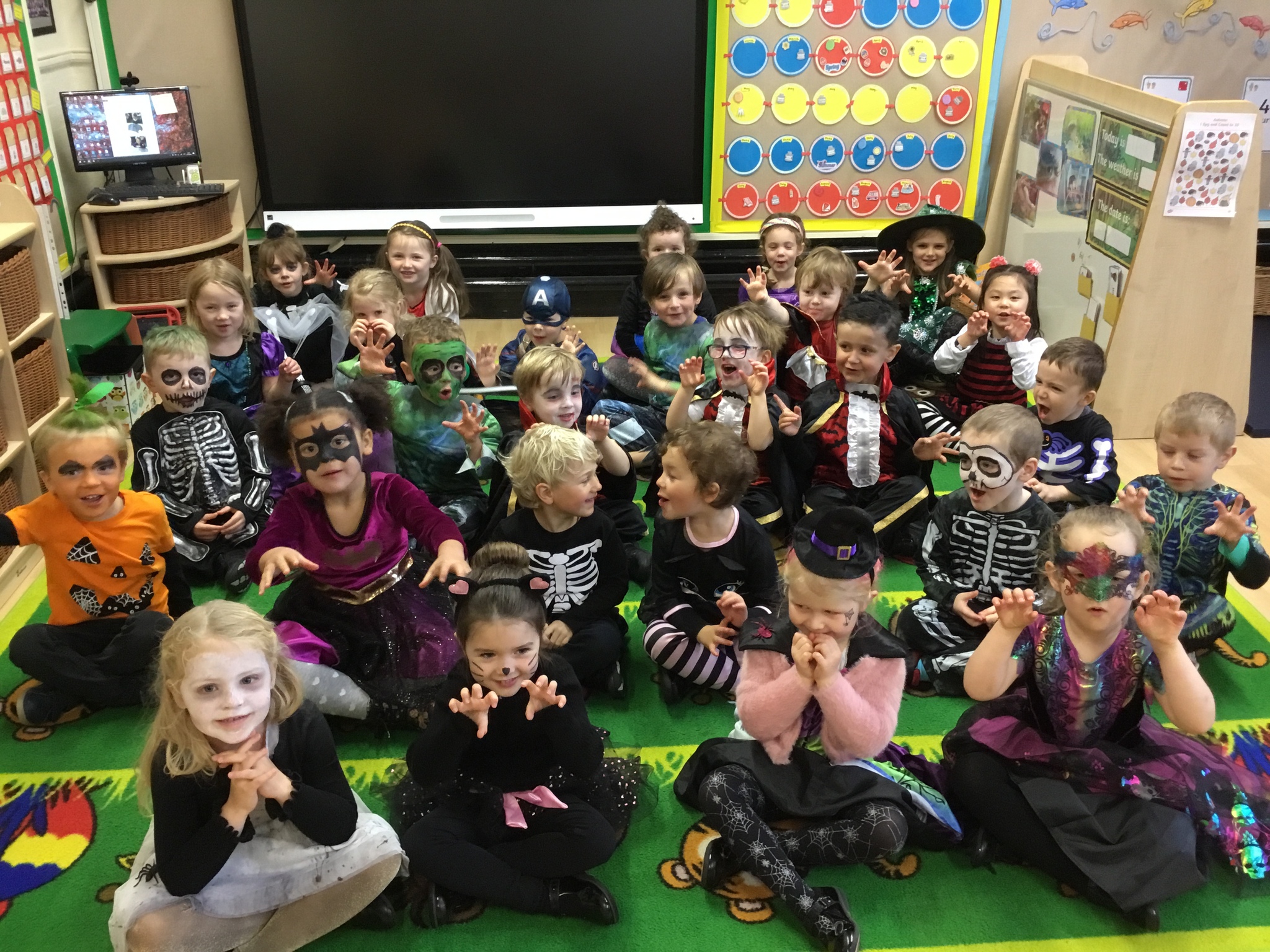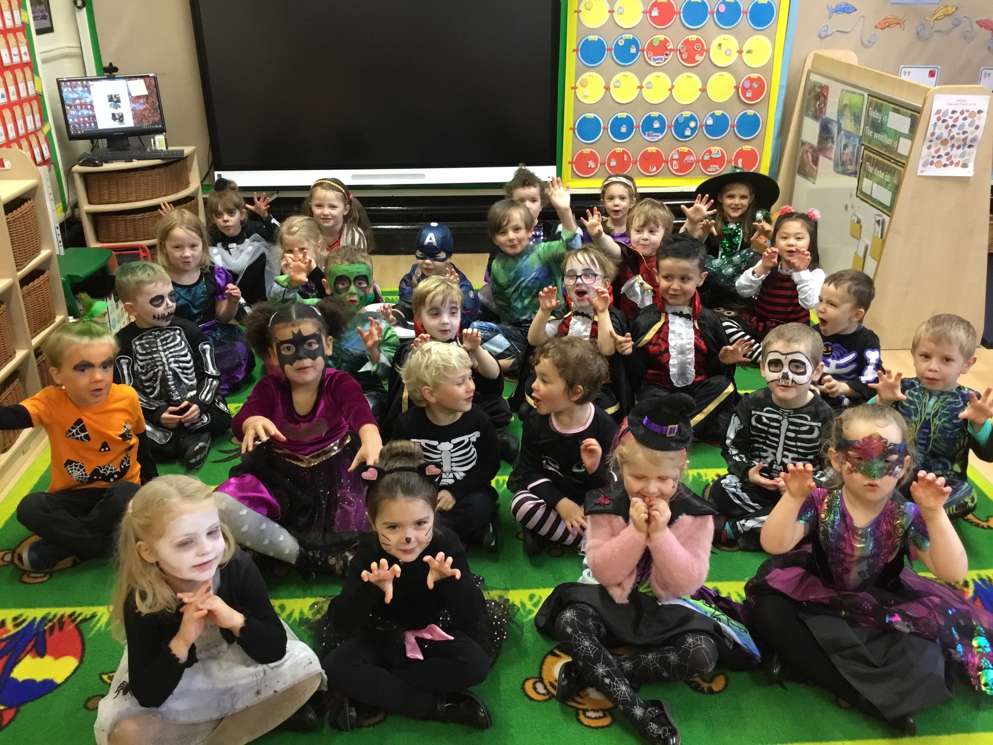 Reception was invaded by witches, skeletons, vampires and all sorts of spooky creatures today for our early Hallowe'en day. Mrs Alcock was so terrified of being turned into a frog that she fled the classroom! When asked for a comment Mrs McGowan said "Ribbit!"