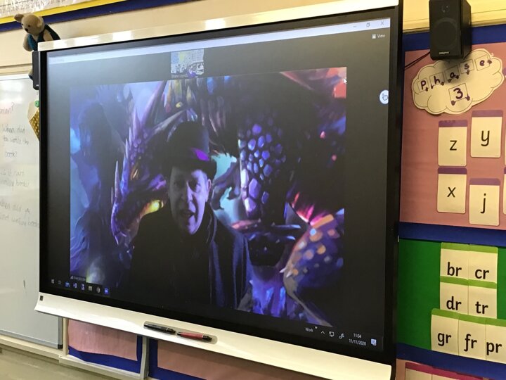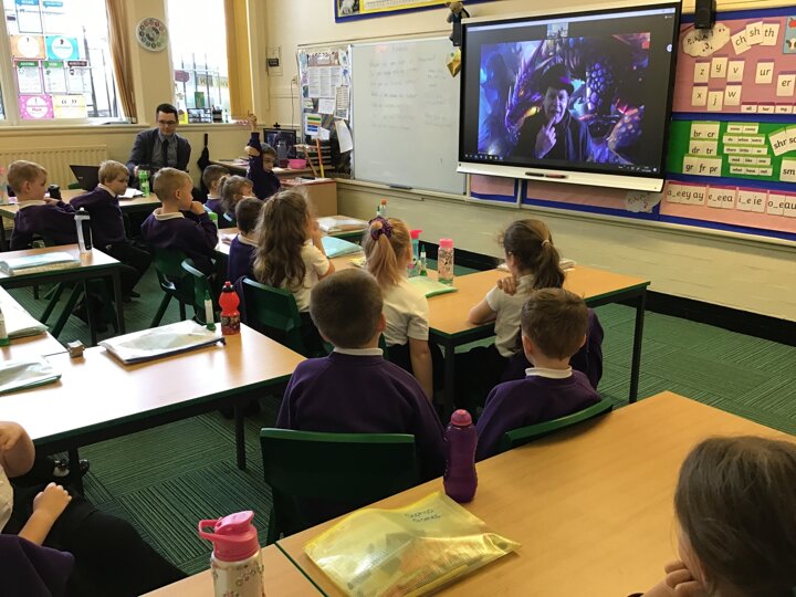 Year 2 have been extremely lucky today as we were able to have a Zoom meeting with Owen Brindle. Owen lives locally to the school and has written 3 children's stories. His latest story is titled, 'The Dragon King of Trawden Forest' and links really well to the our English topic of Dragons.