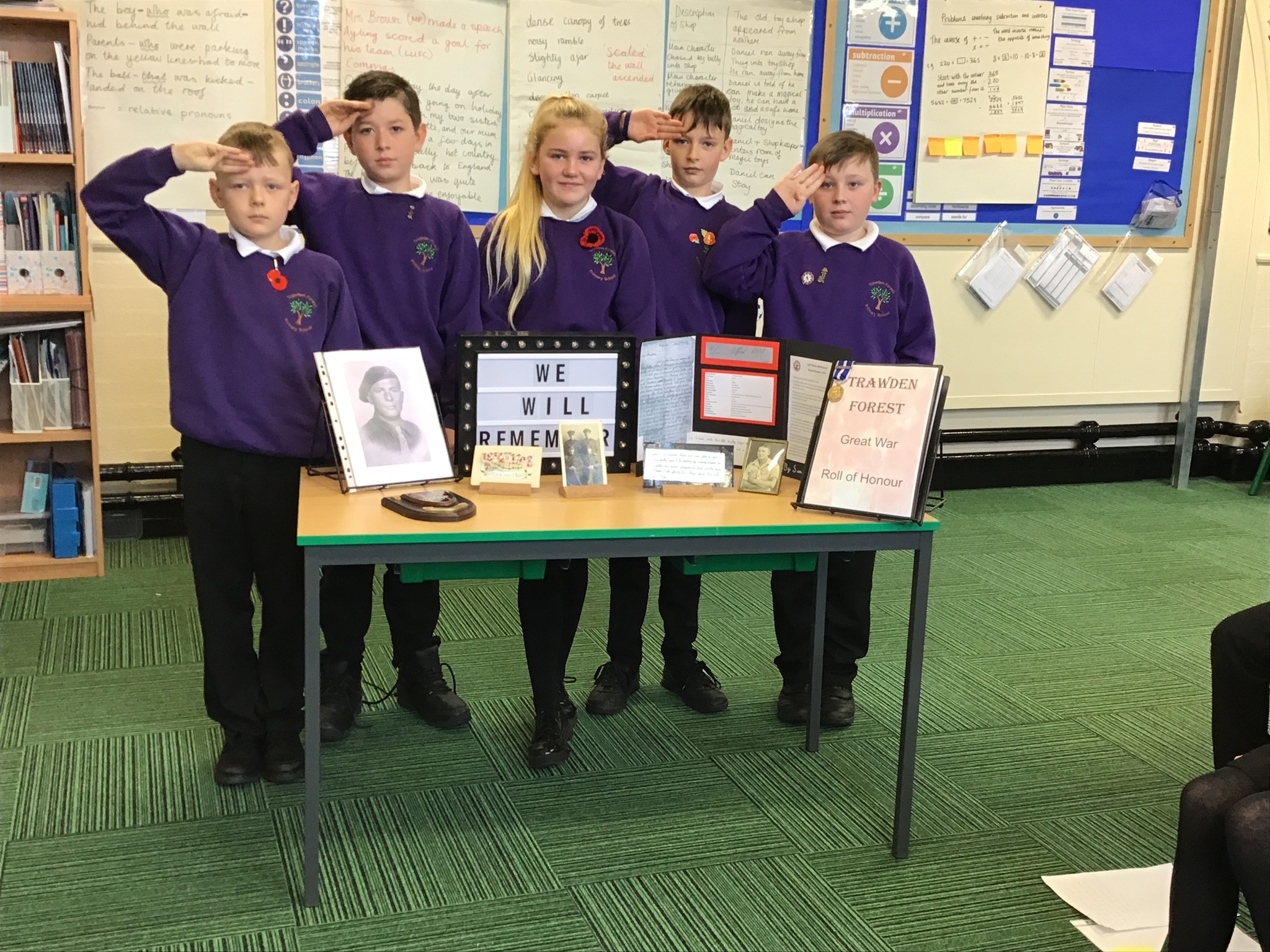 Year 6 remembered all those who lost their lives during WW1, WW2 and other conflicts. They successfully learned and performed the poem, 'The Fallen' by Lawrence Binyon and recalled the names of those who lost their lives from Trawden alongside those who they knew of personally. This act of remembrance was supported by many parents, carers and friends of the Year 6 together with all the classes in school and was presented through a cloud video platform. Year 6 would like to say a big 'thank you' to everyone who logged in to the act of remembrance.