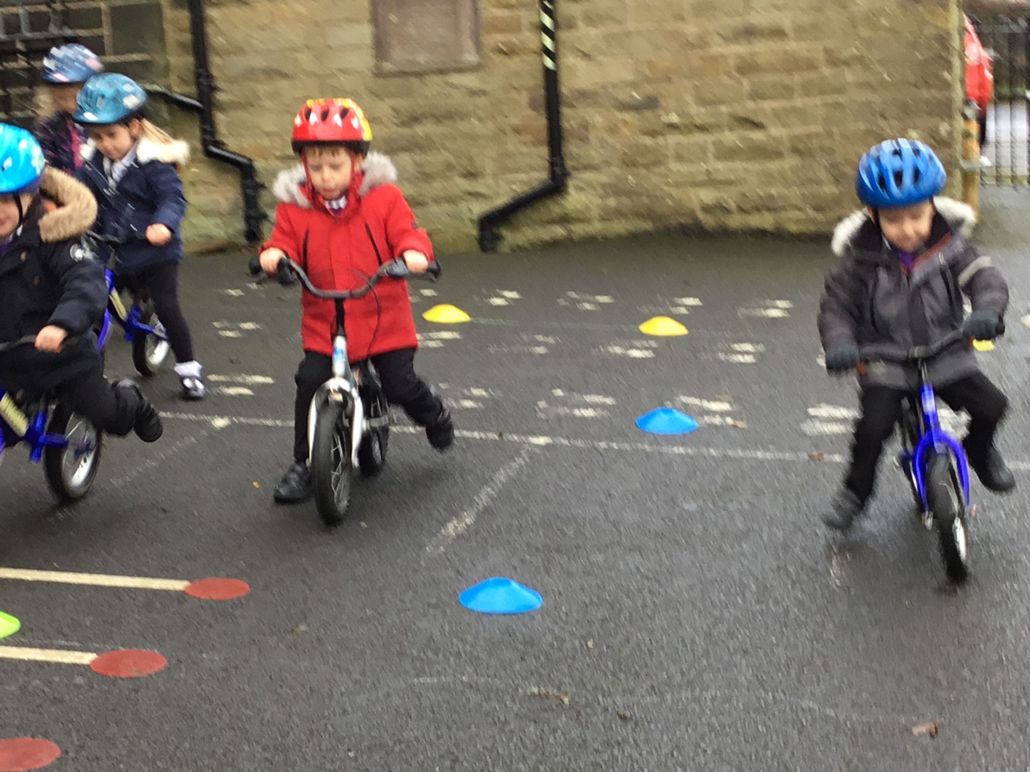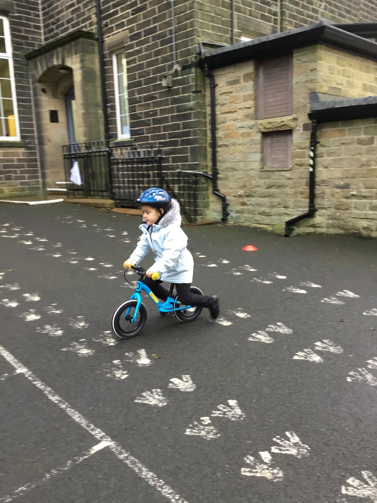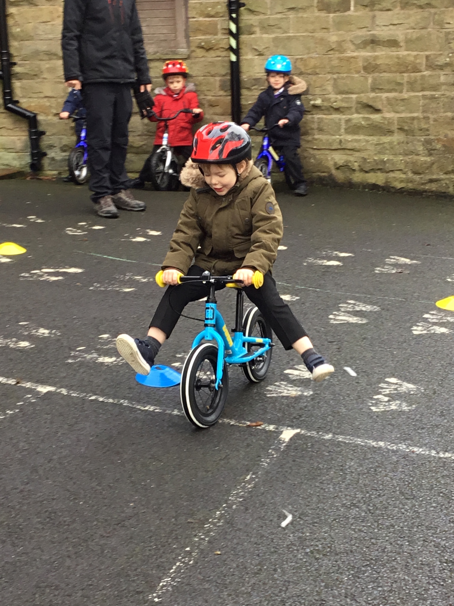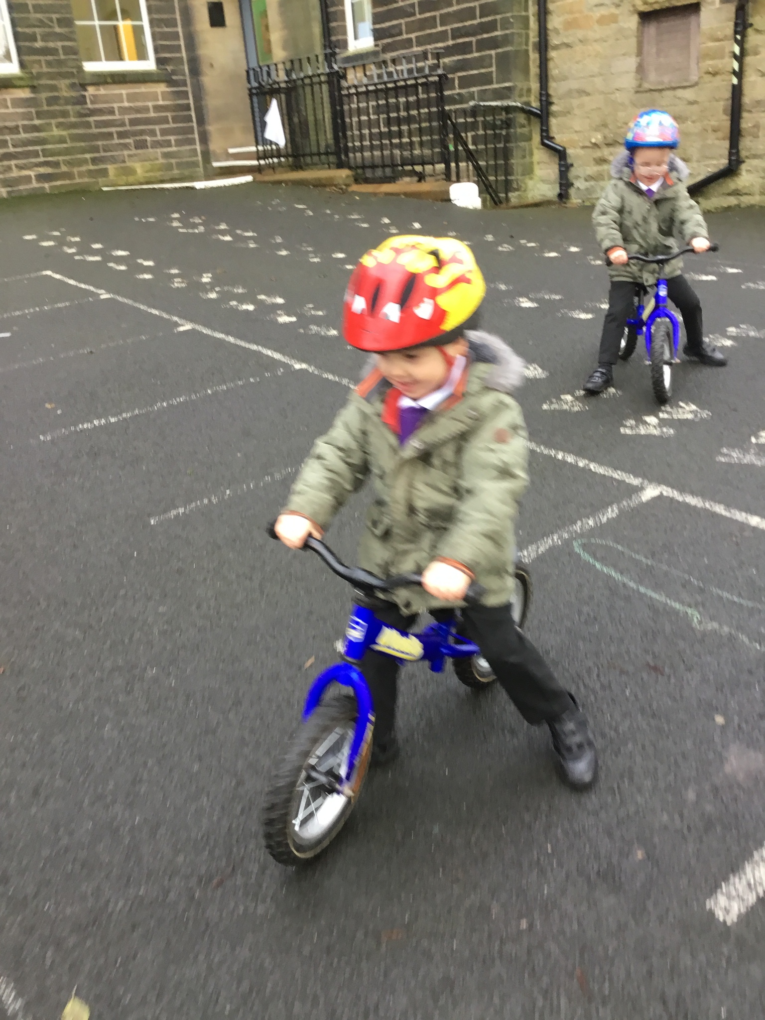Reception have had a 'wheelie' good time this week with Go Velo learning how to ride bikes. Despite the cold weather we have been out each day learning to balance and pedal and having fun! We have ridden down bendy tracks and even raced each other. All the children have done really well and made big improvements.