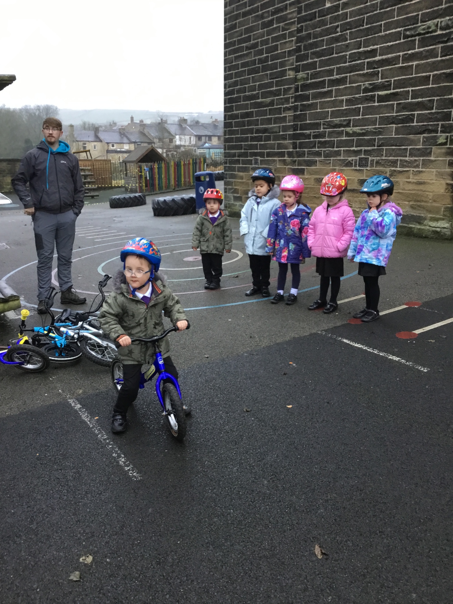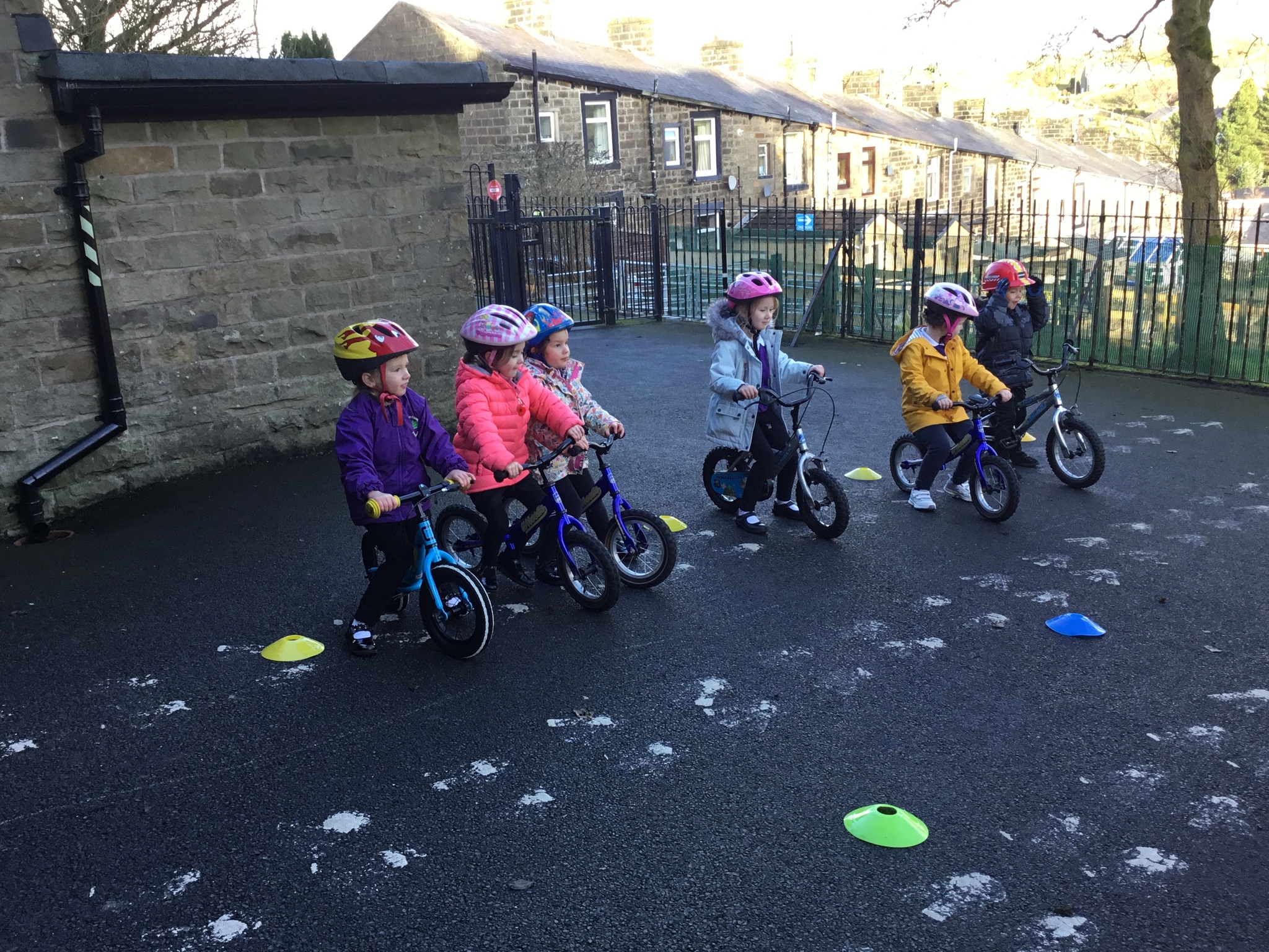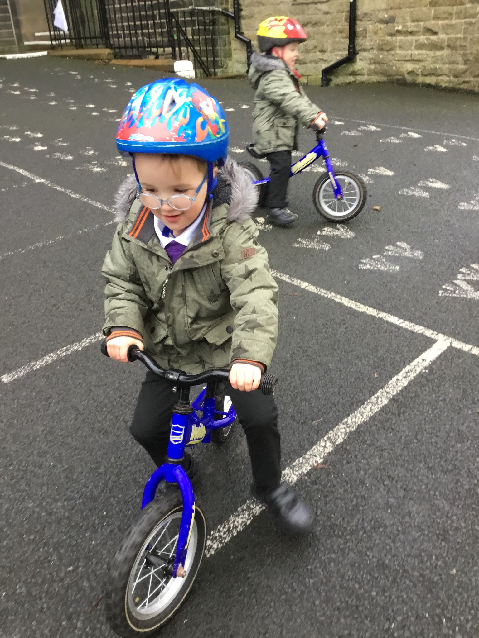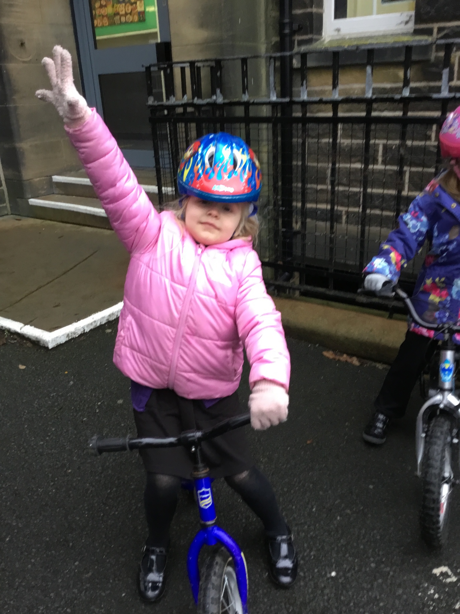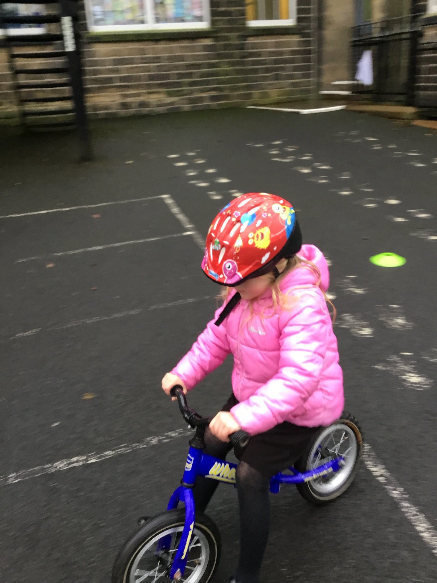Reception have had a 'wheelie' good time this week with Go Velo learning how to ride bikes. Despite the cold weather we have been out each day learning to balance and pedal and having fun! We have ridden down bendy tracks and even raced each other. All the children have done really well and made big improvements.
