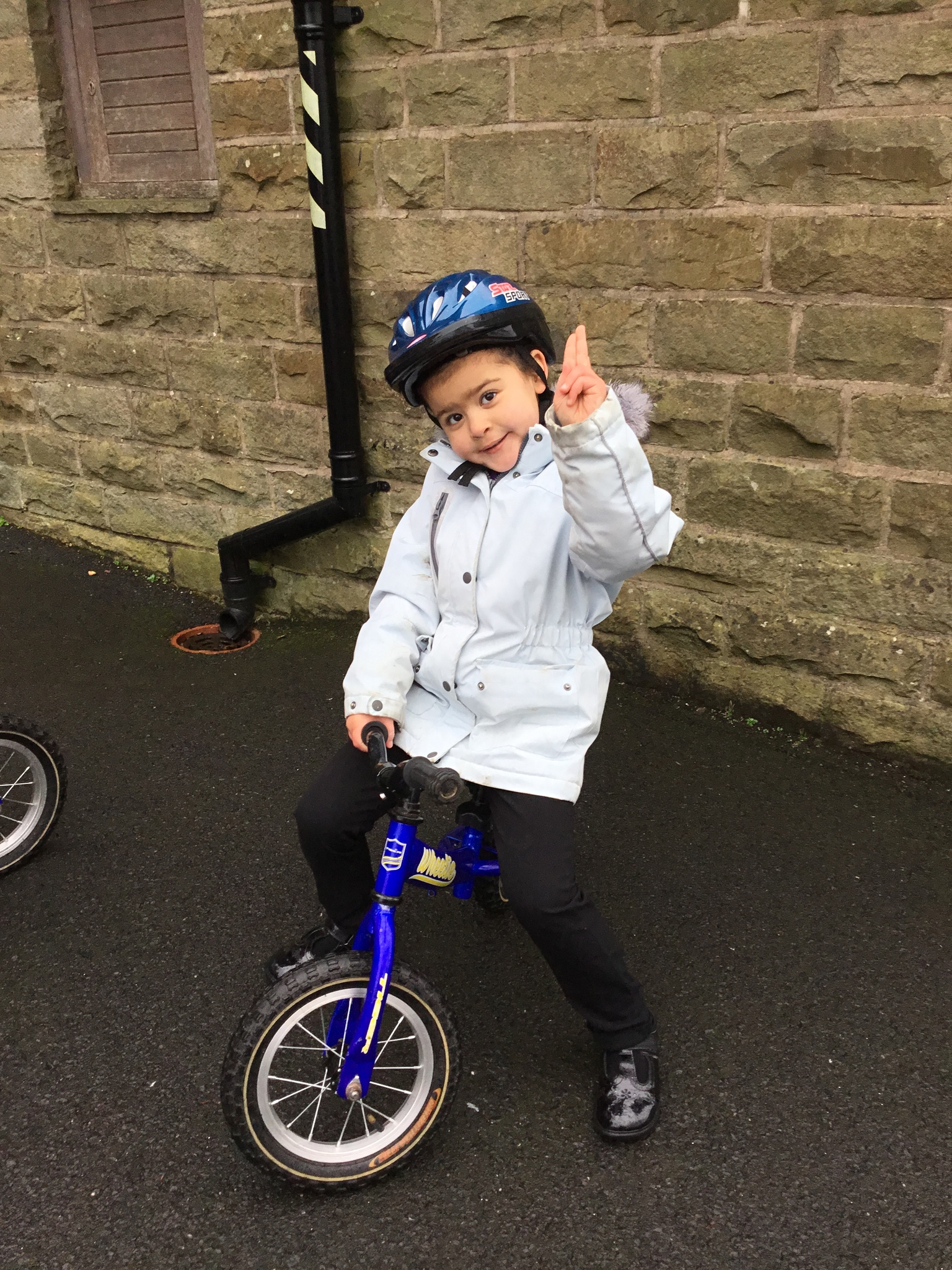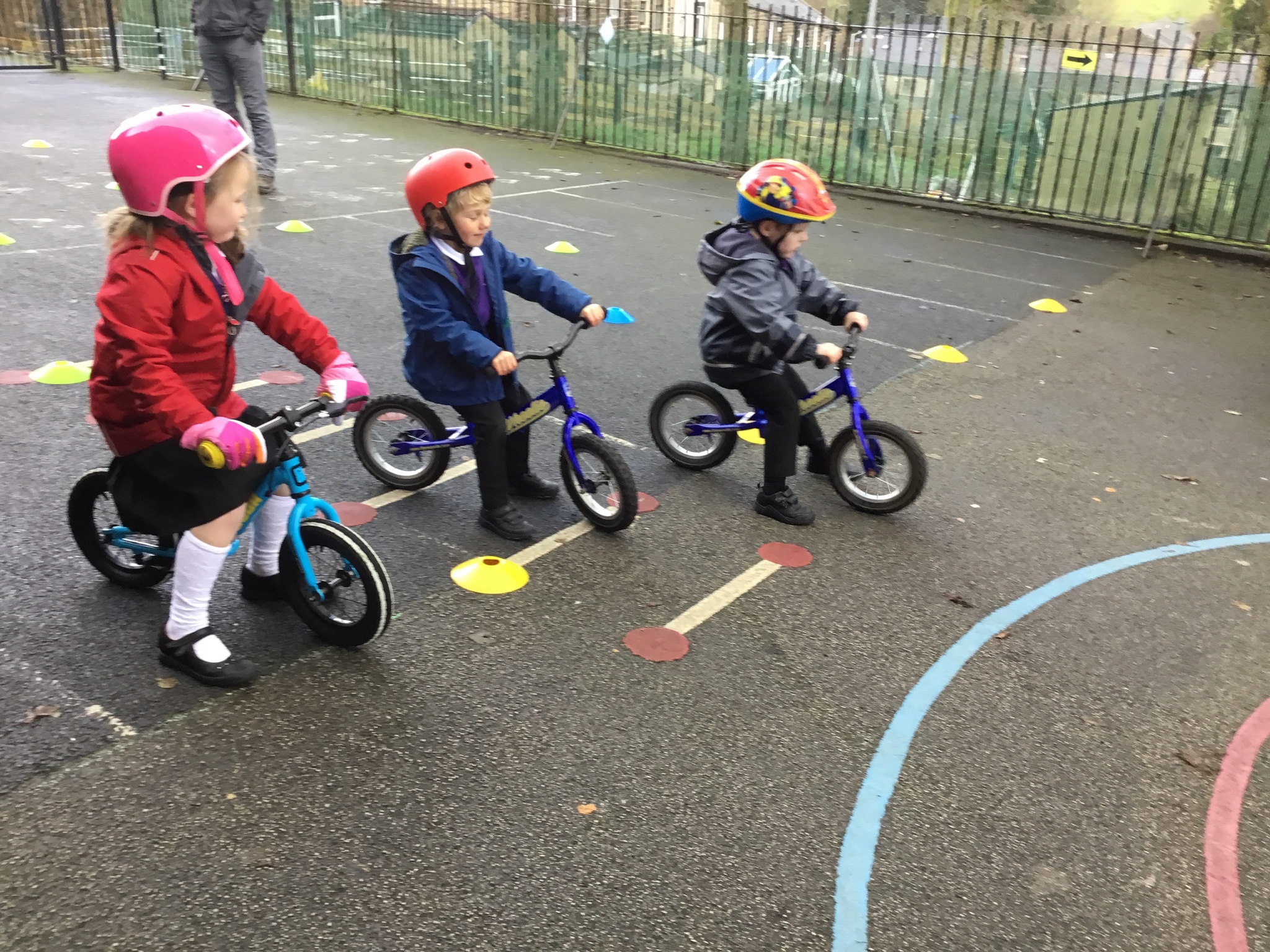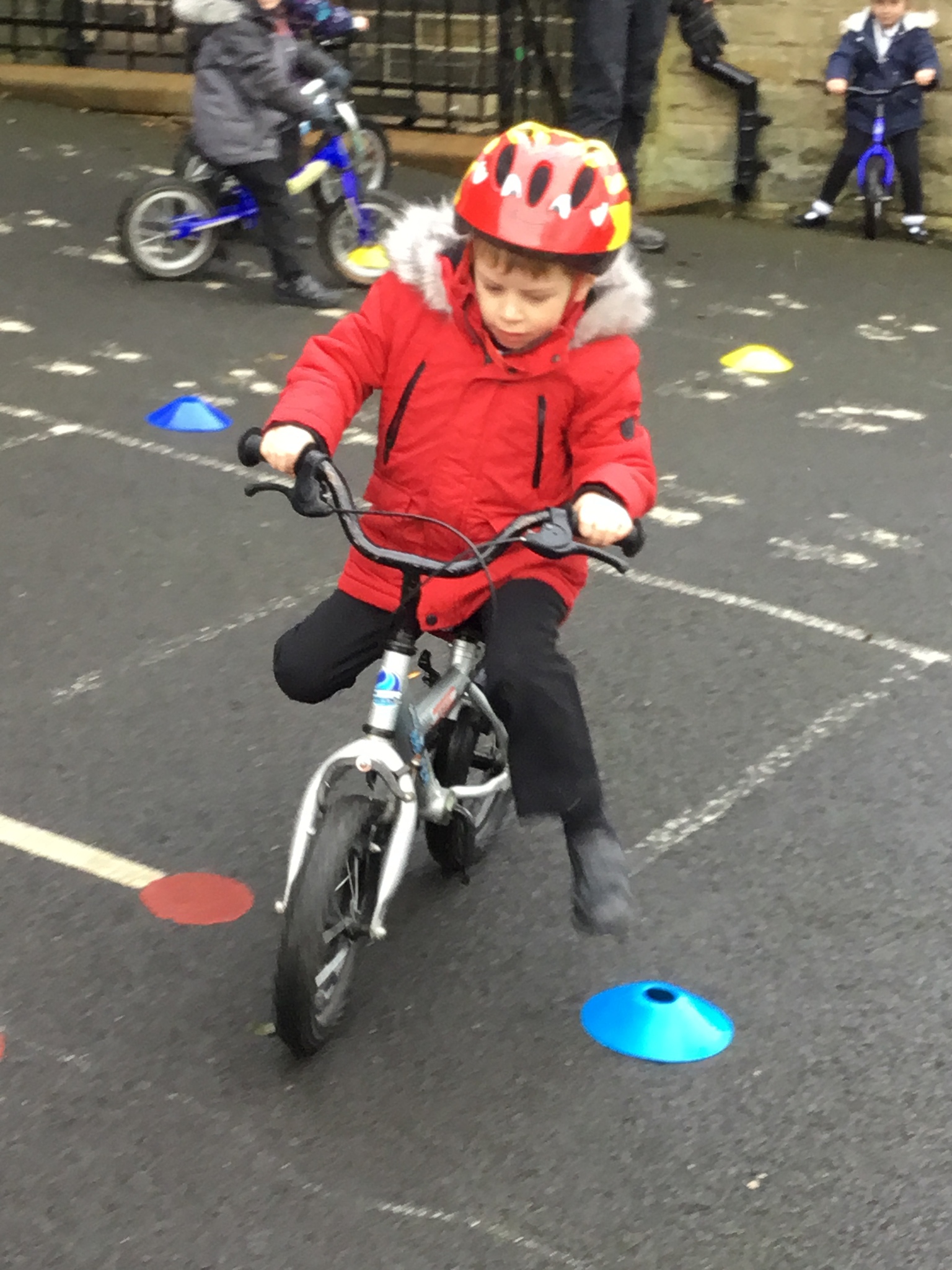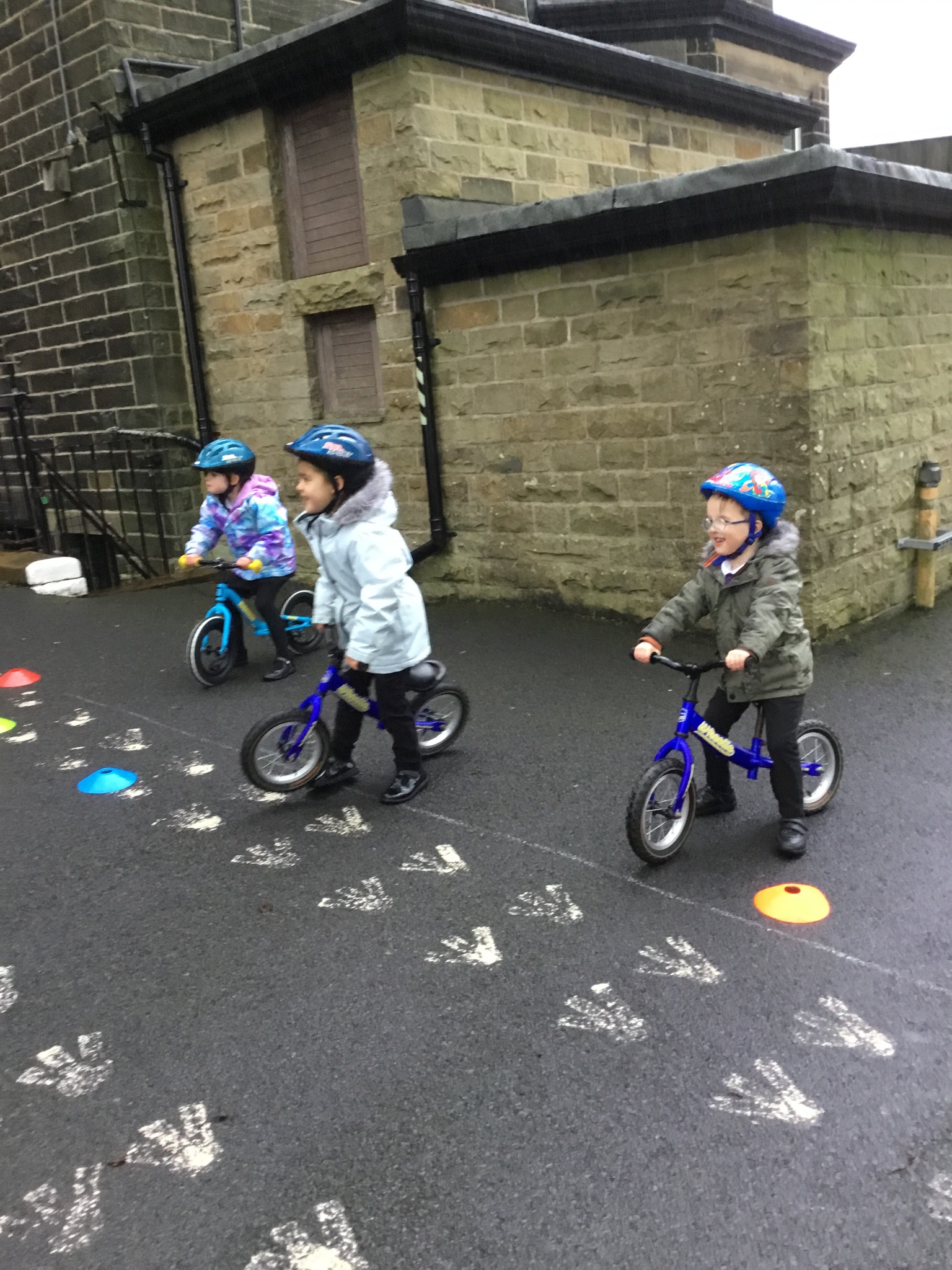 Reception have had a 'wheelie' good time this week with Go Velo learning how to ride bikes. Despite the cold weather we have been out each day learning to balance and pedal and having fun! We have ridden down bendy tracks and even raced each other. All the children have done really well and made big improvements.