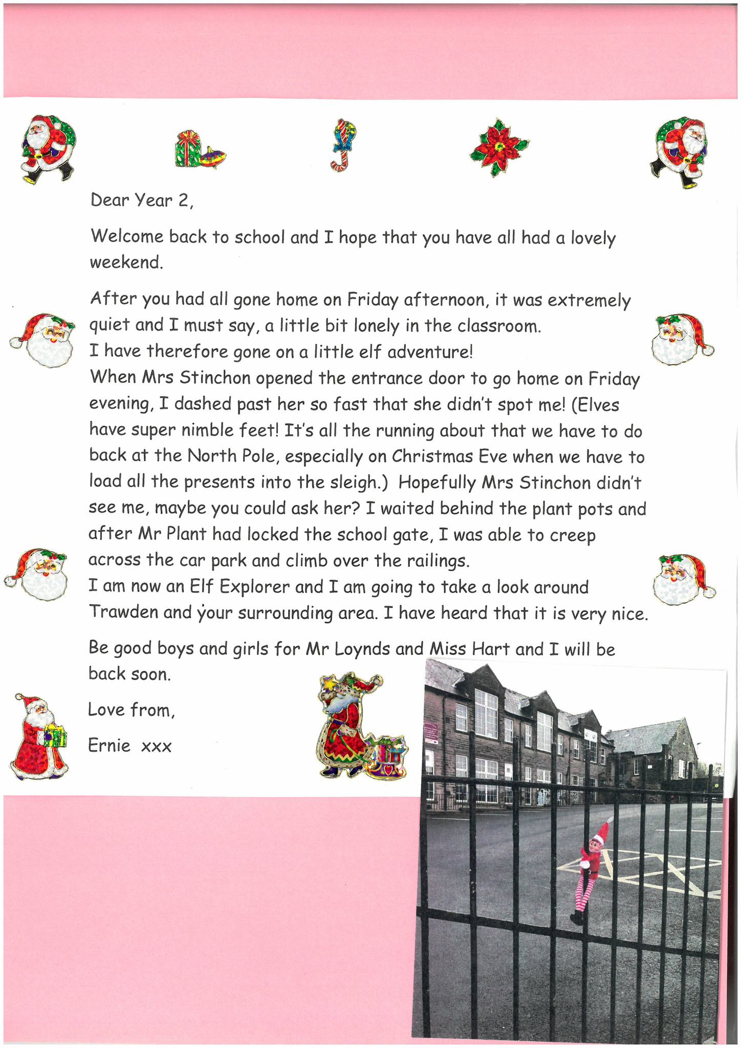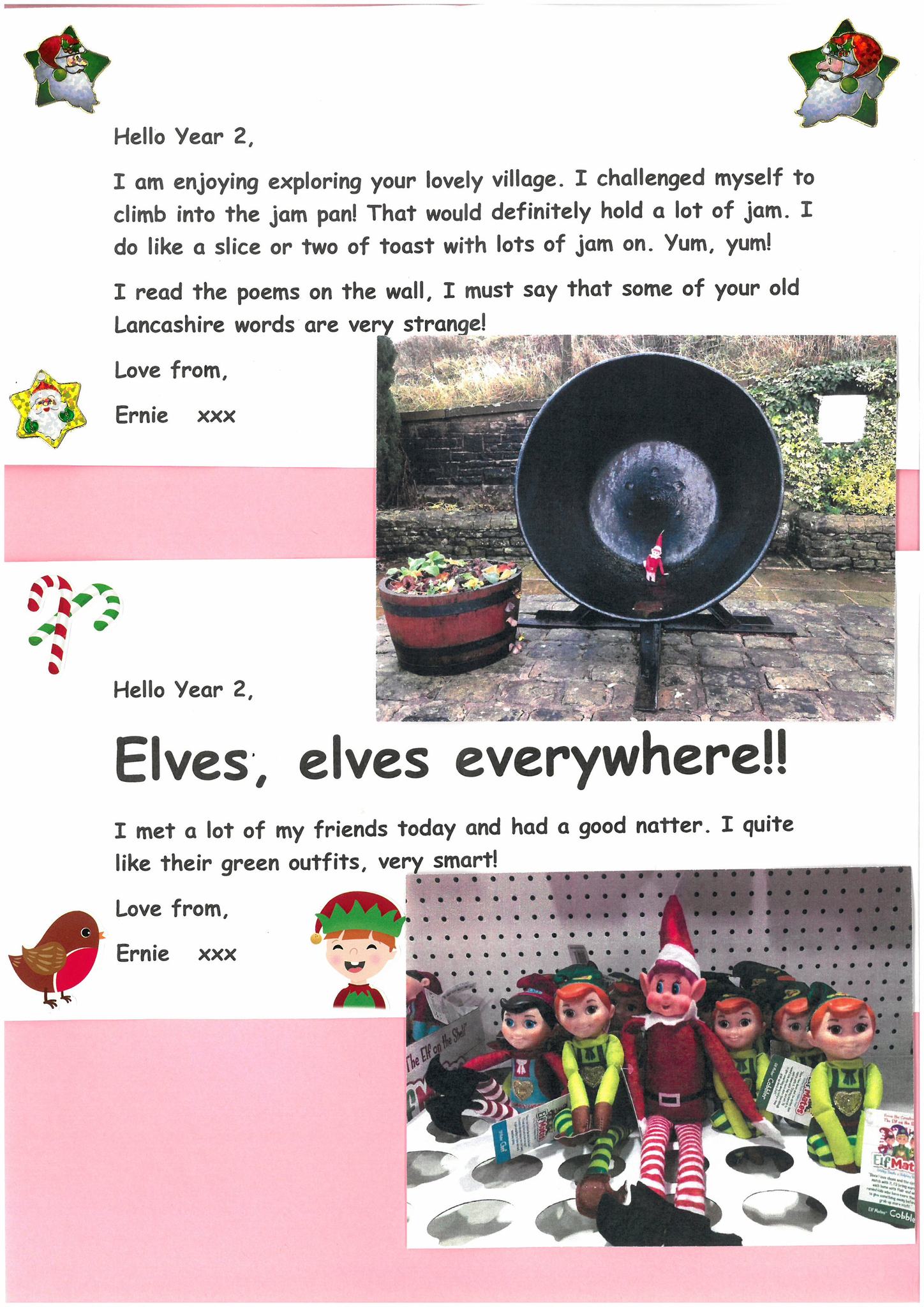 Over the weekend, Ernie the Year 2 Elf ran away from school. He has been on an adventure around Trawden and the local area. He had been joining in with our lessons about explorers and really wanted to know how it felt to become an explorer and learn about a new place!