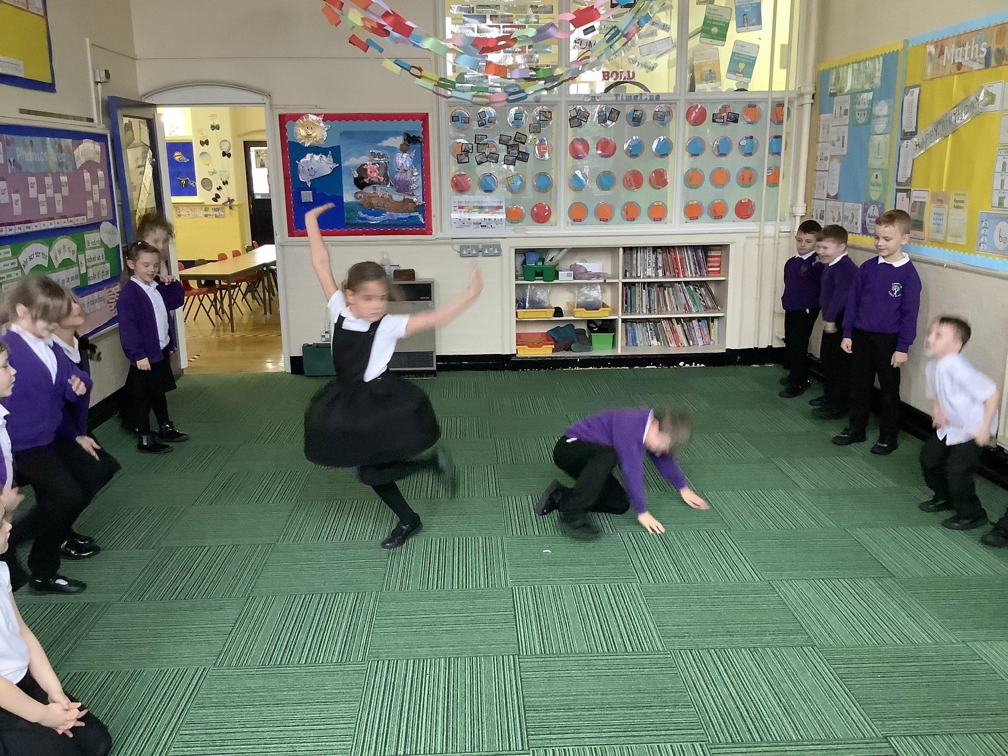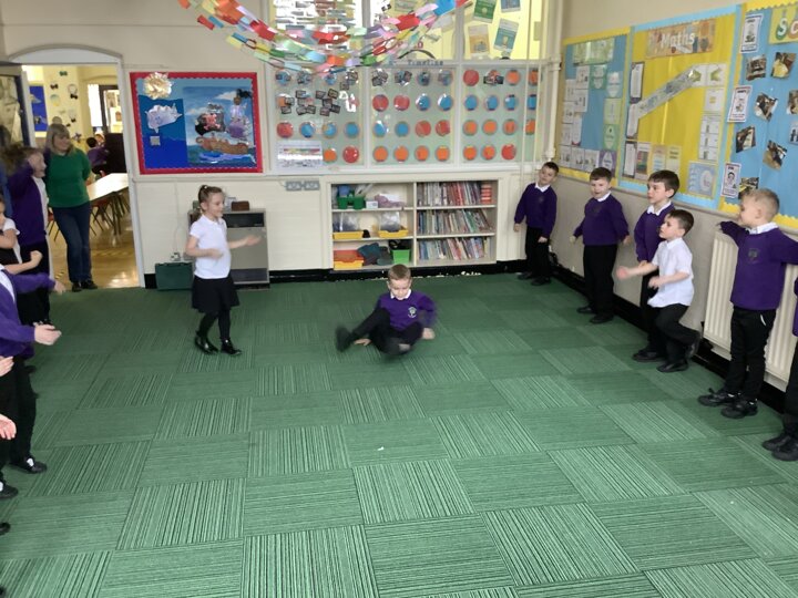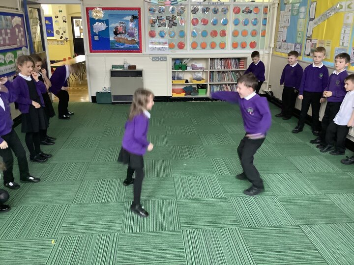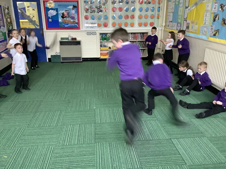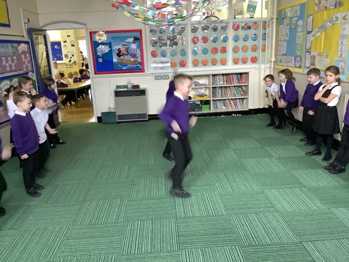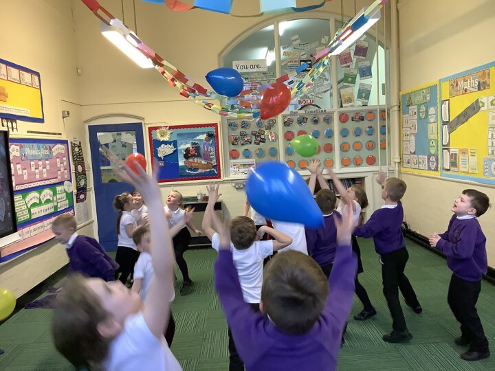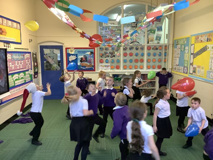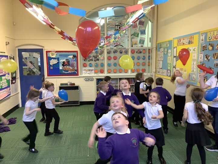 Year 2 started with a dance battle, played balloon games and had a little dance.
