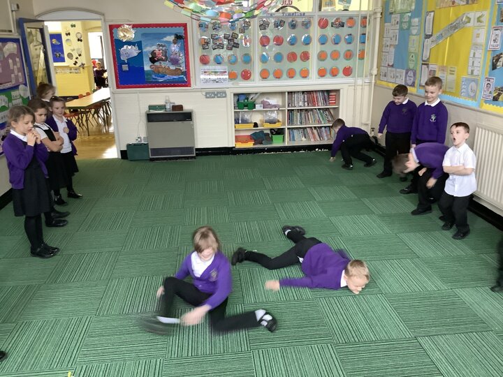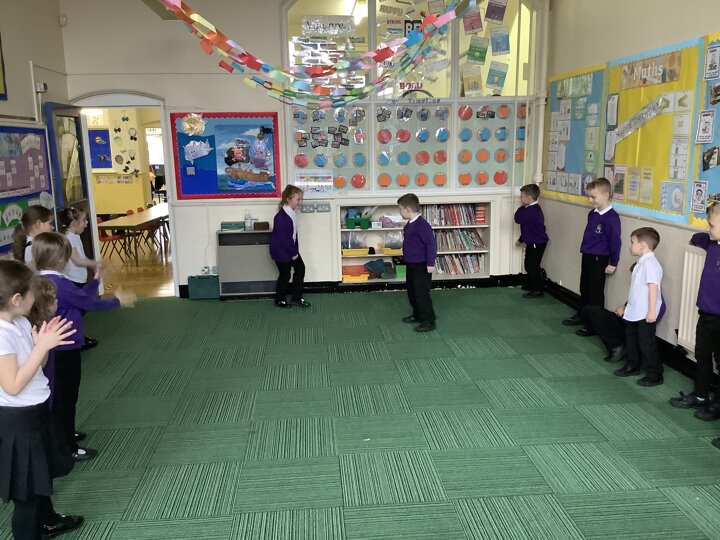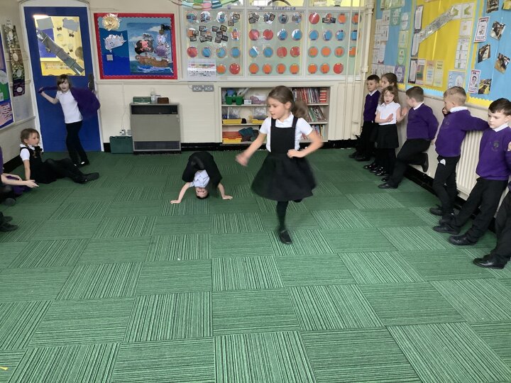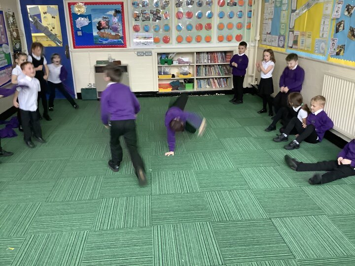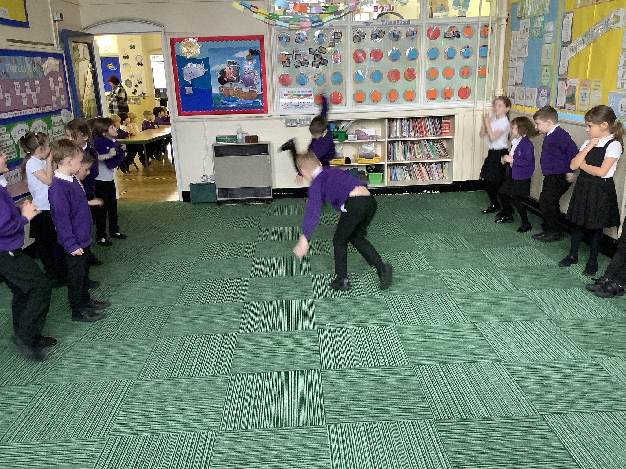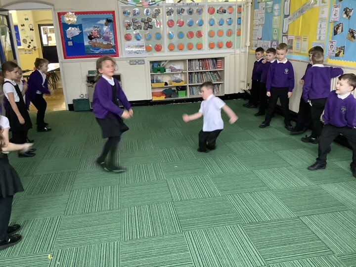 Year 2 started with a dance battle, played balloon games and had a little dance.
