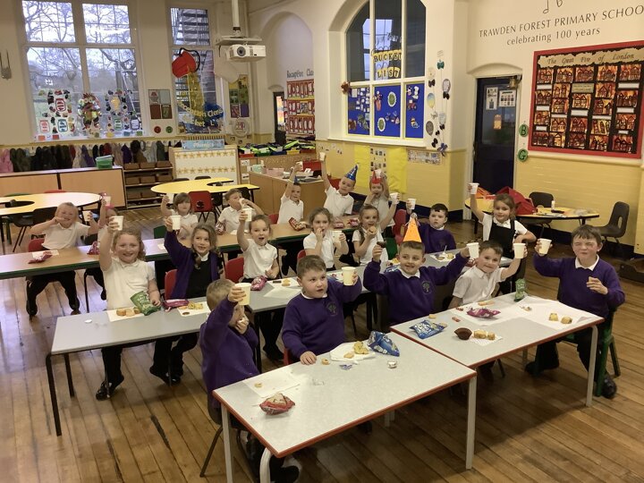 Both classes really enjoyed the food! They ate sweets, crisps, chocolate, biscuits and the birthday children enjoyed their special cakes!