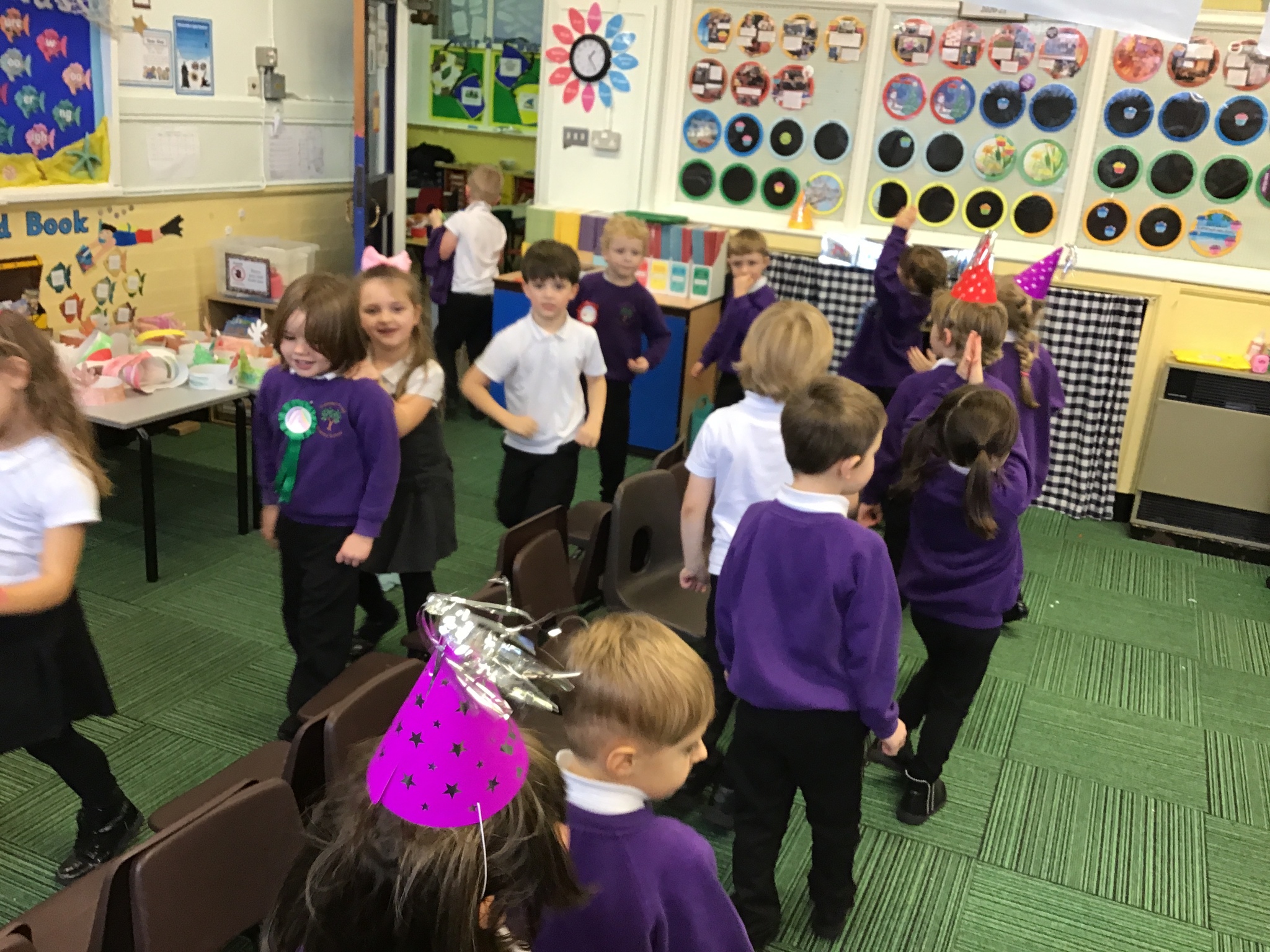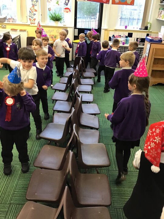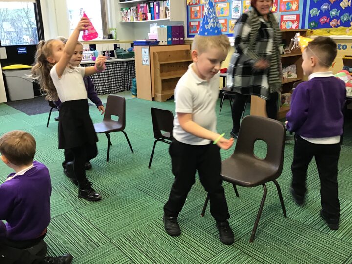 Year 1 played musical bumps, musical statues, musical chairs and had a disco dance.