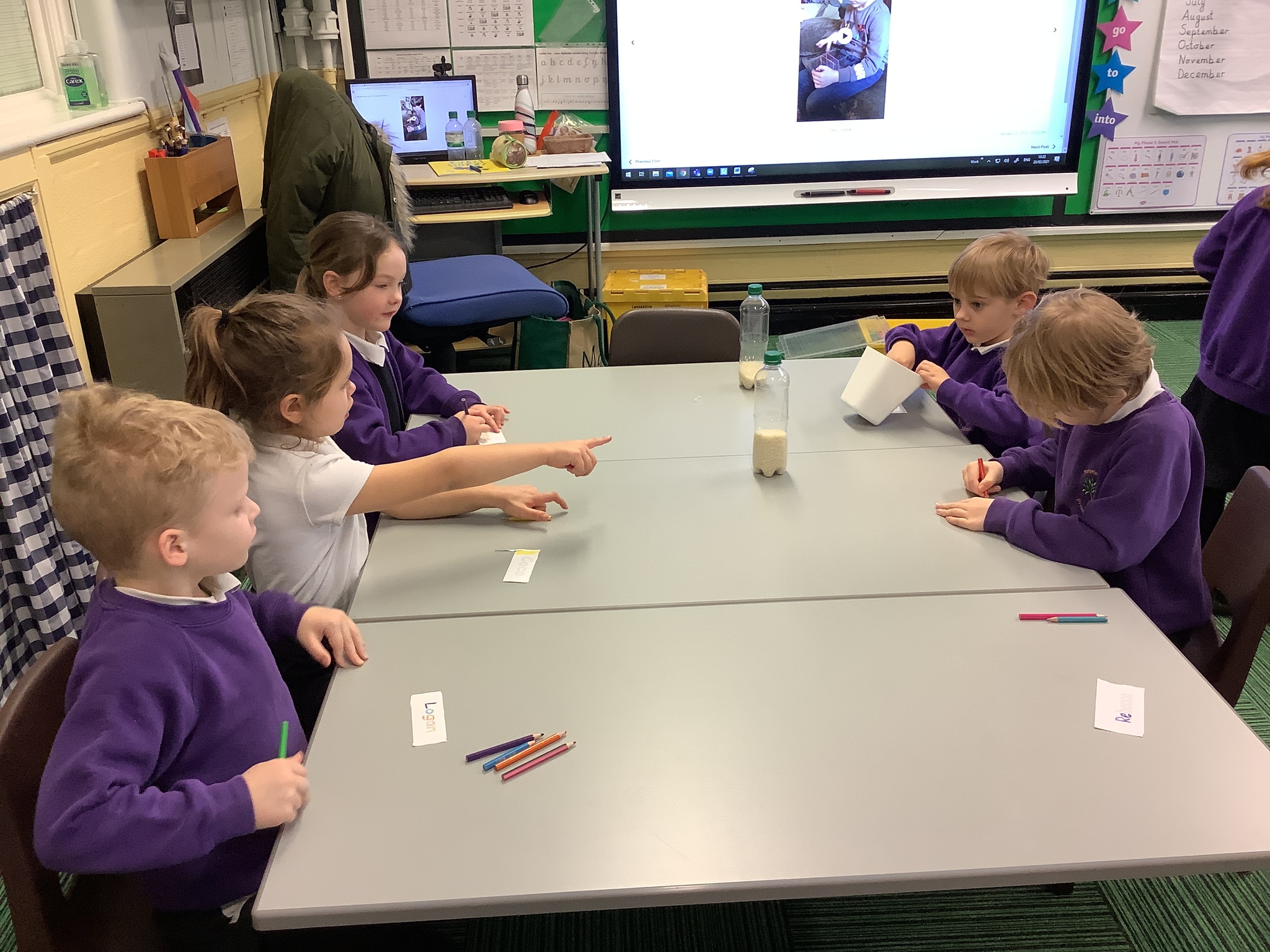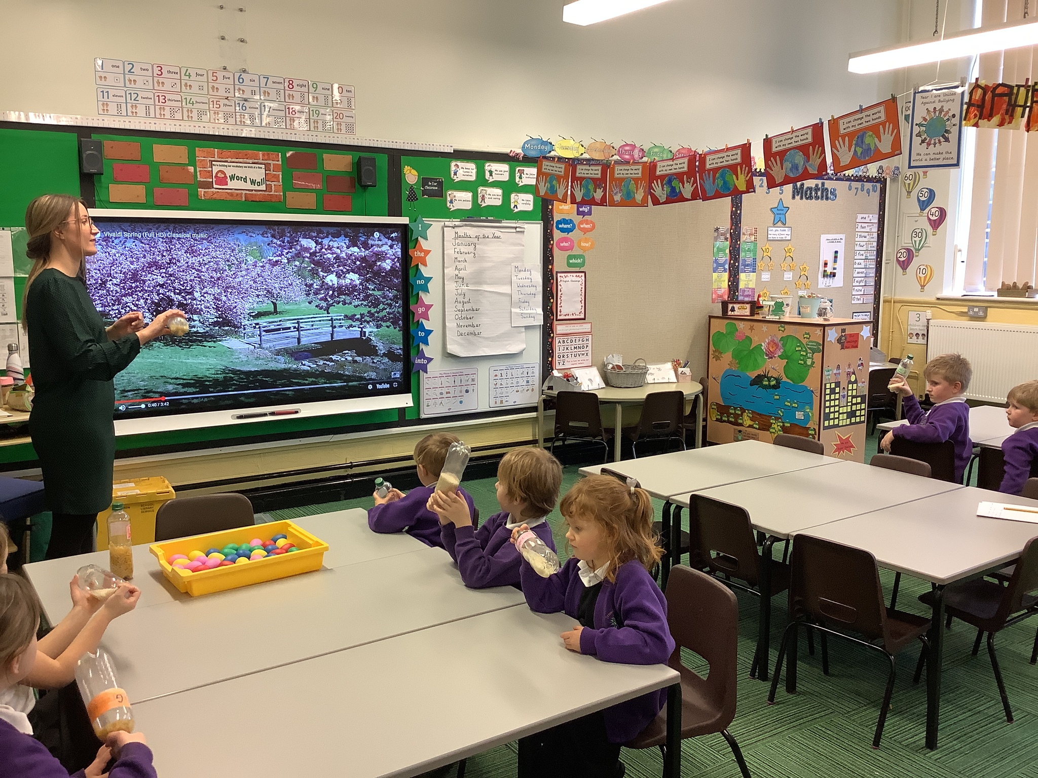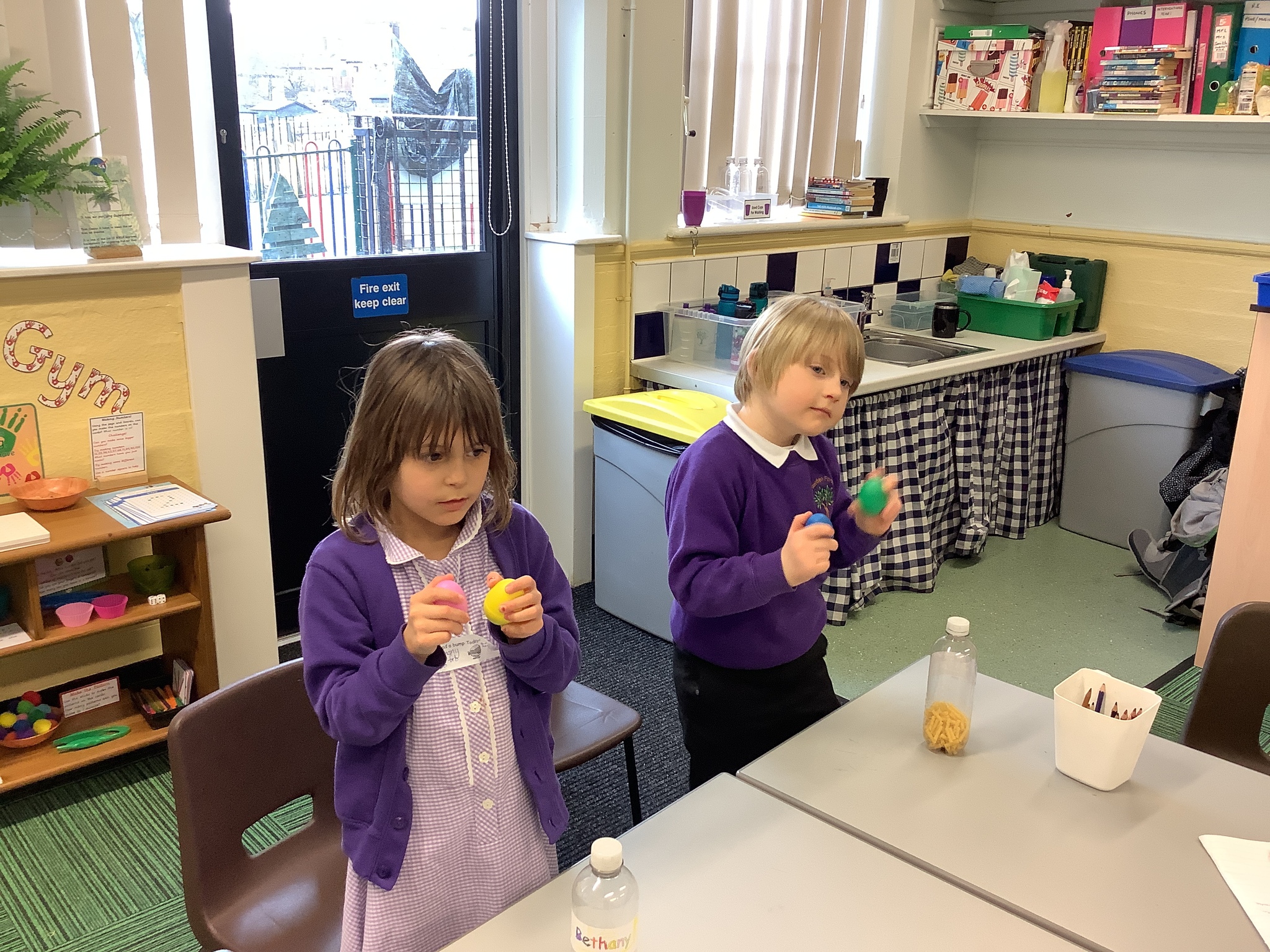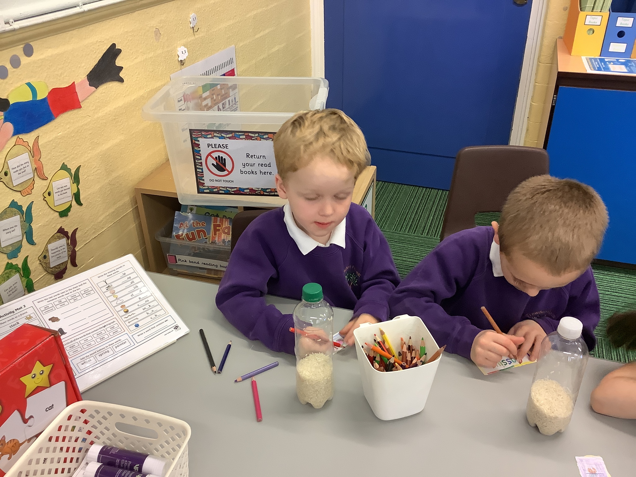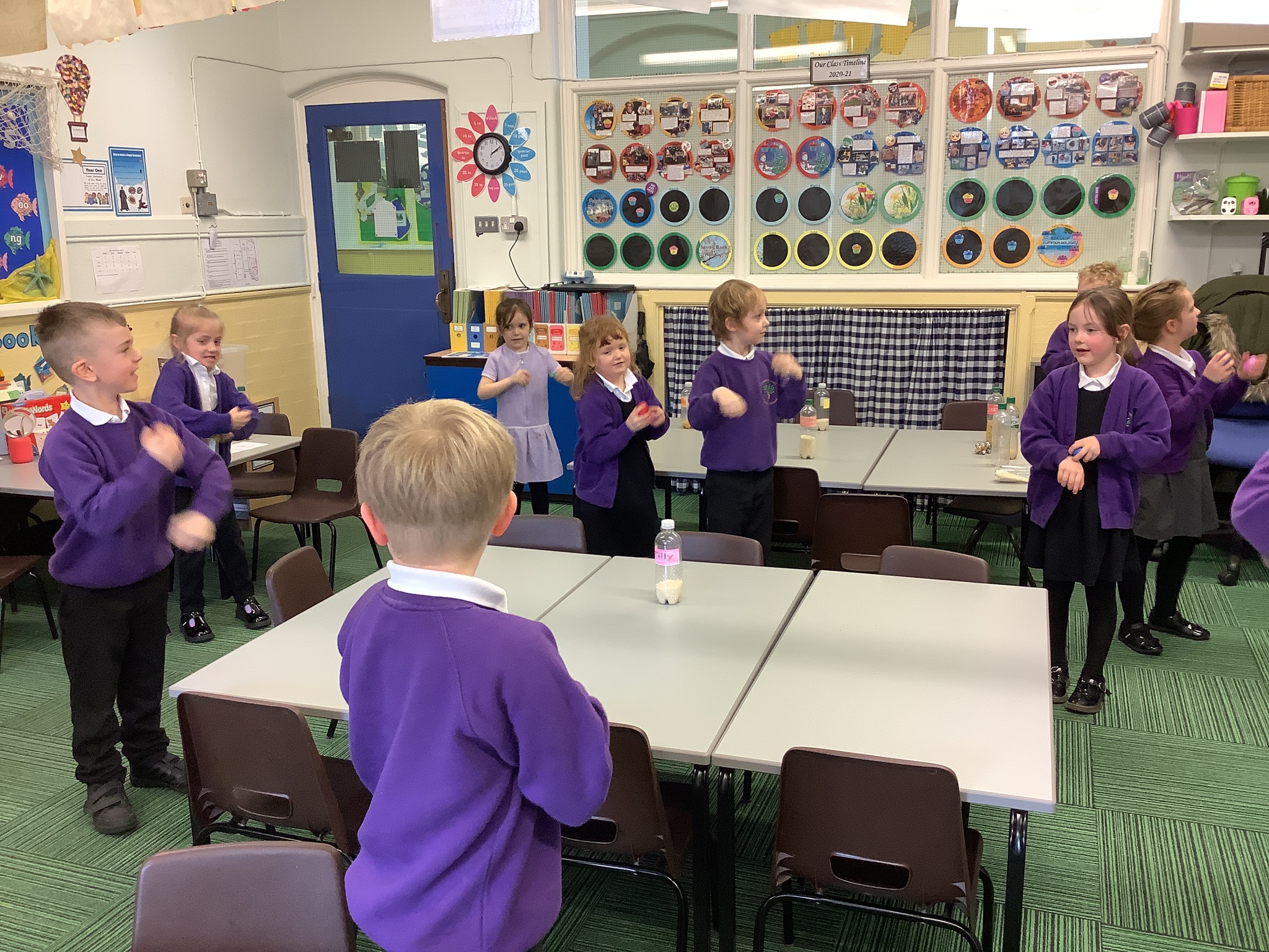 We followed Starry Eyed Stan’s instructions to make our own maracas. We used empty bottles and then chose either pasta or rice to fill them. We then tested out the different sounds they made depending on how much was in them and how we shook them. We enjoyed using our maracas to join in with lots of different songs including the songs in our Rock Kidz assembly.