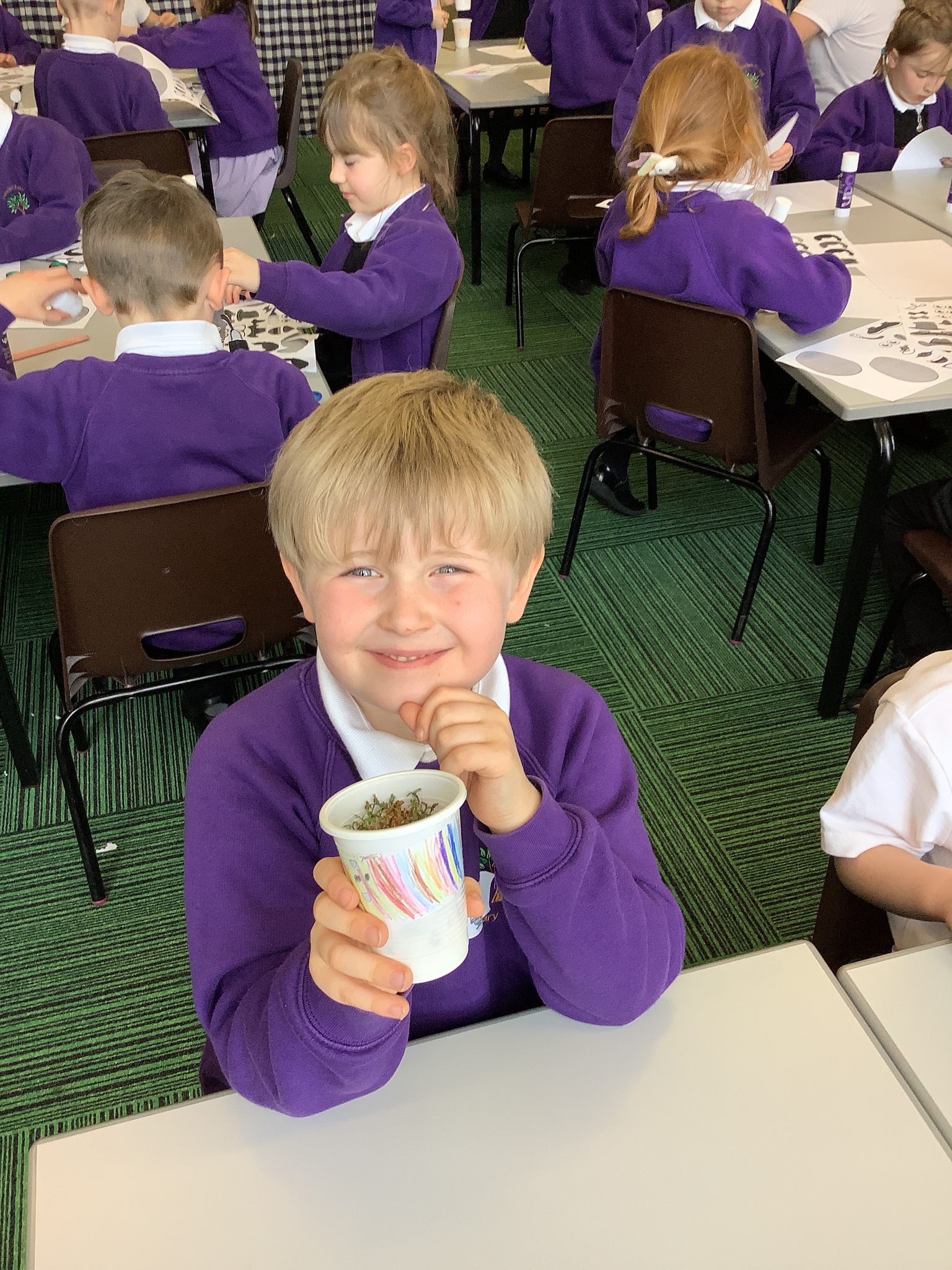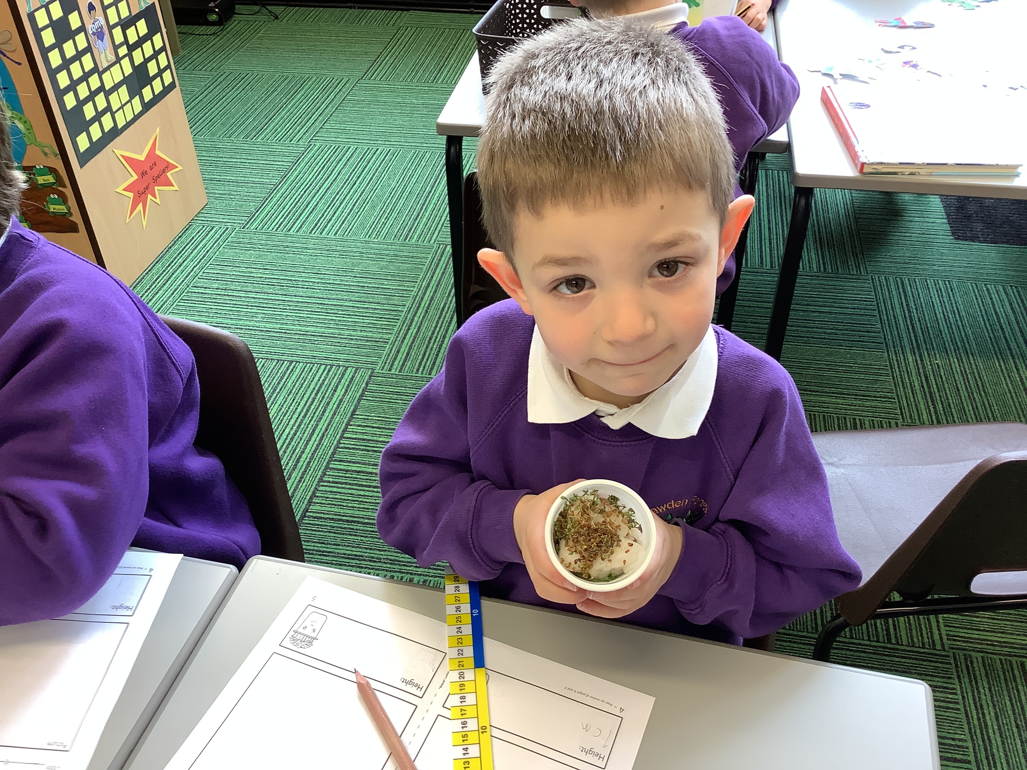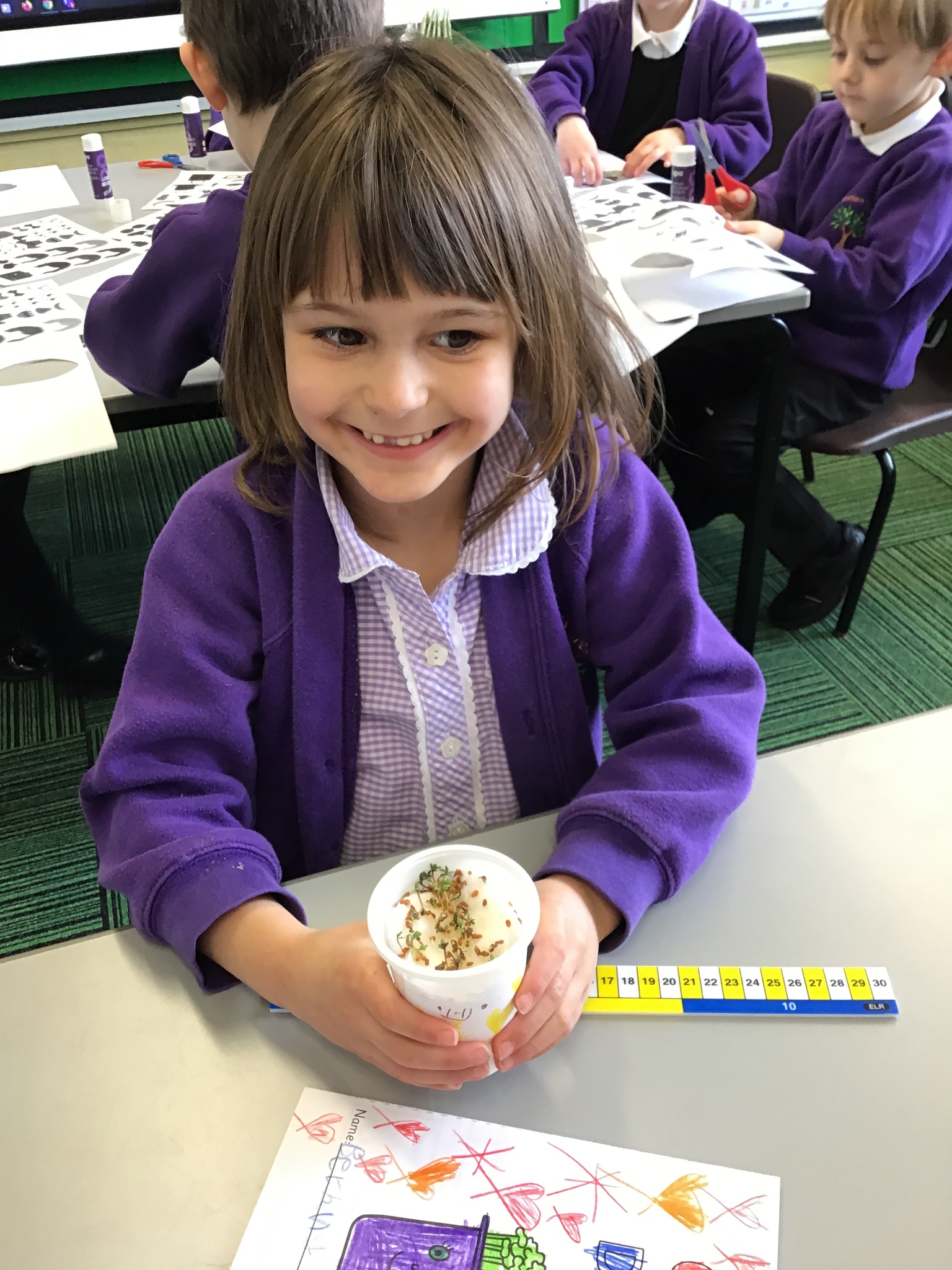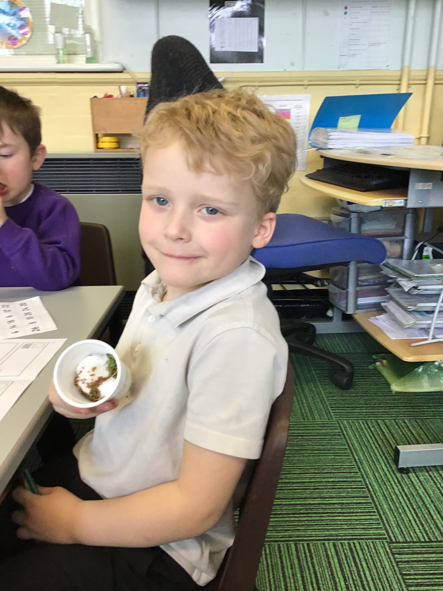 They have ticked off another one of their bucket list activities and have planted some cress seeds into little white pots to create cress heads. They are going to watch them grow over the next 7 days then bring them home to taste over the Easter holidays.