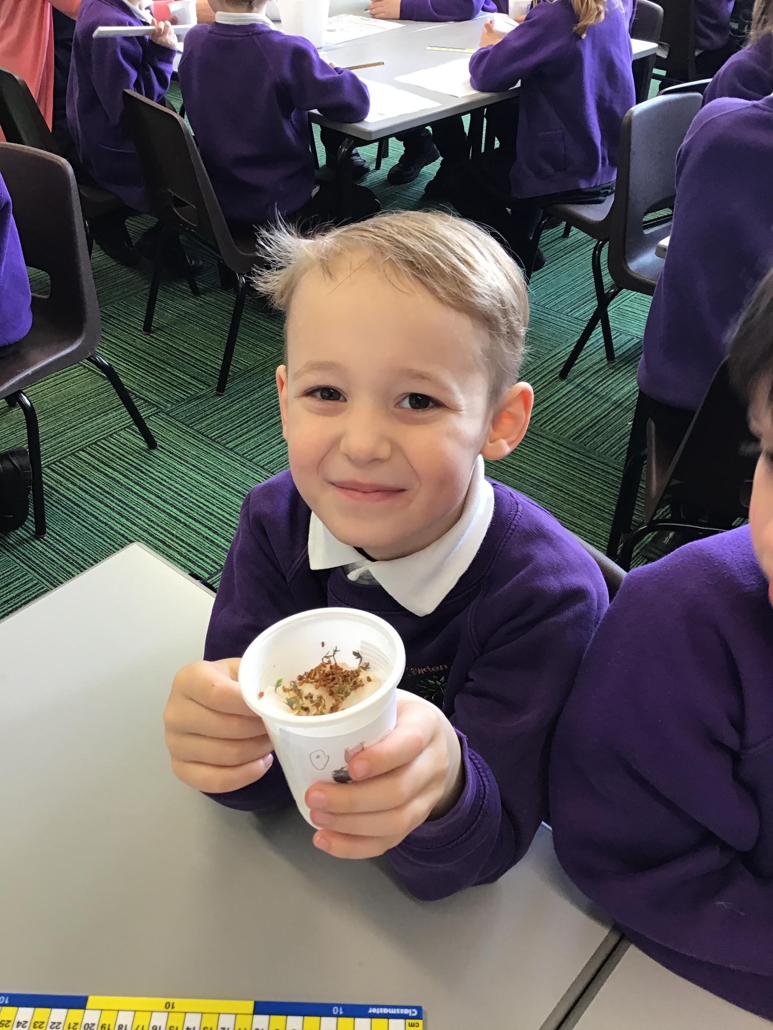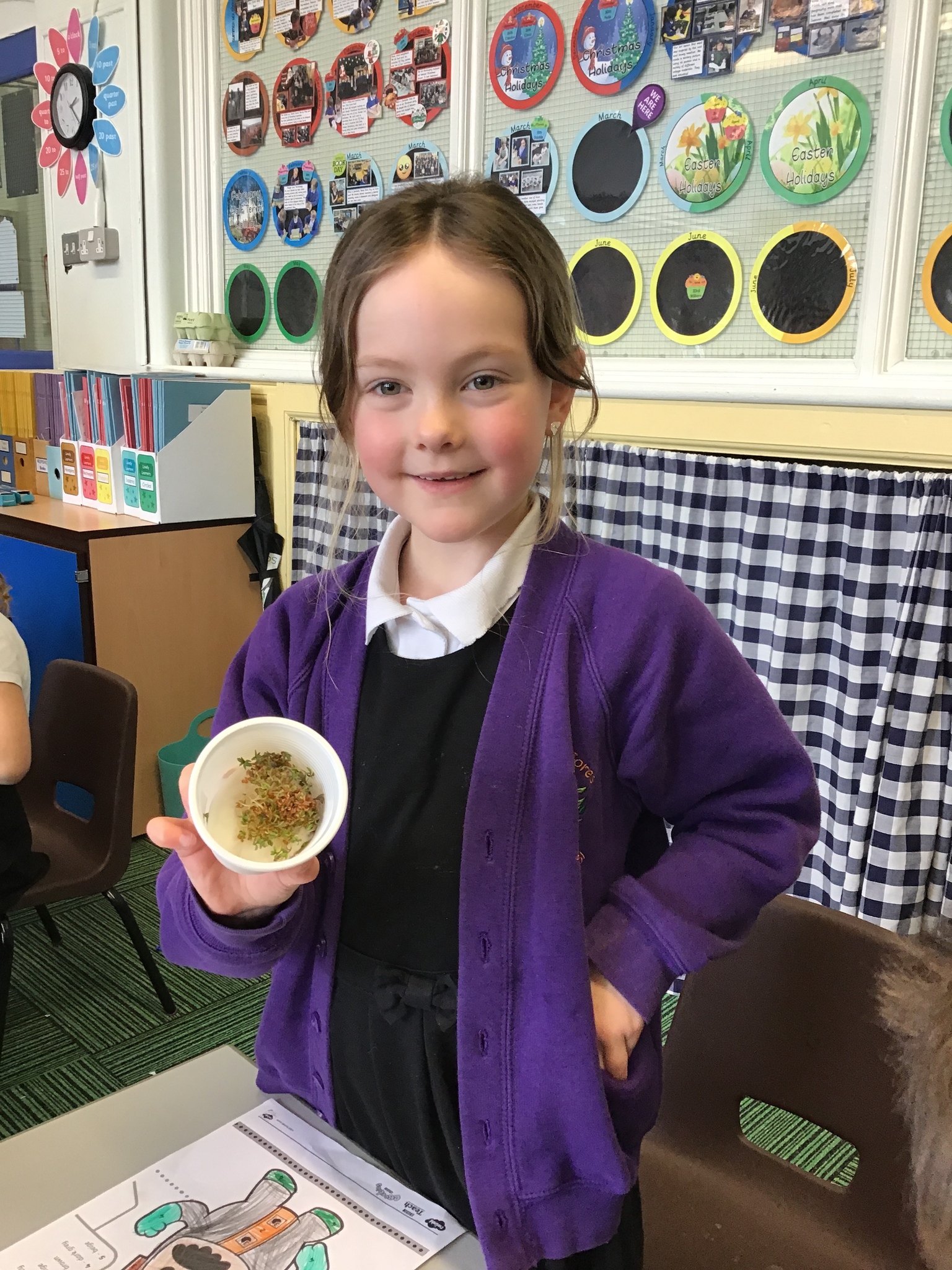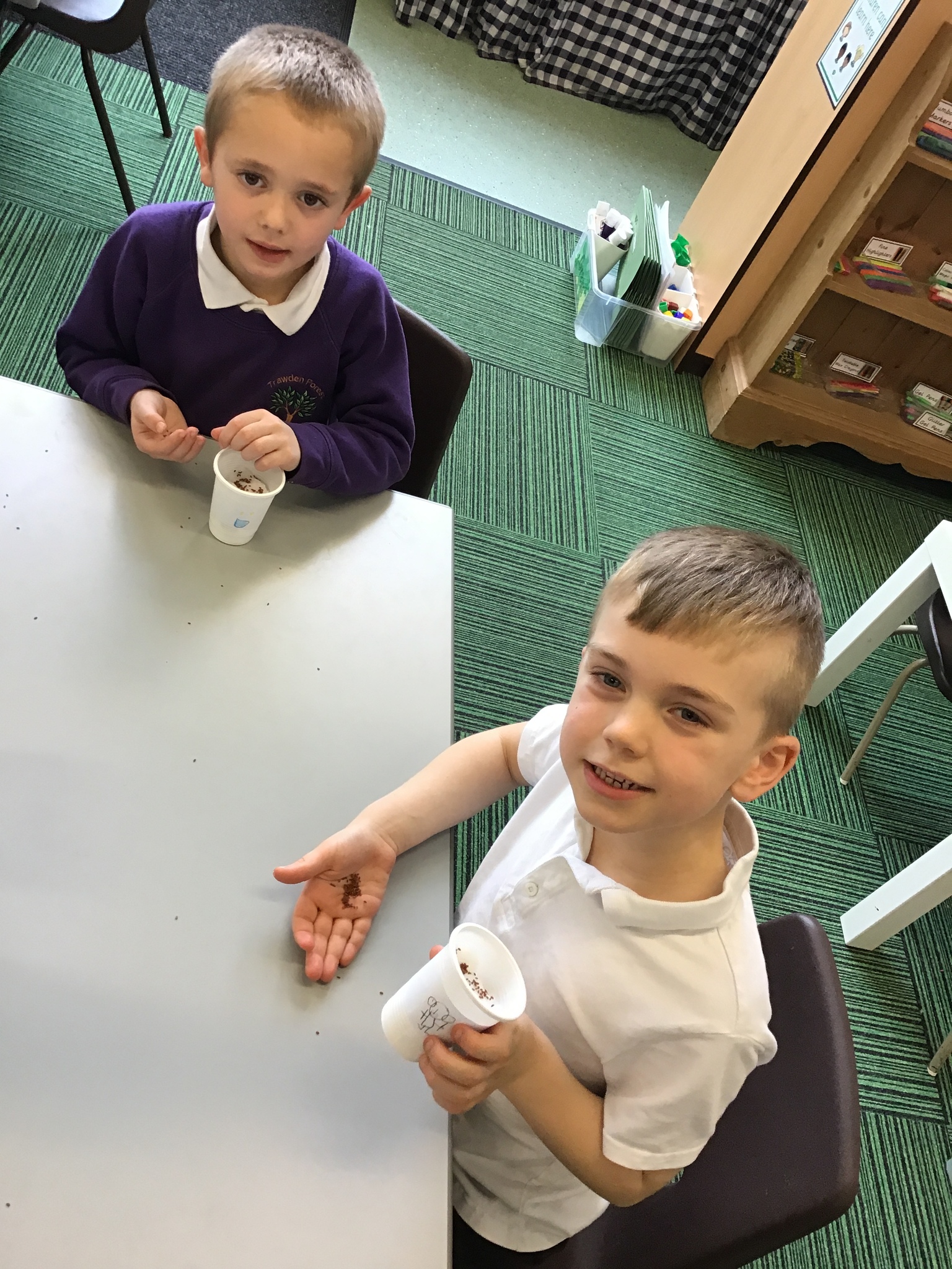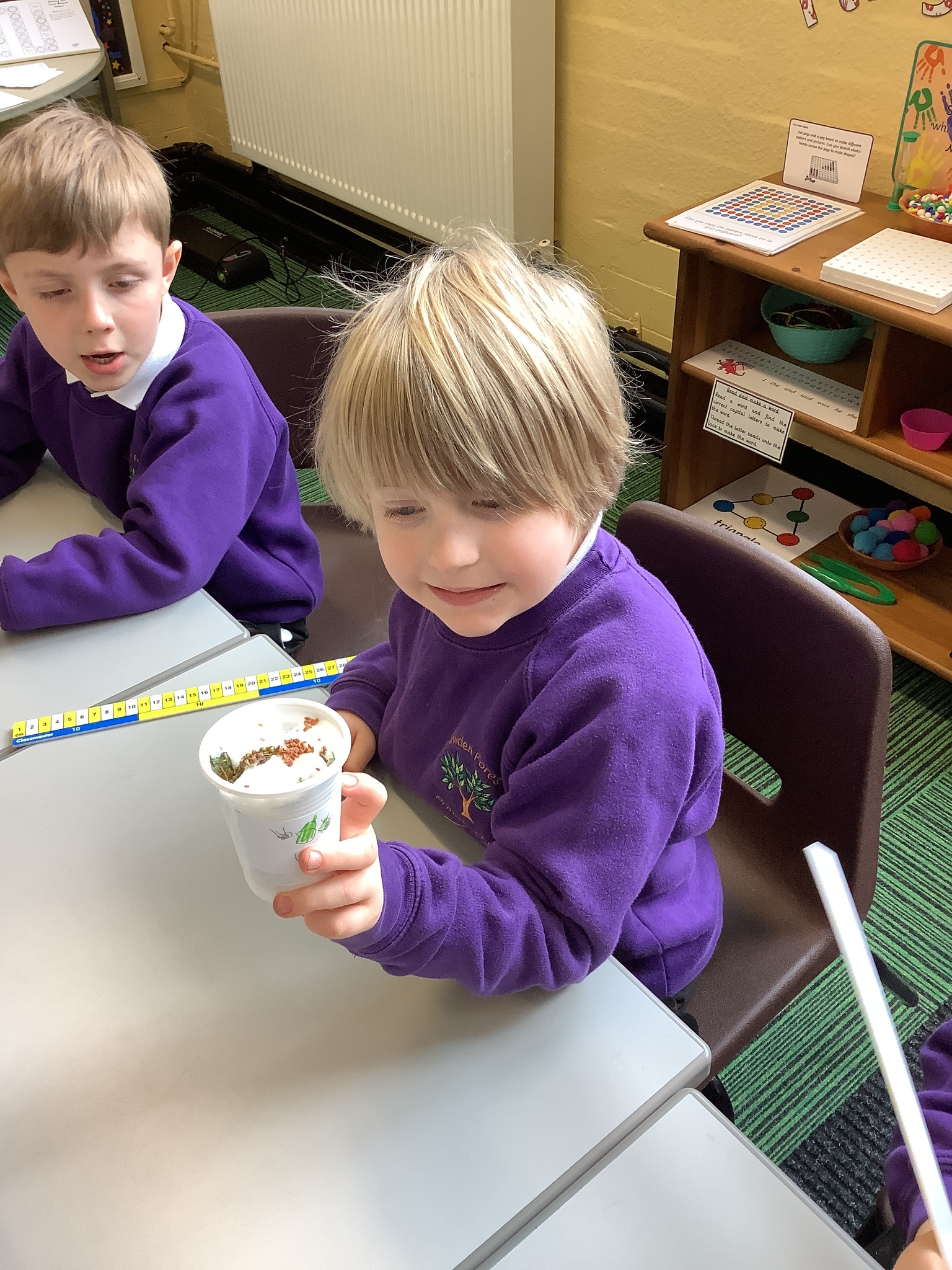 They have ticked off another one of their bucket list activities and have planted some cress seeds into little white pots to create cress heads. They are going to watch them grow over the next 7 days then bring them home to taste over the Easter holidays.