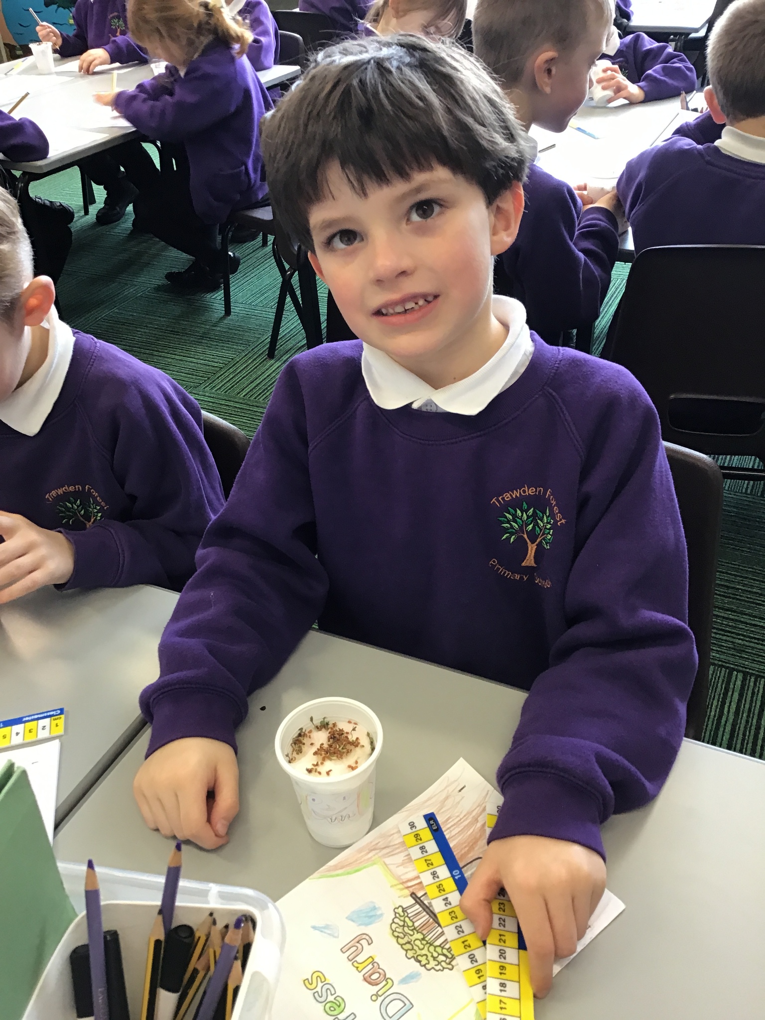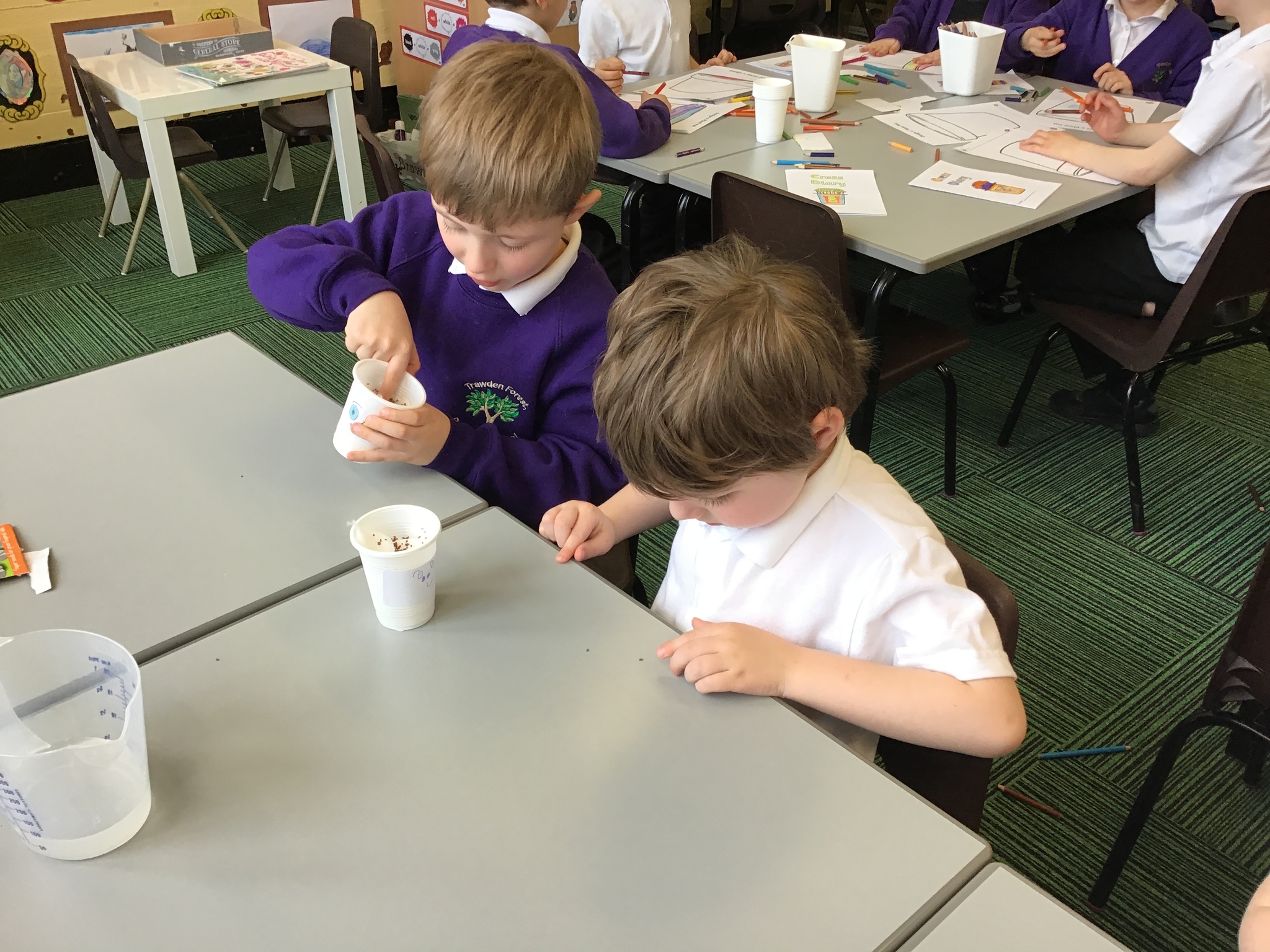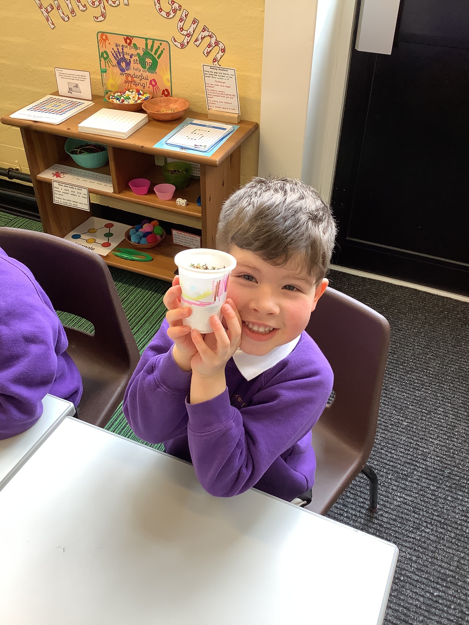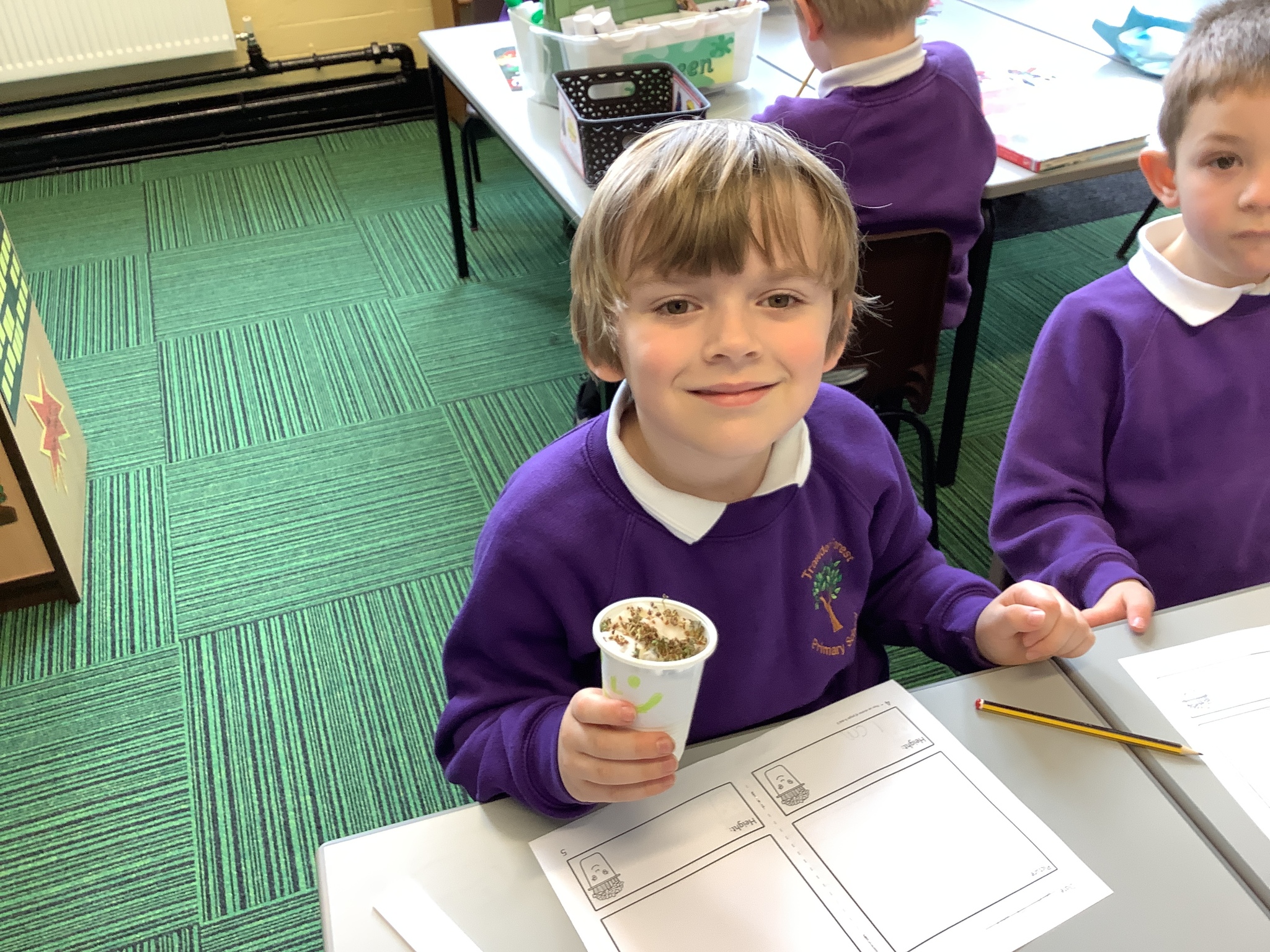 They have ticked off another one of their bucket list activities and have planted some cress seeds into little white pots to create cress heads. They are going to watch them grow over the next 7 days then bring them home to taste over the Easter holidays.