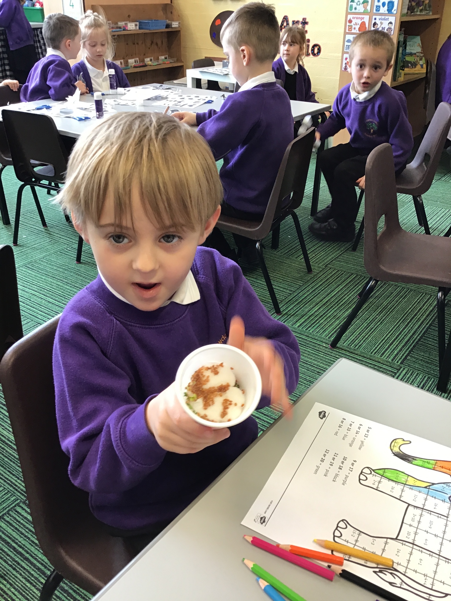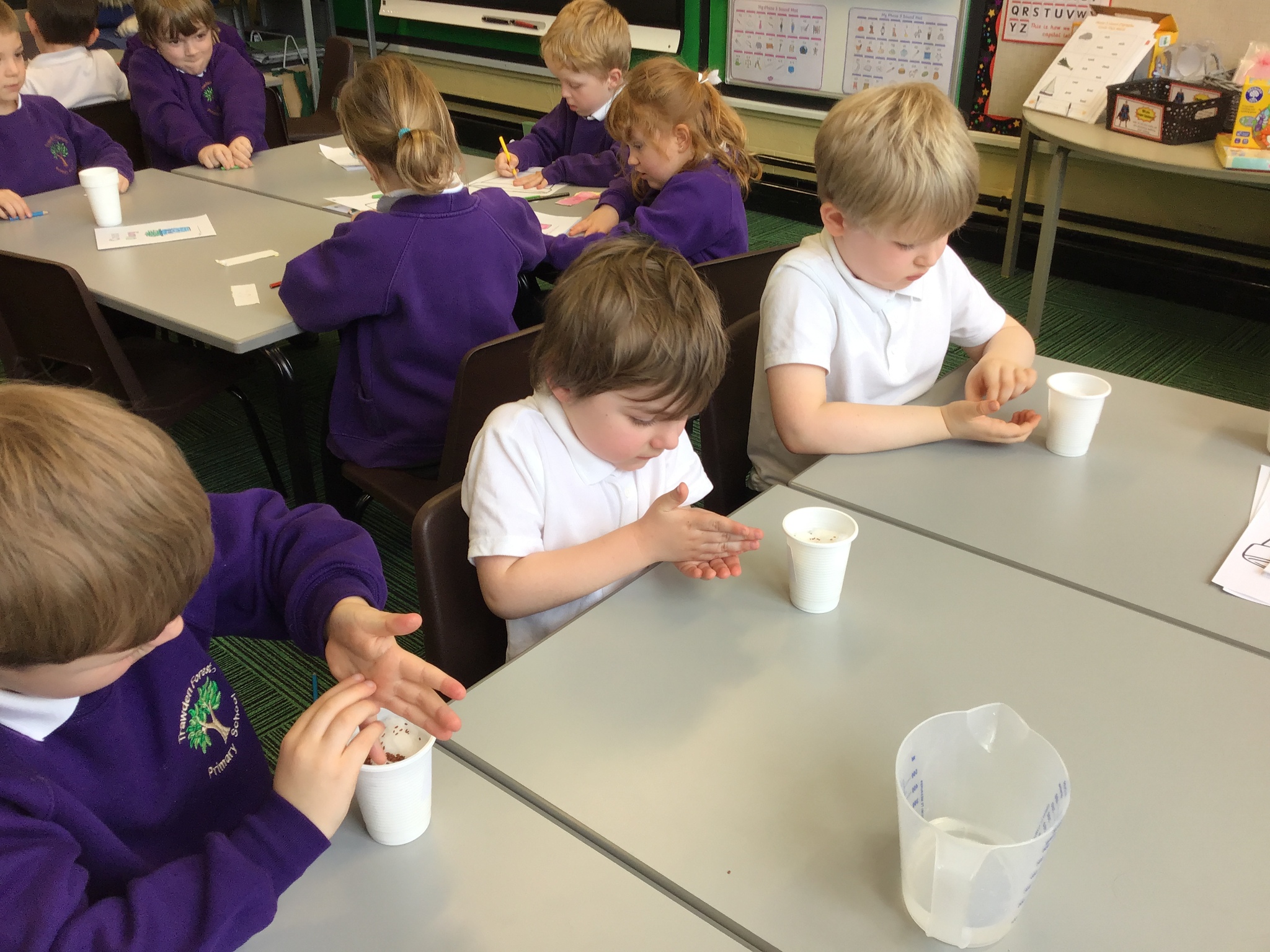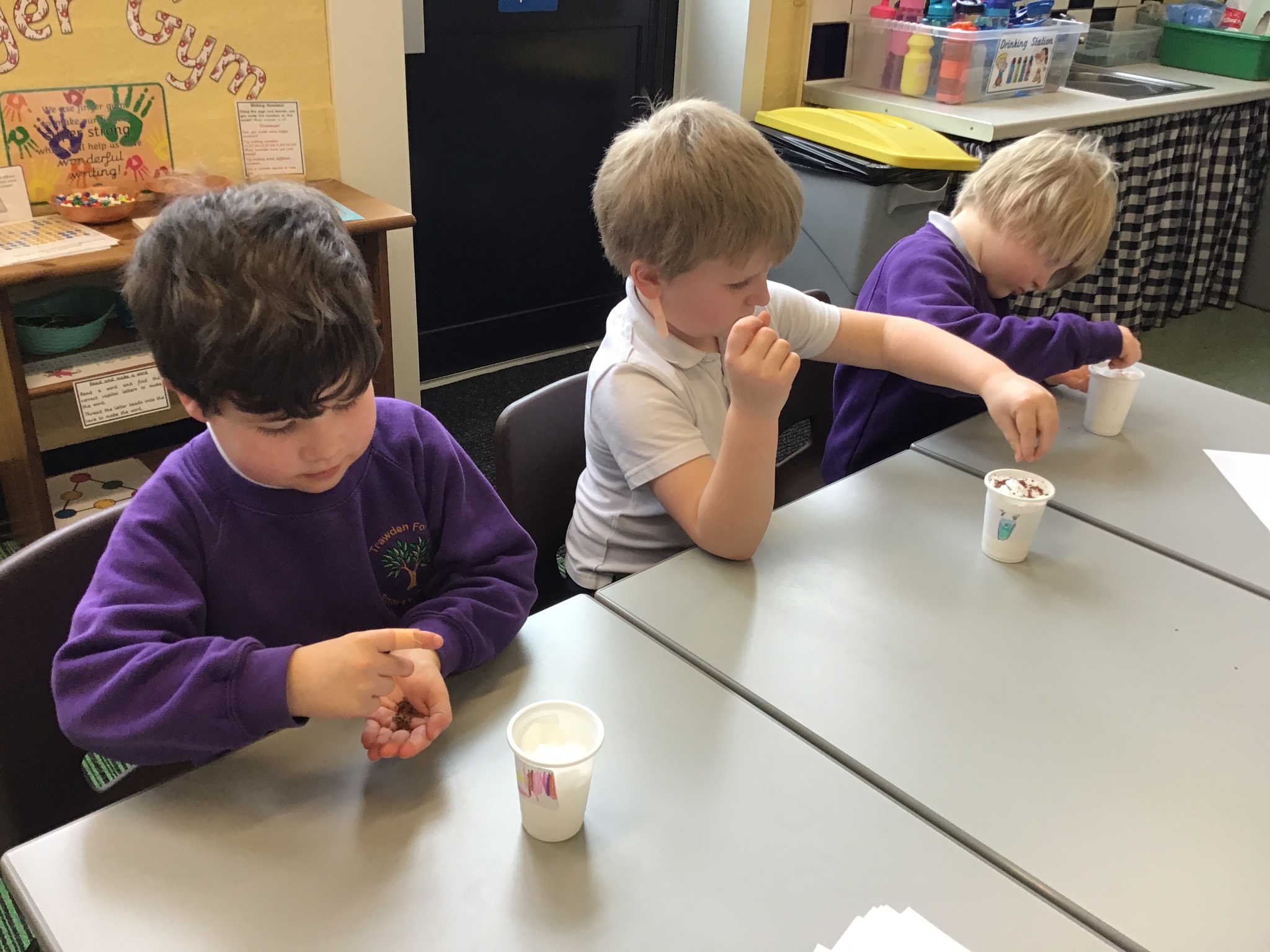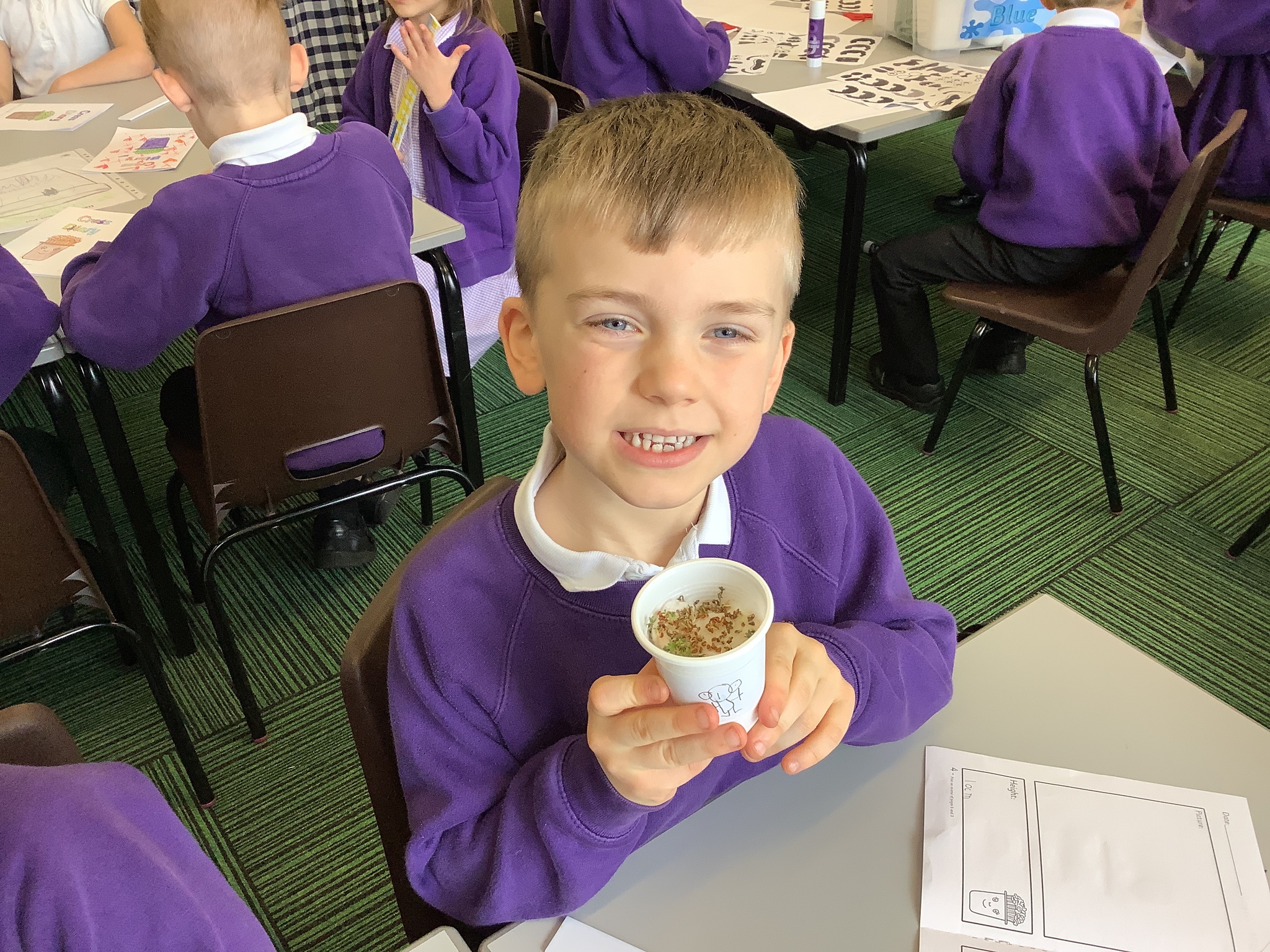 They have ticked off another one of their bucket list activities and have planted some cress seeds into little white pots to create cress heads. They are going to watch them grow over the next 7 days then bring them home to taste over the Easter holidays.