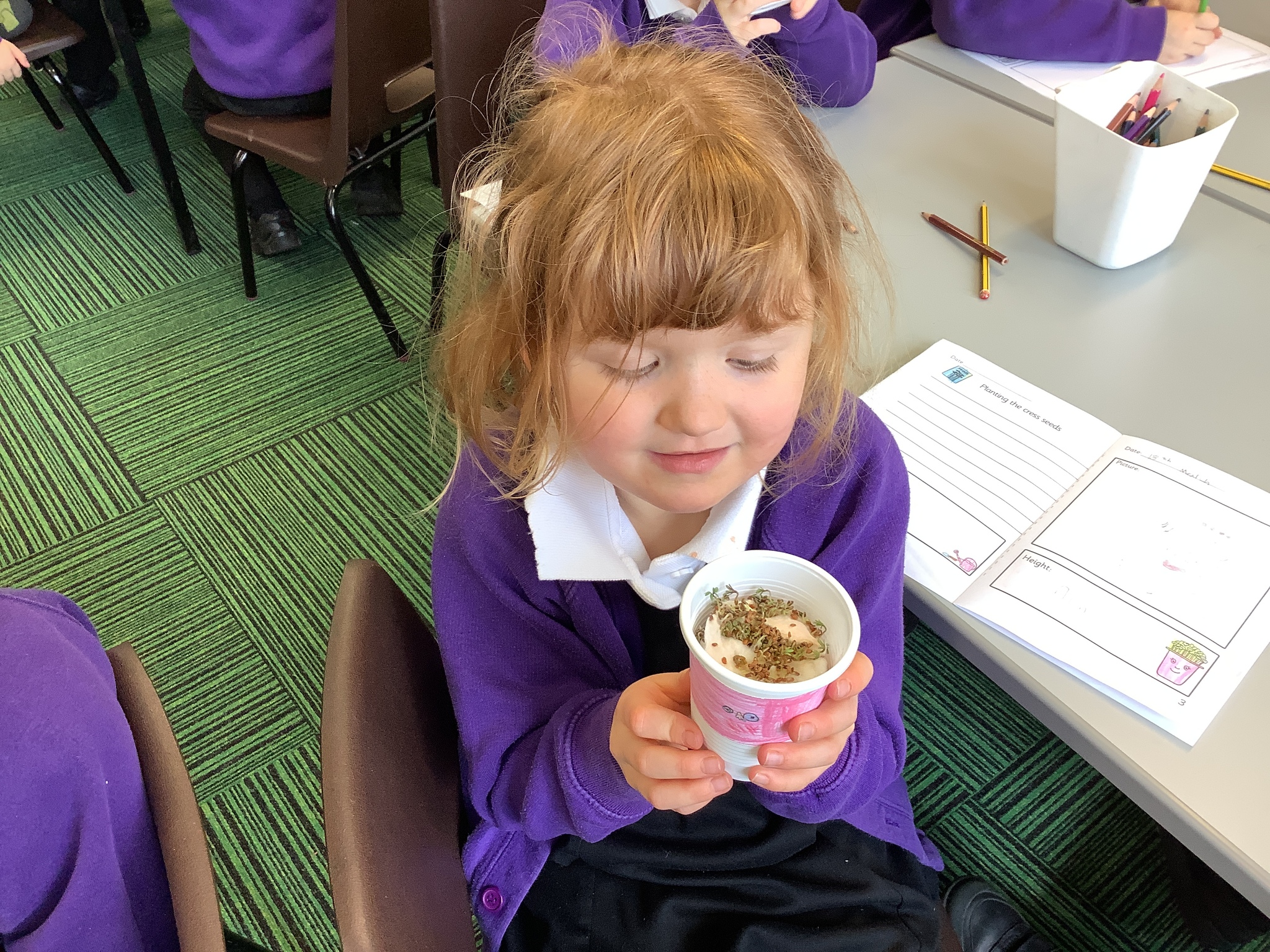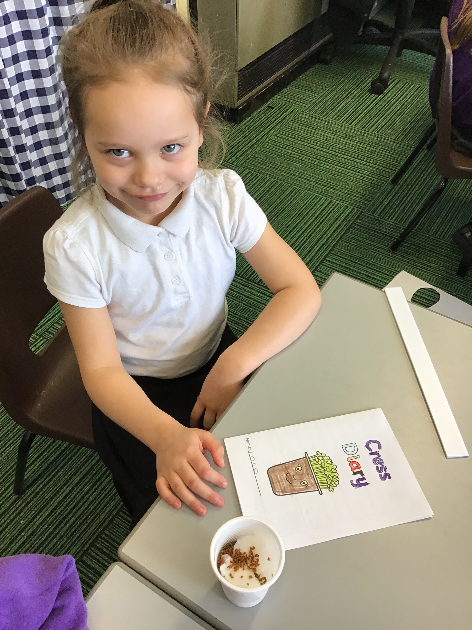 They have started a cress diary and will be completing it every few days to see how their cress is growing.