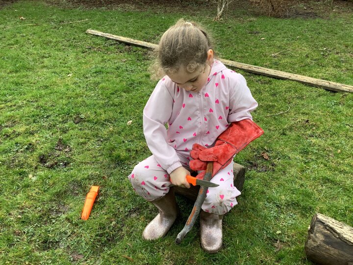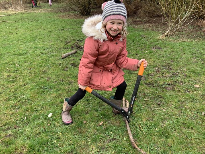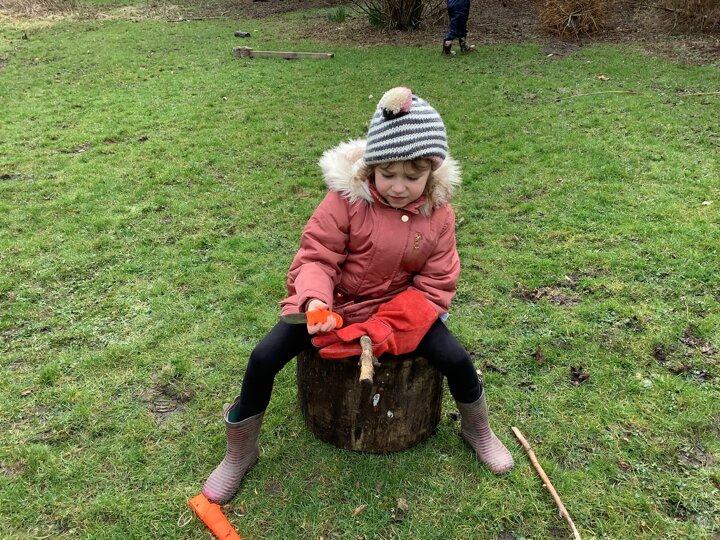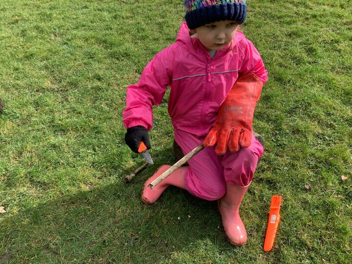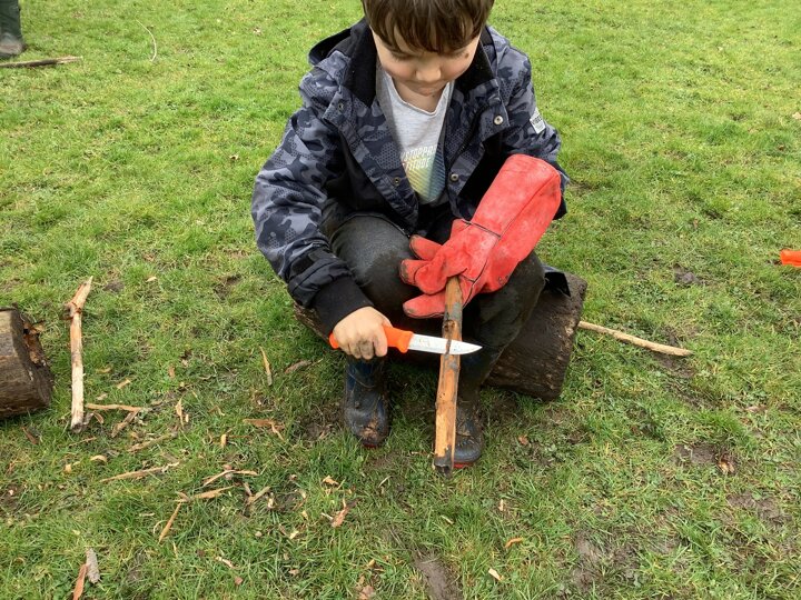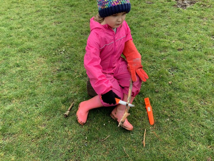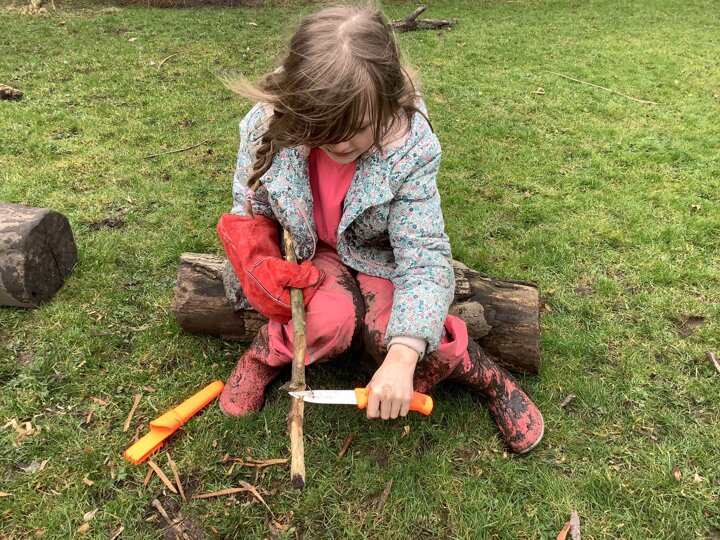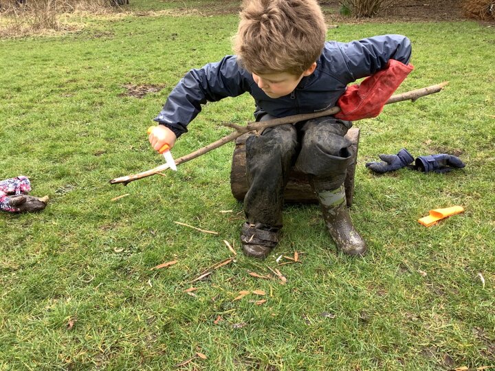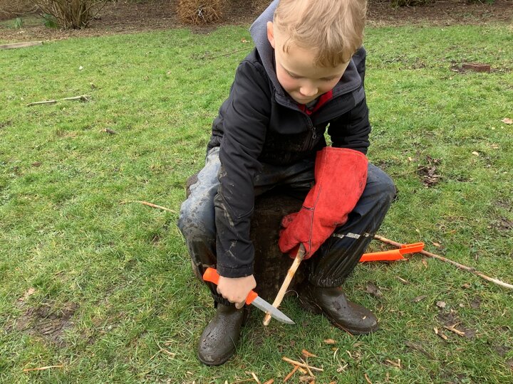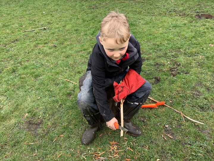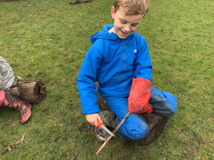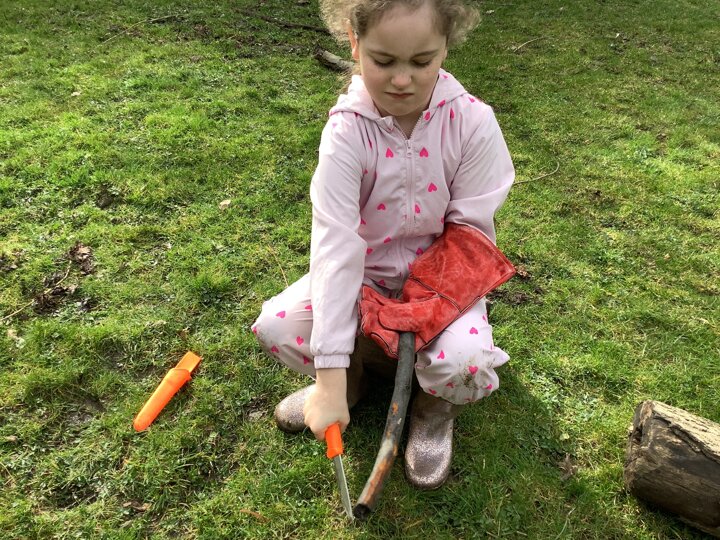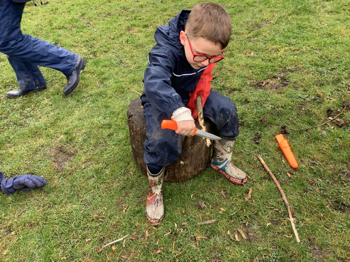 Today, Year 2 had one of their most exciting and dangerous Forest School lessons so far! They had the opportunity to use knives to remove the bark from branches.