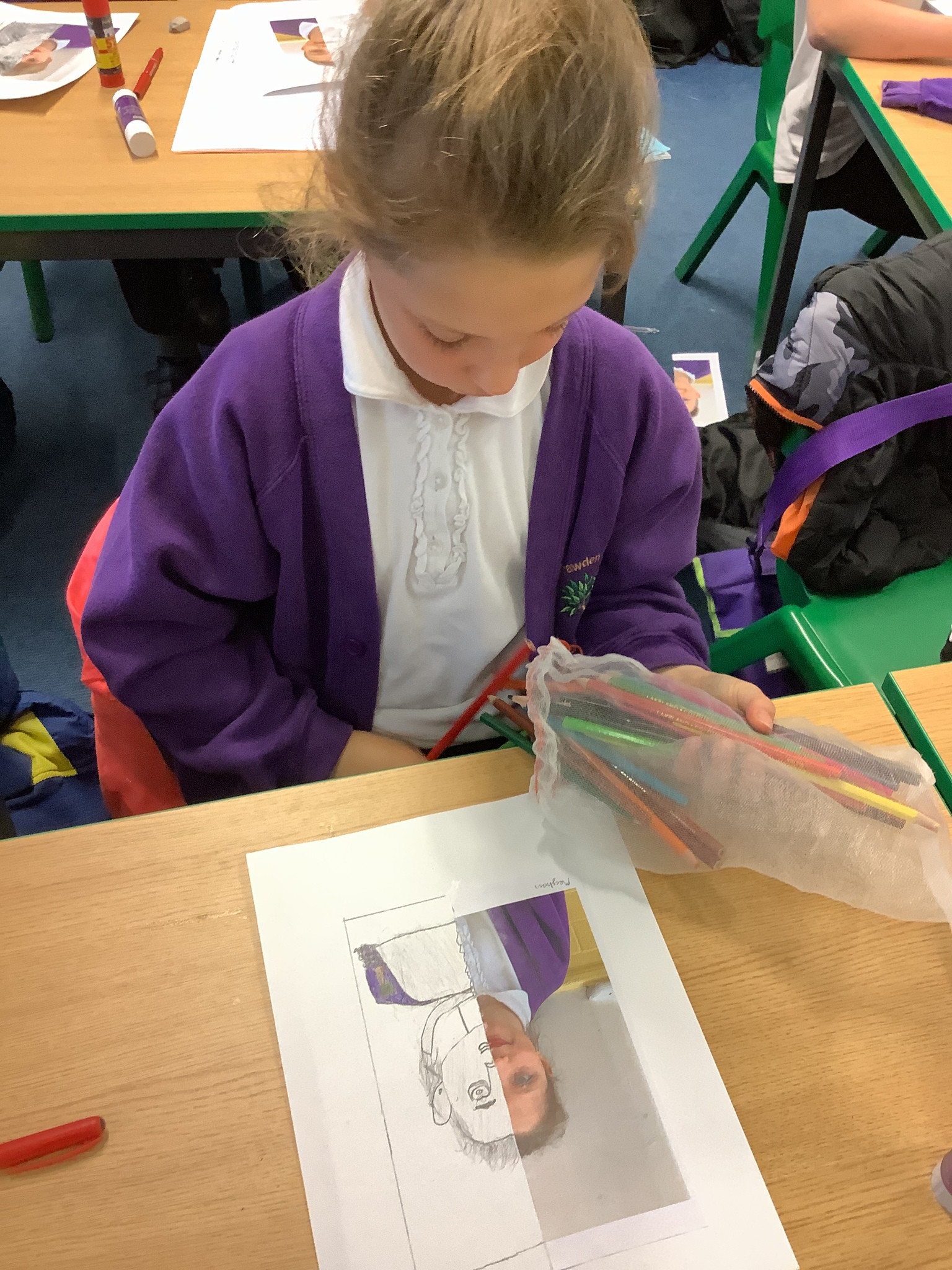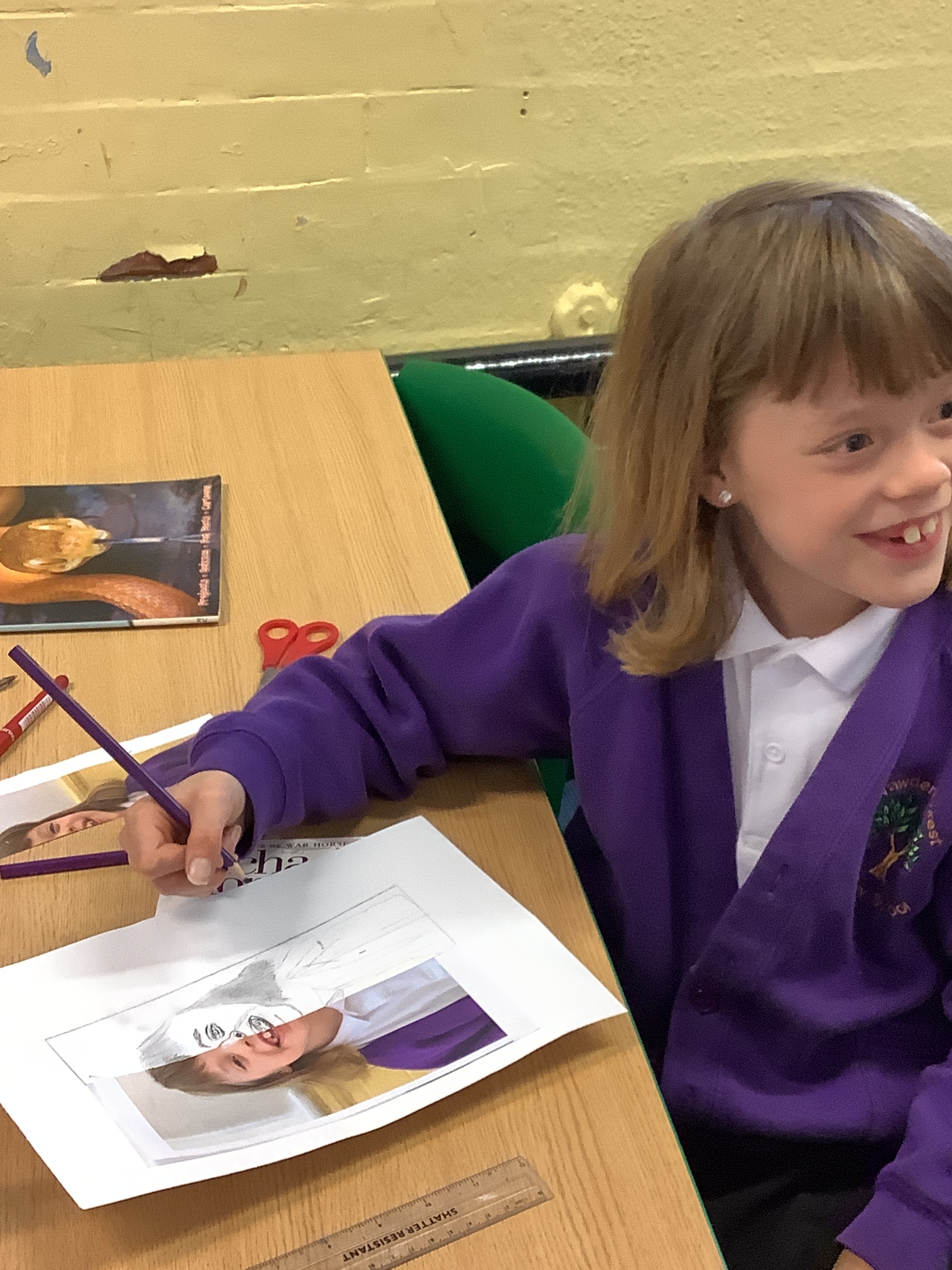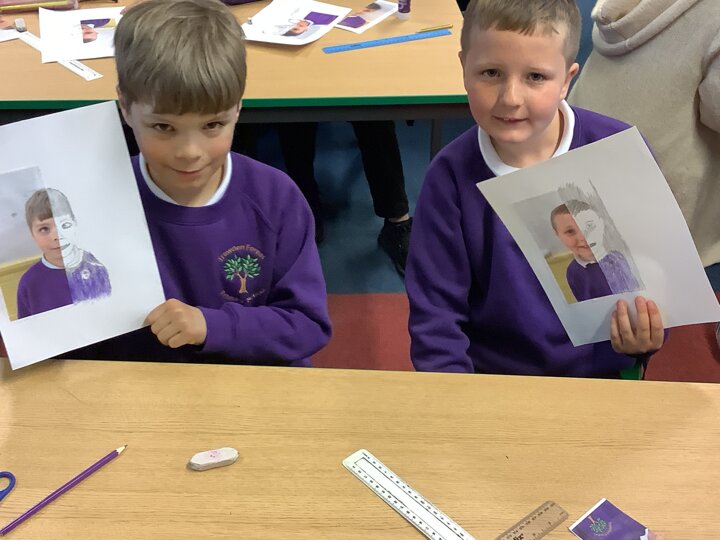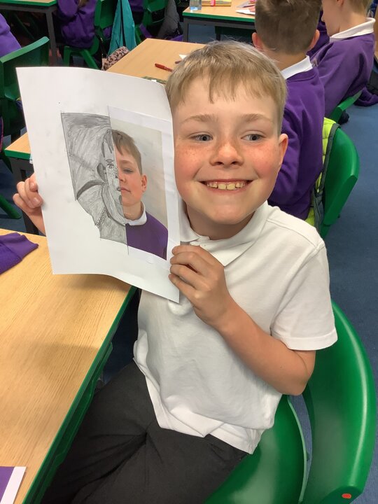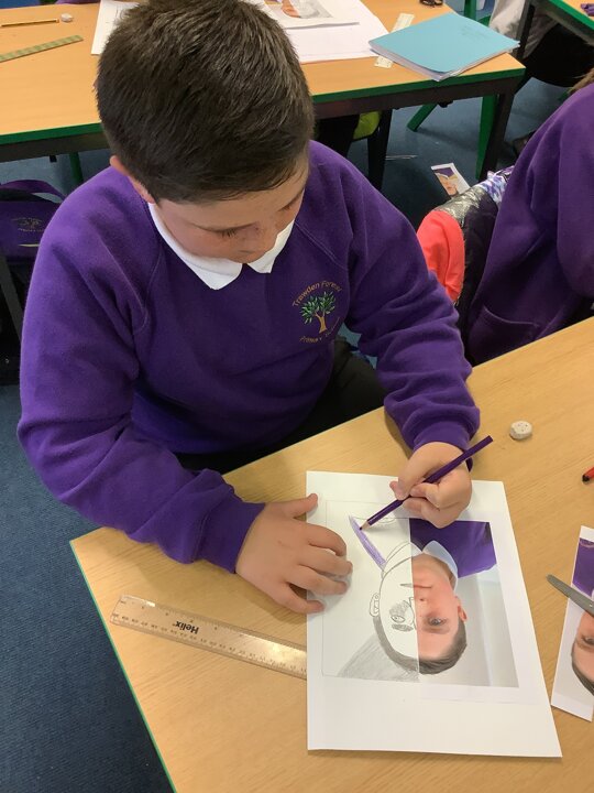 Mrs Atkinson is extremely proud of the effort that Year 4 put into their art work this afternoon. They used a pencil to create lines and some shading to try to bring their portraits to life. Amazing work!