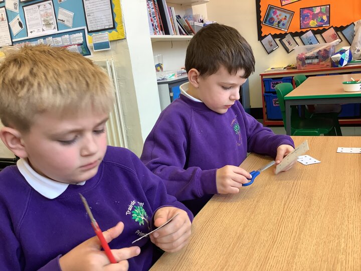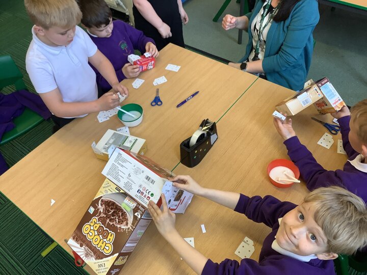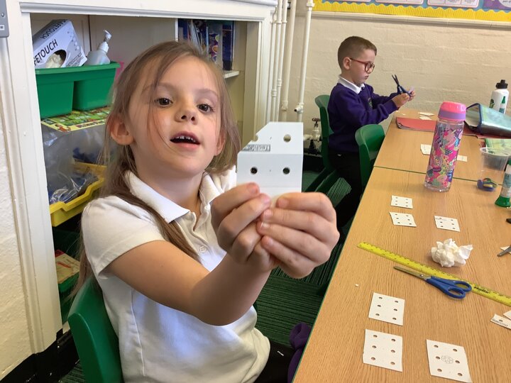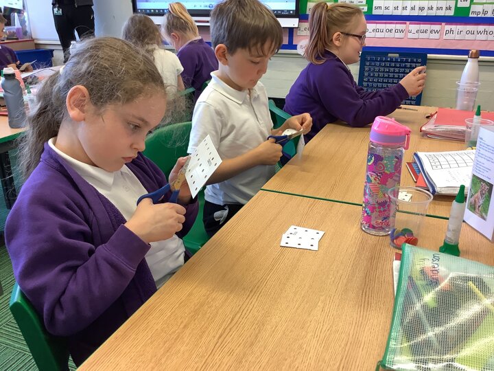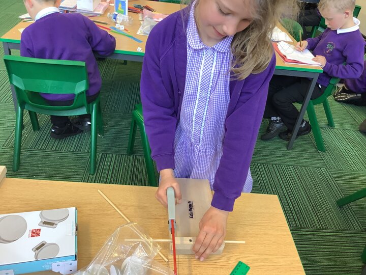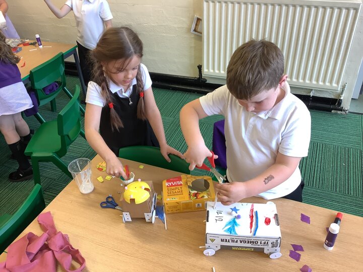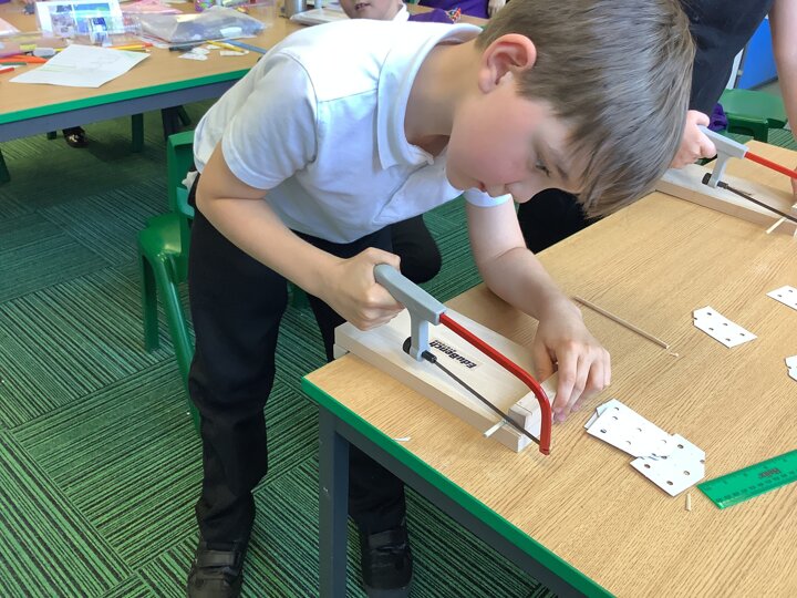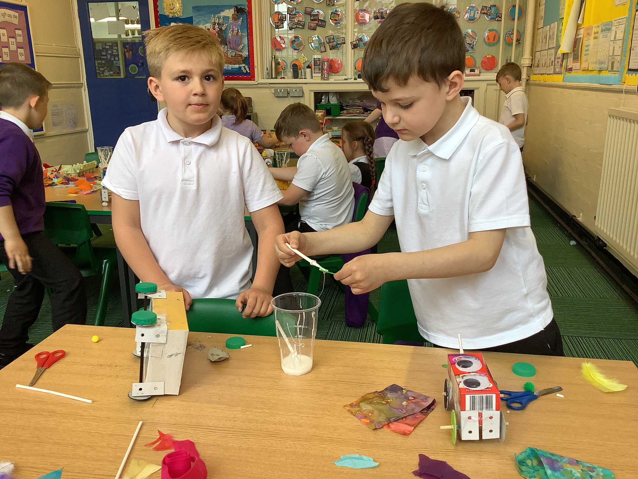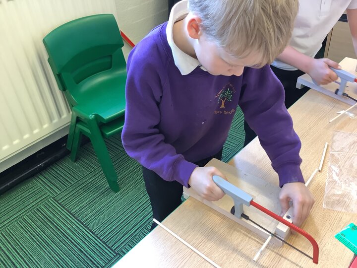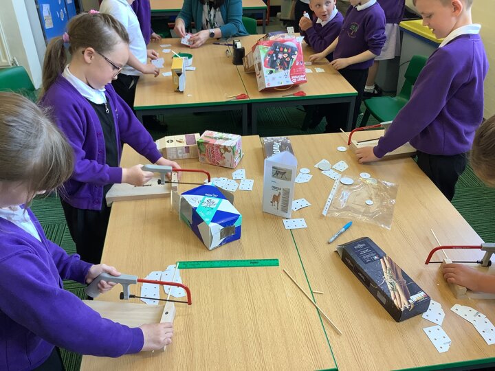 While we were making them, we had to cut out specific shapes to attach our axles, glue them to our vehicle and safely use a junior hacksaw to cut the dowel rod to the correct size for our axles.