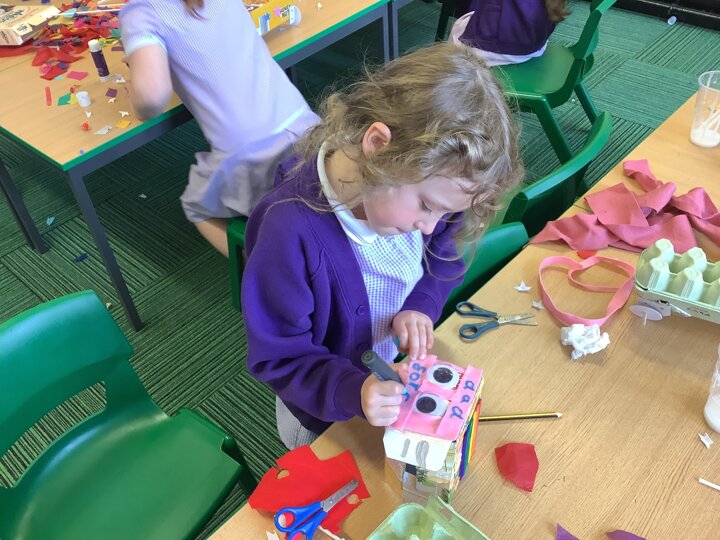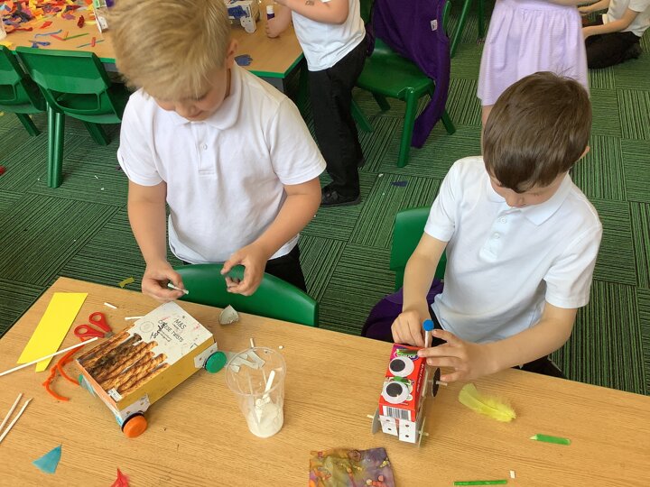 During our decorating stage, we could let our imaginations go wild and used any of the resources available to create our own super colourful and unique vehicle! This was a lot of fun!