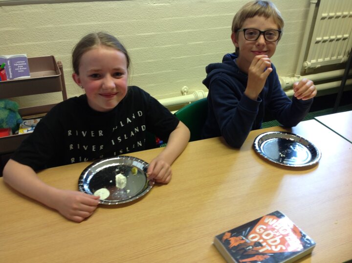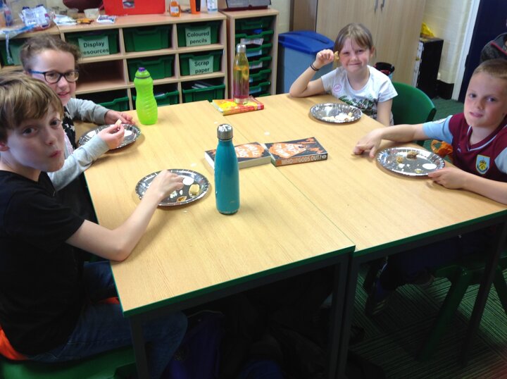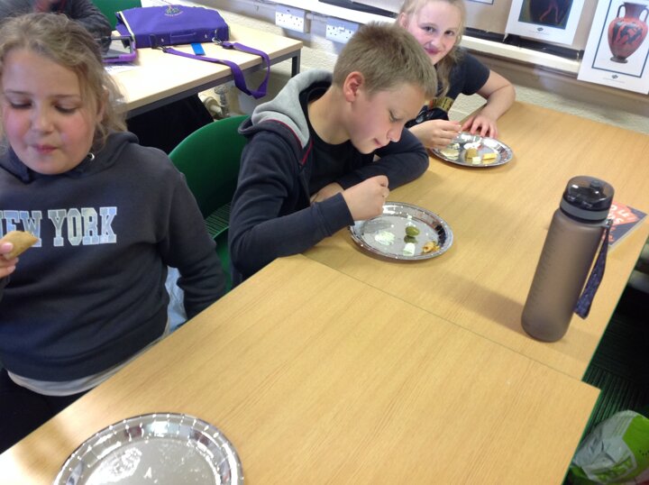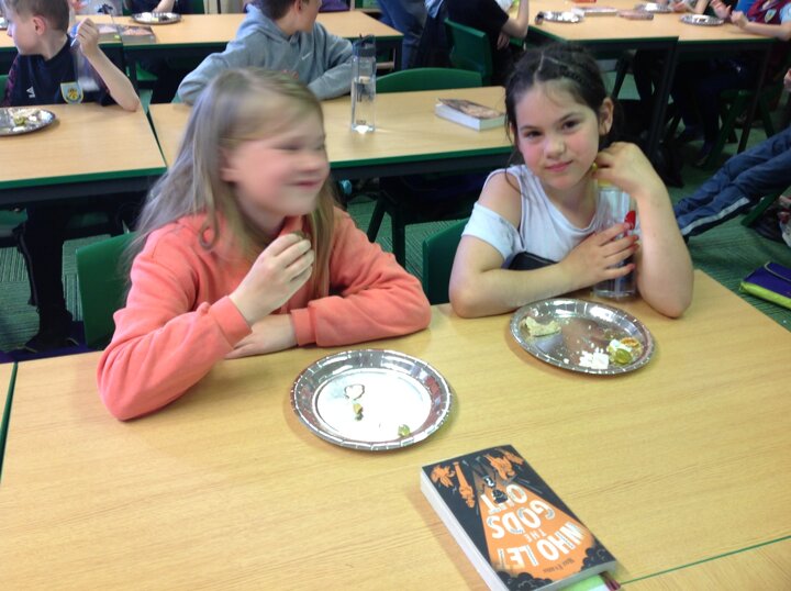 We've had a great Greek day today in Year Five! One of our bucket list activities was to have a Greek Day, which we've completed at the end of our Greek topic. We've drafted our paragraphs ready for our non-chronological reports about the Greek legacy, learned about the Greek alphabet, learned about Athens and Sparta, created our own Athenian and Spartan armies or our own Greek houses during Forest School, and rounded the day off with some Greek food tasting and our class book 'Who Let the Gods Out?'. Many of the children tried everything; the figs, feta cheese, olives, pitta bread, tzatziki and honey. For some, feta cheese and olives weren't their thing, but I'm really proud that they would give it a go.