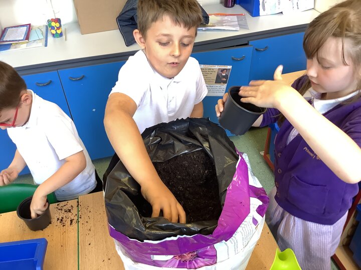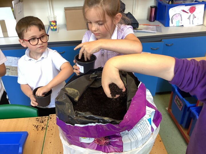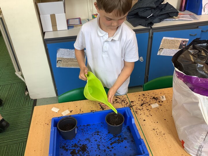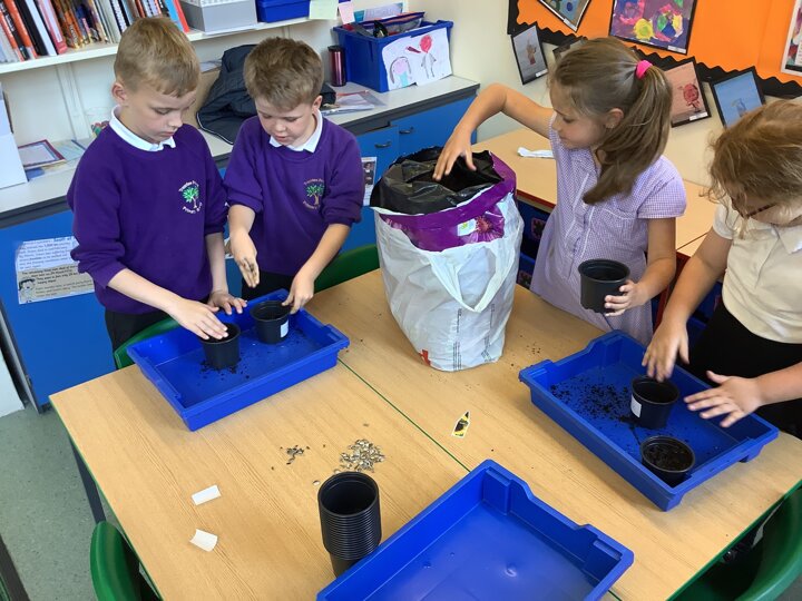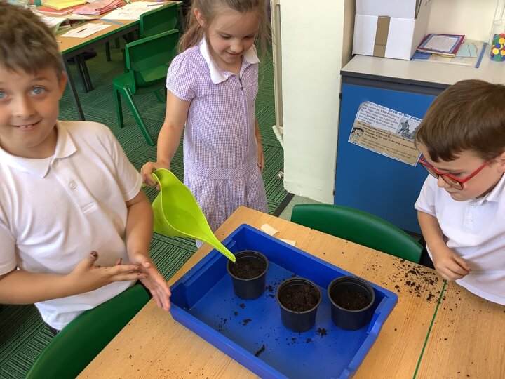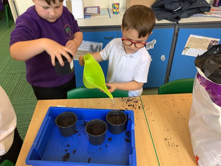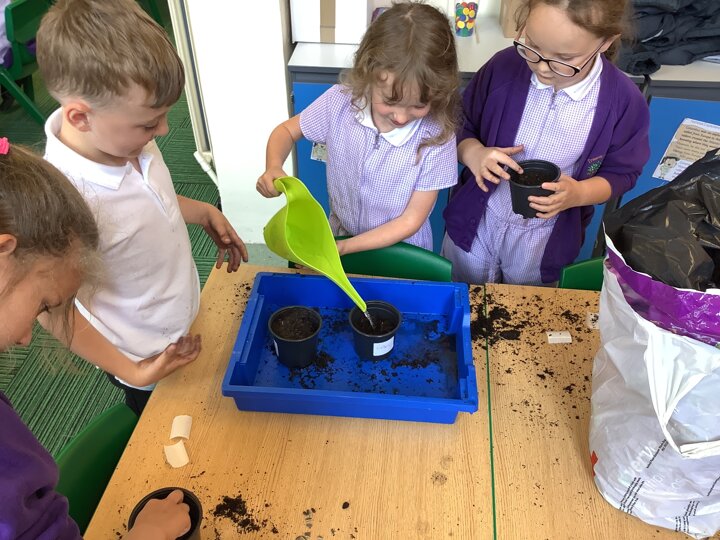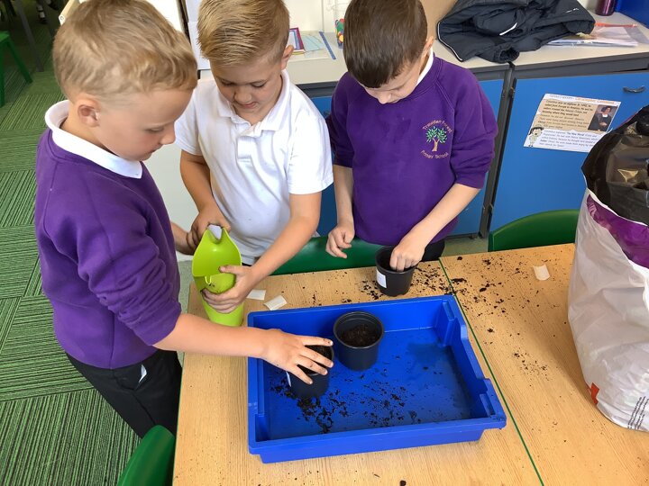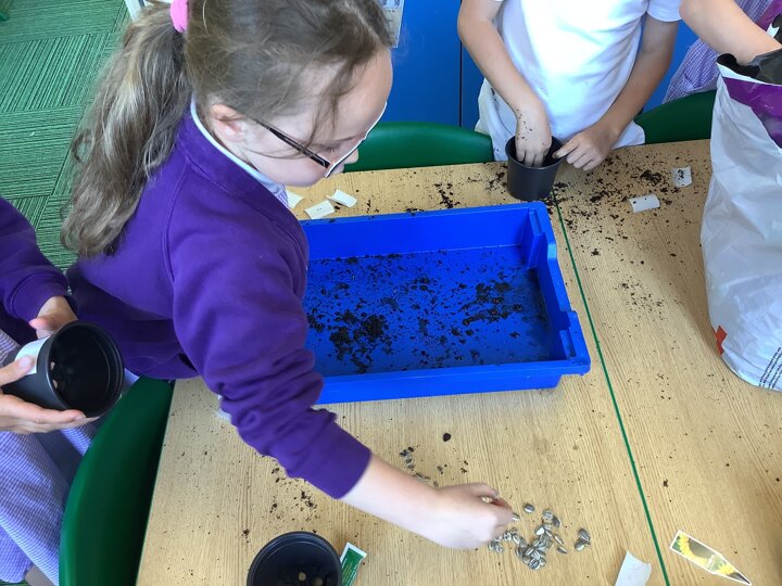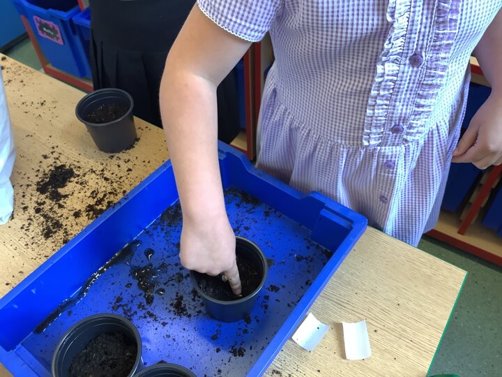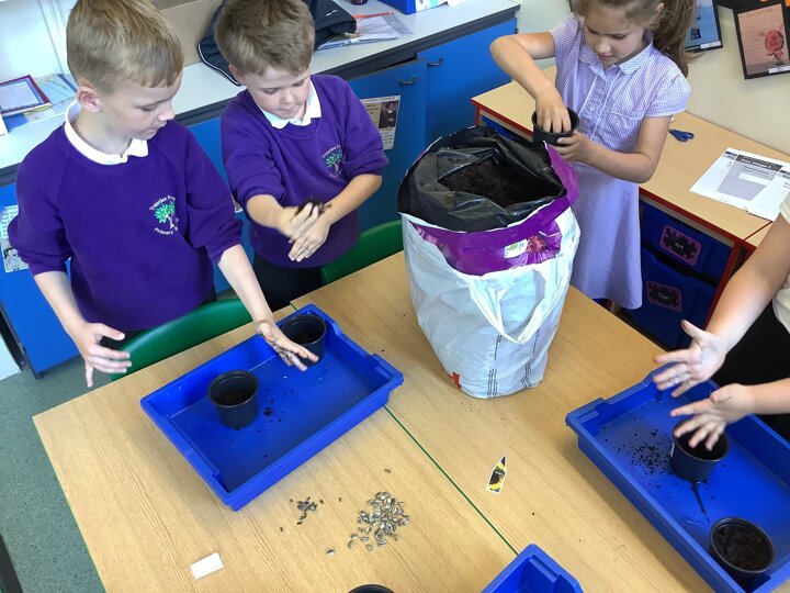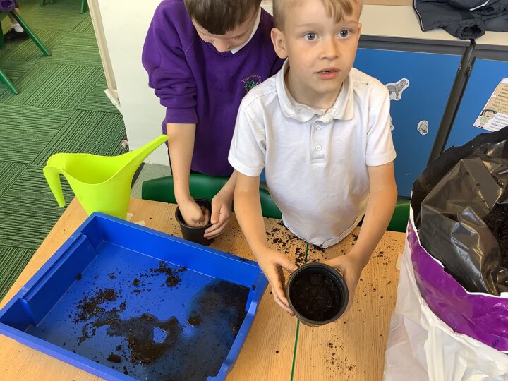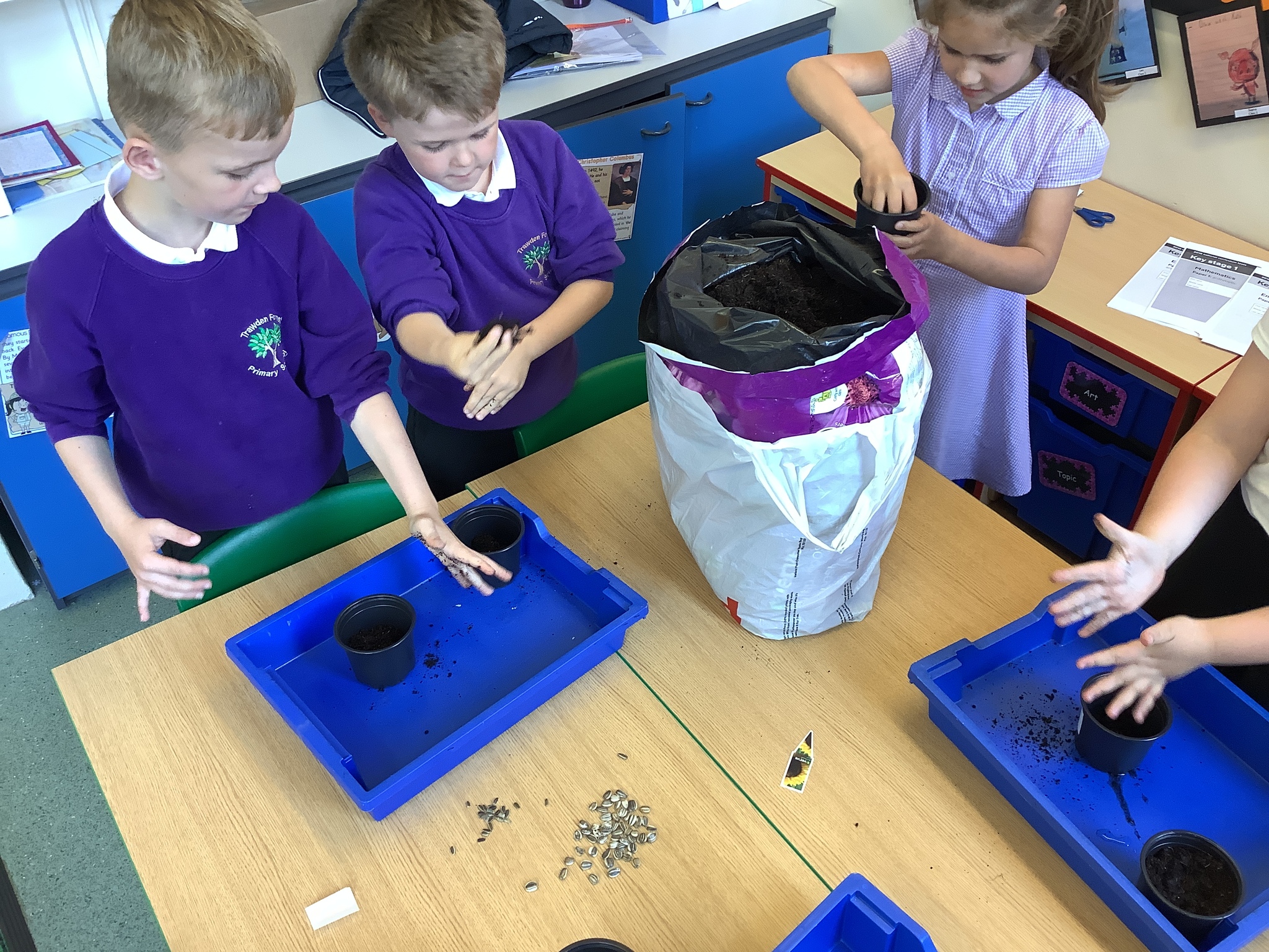 Today, Year 2 were all able to plant 2 sunflower seeds each as part of our Science topic about plants. We are hoping to watch them grow, so we can observe part of their life cycle, before taking them home at the end of the year.