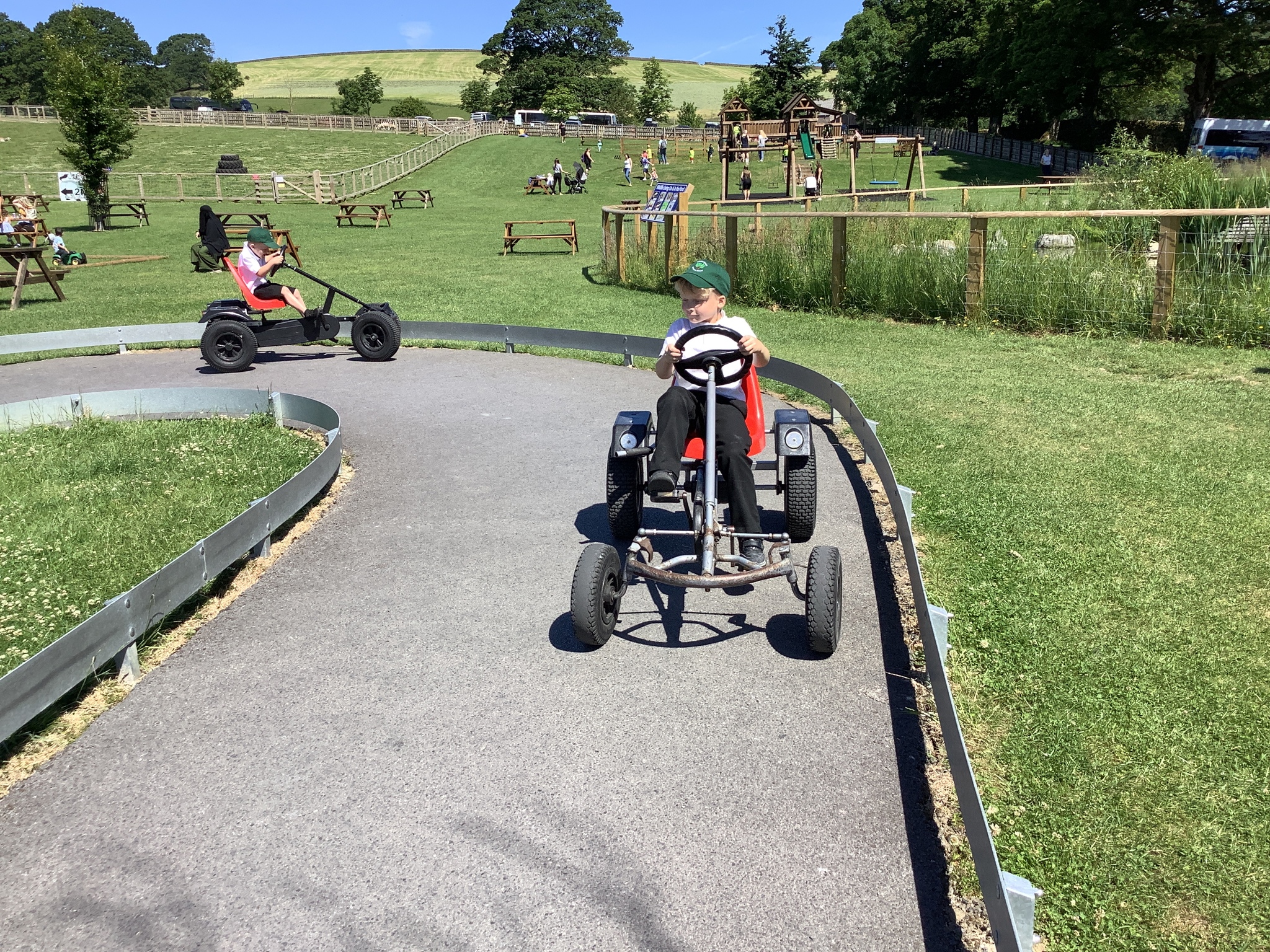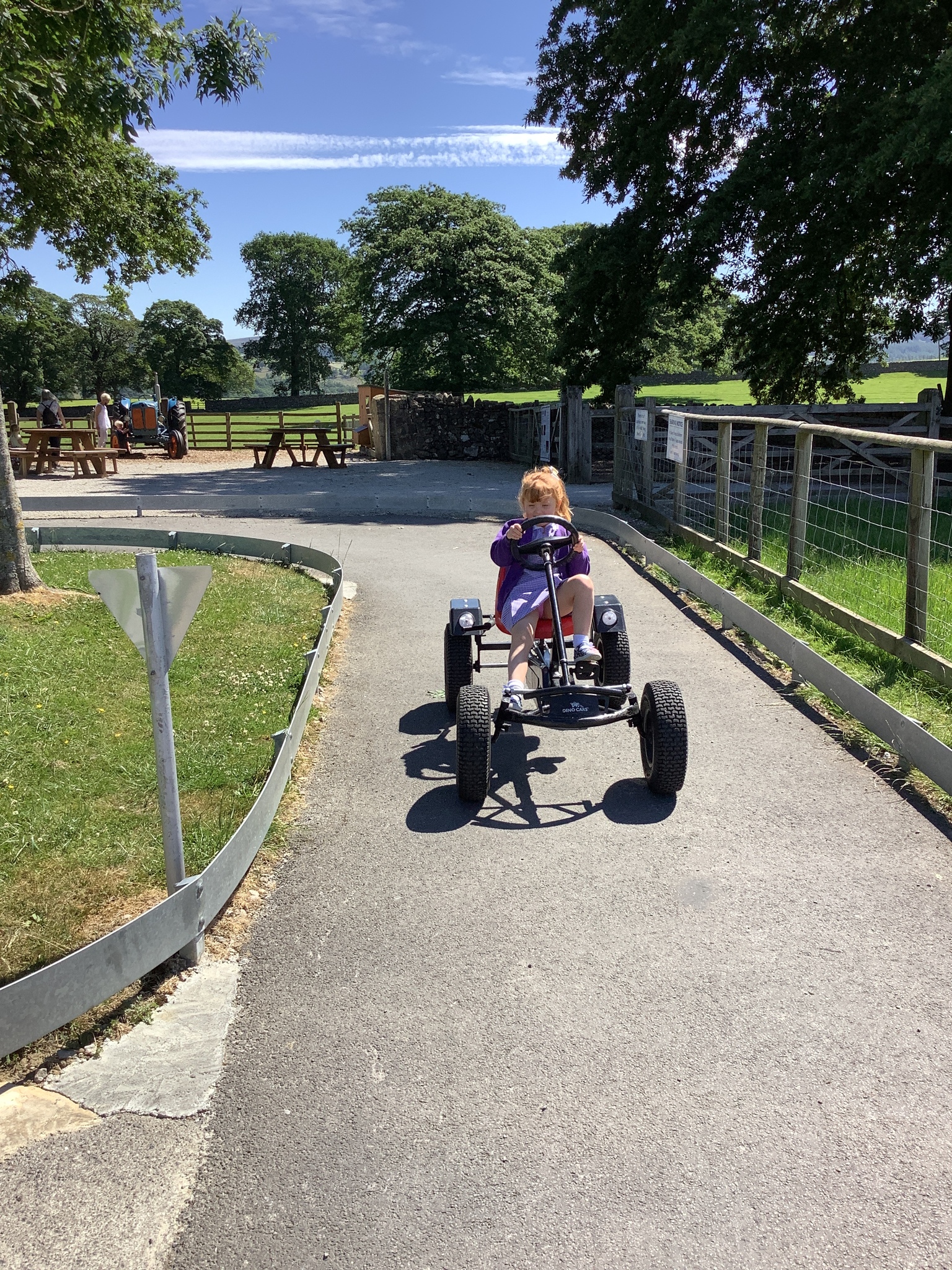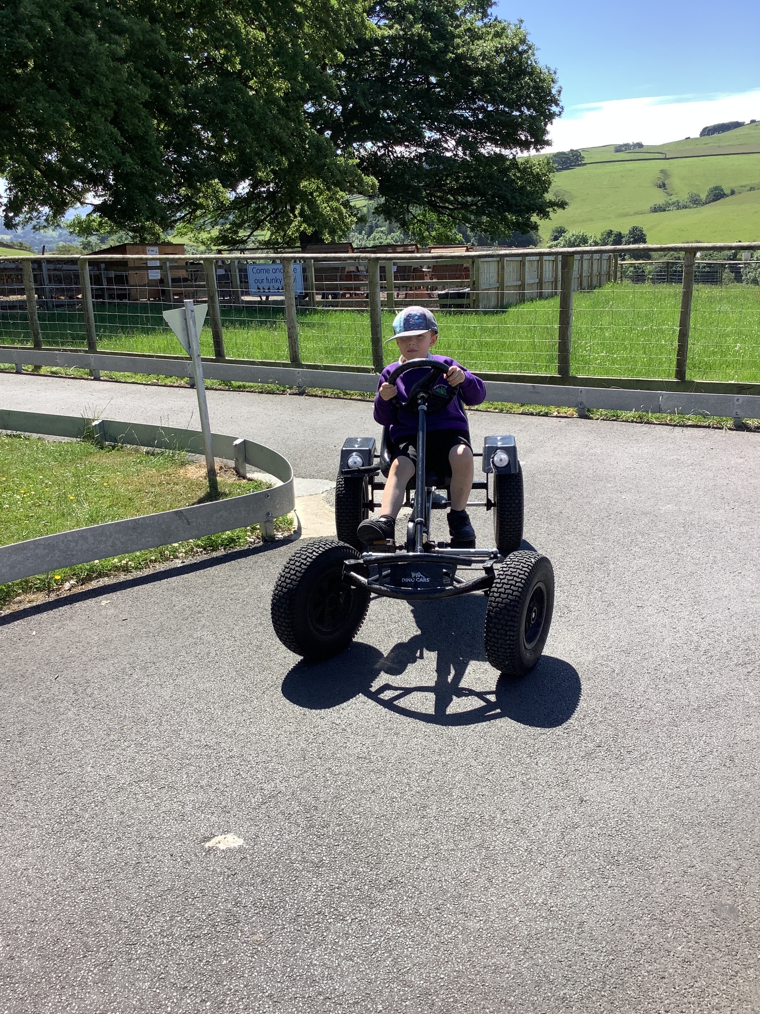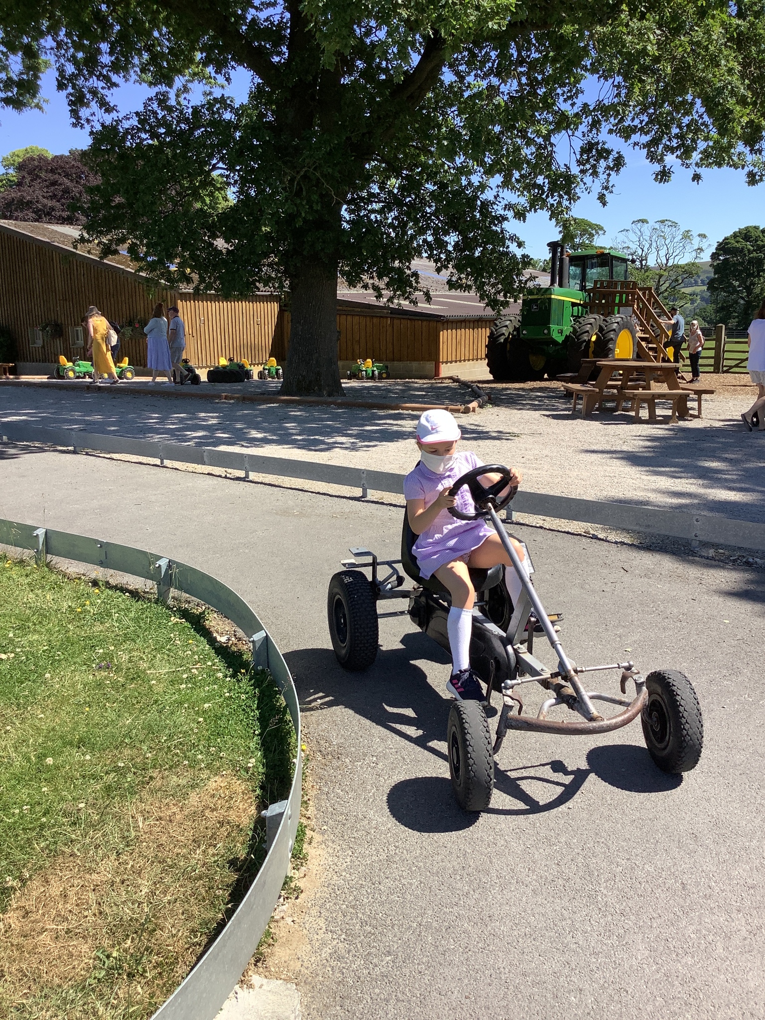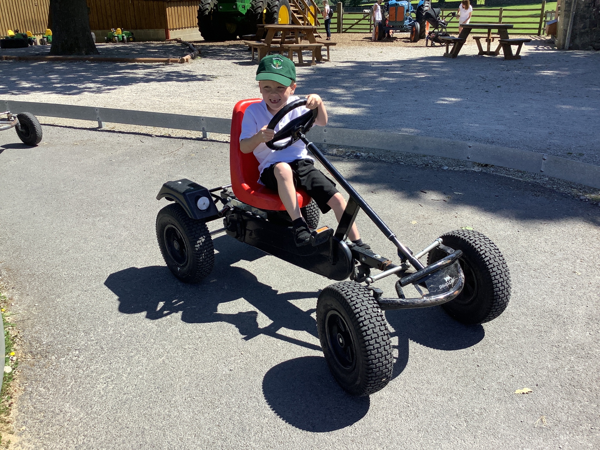 There was a lot of fun to be had at the farm and they kept us busy all day. We went on a bumpy tractor ride to see some sheep, lambs, cows, calves and a bull called Fernando! We collected eggs from the hens and got to hold some cute chicks. We mixed some milk for the calves and got to give it them in a bottle. We were licked by some goats and kids whilst they were trying to eat their food from our hands. We got to hold and stroke lots of guinea pigs. We played on the huge climbing frame, made some music and went on the go karts.