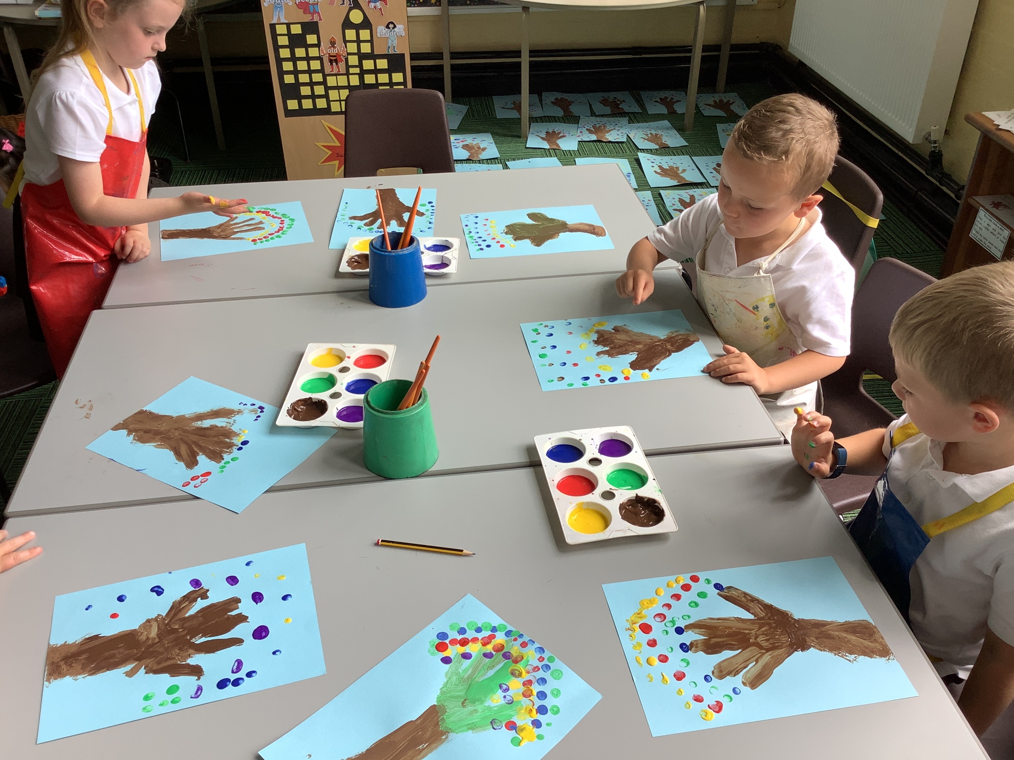 We have had a fantastic day in Year 1! We have been busy solving problems, building tracks for our Beebots, writing our numbers and letters, seeing how many seconds it takes us to ride from one side of the playground to the other, using our phonics and painting trees! The children have worked so hard and we are very proud of them. We are already looking forward to September!