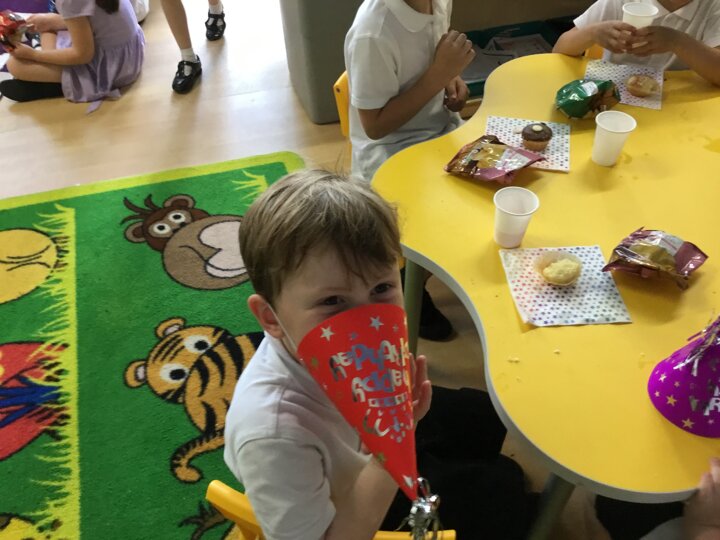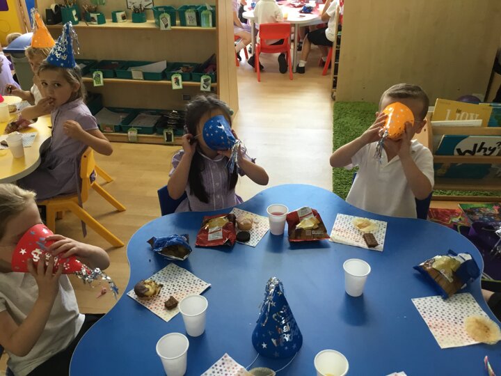 Wow what a beautiful day for a party! We have had a fabulous afternoon celebrating all the birthday children of this term including those who still have their birthday to come over the summer holidays. They have danced, sang, played games and eaten lots of yummy treats.