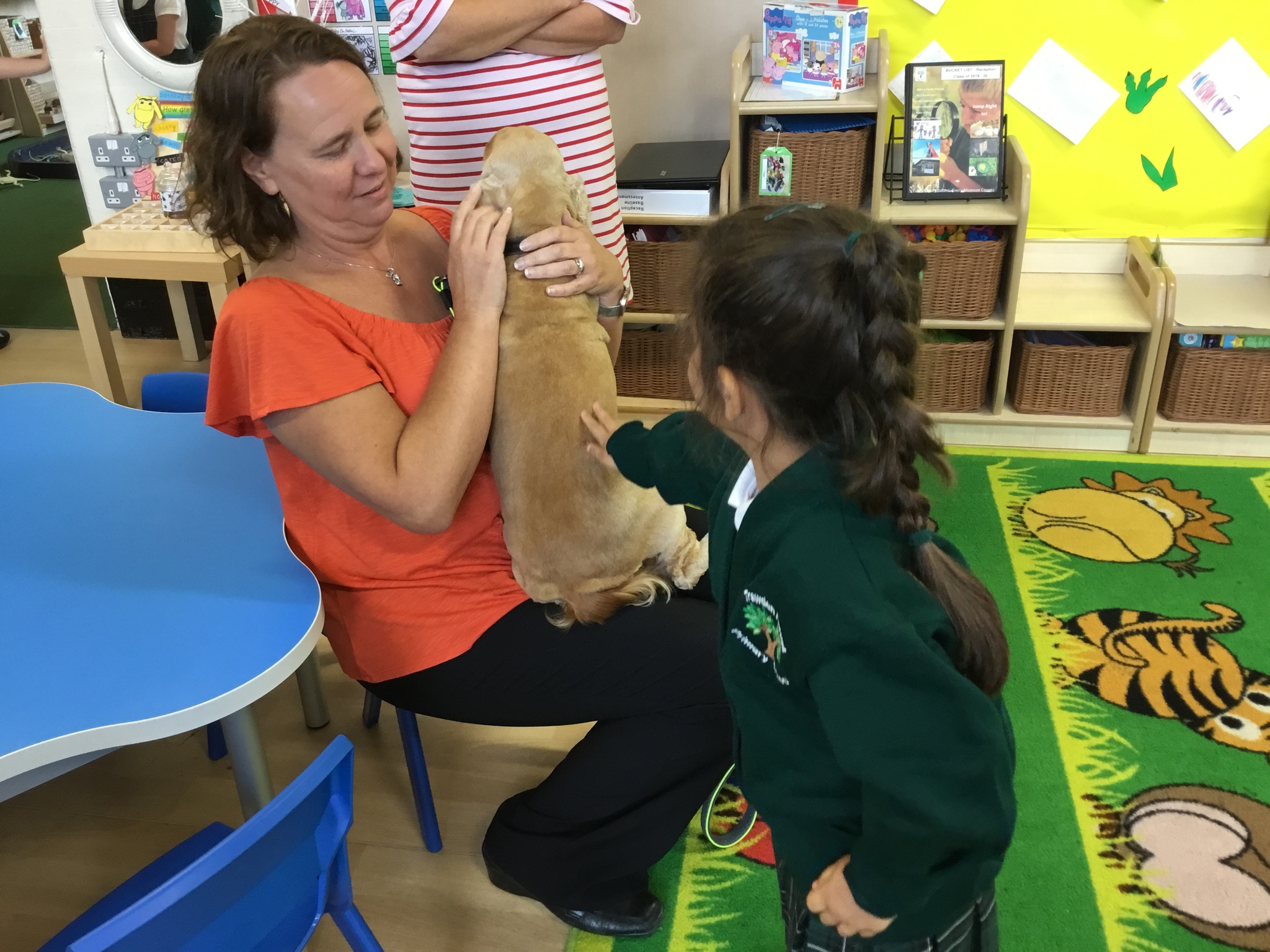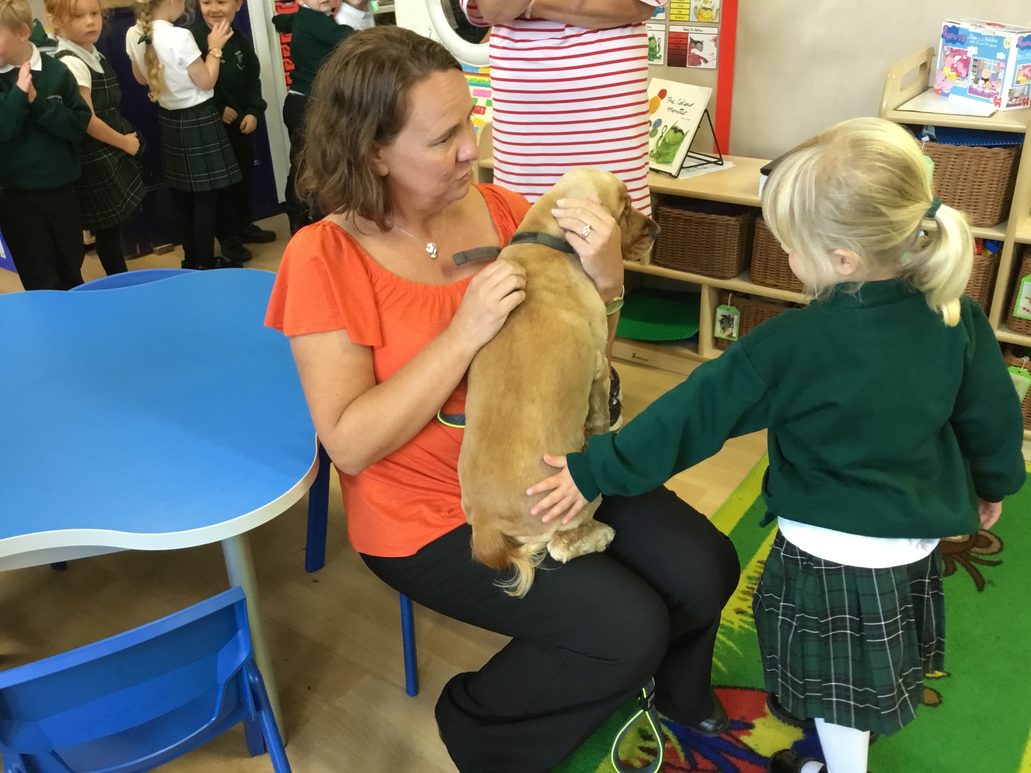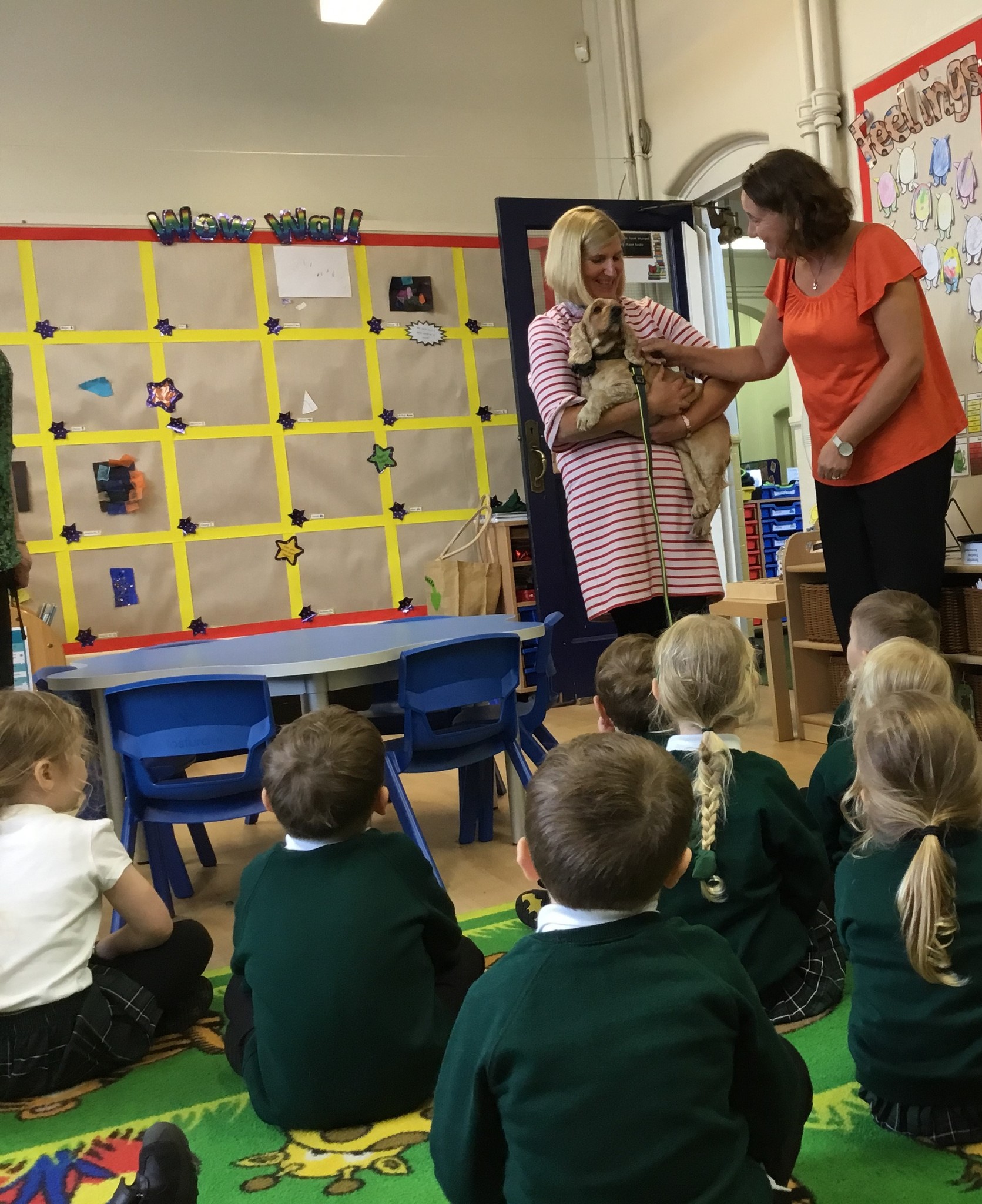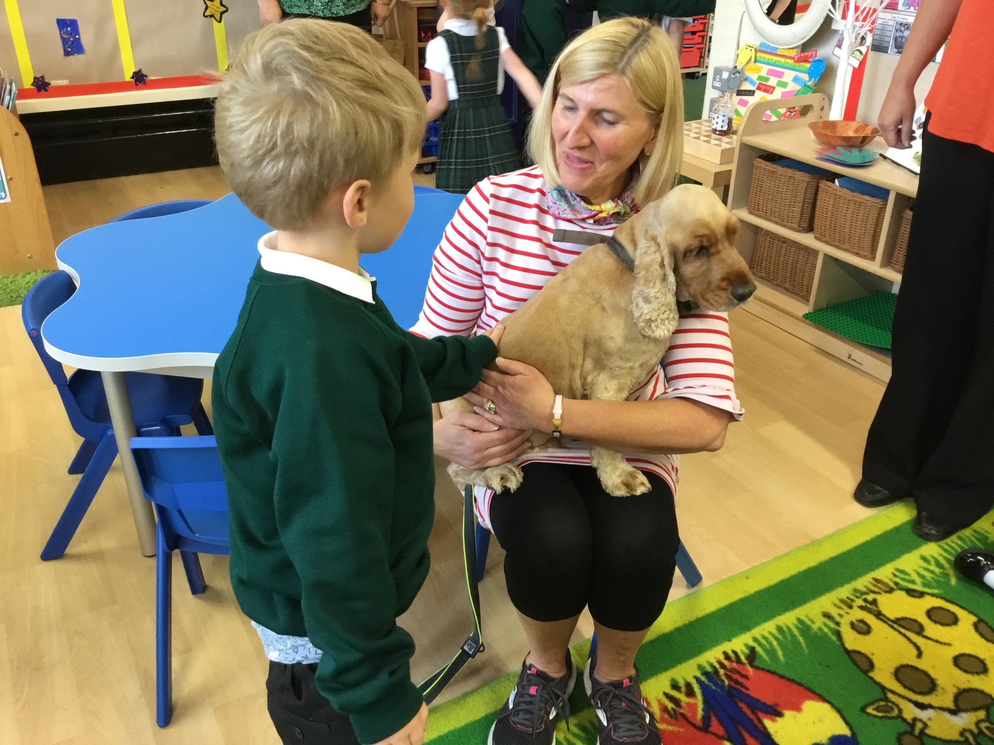 Sofia the therapy dog and her handler came to look round the school and was very excited to meet all the children. She was friendly, gentle and very well-behaved - a perfect addition to our class.