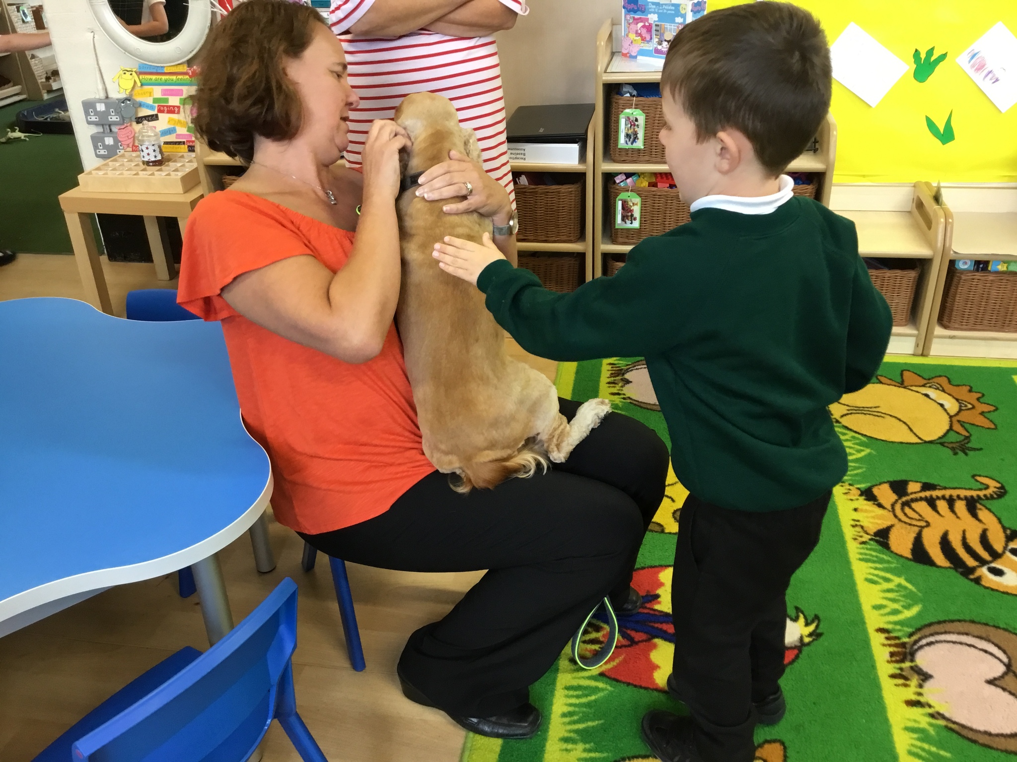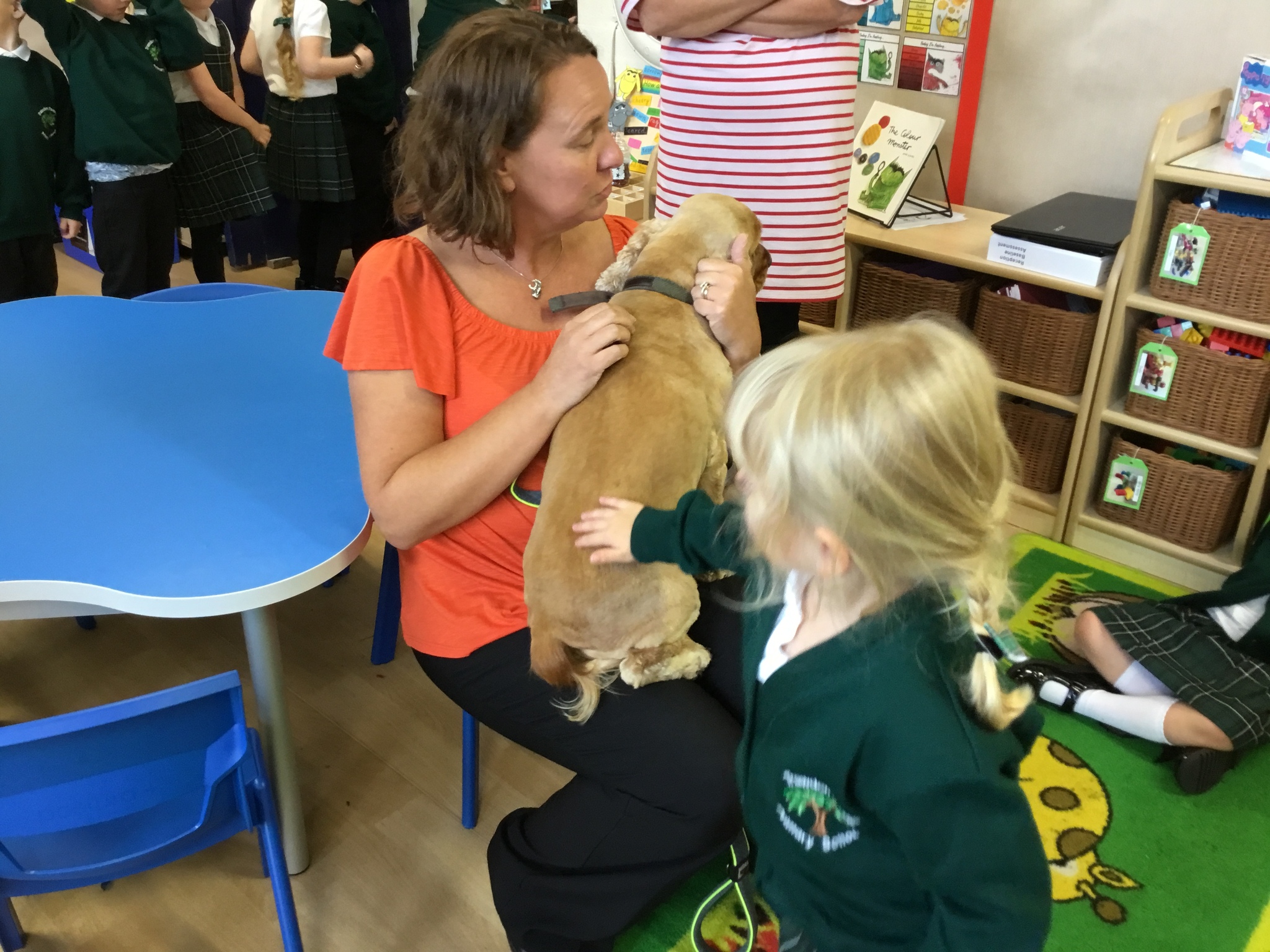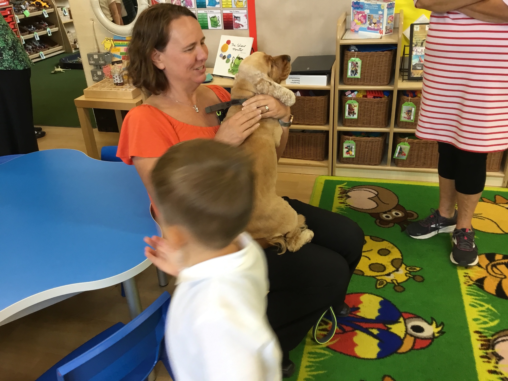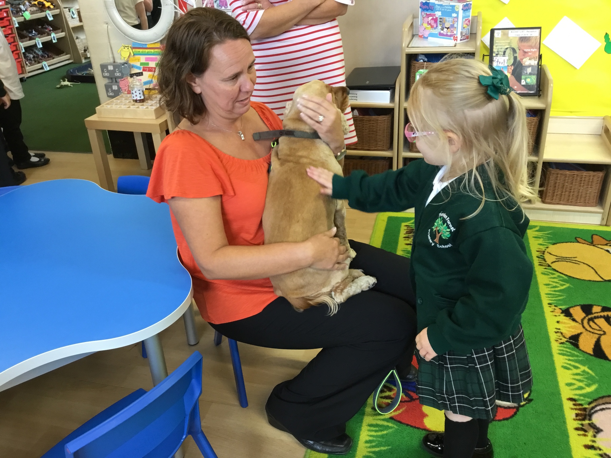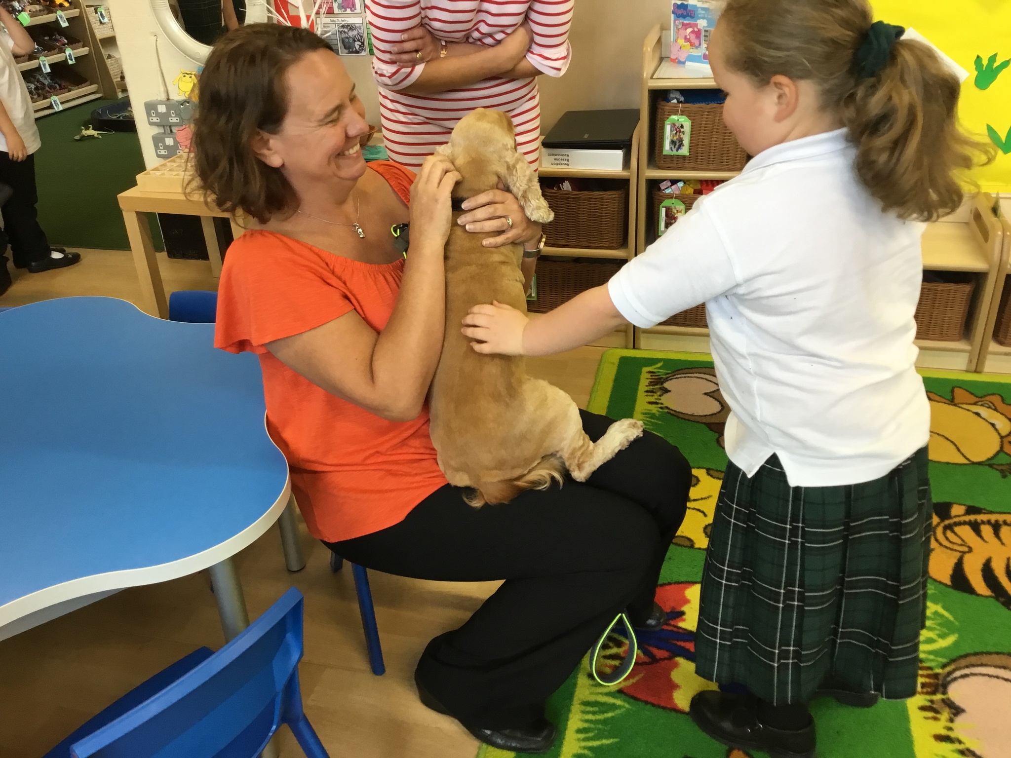 Sofia the therapy dog and her handler came to look round the school and was very excited to meet all the children. She was friendly, gentle and very well-behaved - a perfect addition to our class.