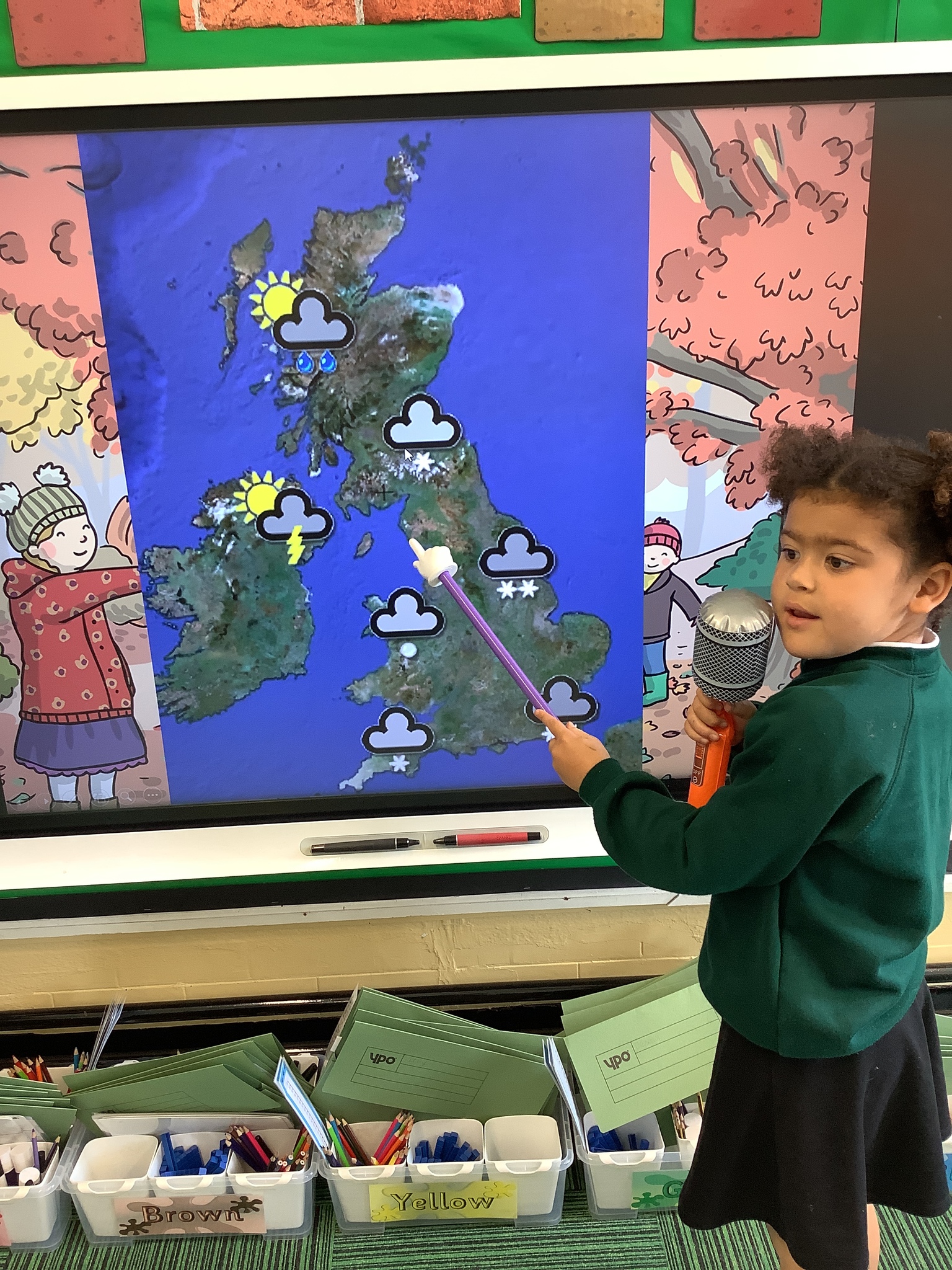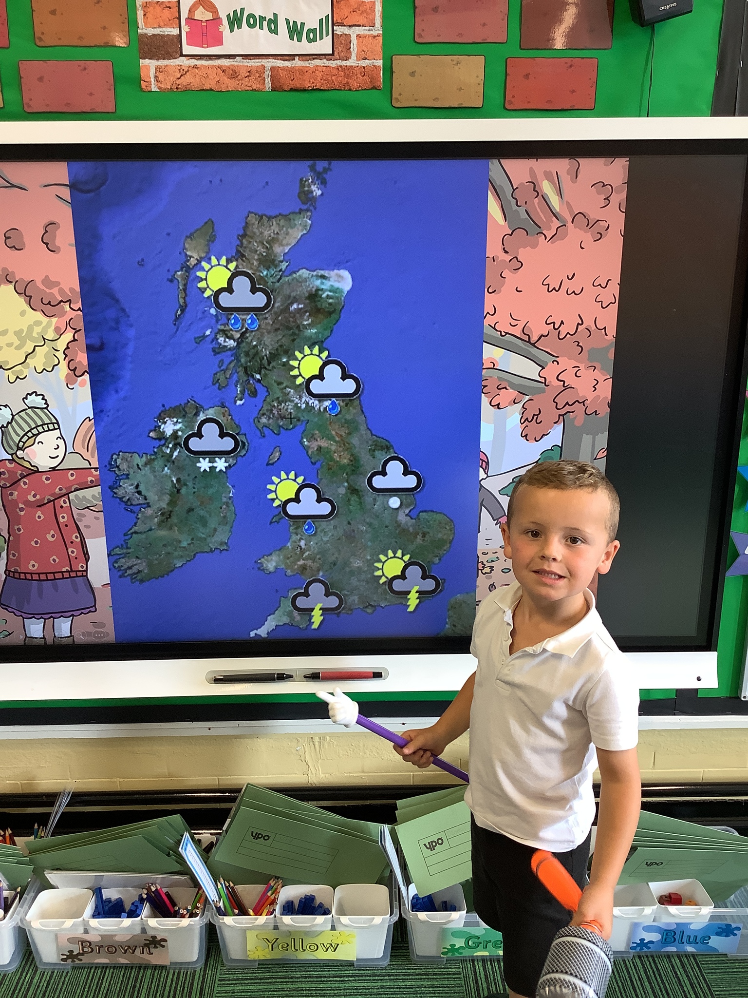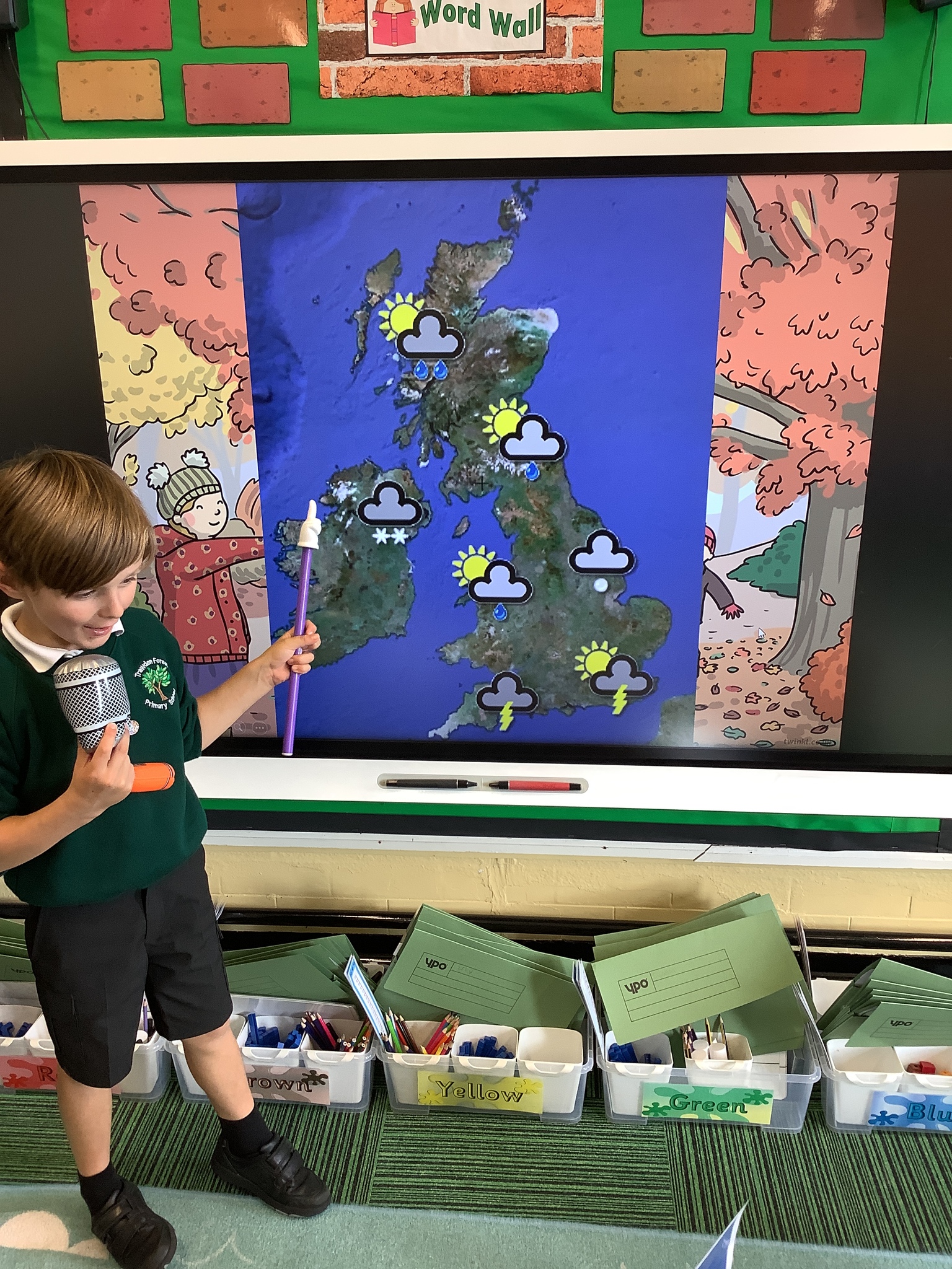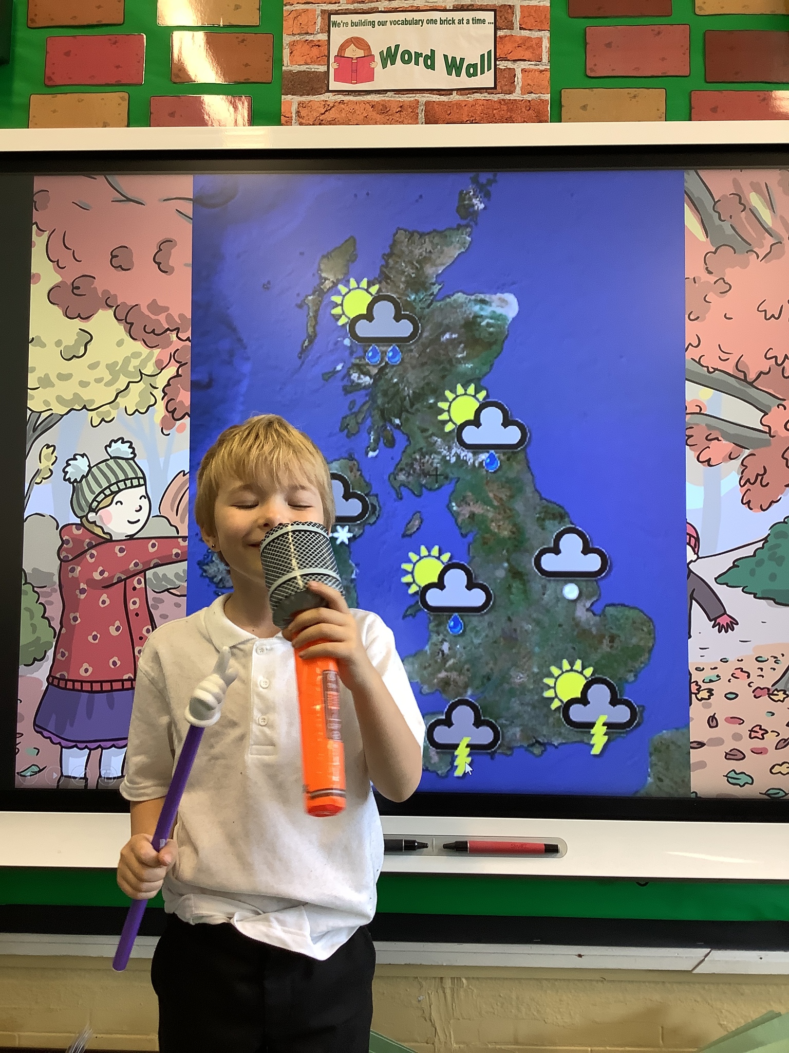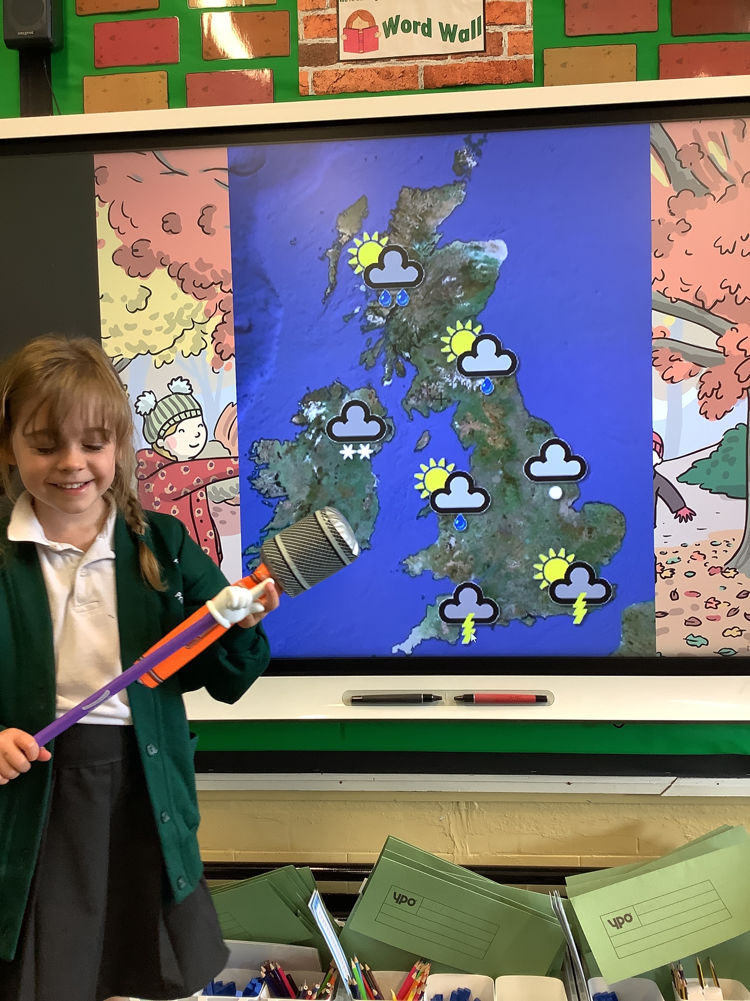 Year 1 have had a fantastic afternoon pretending to be weather reporters. We have started our Seasonal Change Science topic and have spent today's session using the vocabulary that we learnt to discuss and describe what the weather is like.