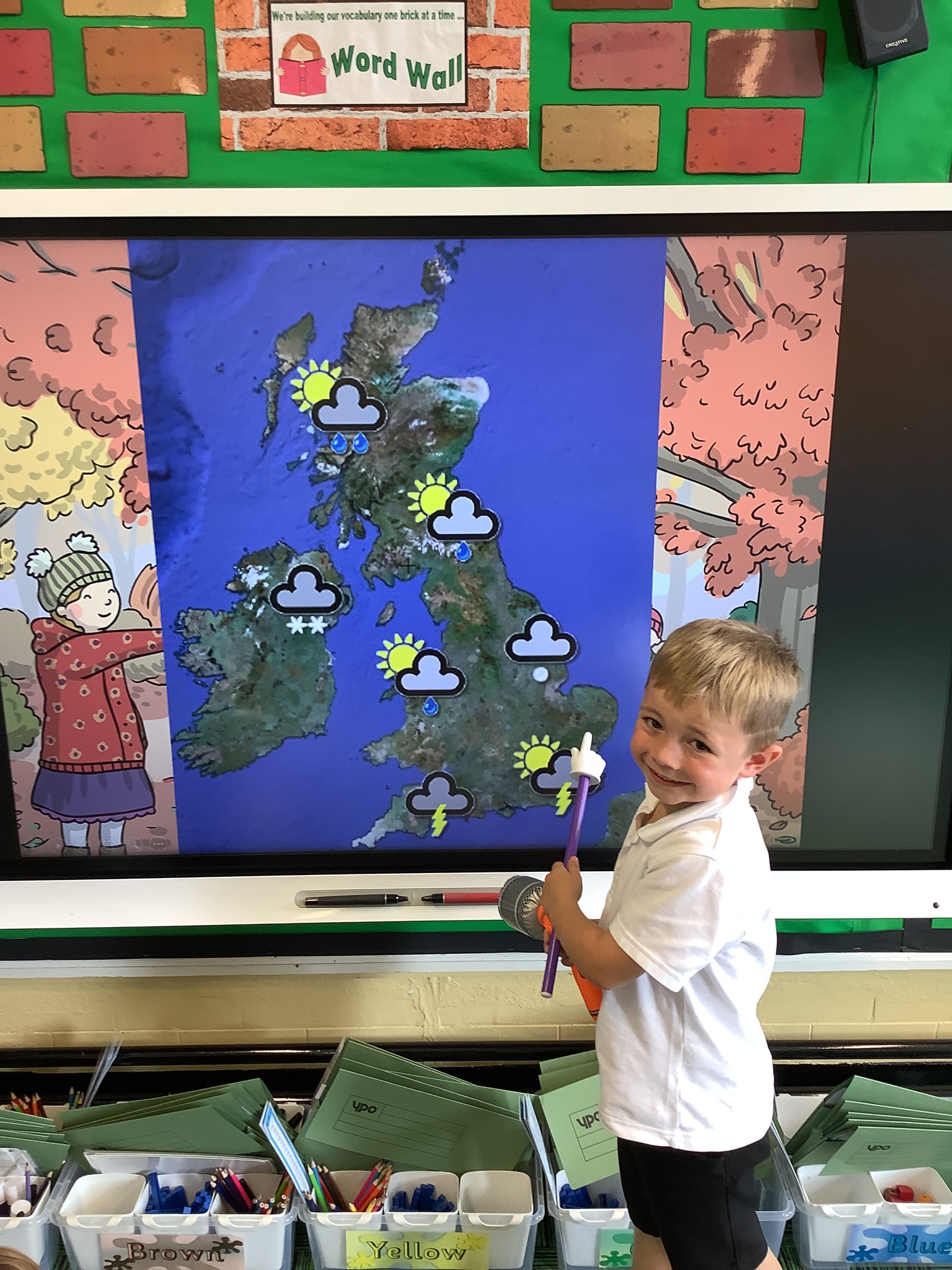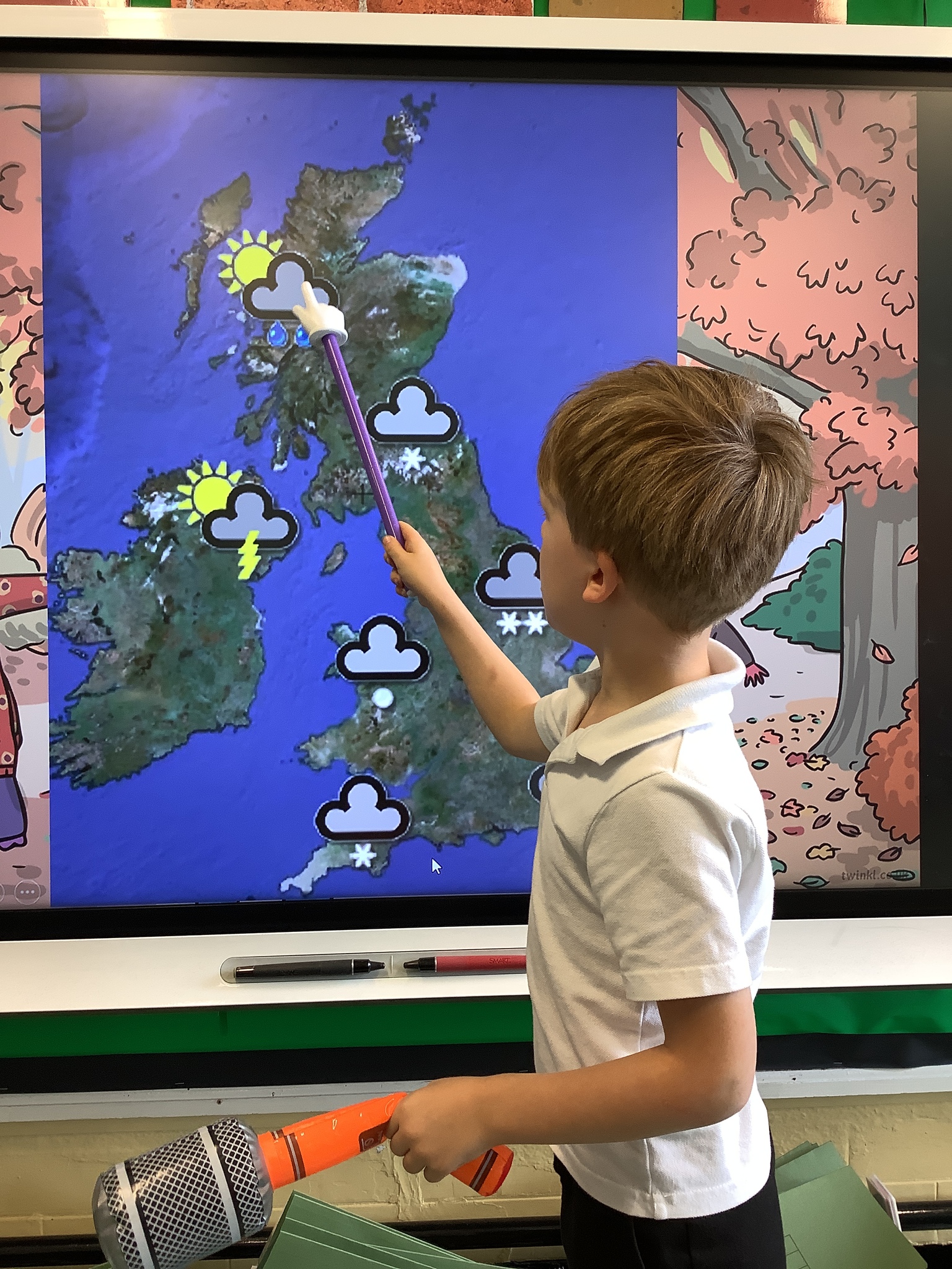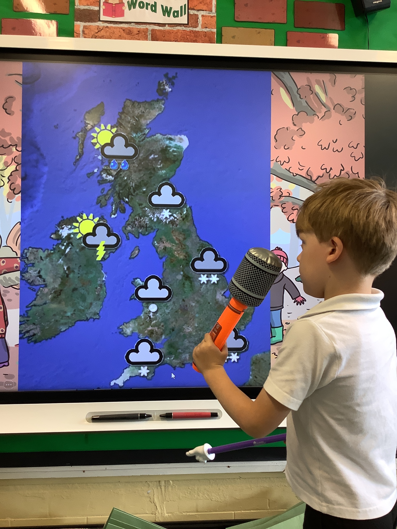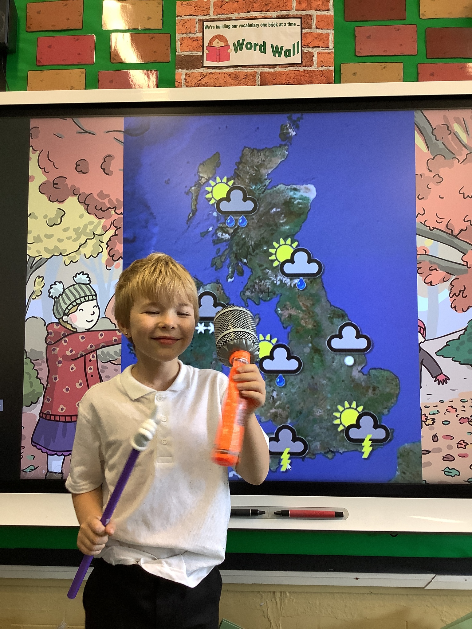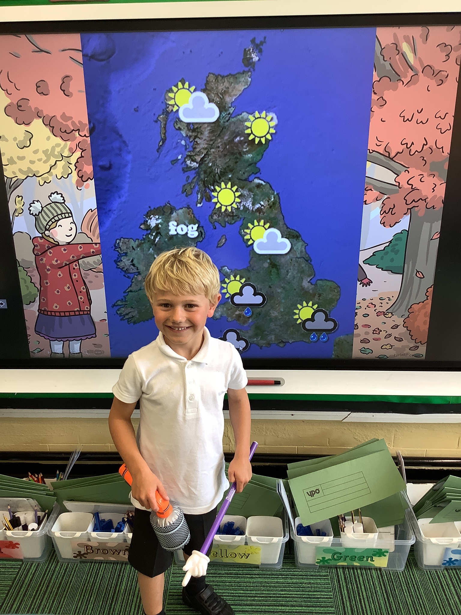 Year 1 have had a fantastic afternoon pretending to be weather reporters. We have started our Seasonal Change Science topic and have spent today's session using the vocabulary that we learnt to discuss and describe what the weather is like.
