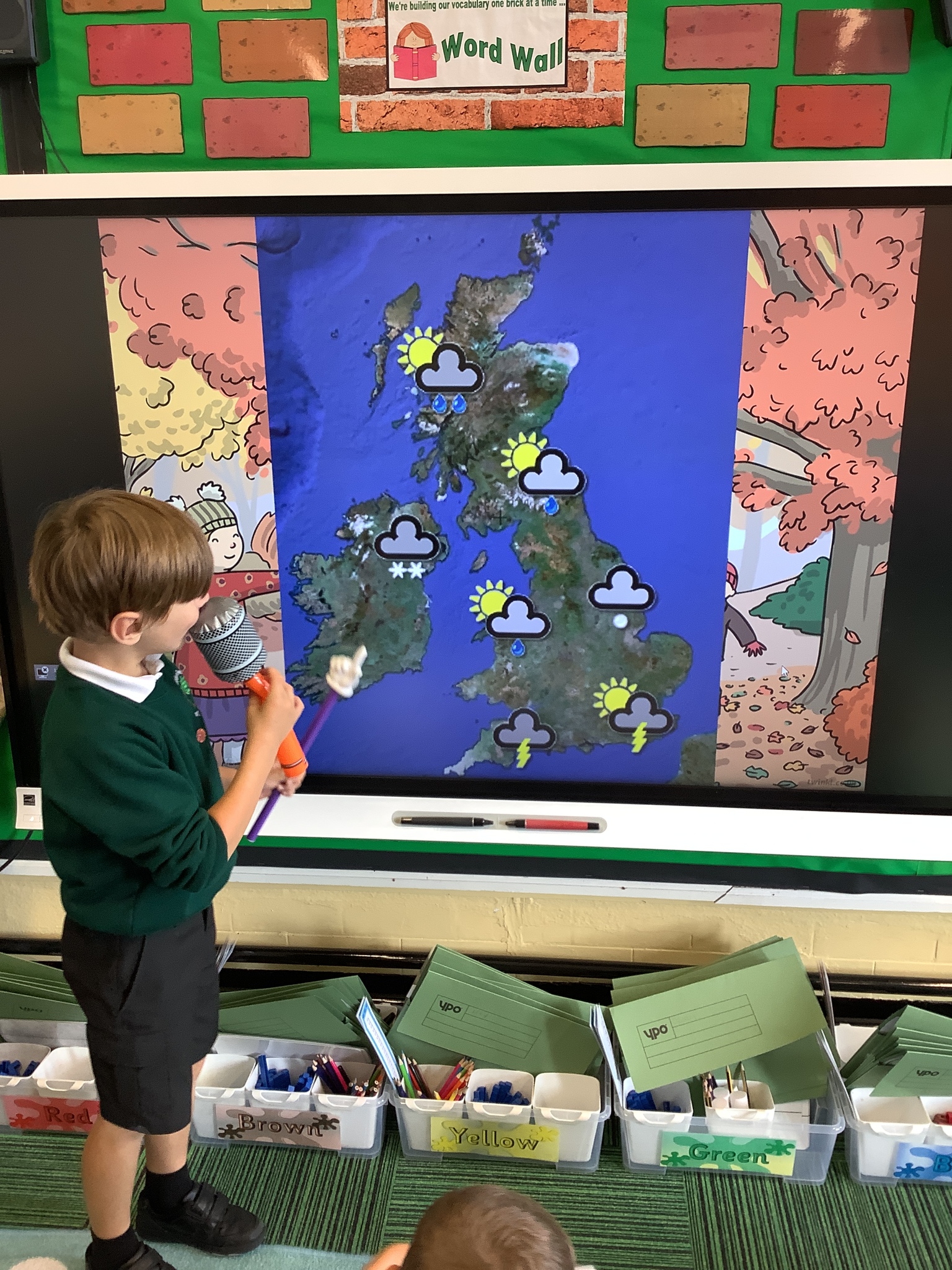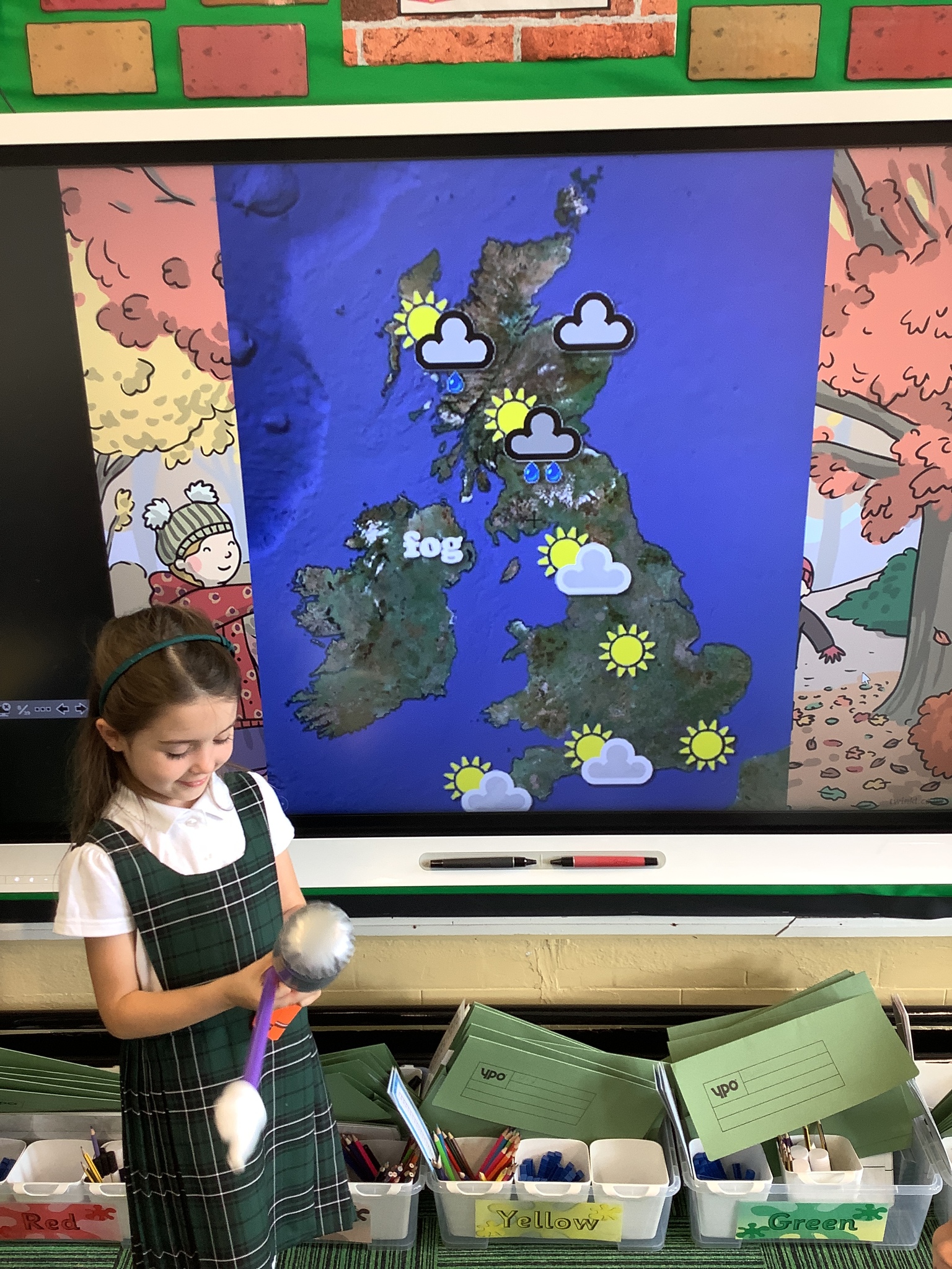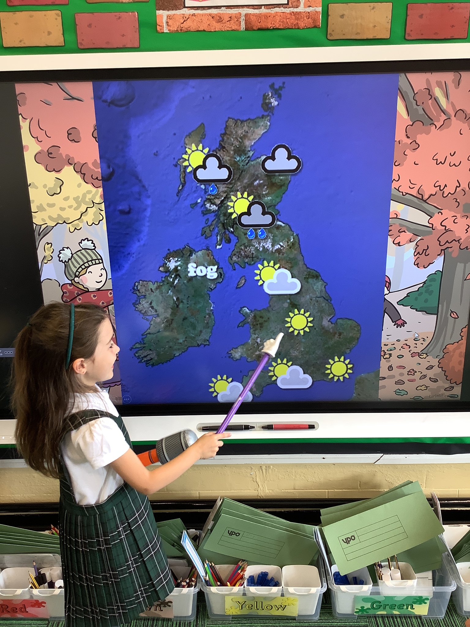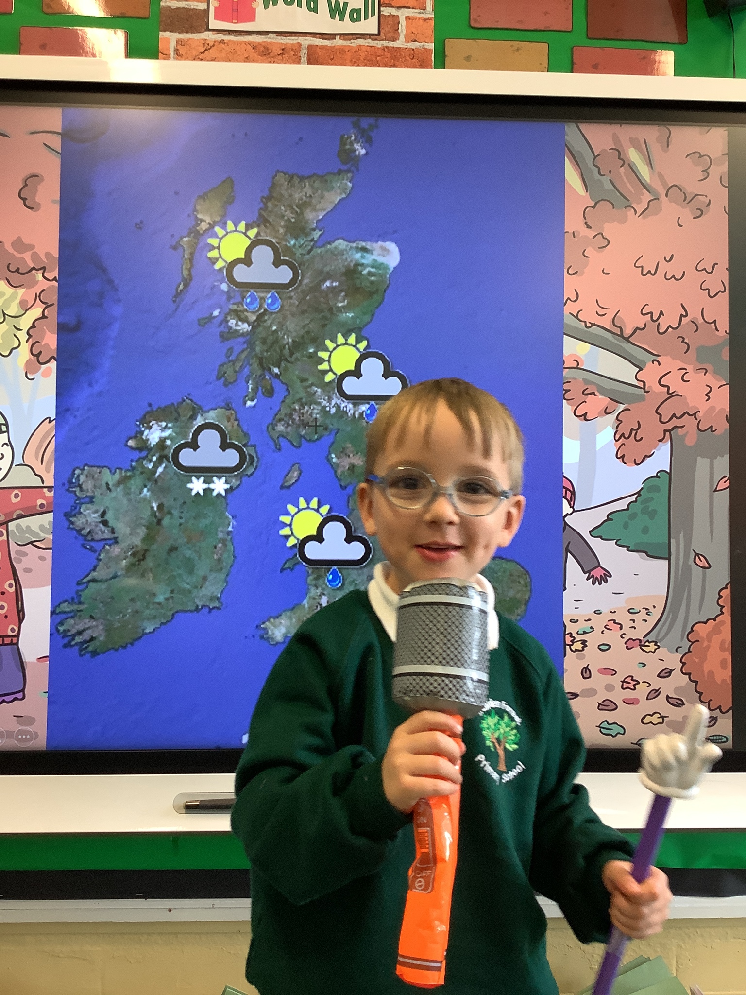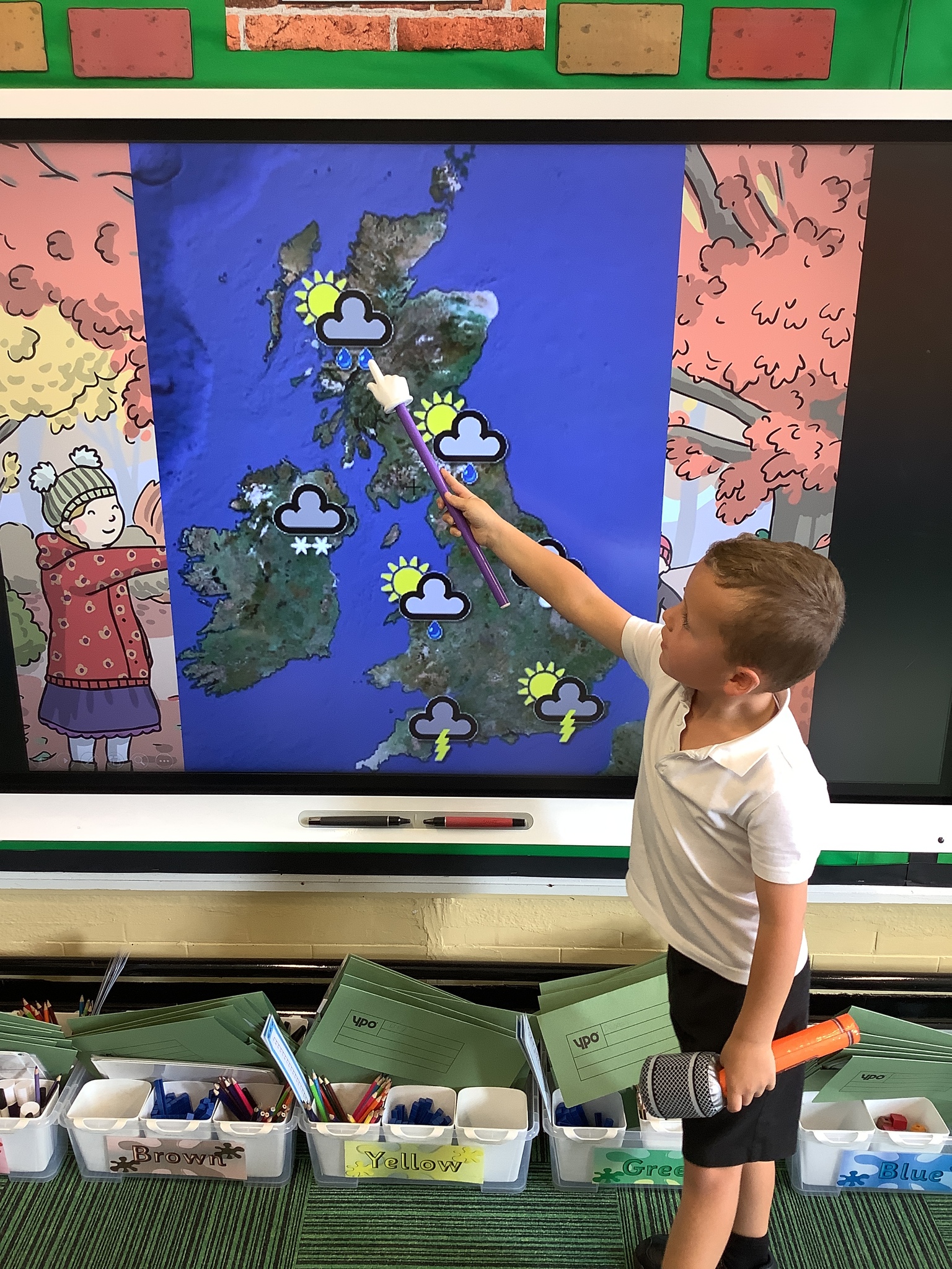 Year 1 have had a fantastic afternoon pretending to be weather reporters. We have started our Seasonal Change Science topic and have spent today's session using the vocabulary that we learnt to discuss and describe what the weather is like.