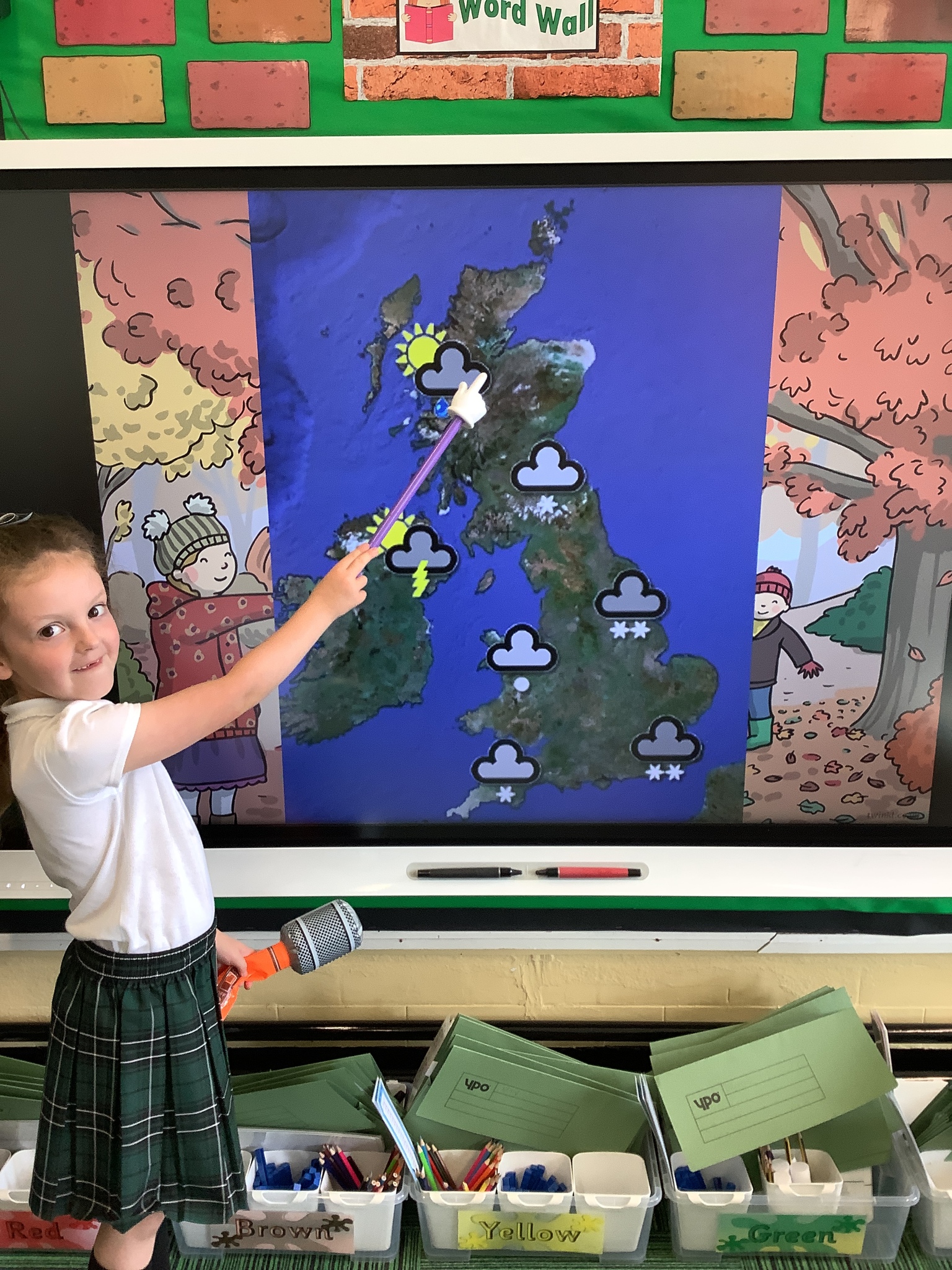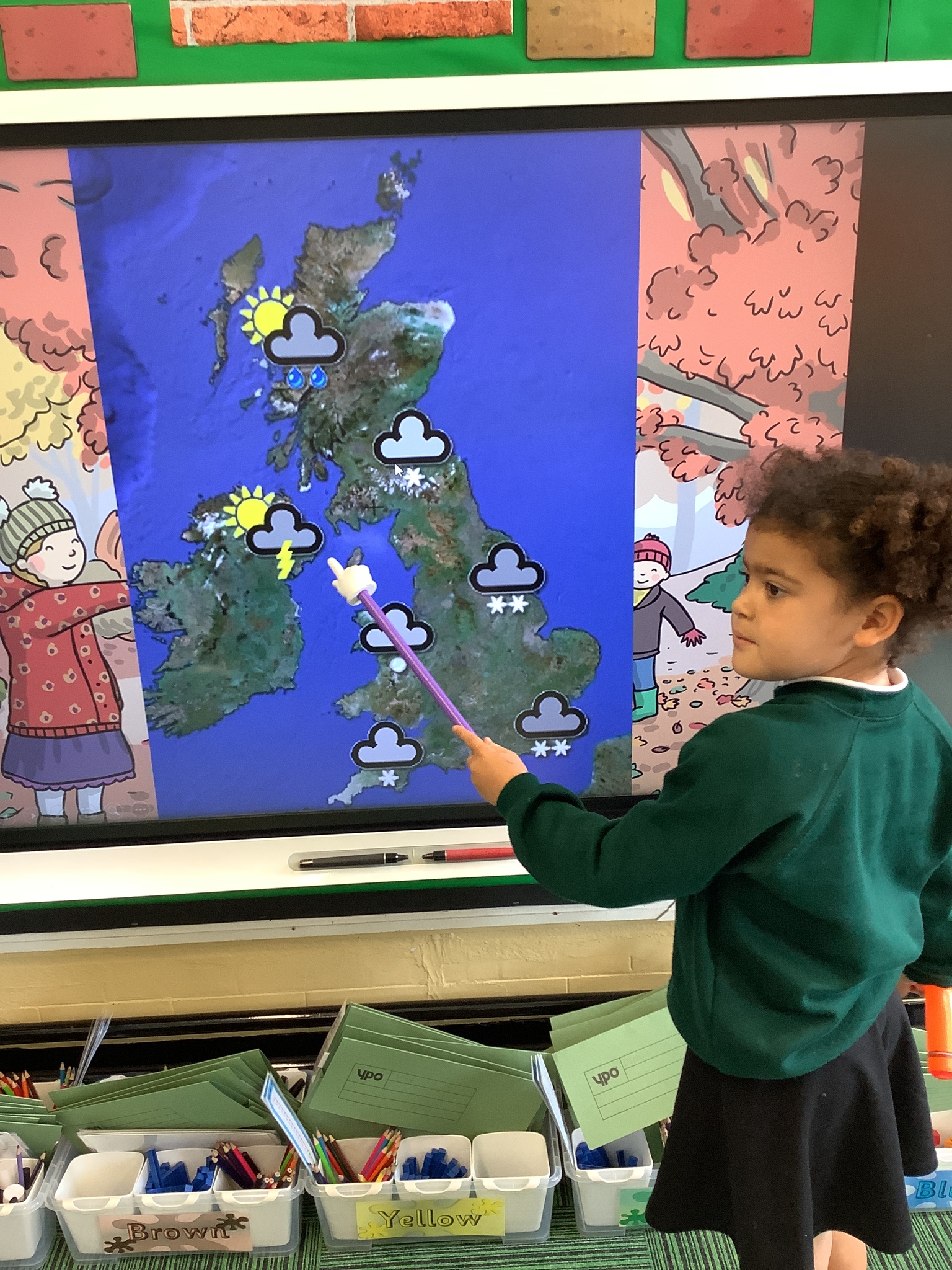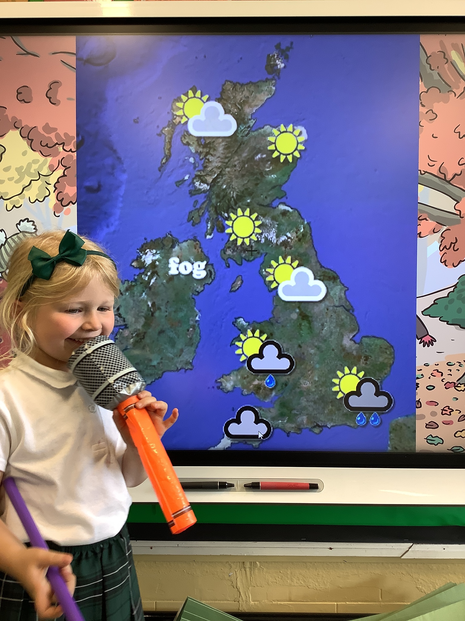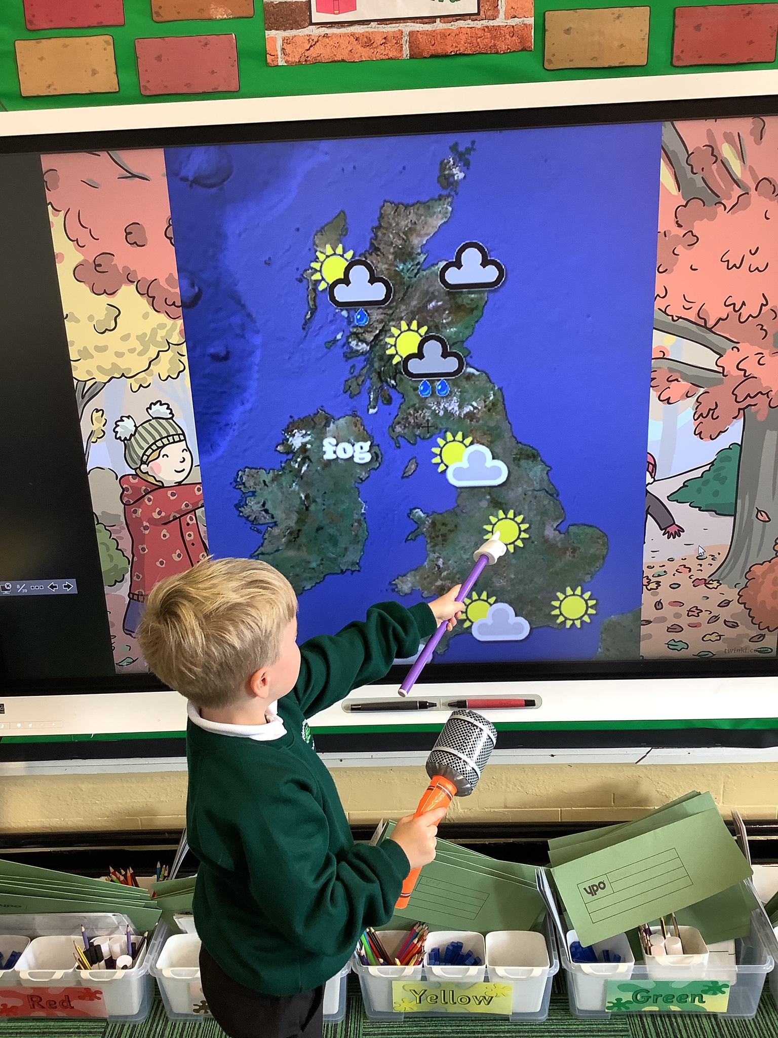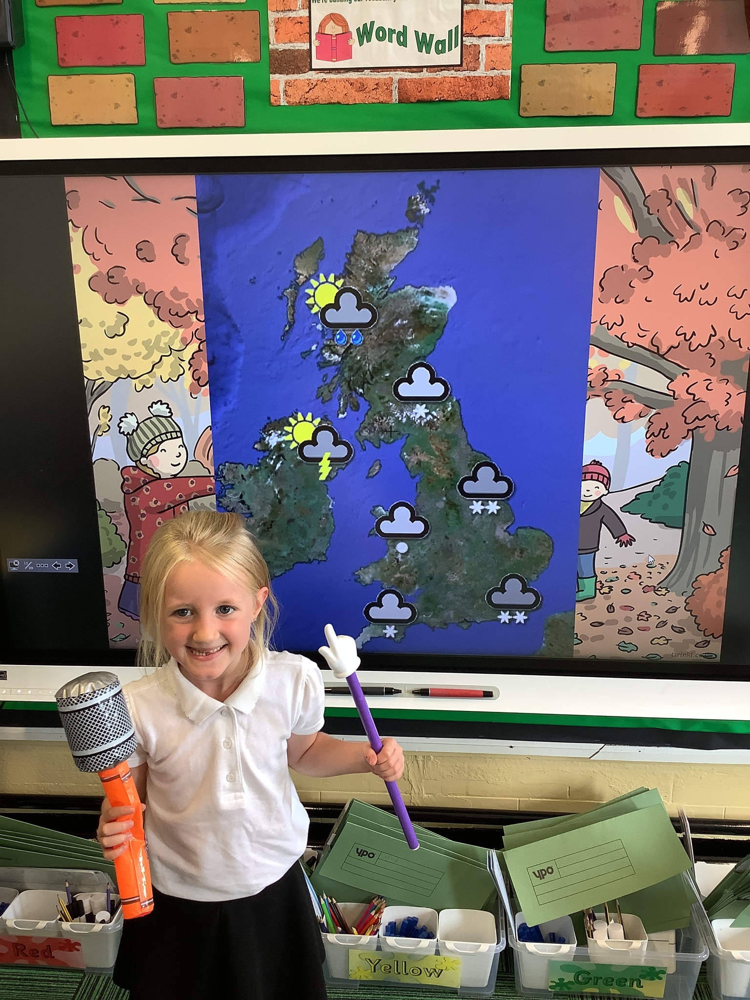 Year 1 have had a fantastic afternoon pretending to be weather reporters. We have started our Seasonal Change Science topic and have spent today's session using the vocabulary that we learnt to discuss and describe what the weather is like.