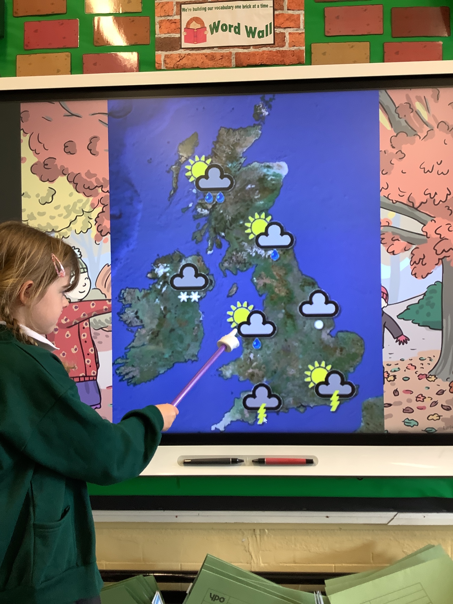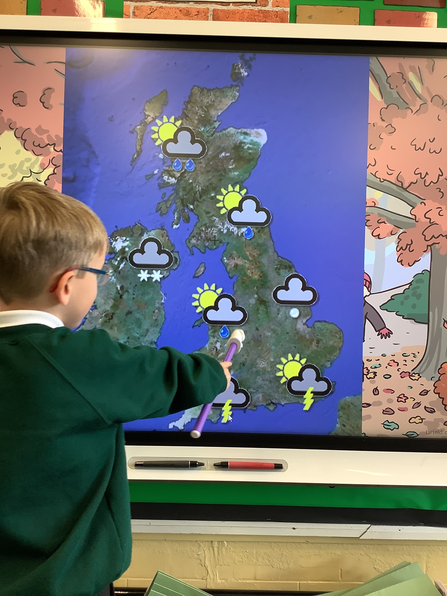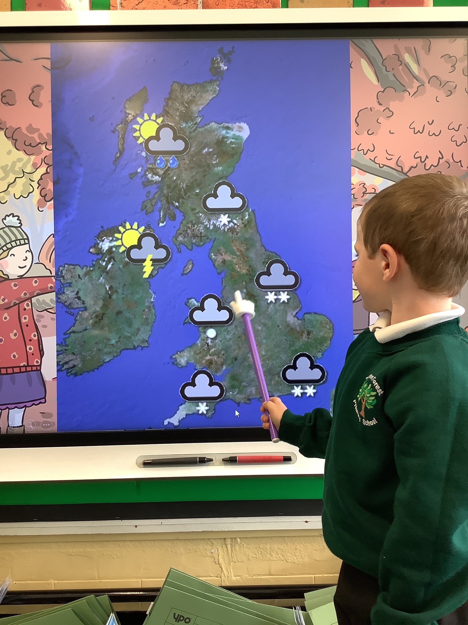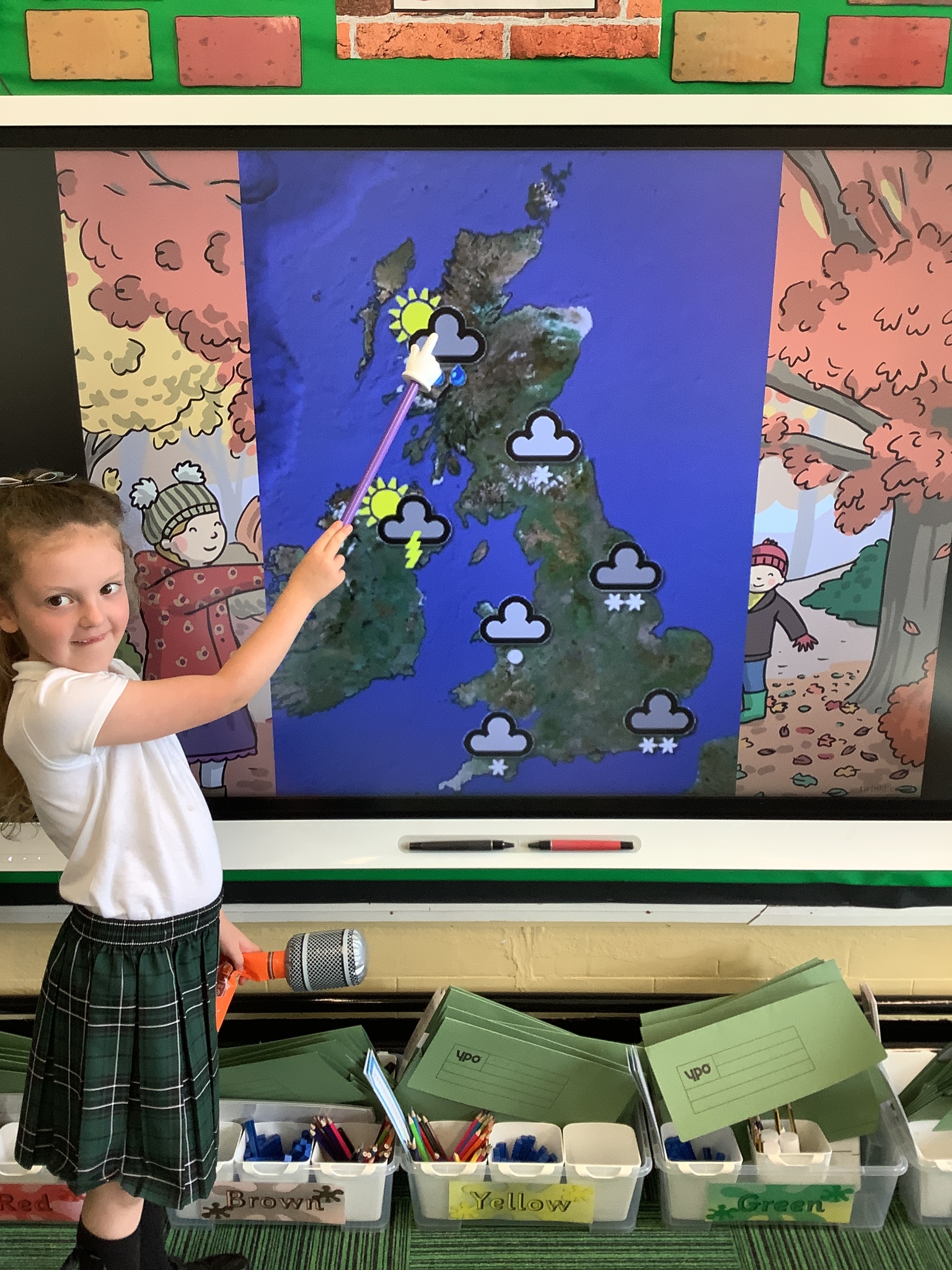 Year 1 have had a fantastic afternoon pretending to be weather reporters. We have started our Seasonal Change Science topic and have spent today's session using the vocabulary that we learnt to discuss and describe what the weather is like.