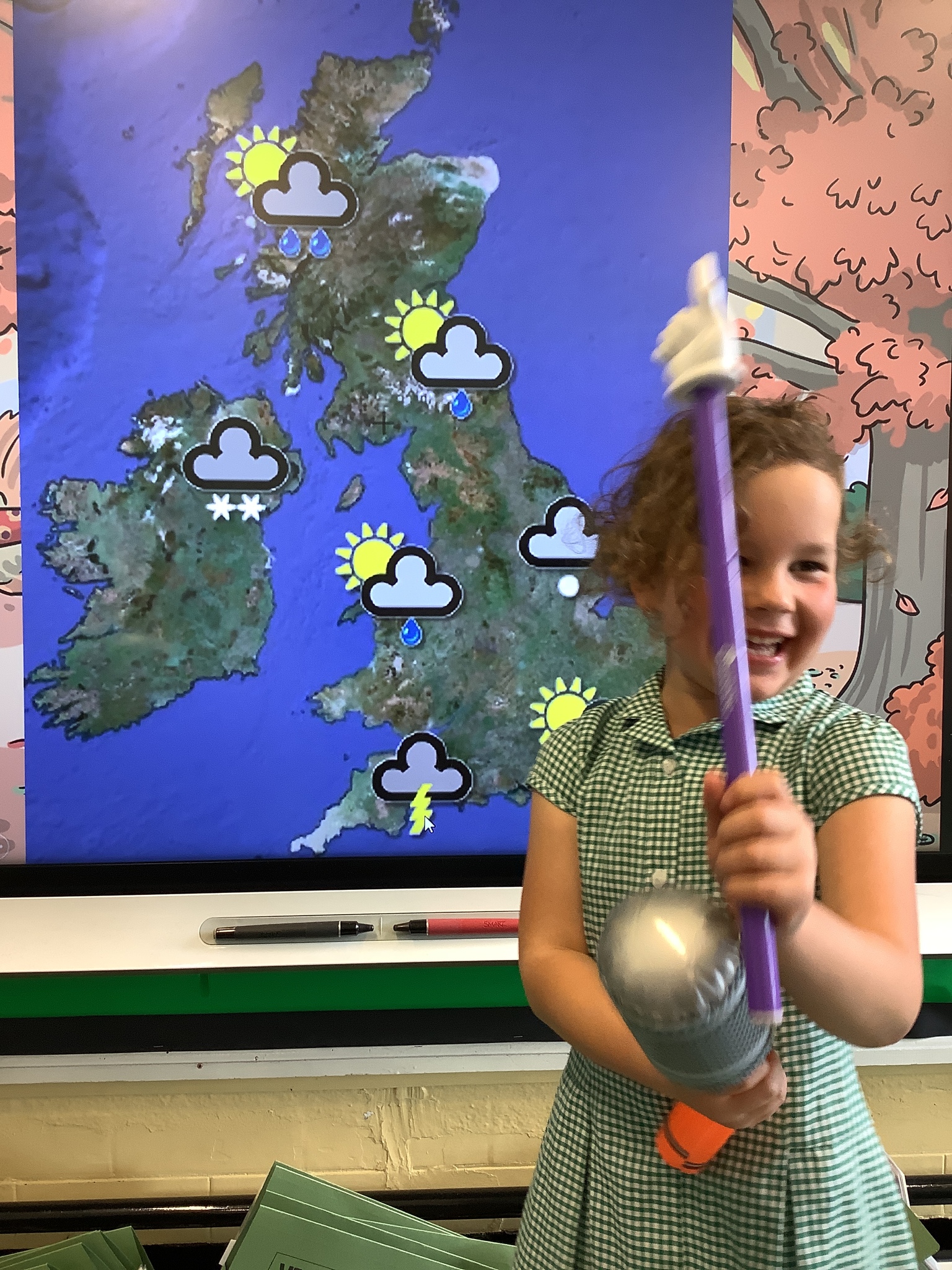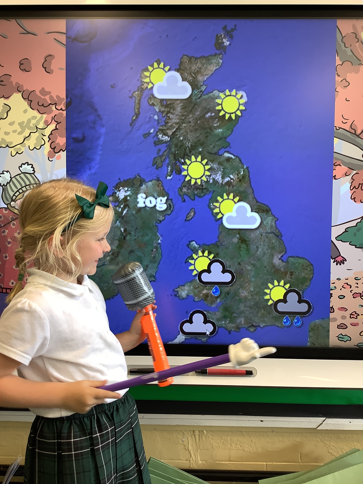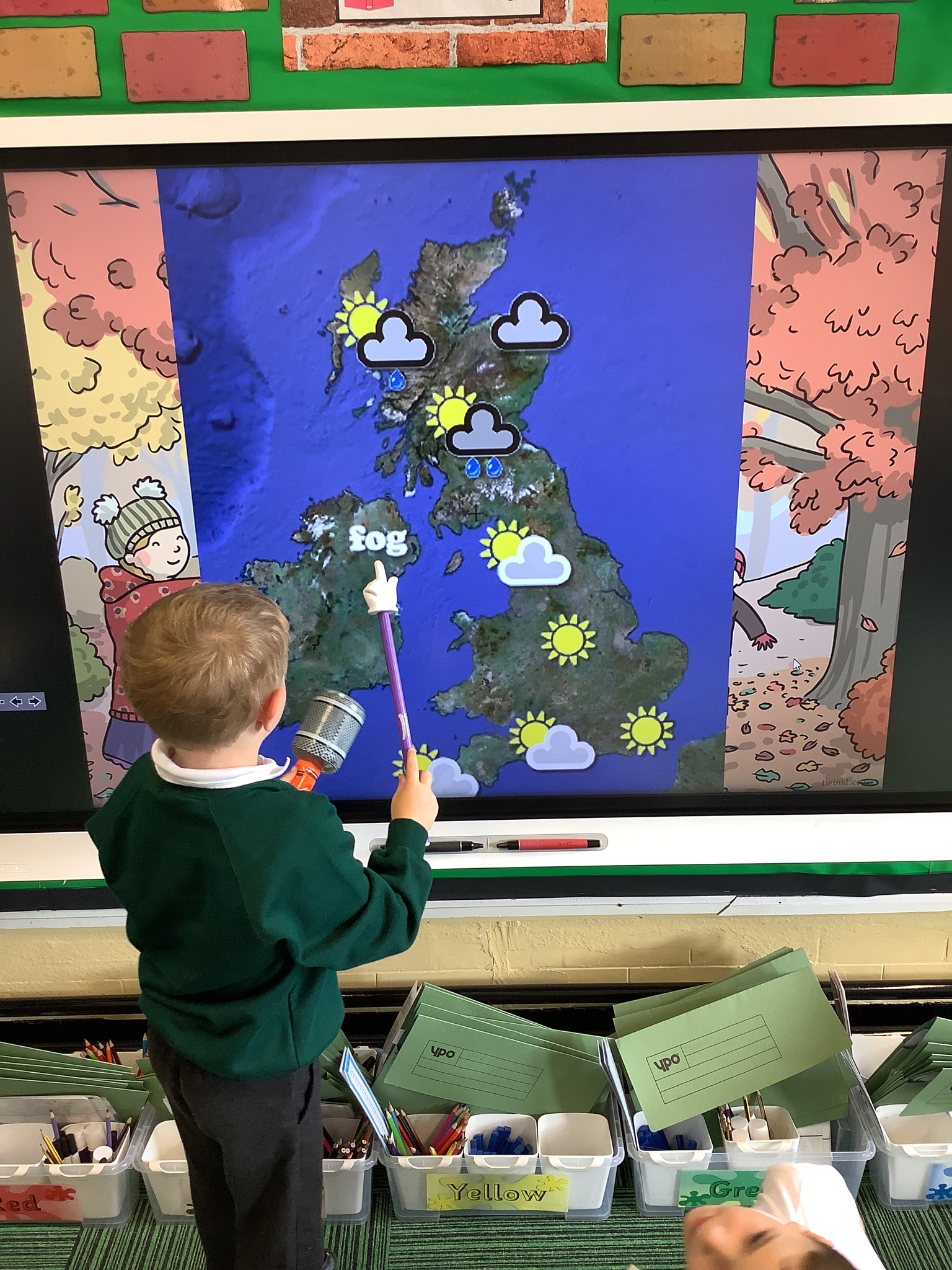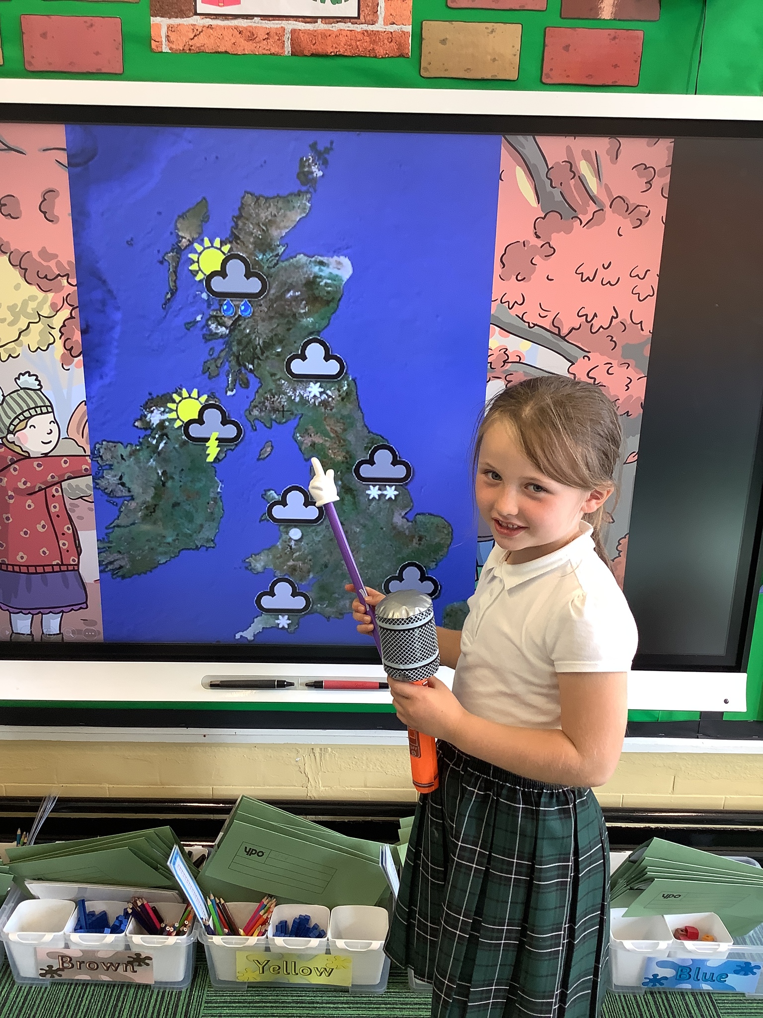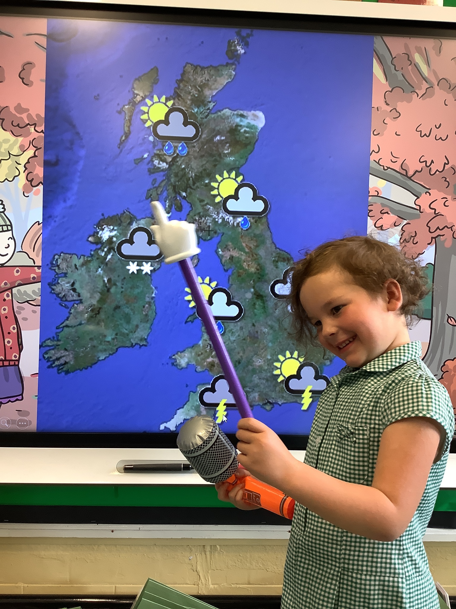 Year 1 have had a fantastic afternoon pretending to be weather reporters. We have started our Seasonal Change Science topic and have spent today's session using the vocabulary that we learnt to discuss and describe what the weather is like.