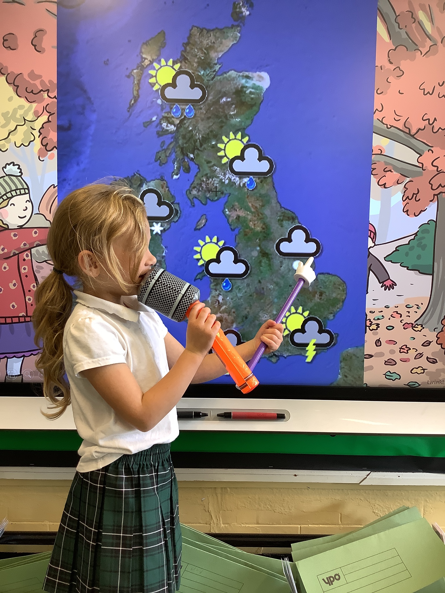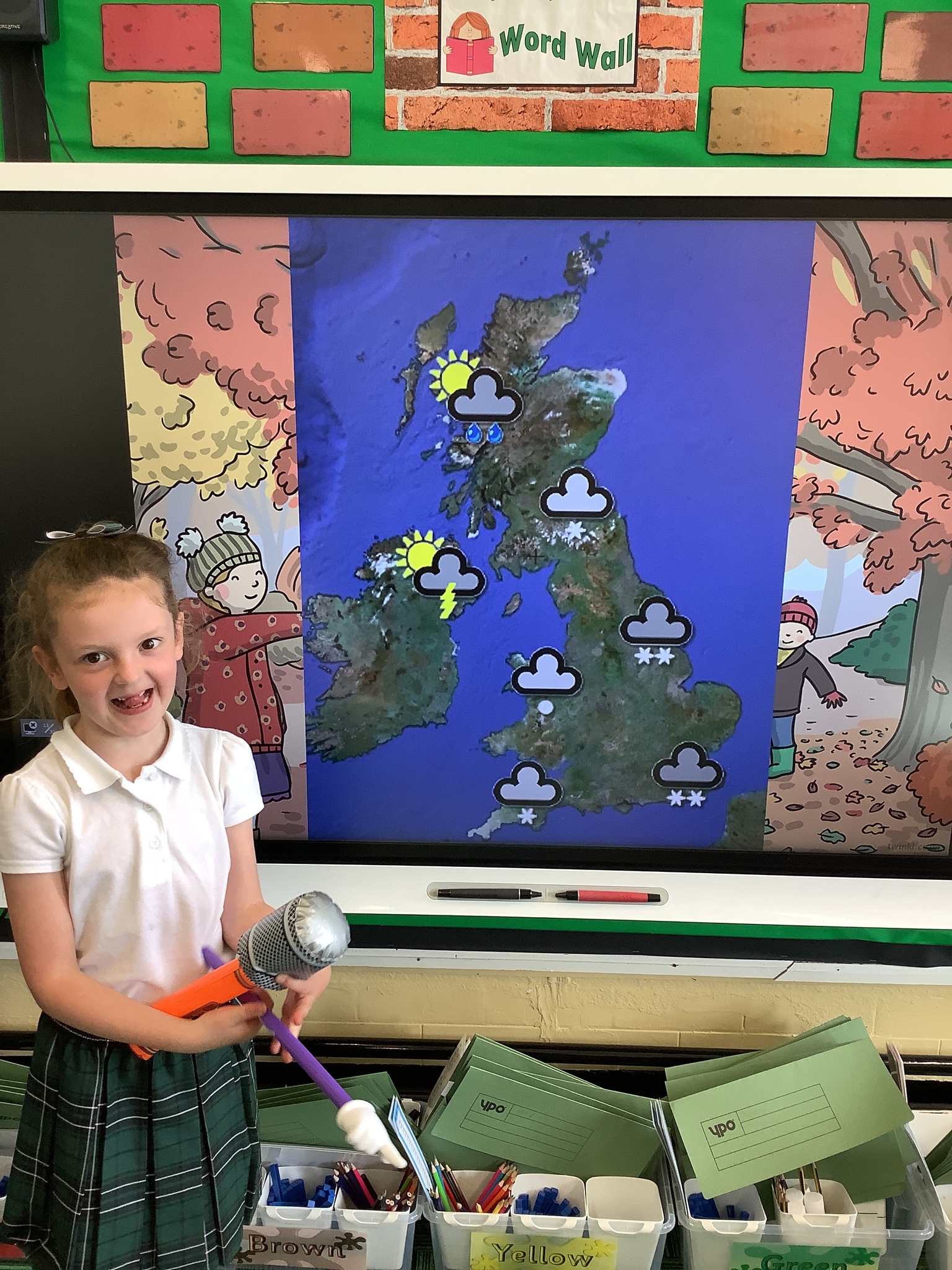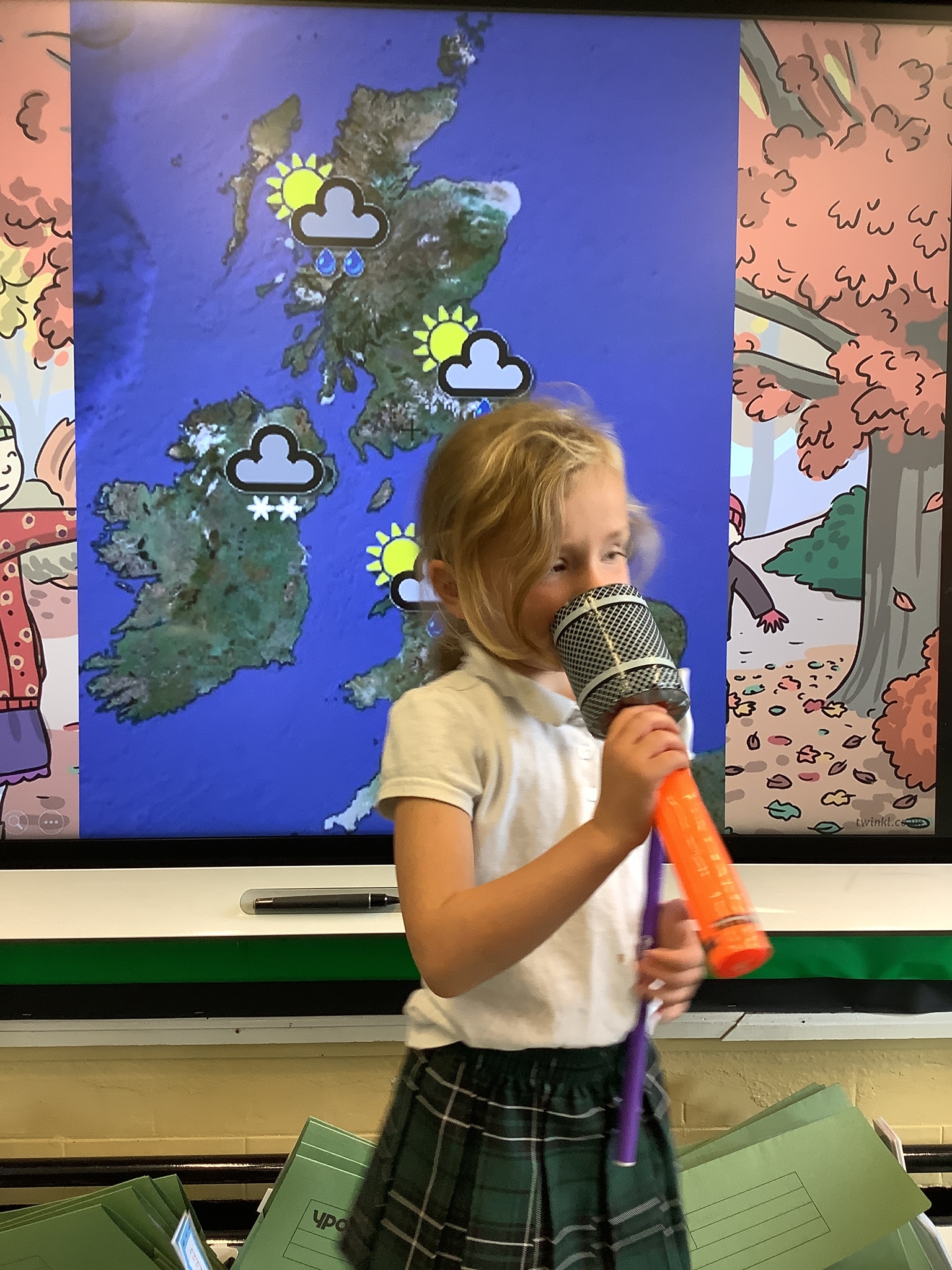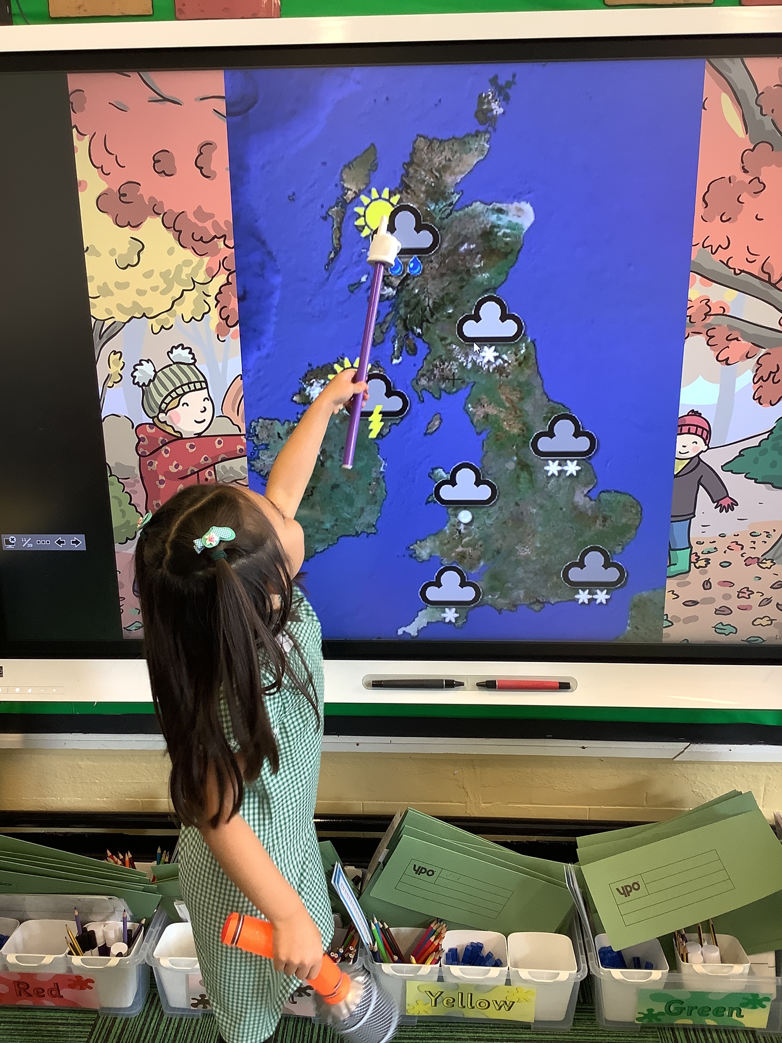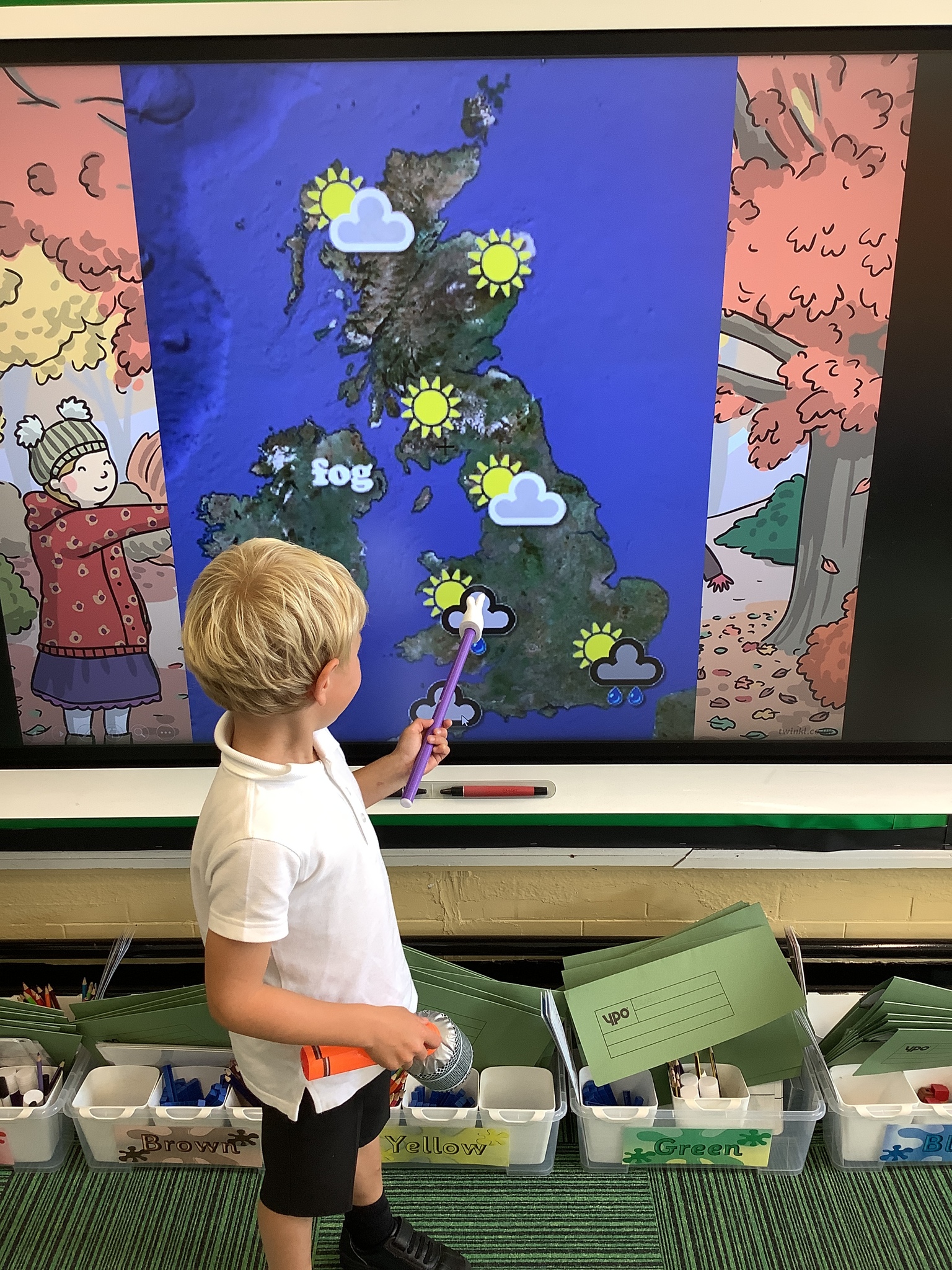 Year 1 have had a fantastic afternoon pretending to be weather reporters. We have started our Seasonal Change Science topic and have spent today's session using the vocabulary that we learnt to discuss and describe what the weather is like.